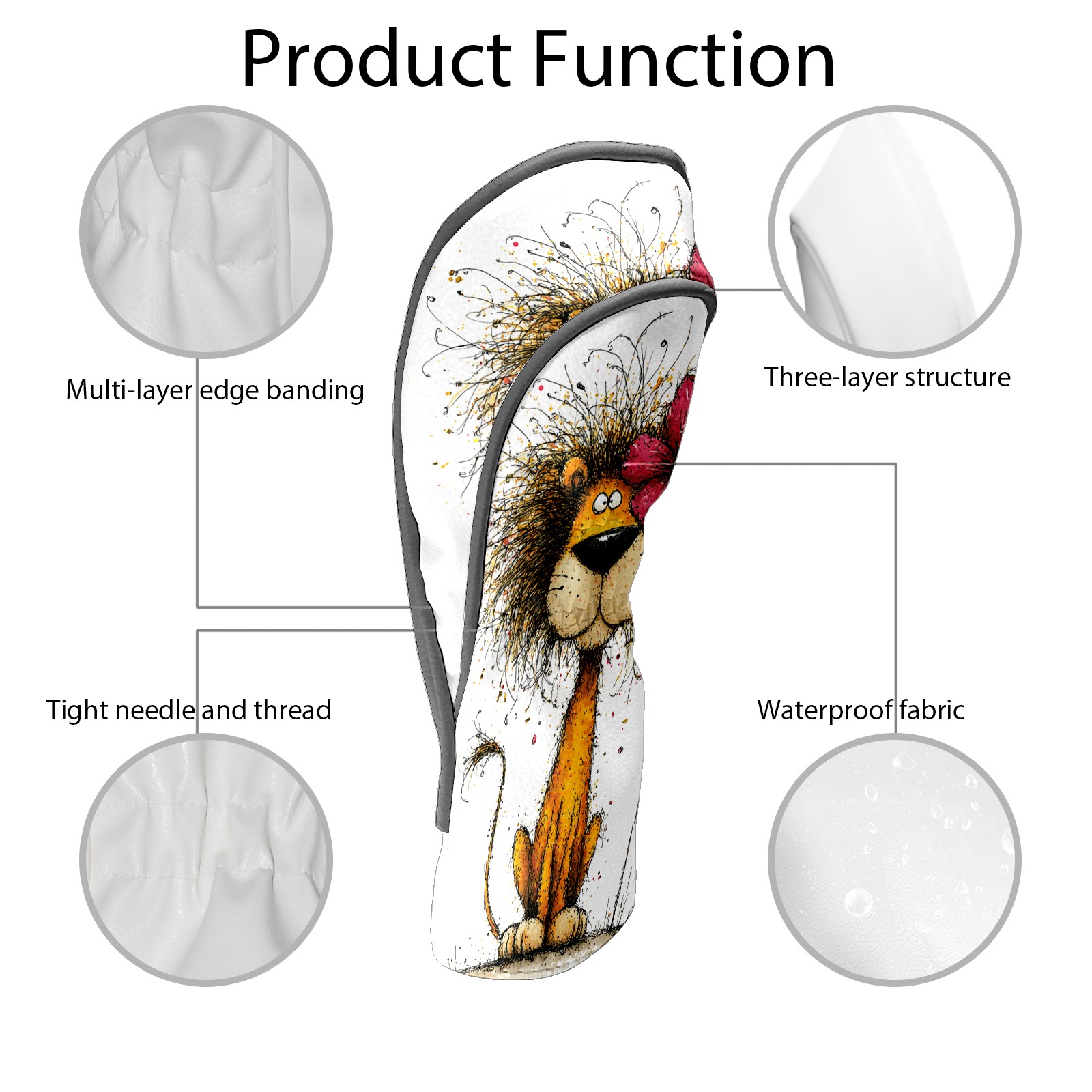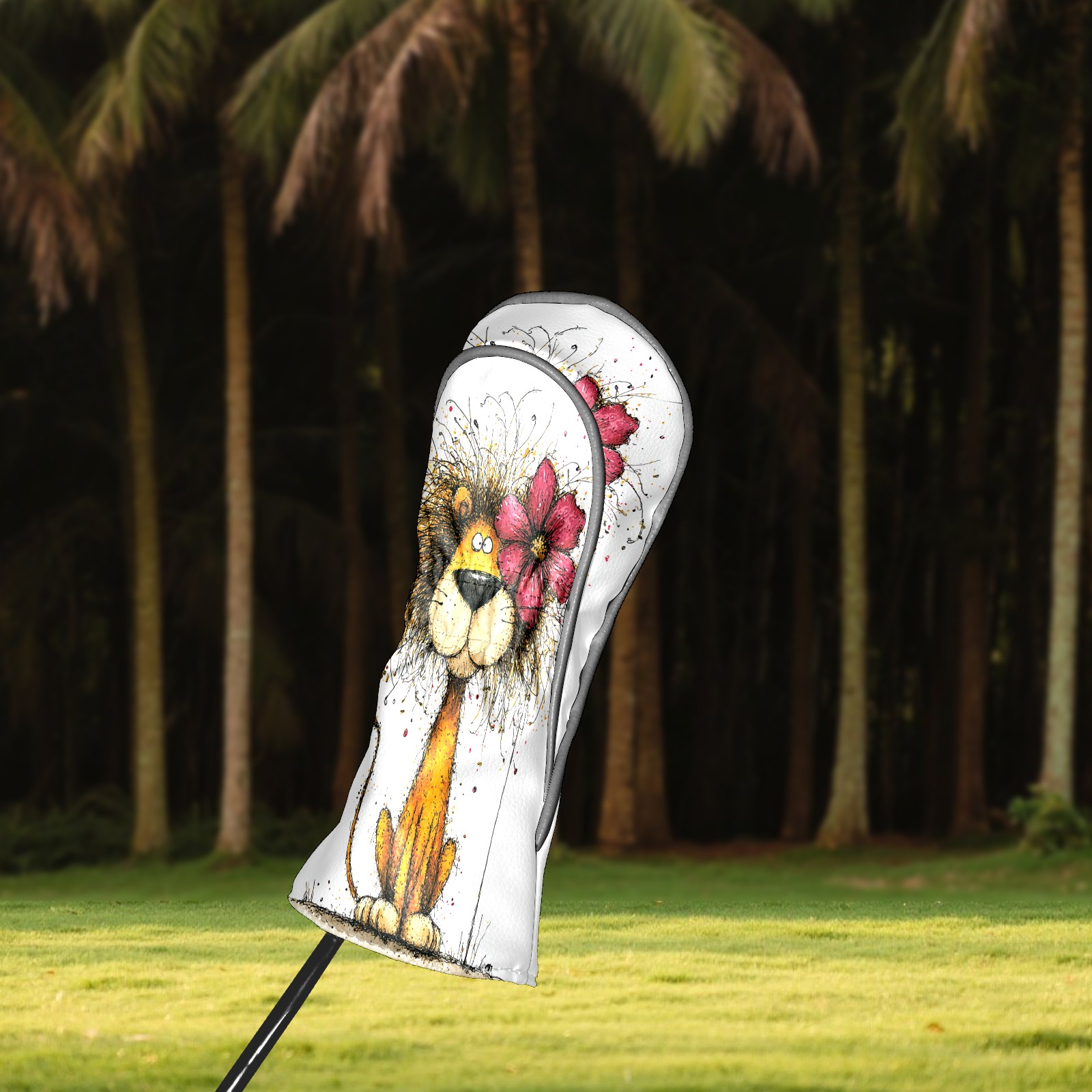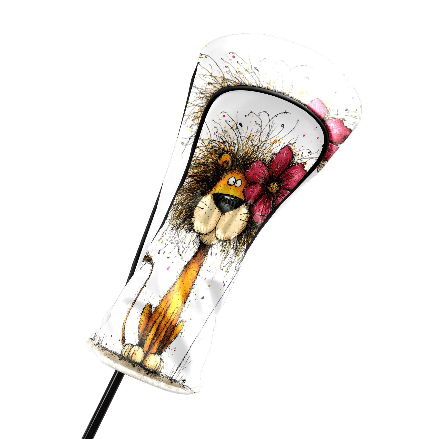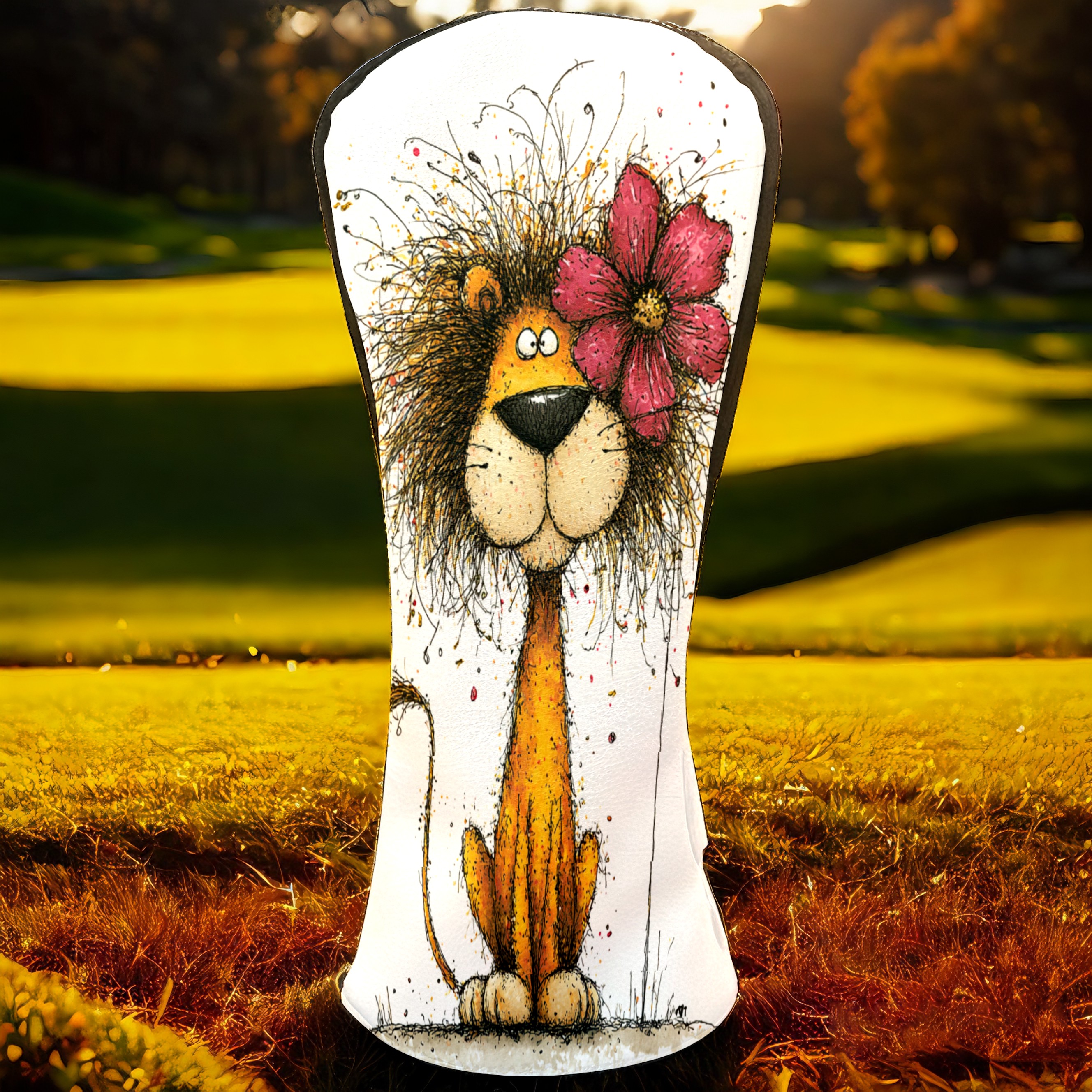 Golf Club Head Covers Floral Lion Art Style Design for Driver & Hybrid, Waterproof PU Leather with Plush Velvet Lining, Scratch Protection & Secure Fit, Ideal Golf Gift for Men Women