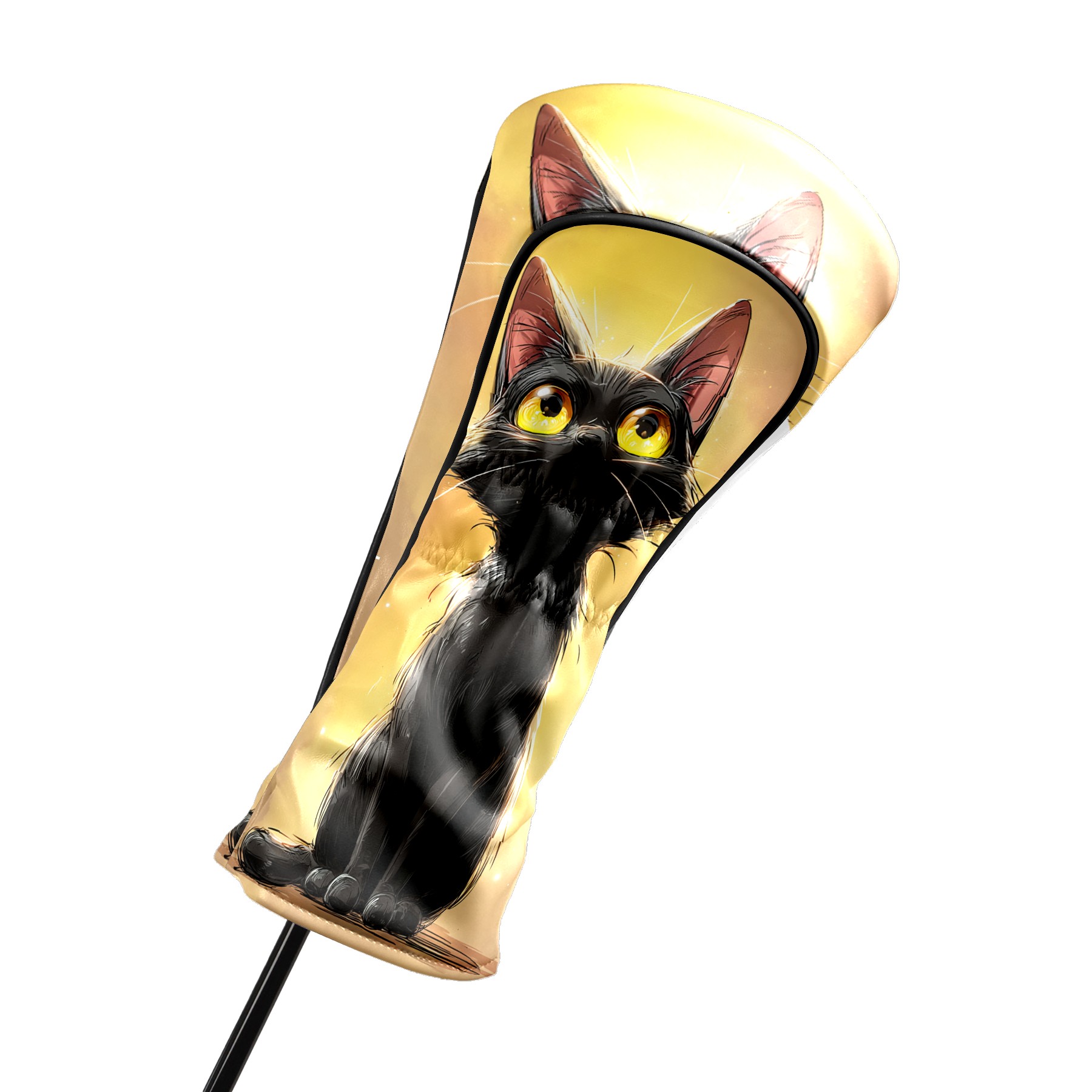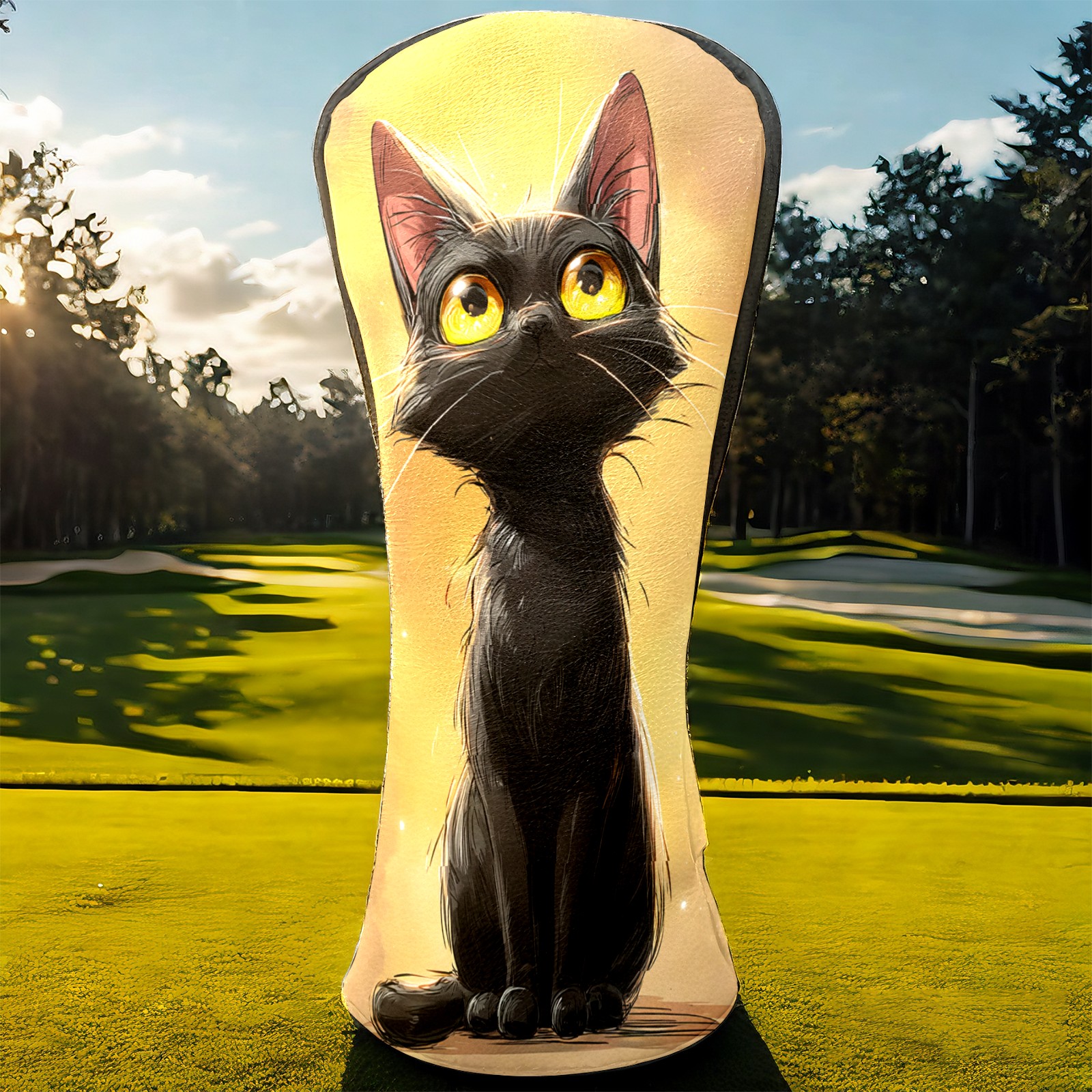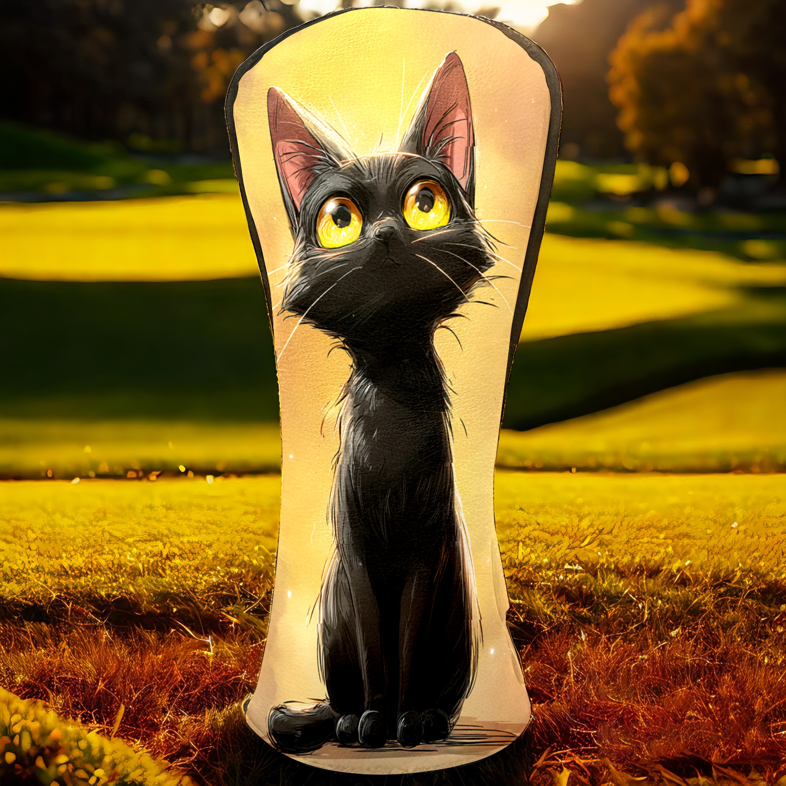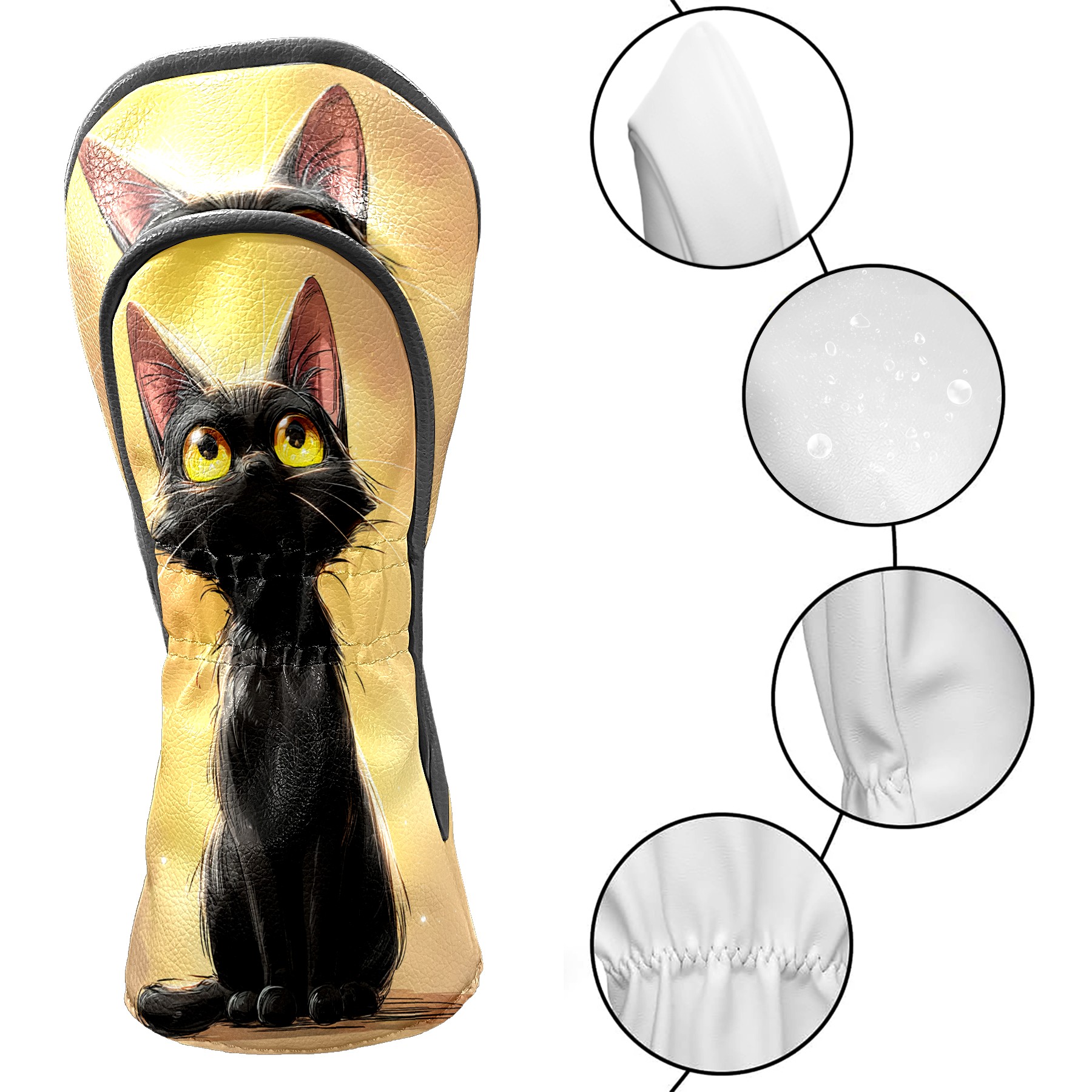 Golf Club Head Covers Realistic Black Cat Warm Light Design for Driver & Hybrid, Waterproof PU Leather with Plush Velvet Lining, Scratch Protection & Secure Fit, Ideal Golf Gift for Men Women