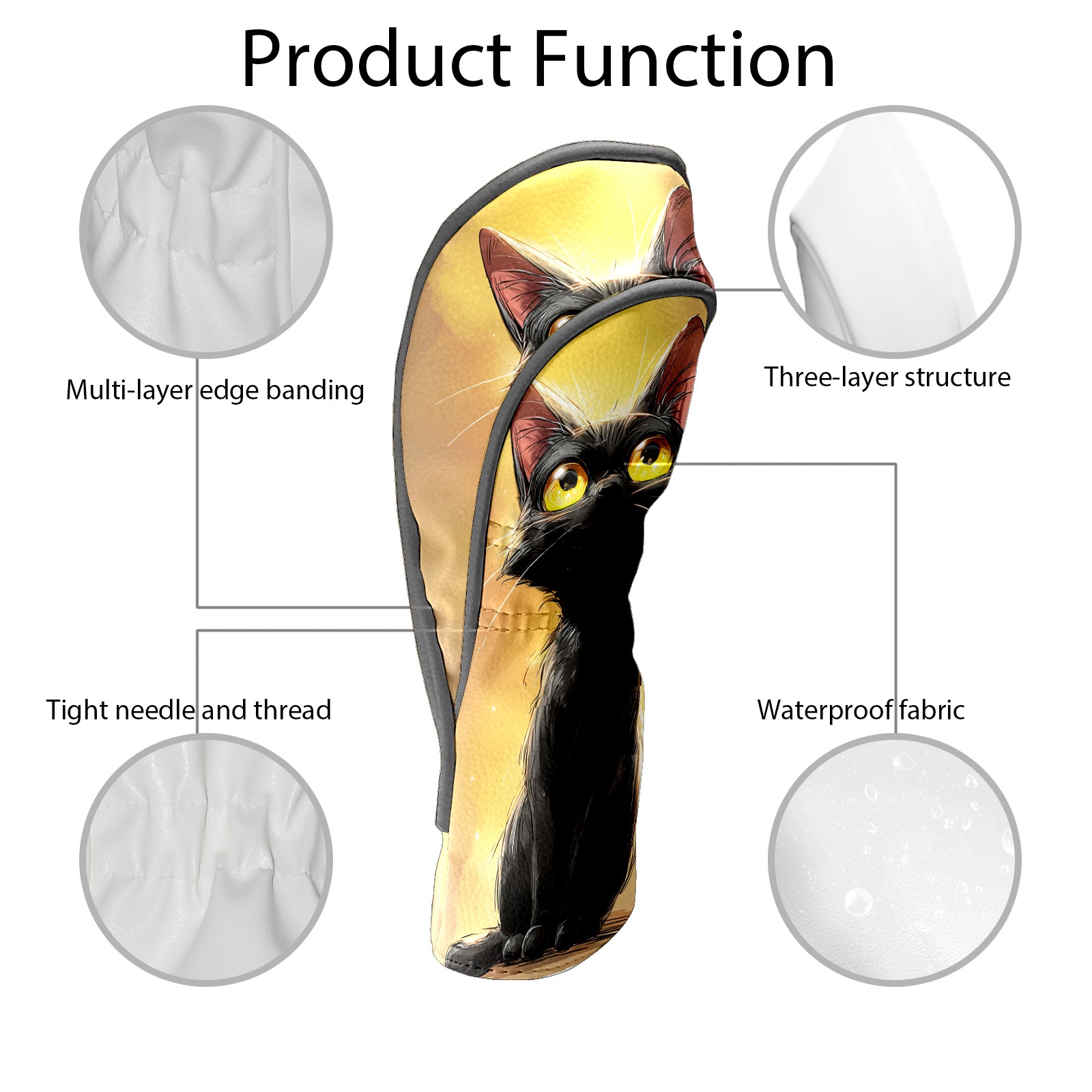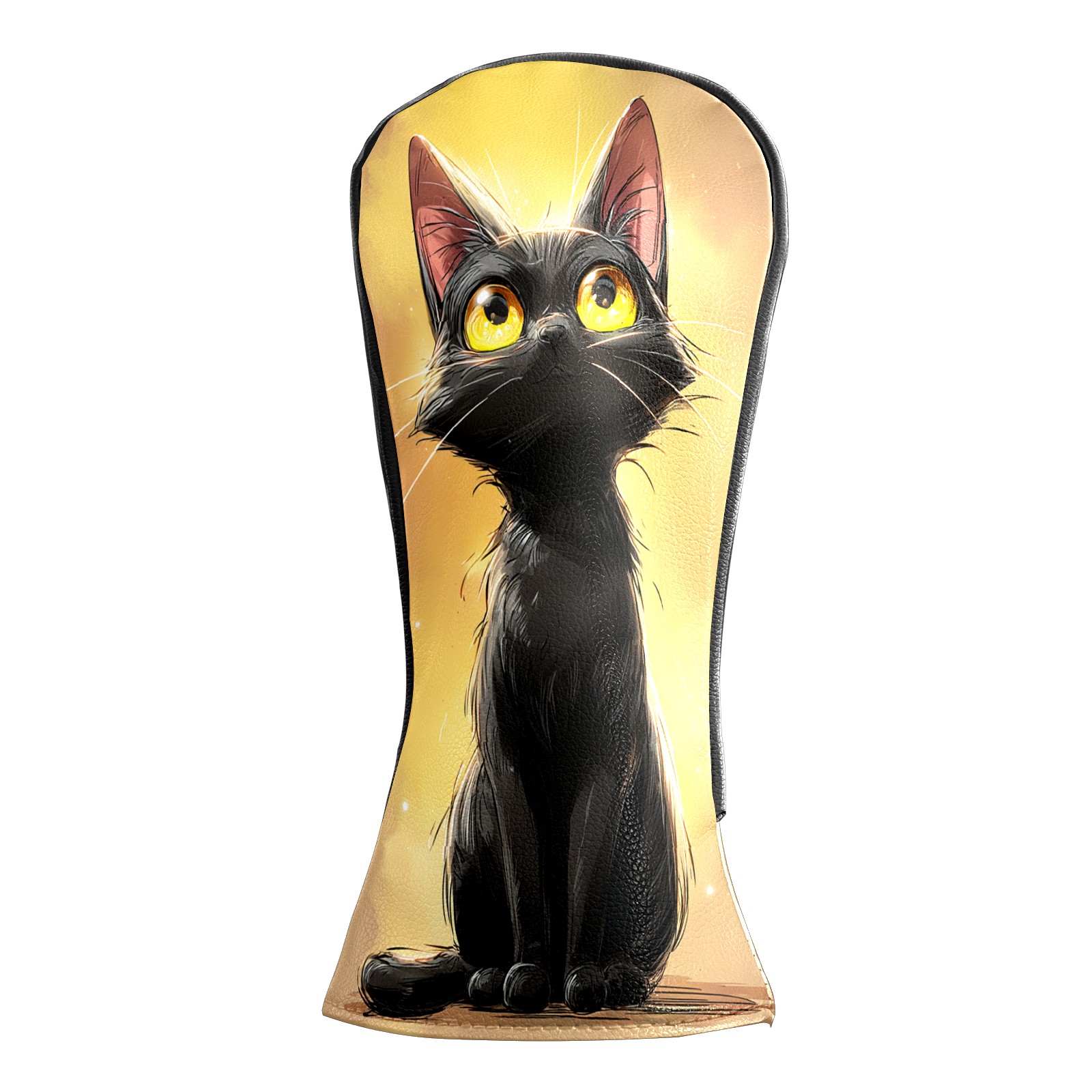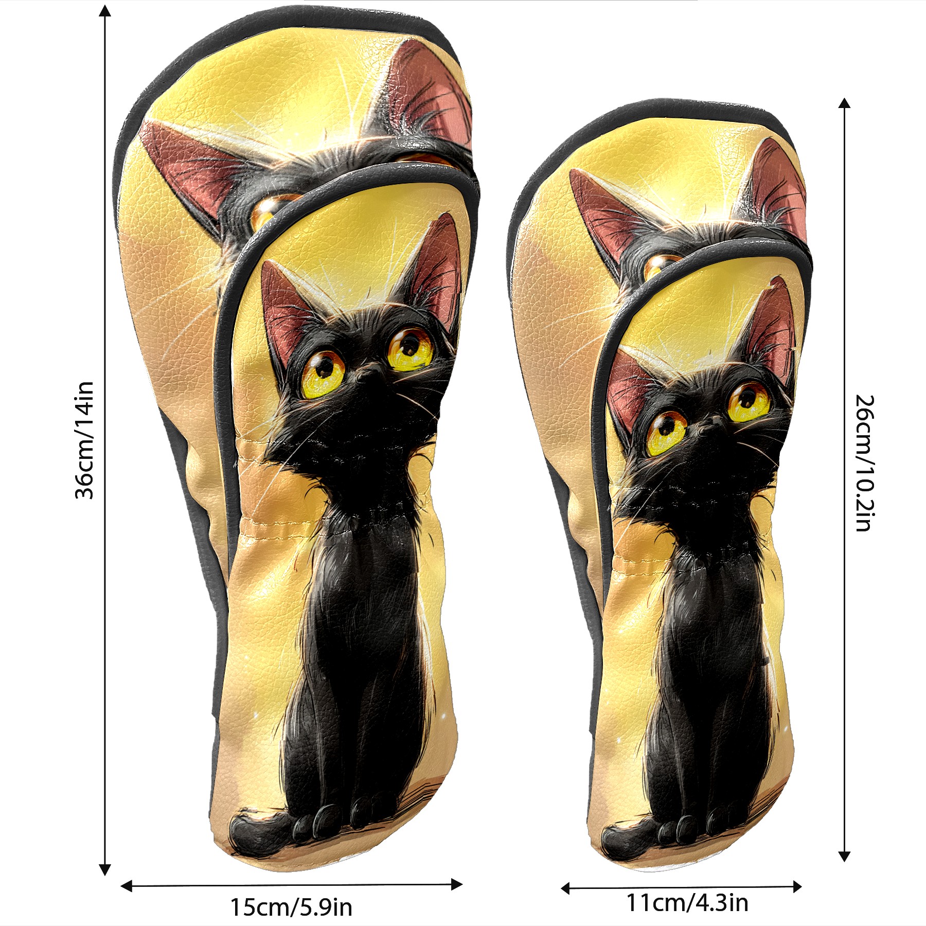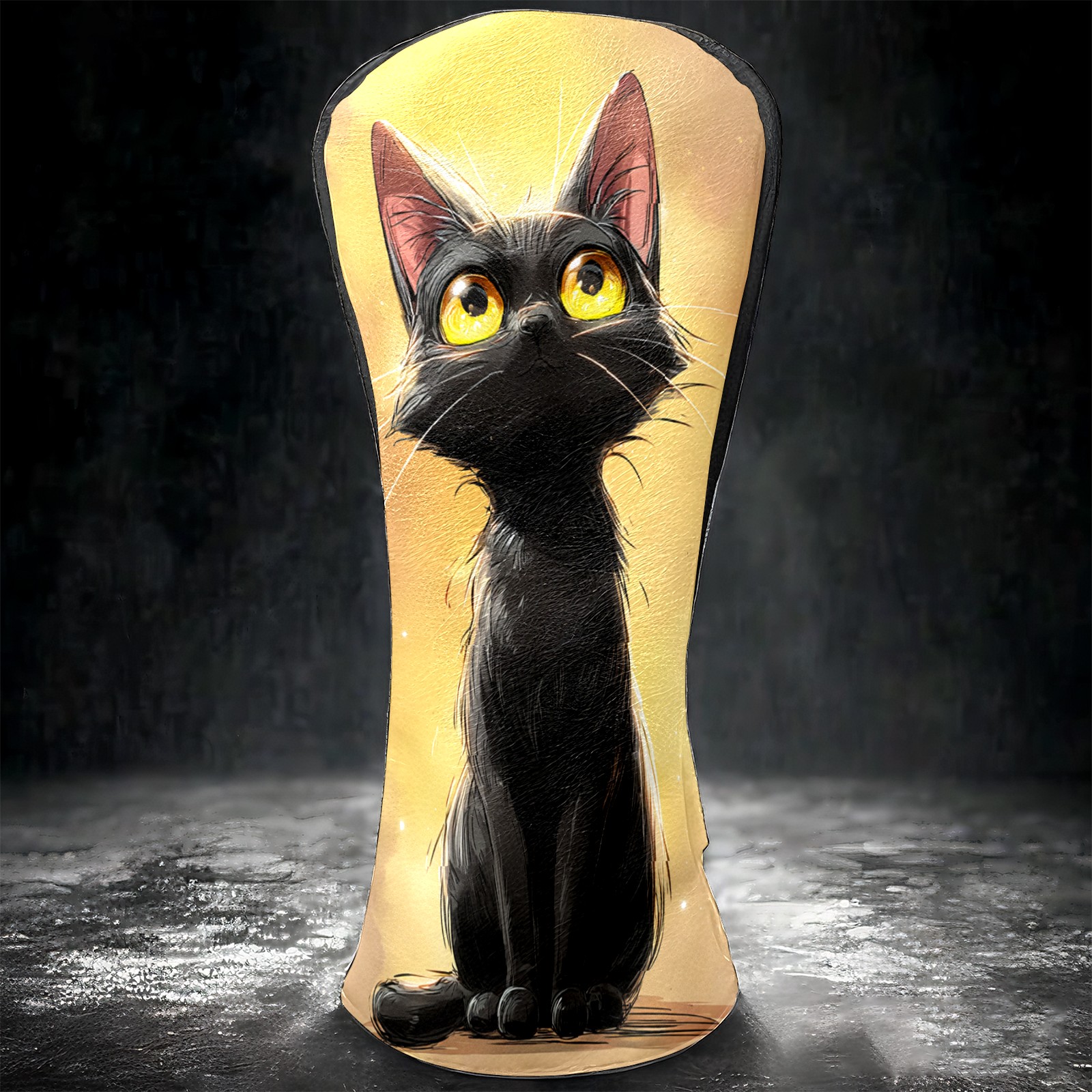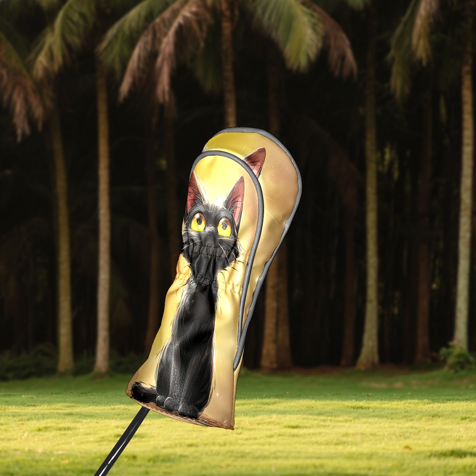 Golf Club Head Covers Realistic Black Cat Warm Light Design for Driver & Hybrid, Waterproof PU Leather with Plush Velvet Lining, Scratch Protection & Secure Fit, Ideal Golf Gift for Men Women