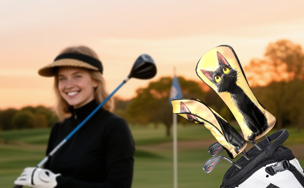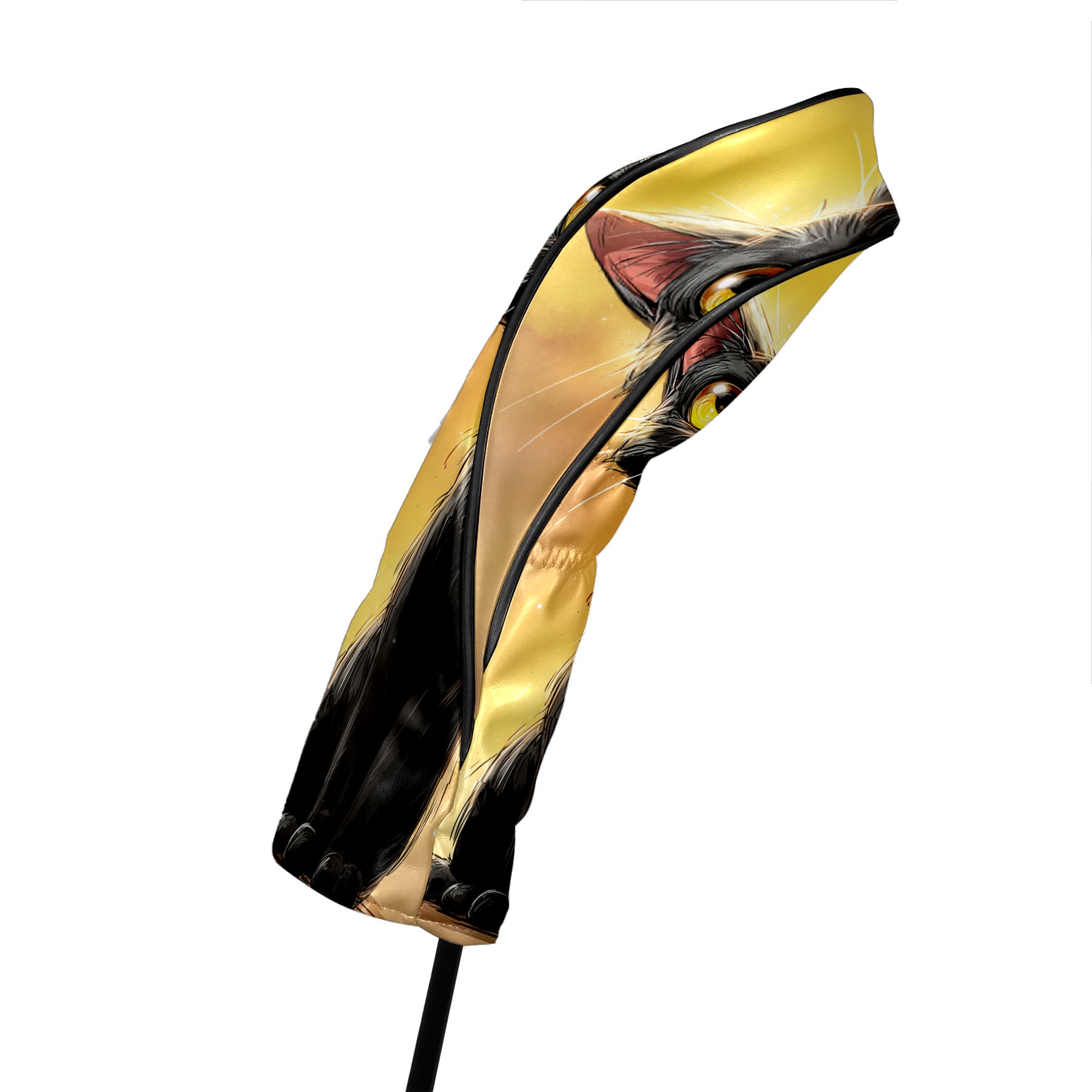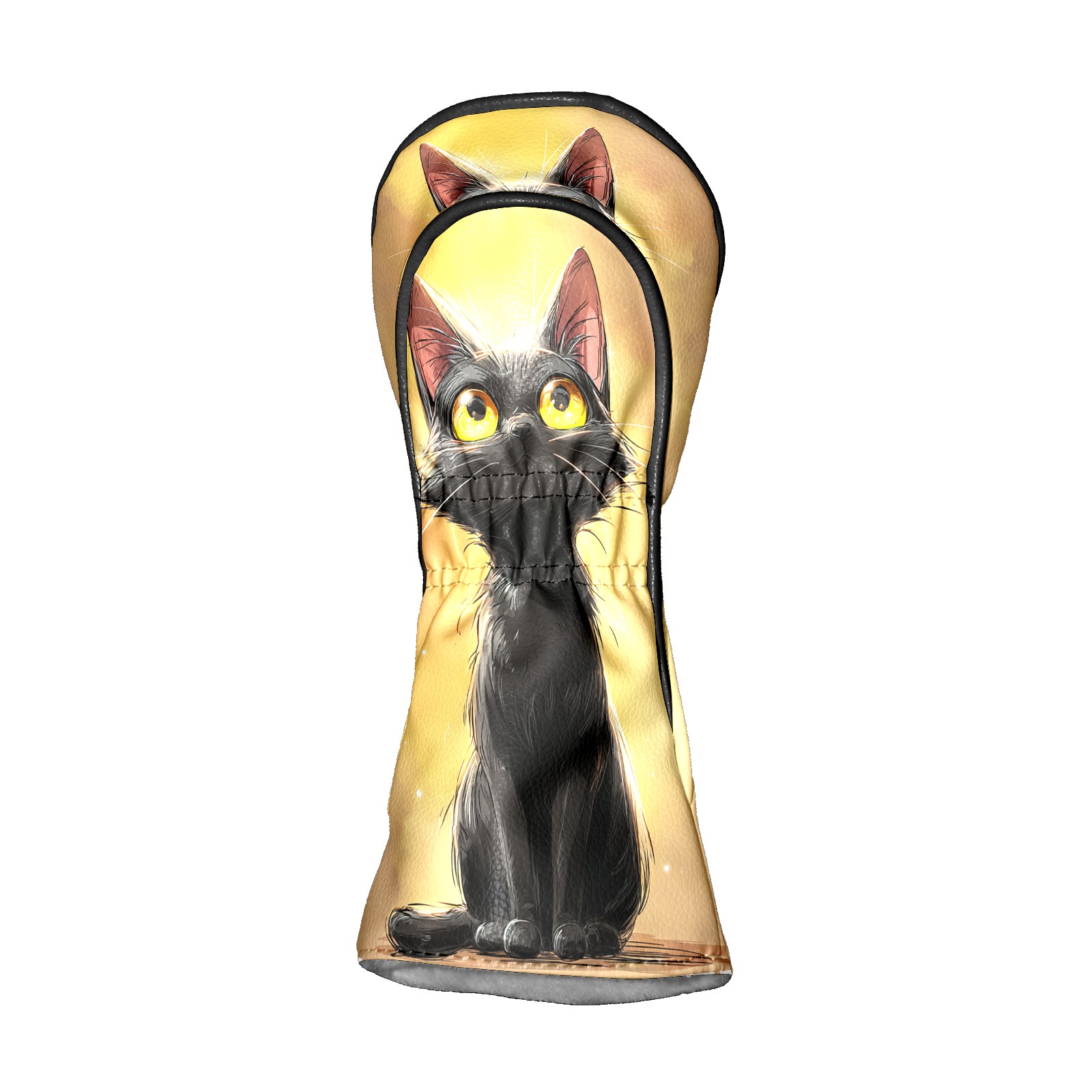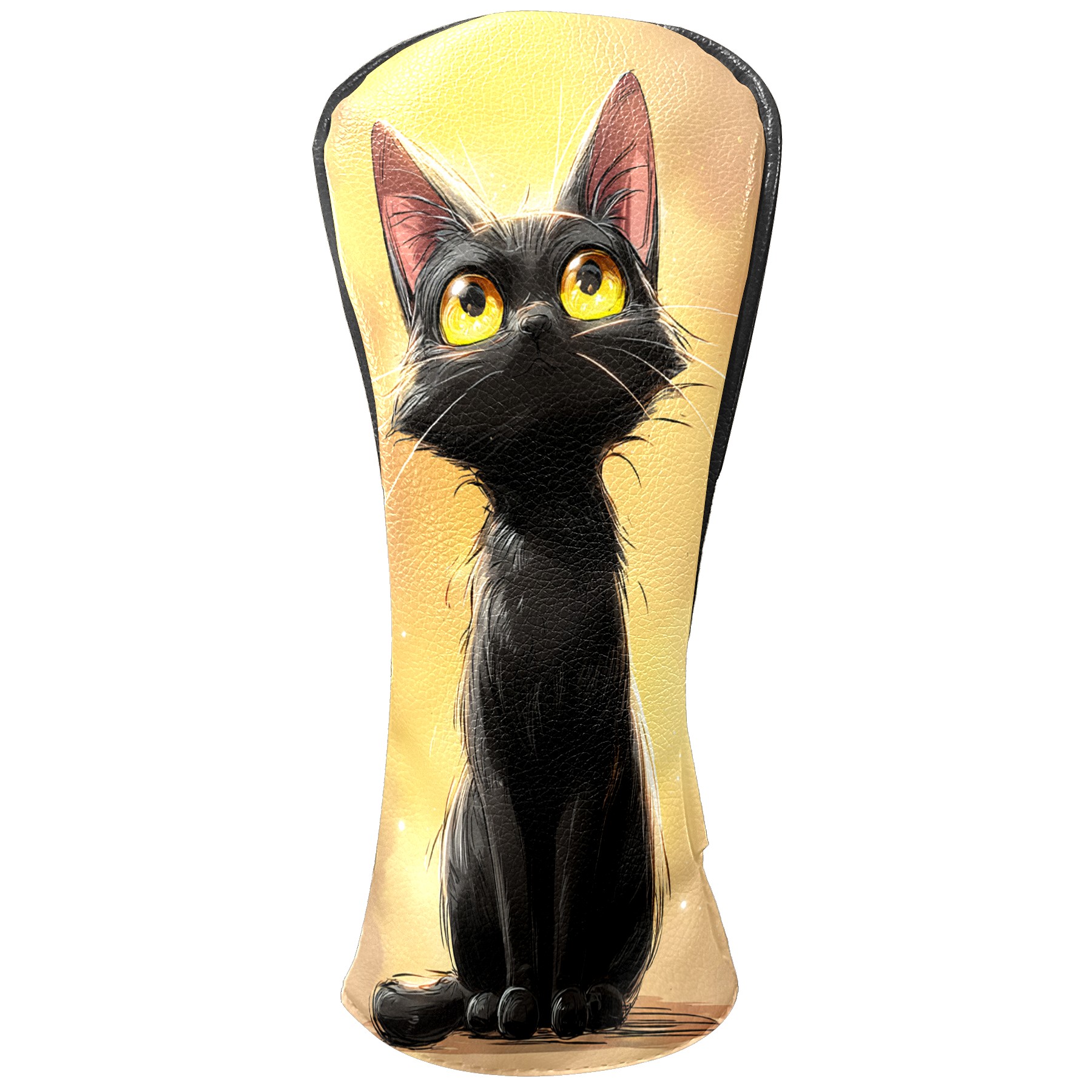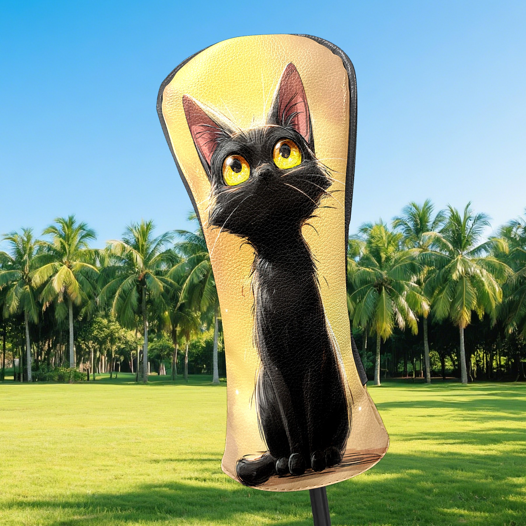 Golf Club Head Covers Realistic Black Cat Warm Light Design for Driver & Hybrid, Waterproof PU Leather with Plush Velvet Lining, Scratch Protection & Secure Fit, Ideal Golf Gift for Men Women