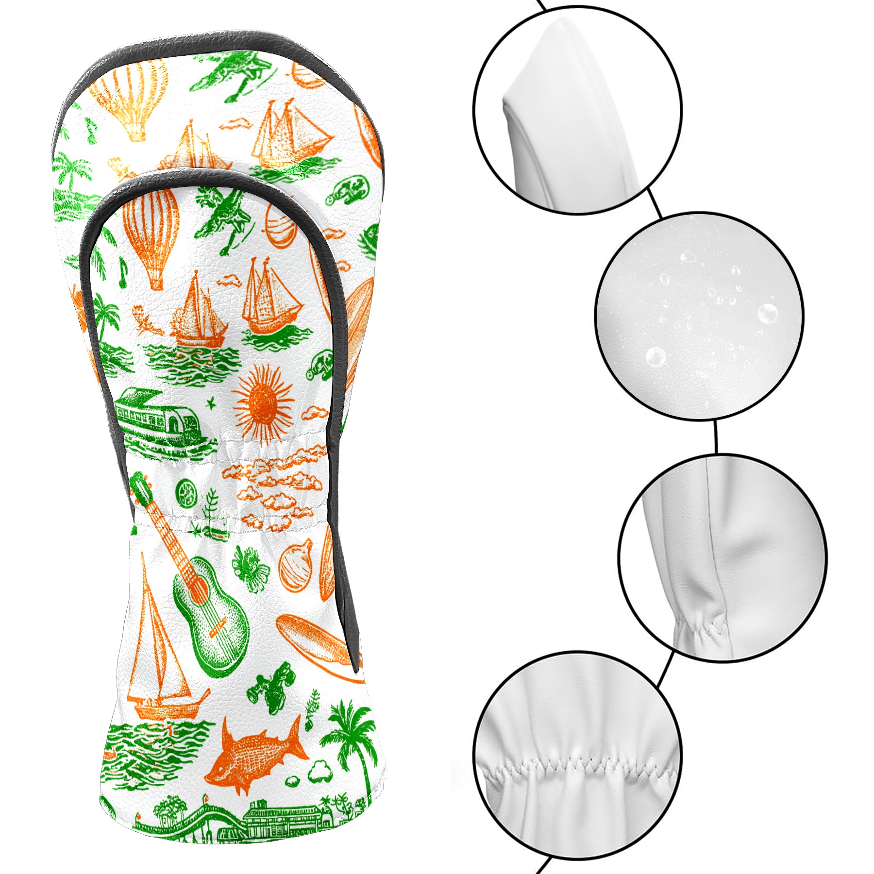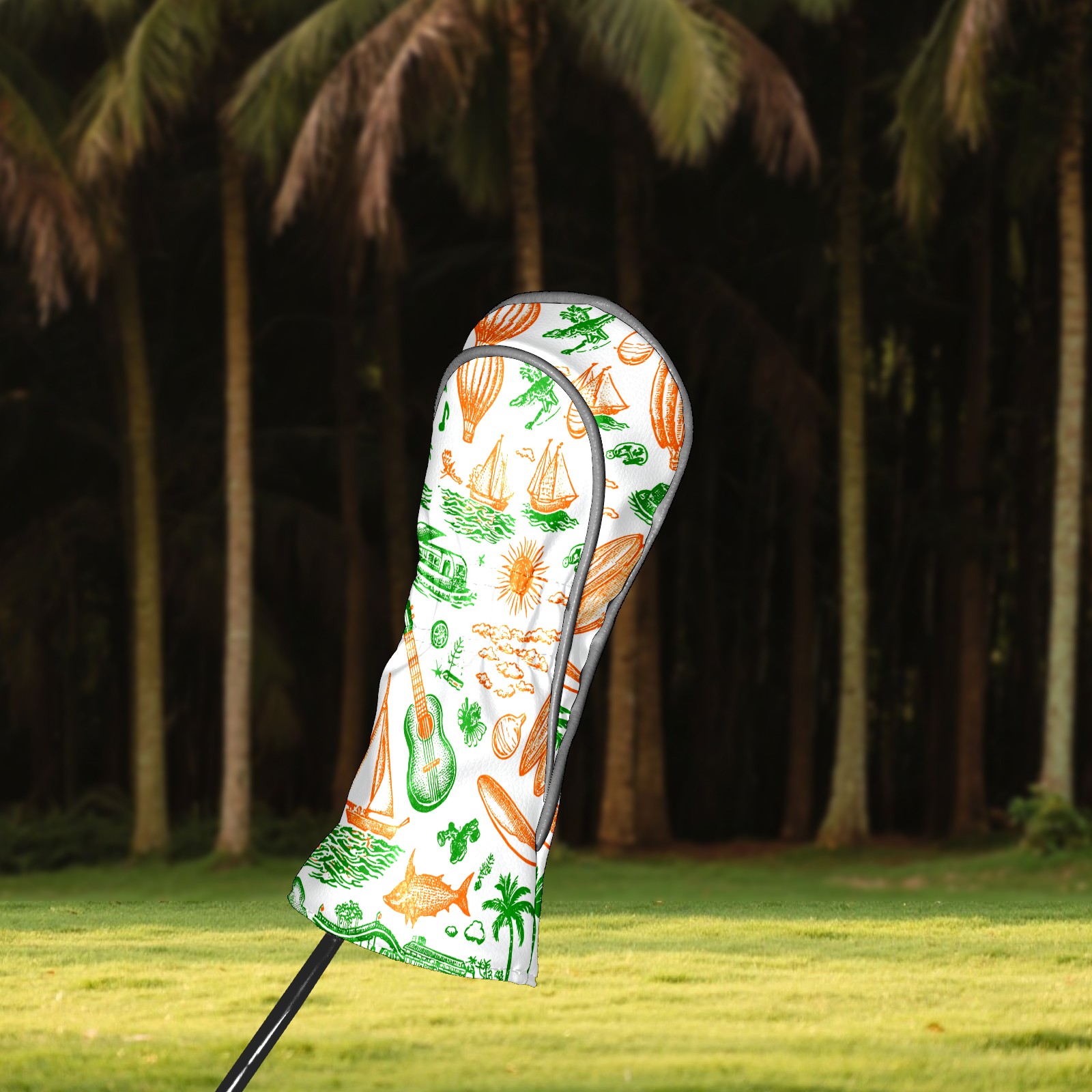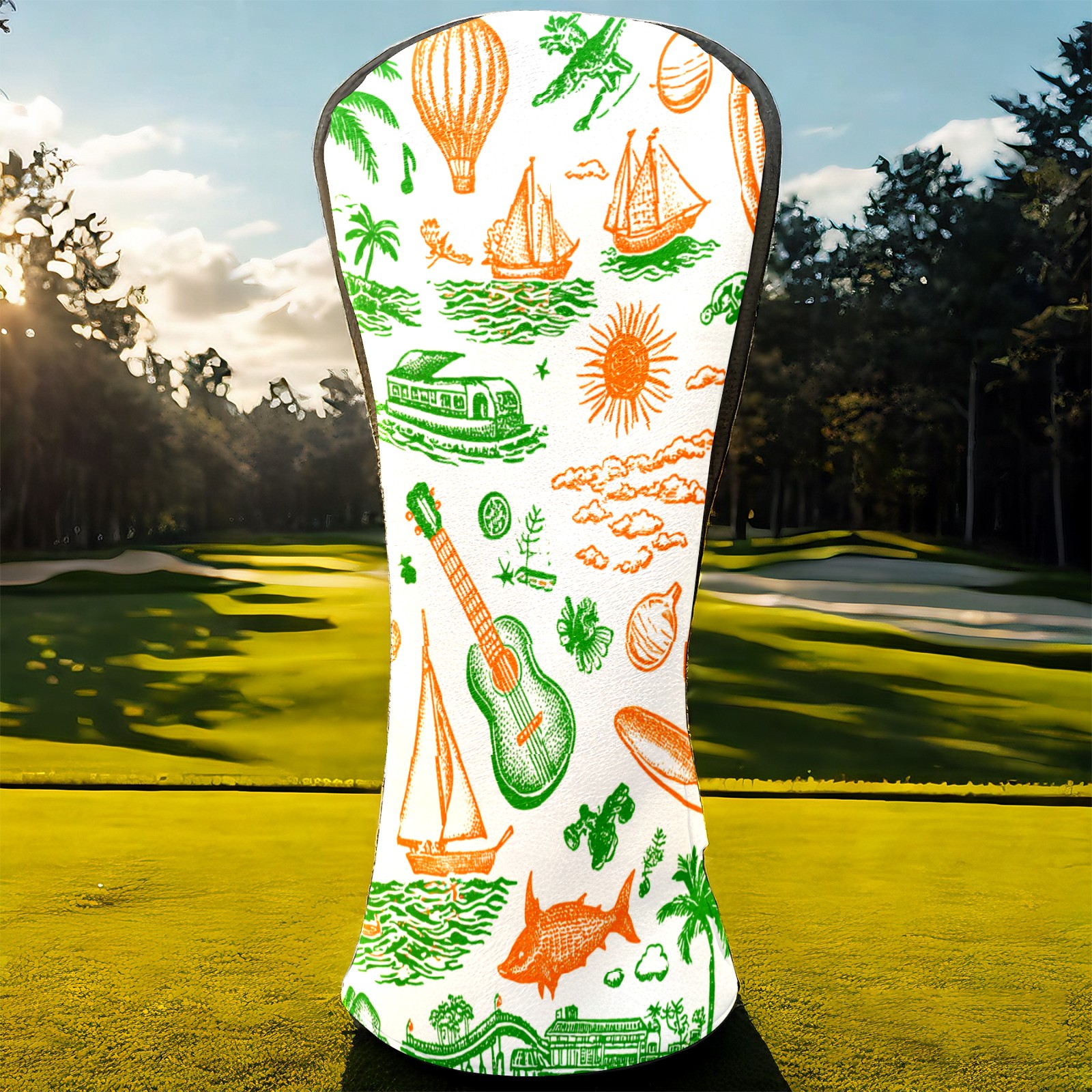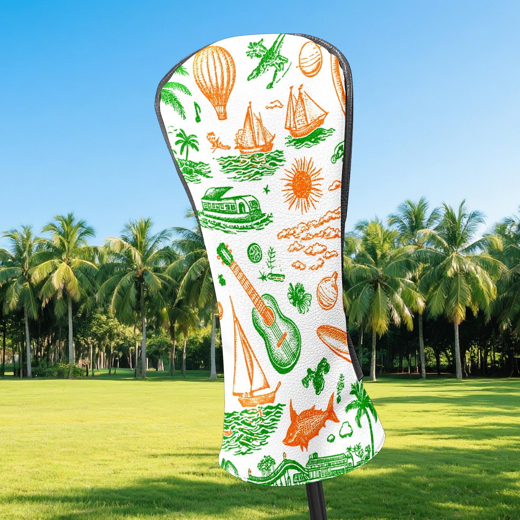 Golf Club Head Covers Green Background Summer Elements Design for Driver & Hybrid, Waterproof PU Leather with Plush Velvet Lining, Scratch Protection & Secure Fit, Ideal Golf Gift for Men Women