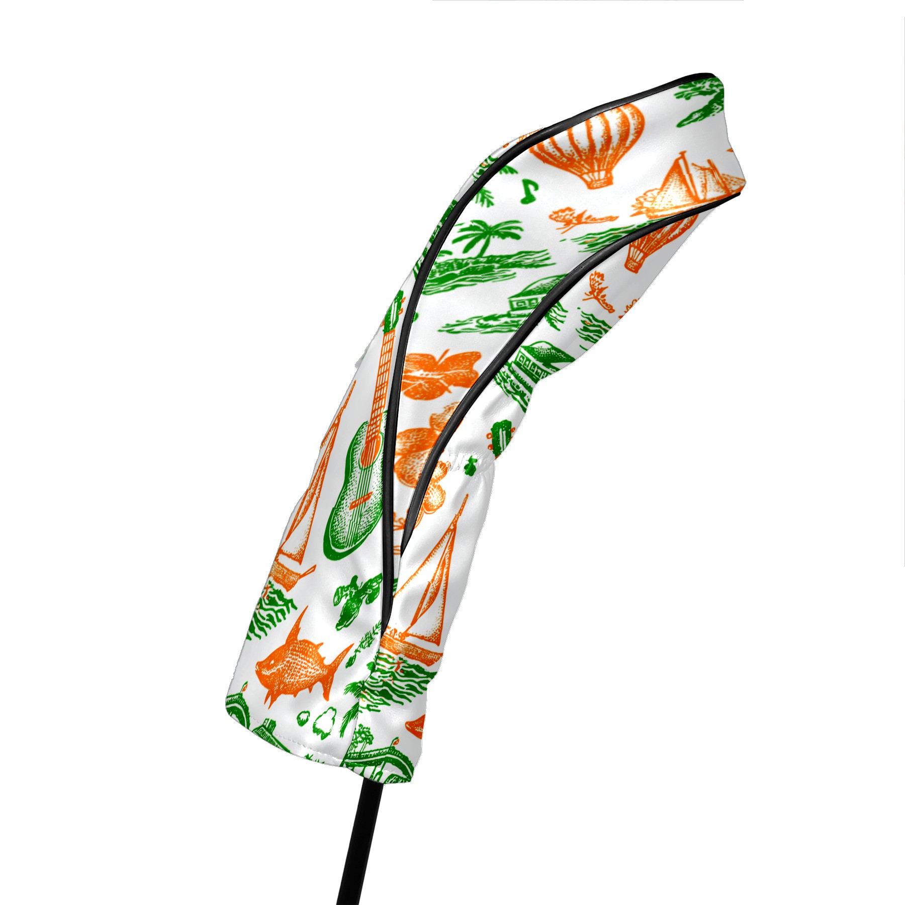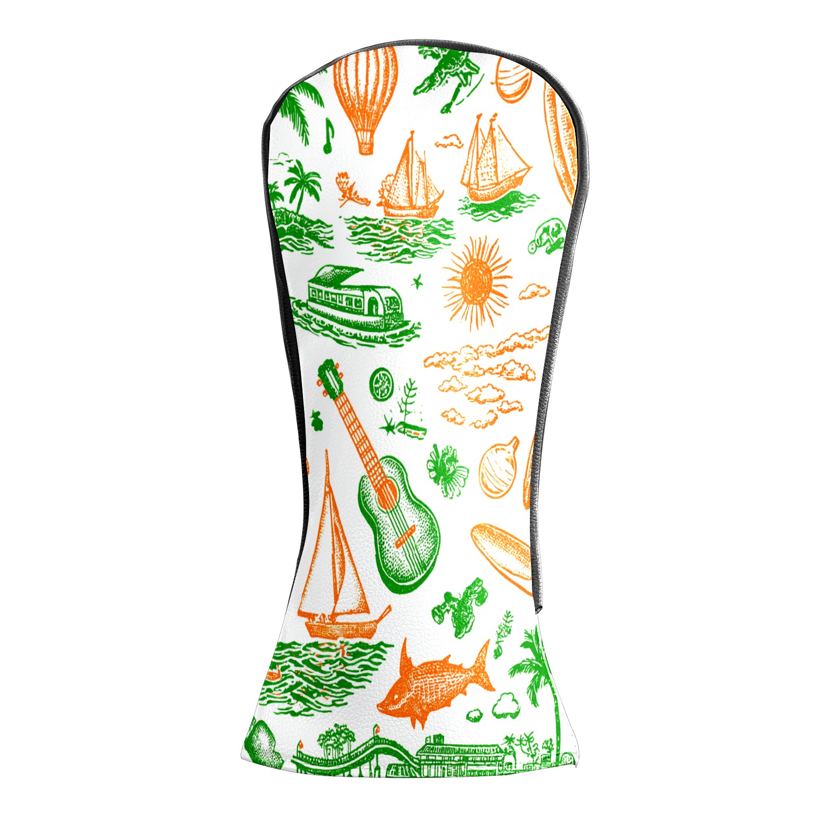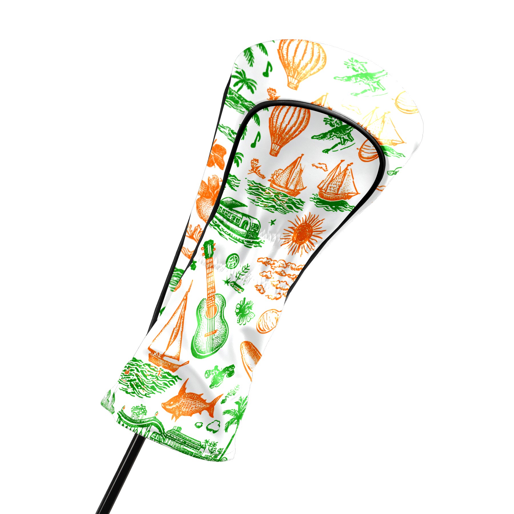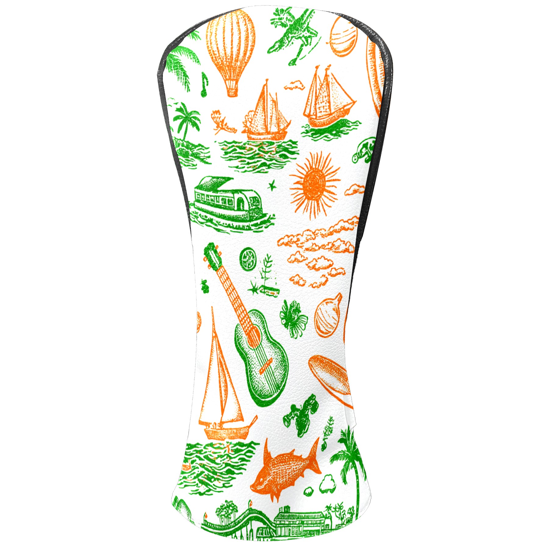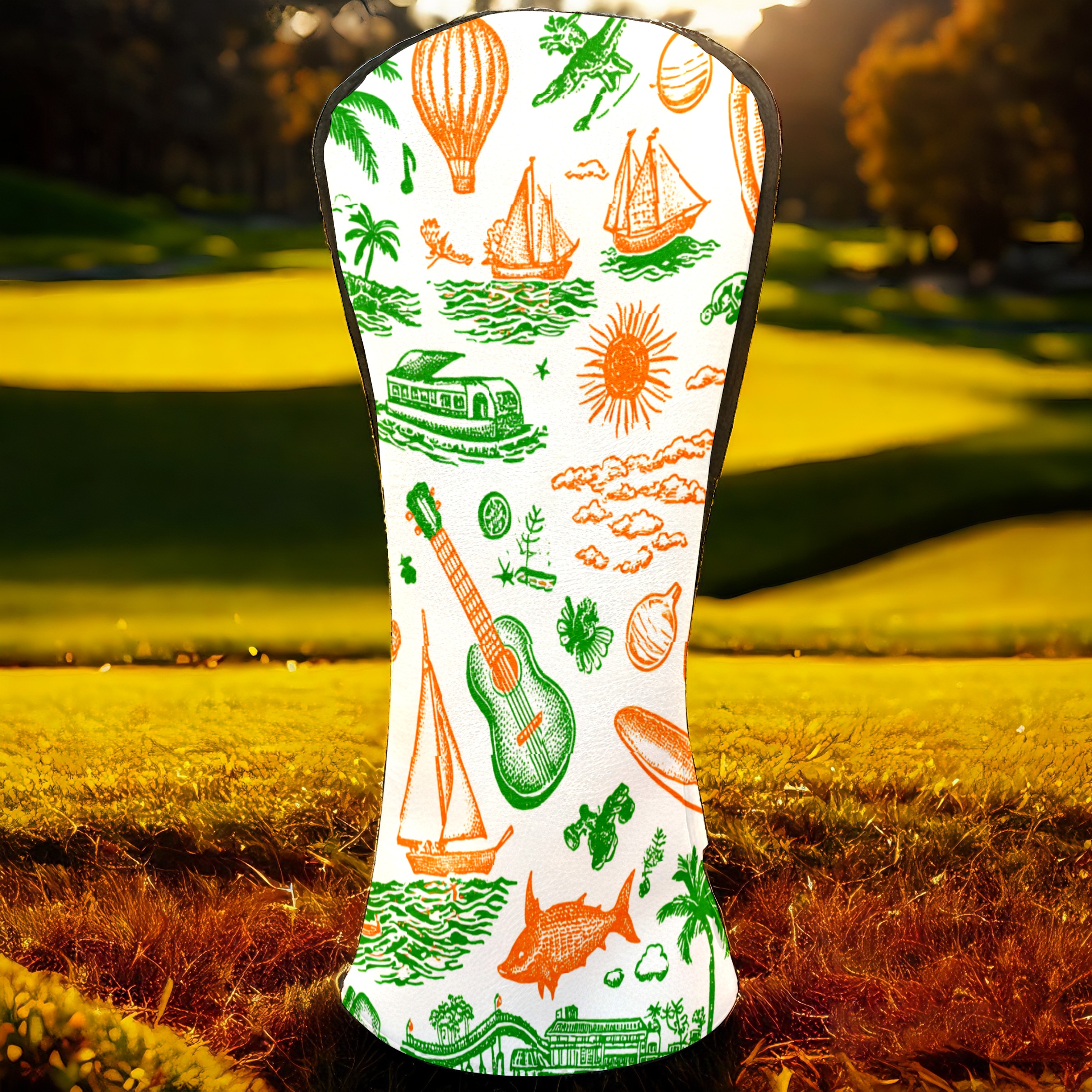Golf Club Head Covers Green Background Summer Elements Design for Driver & Hybrid, Waterproof PU Leather with Plush Velvet Lining, Scratch Protection & Secure Fit, Ideal Golf Gift for Men Women