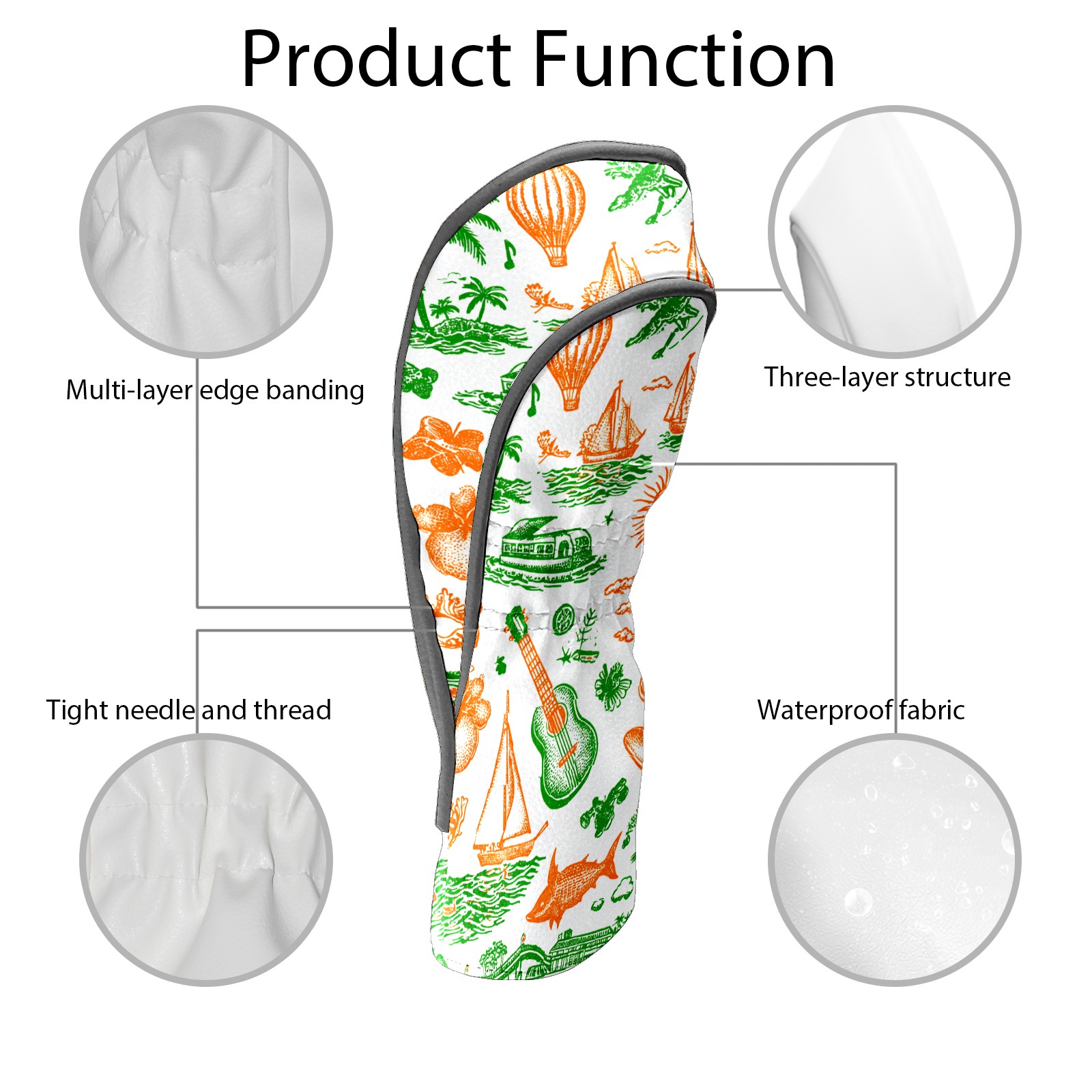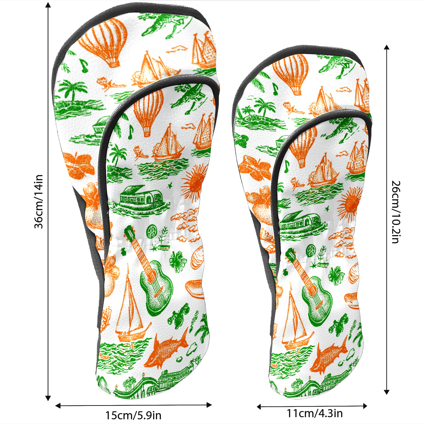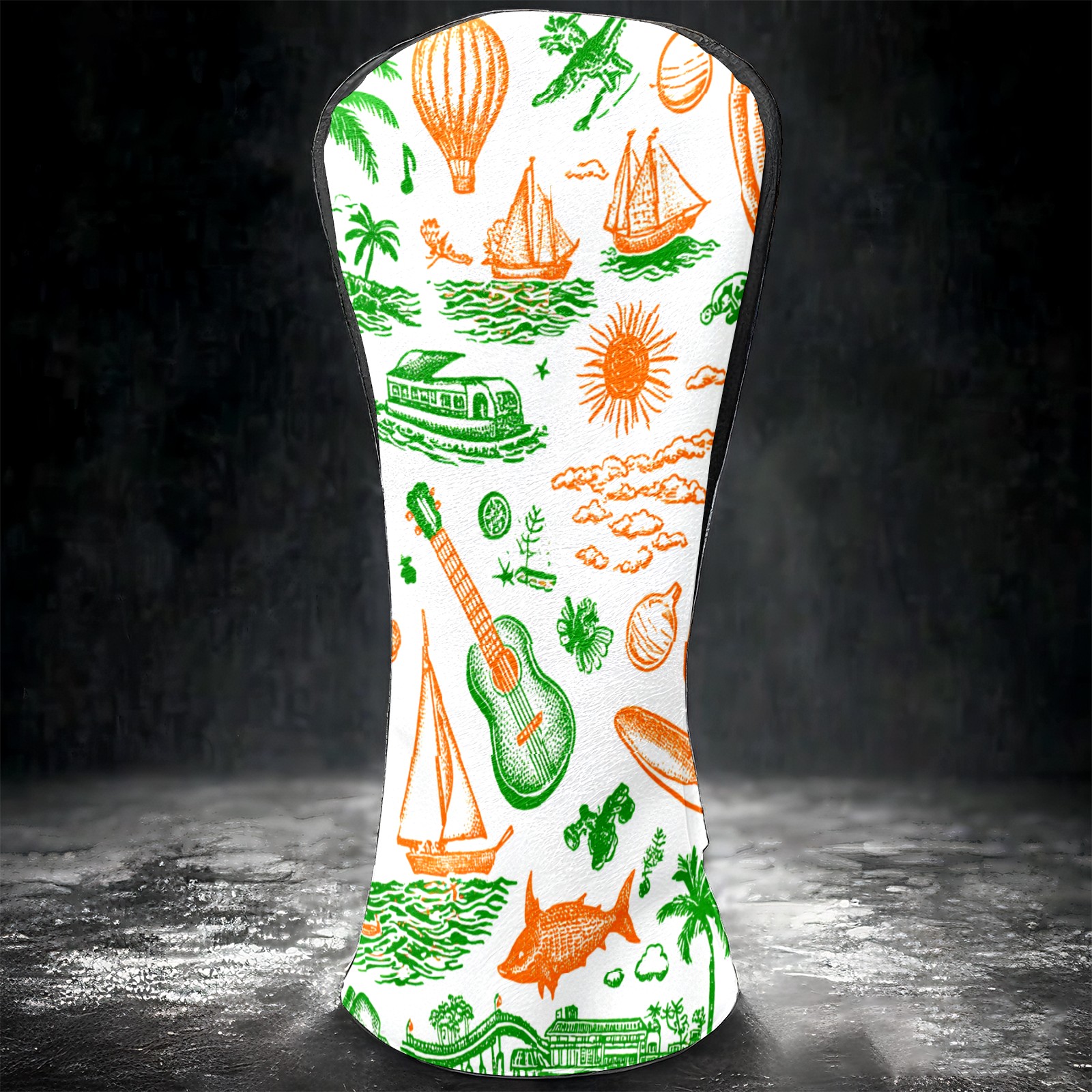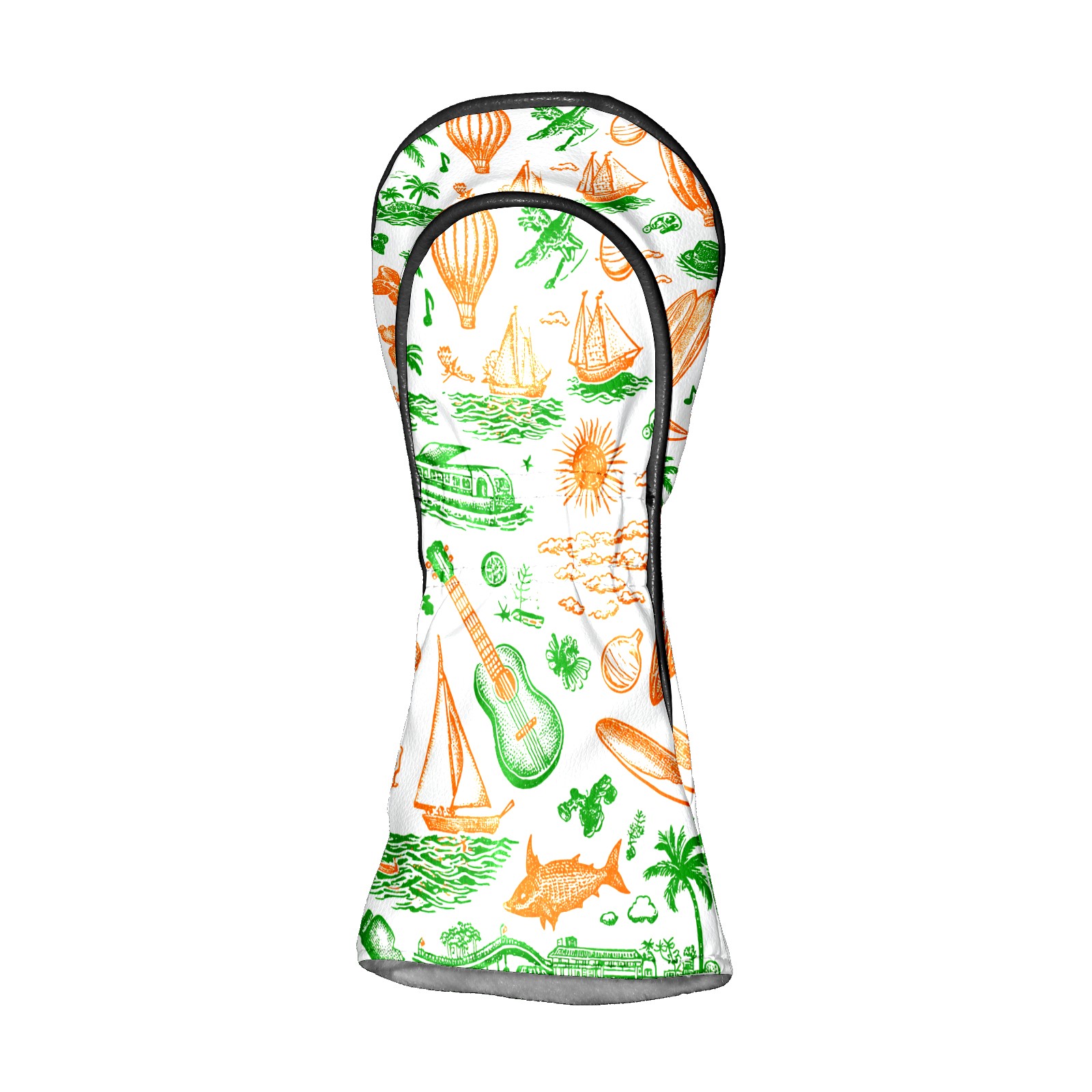 Golf Club Head Covers Green Background Summer Elements Design for Driver & Hybrid, Waterproof PU Leather with Plush Velvet Lining, Scratch Protection & Secure Fit, Ideal Golf Gift for Men Women