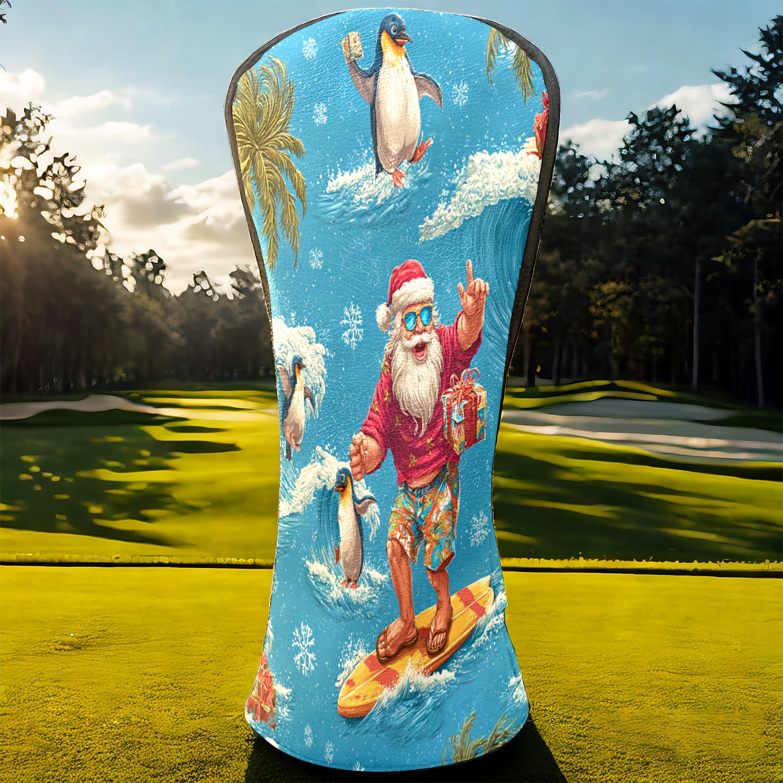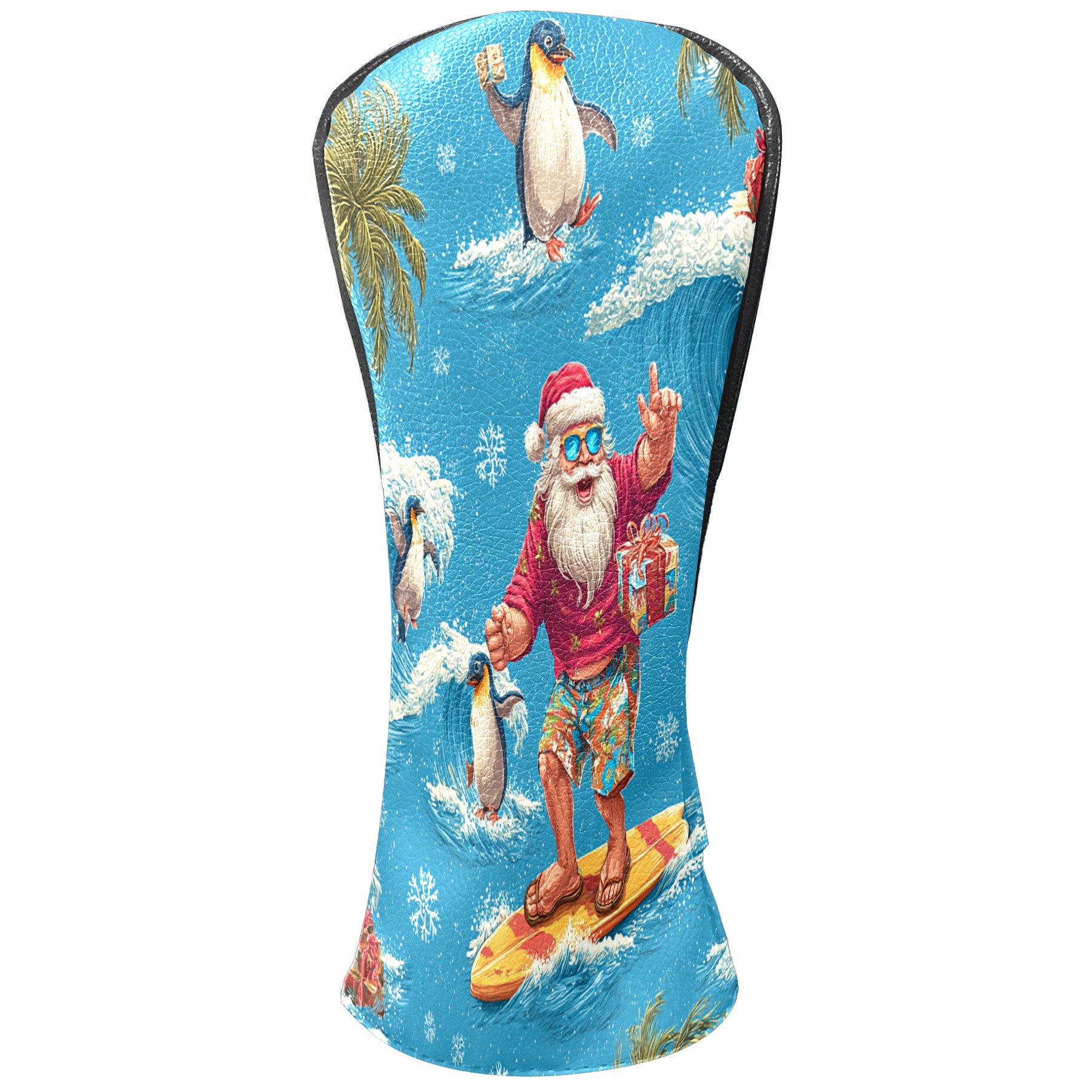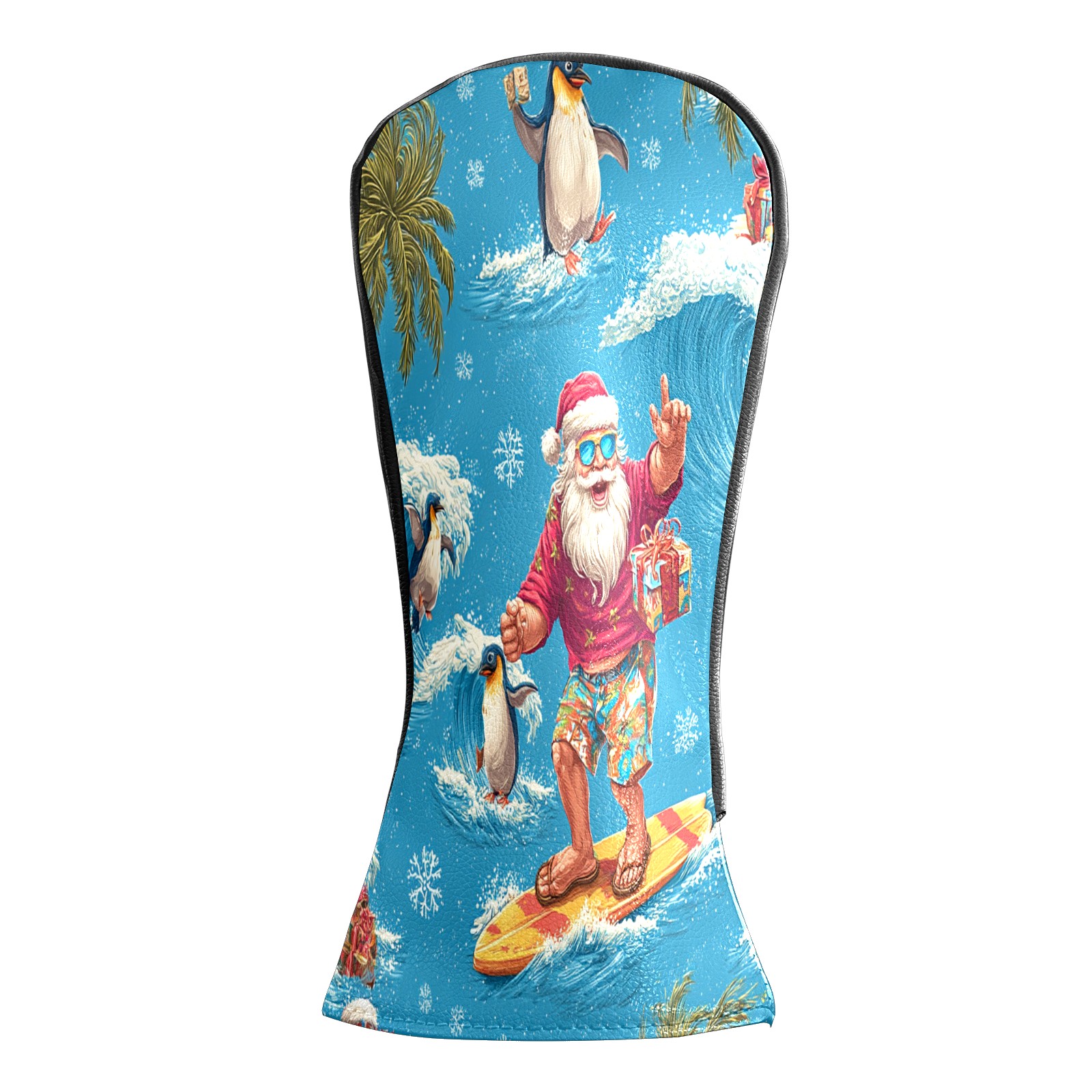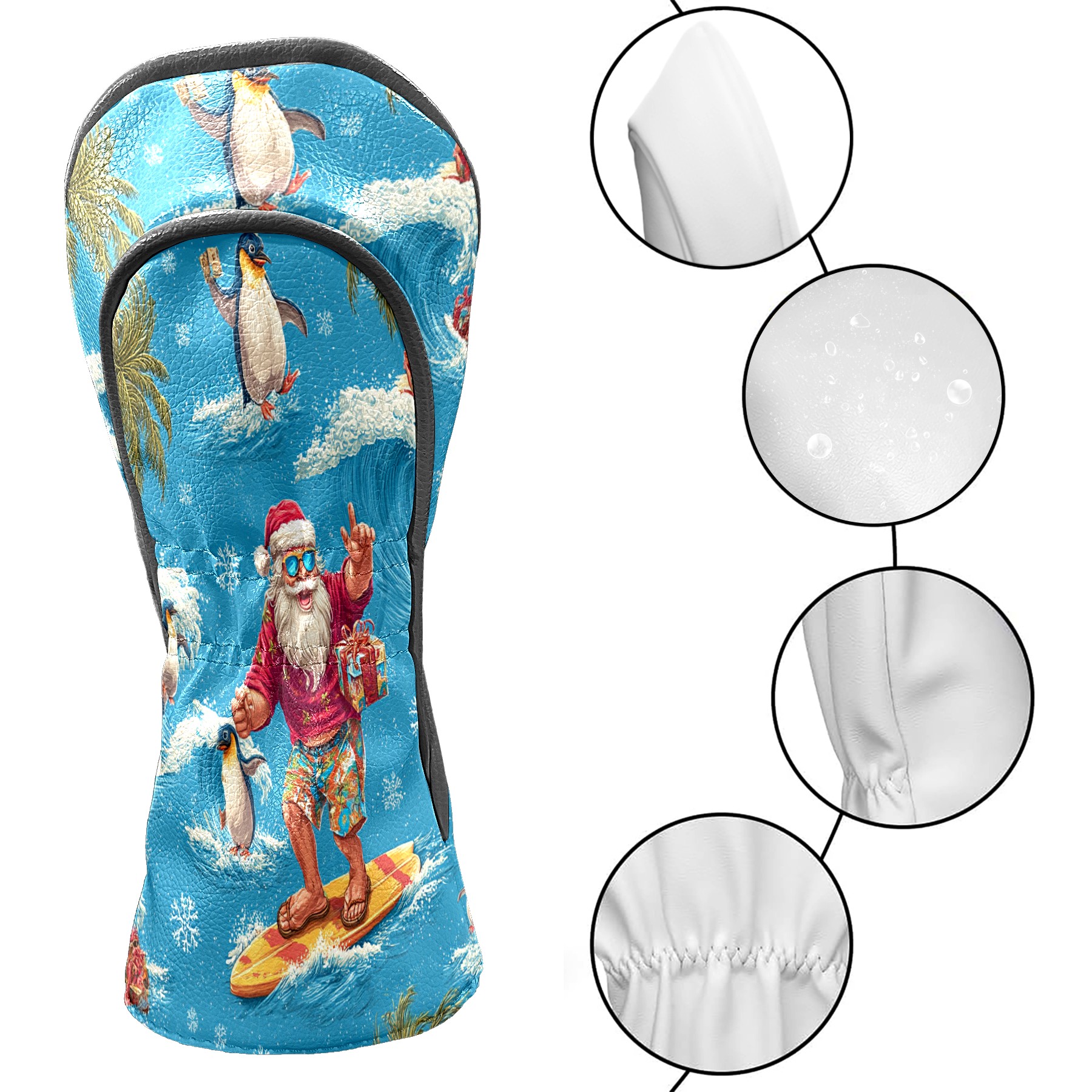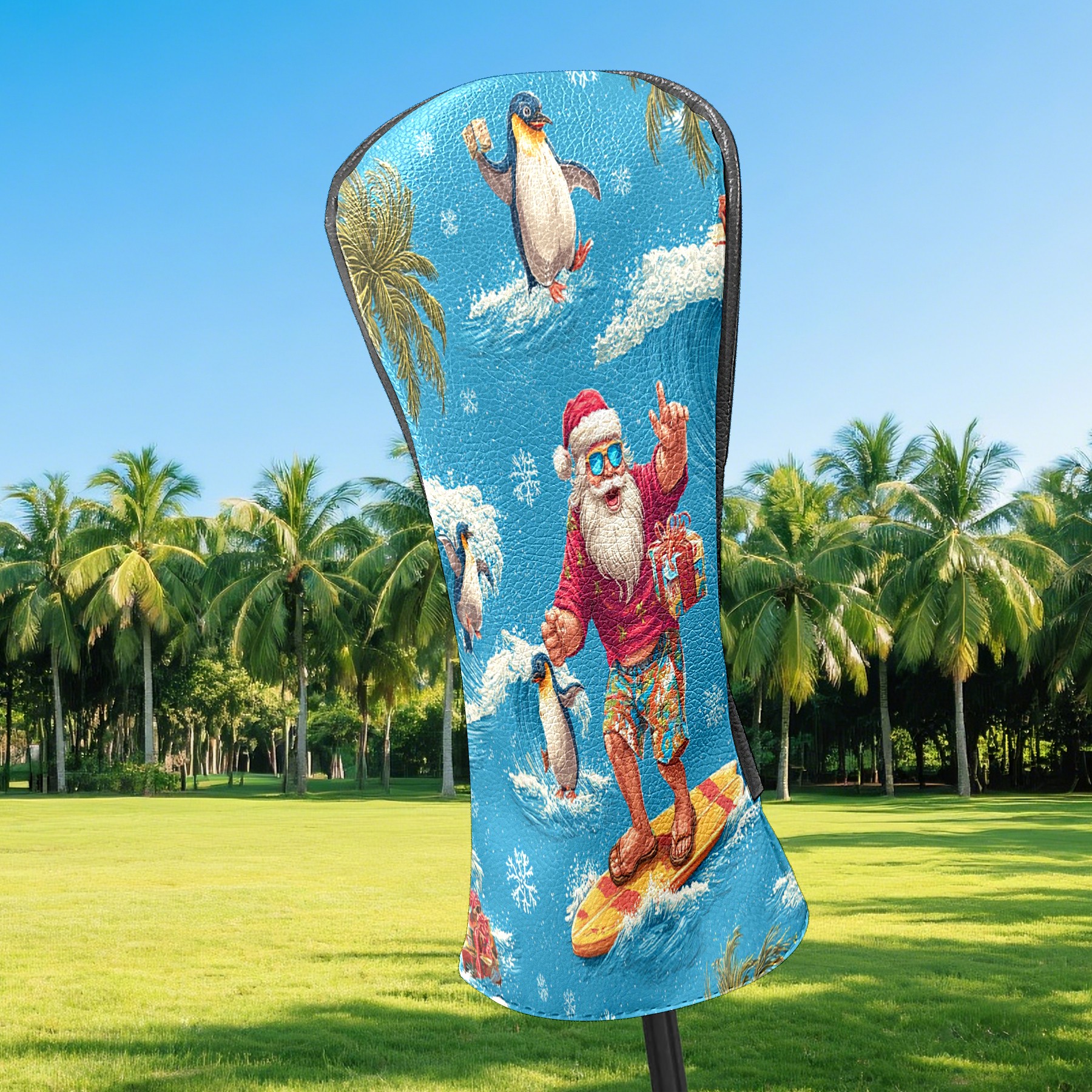 Golf Club Head Covers Santa Penguin Surfing Blue Ocean Design for Driver & Hybrid, Waterproof PU Leather with Plush Velvet Lining, Scratch Protection & Secure Fit, Ideal Golf Gift for Men Women