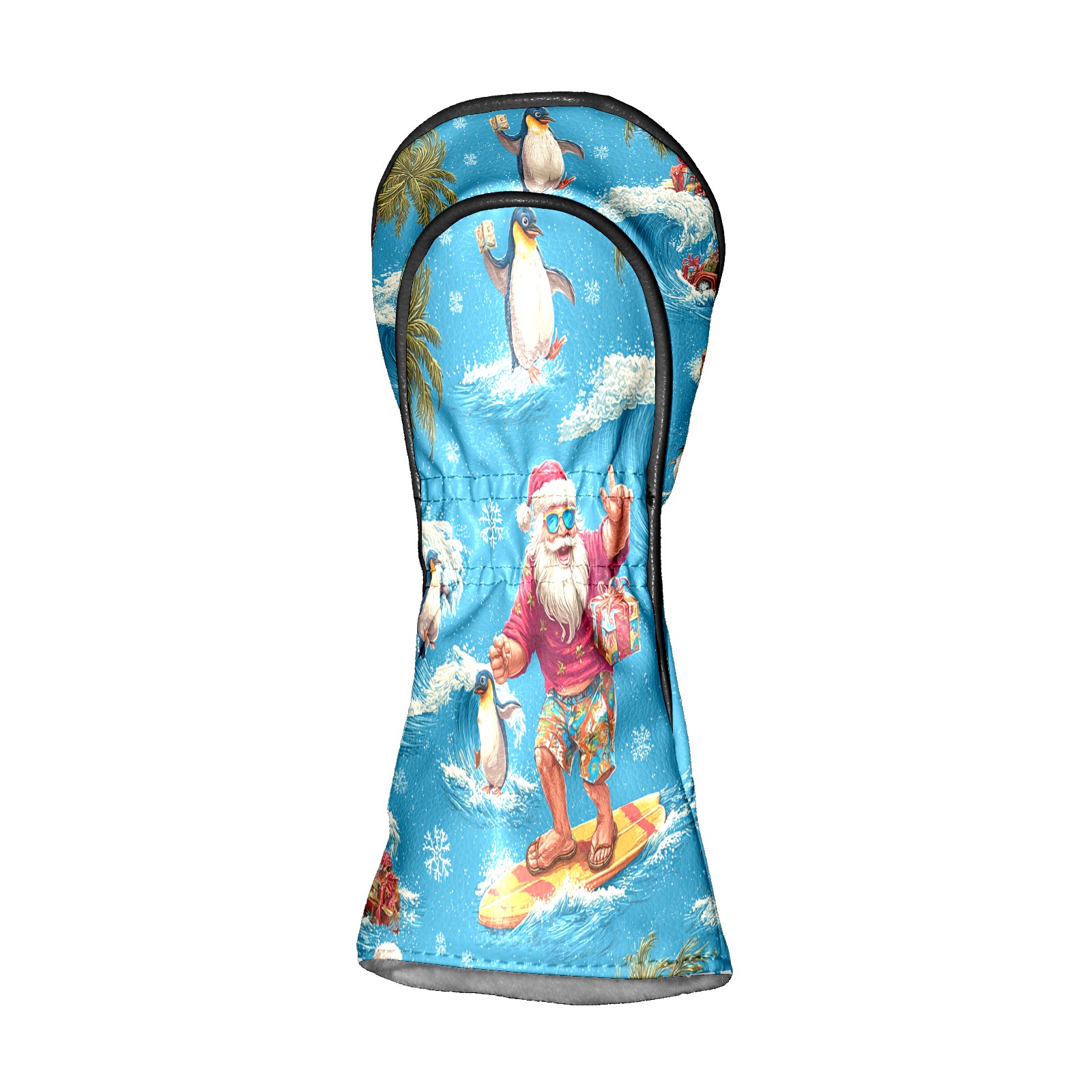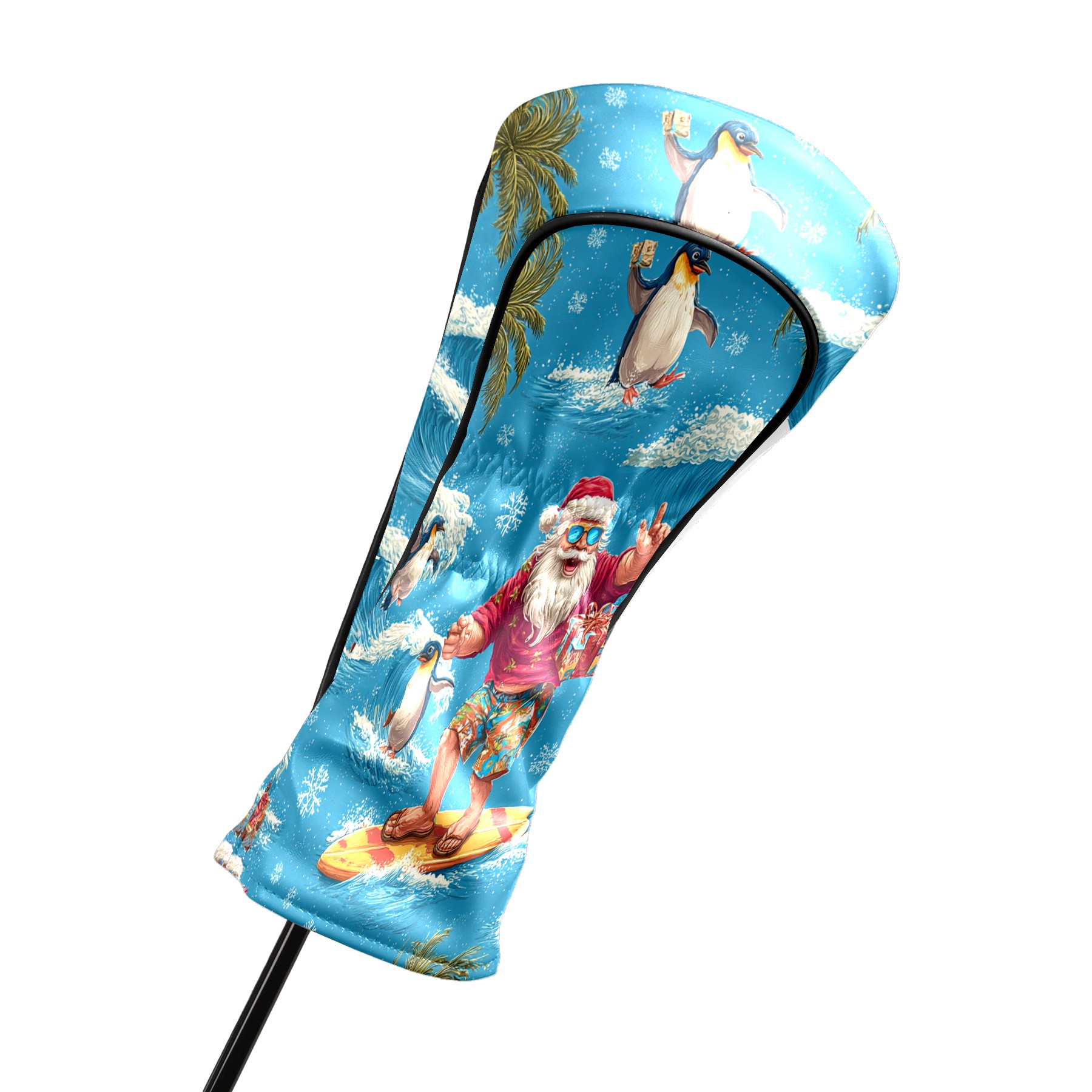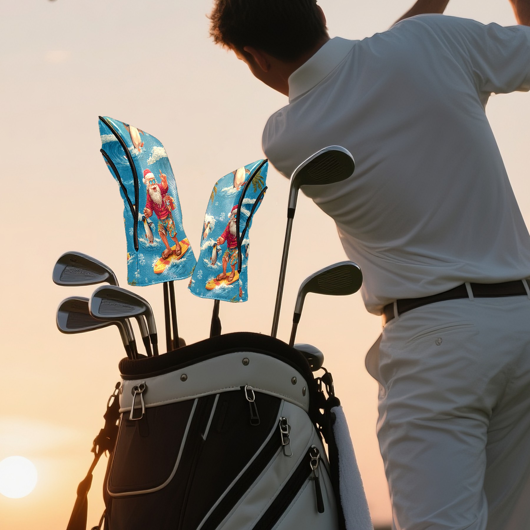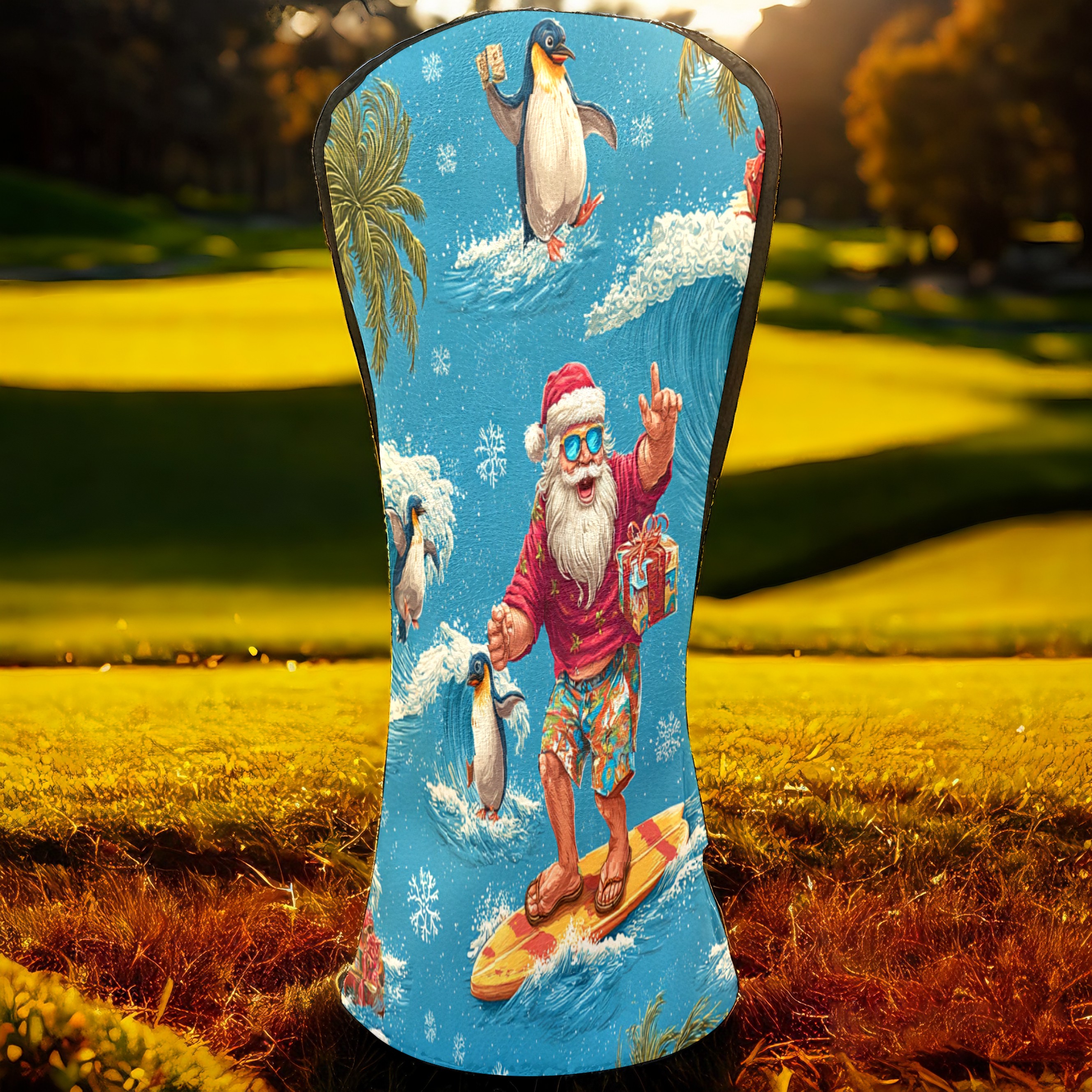 Golf Club Head Covers Santa Penguin Surfing Blue Ocean Design for Driver & Hybrid, Waterproof PU Leather with Plush Velvet Lining, Scratch Protection & Secure Fit, Ideal Golf Gift for Men Women