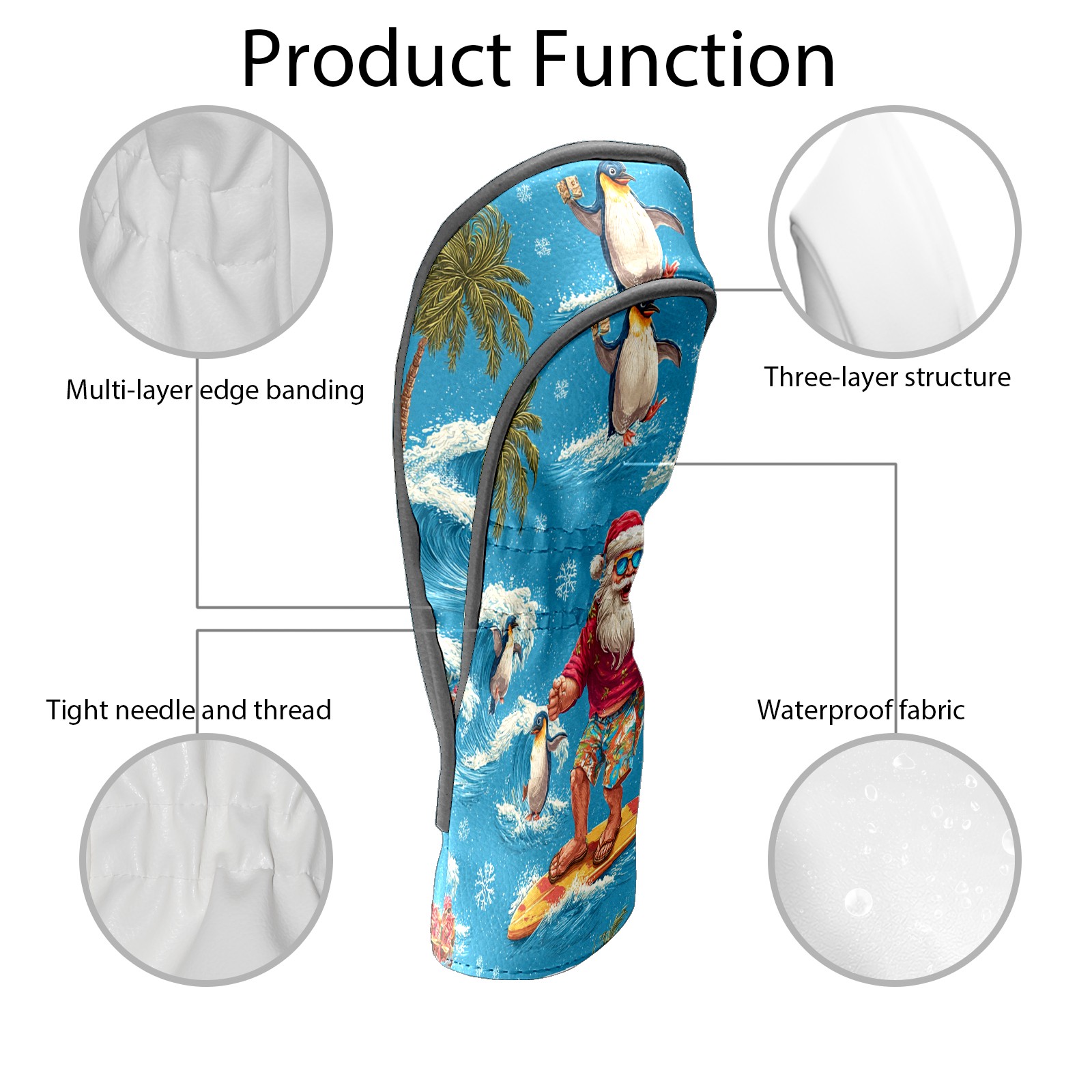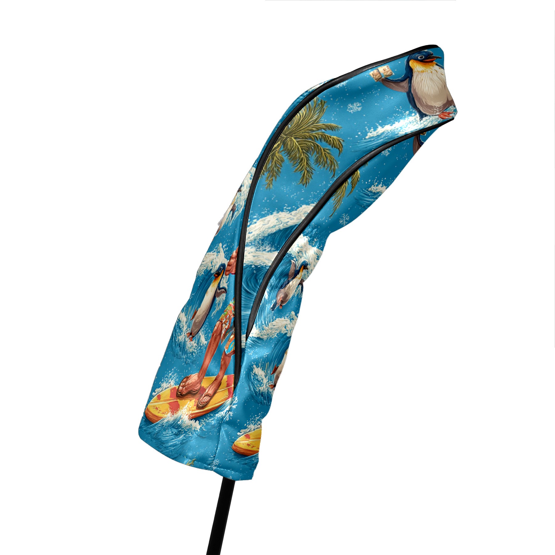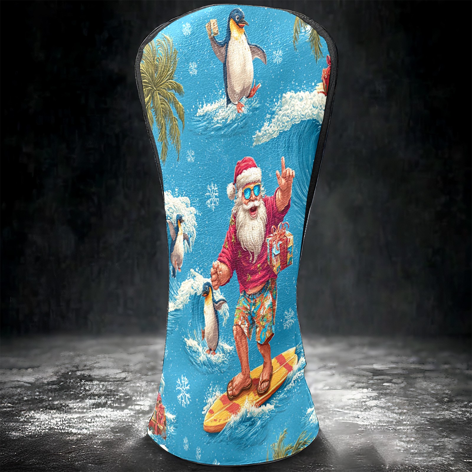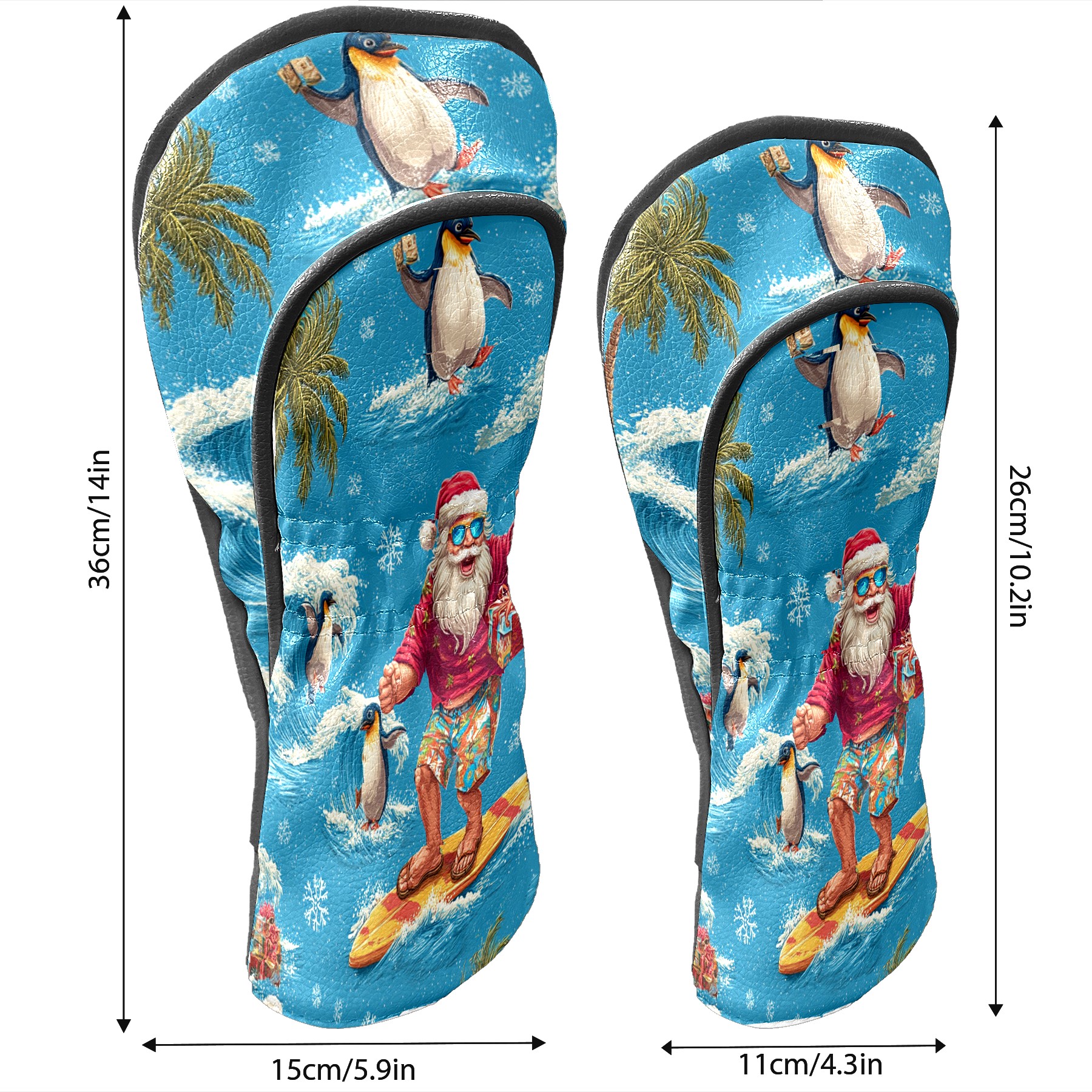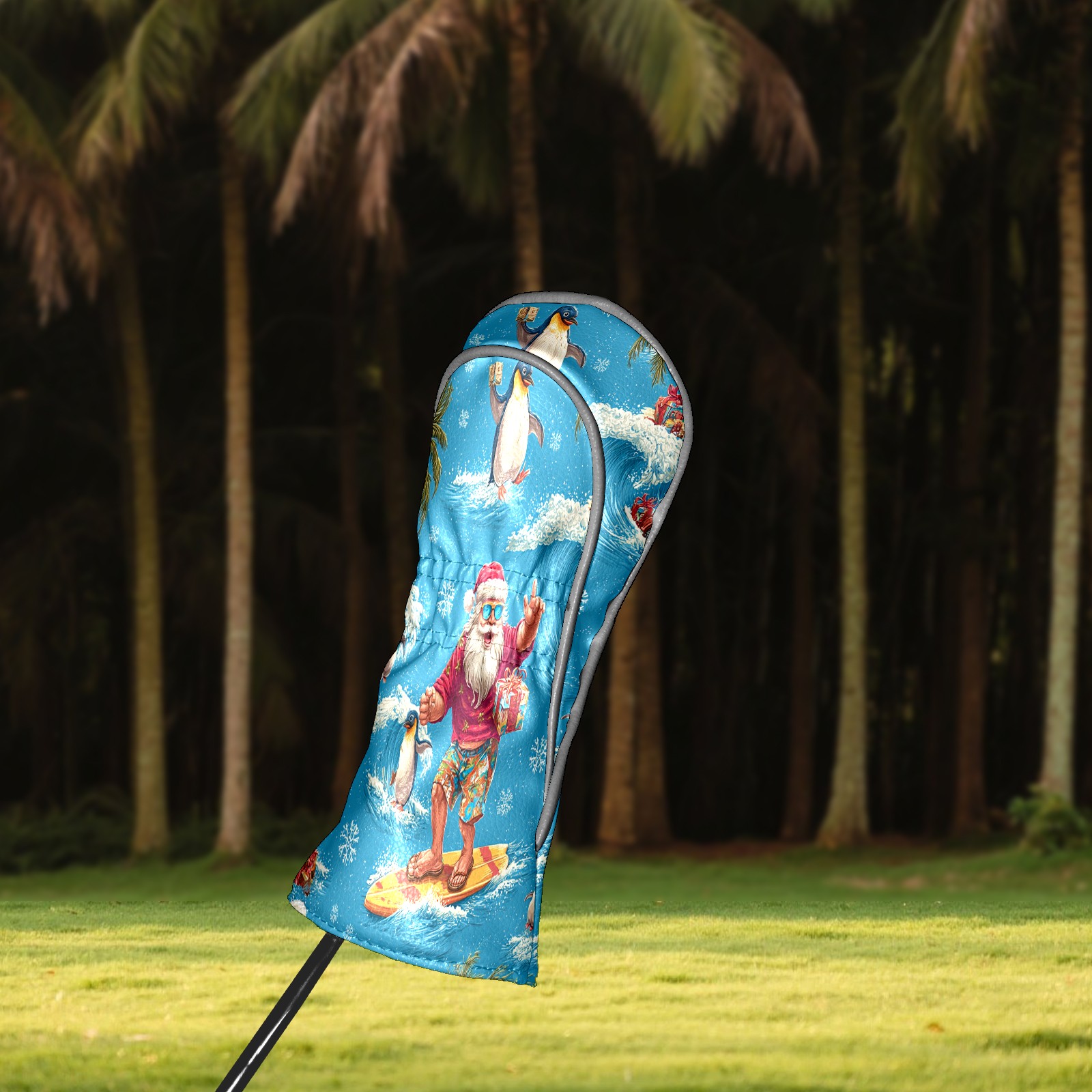 Golf Club Head Covers Santa Penguin Surfing Blue Ocean Design for Driver & Hybrid, Waterproof PU Leather with Plush Velvet Lining, Scratch Protection & Secure Fit, Ideal Golf Gift for Men Women