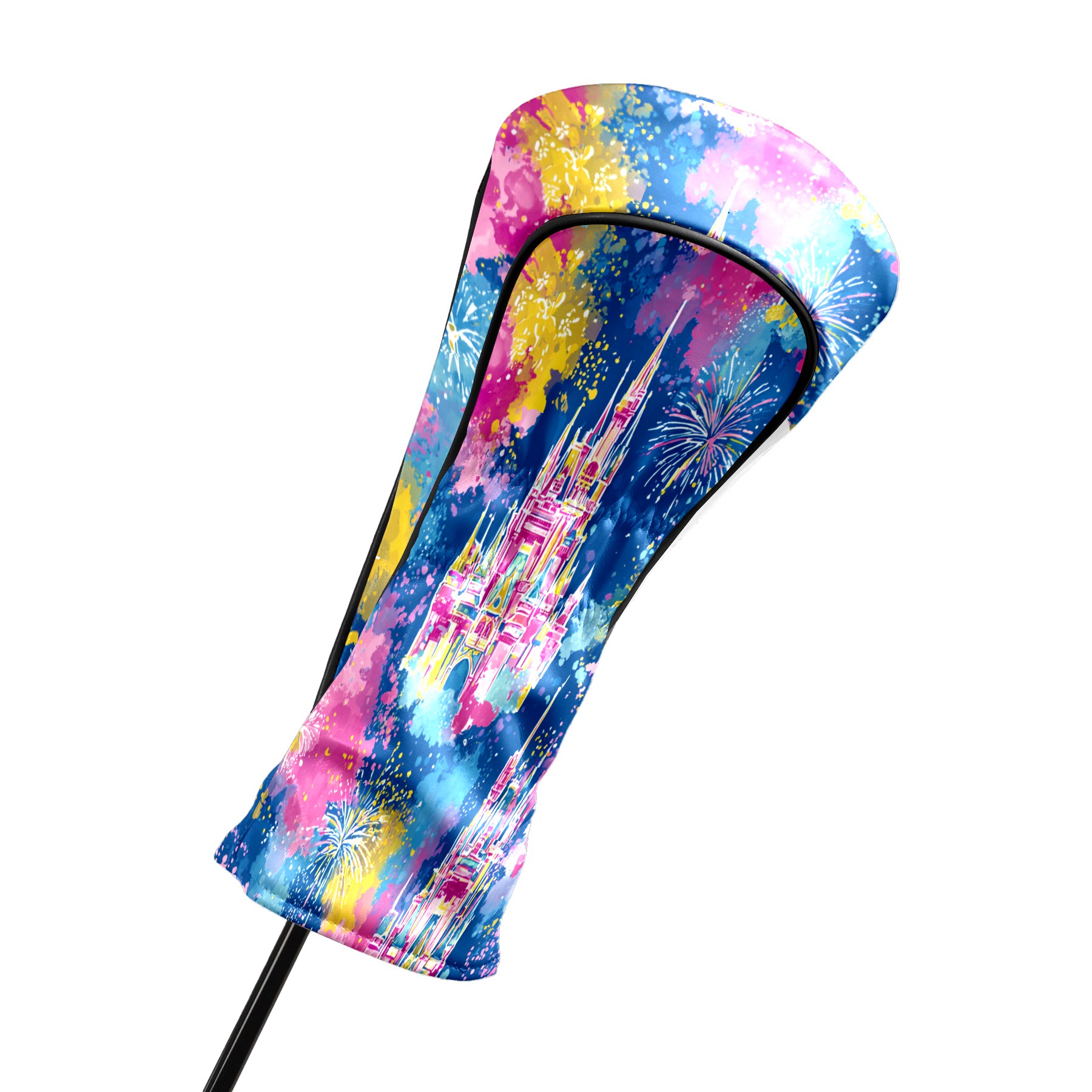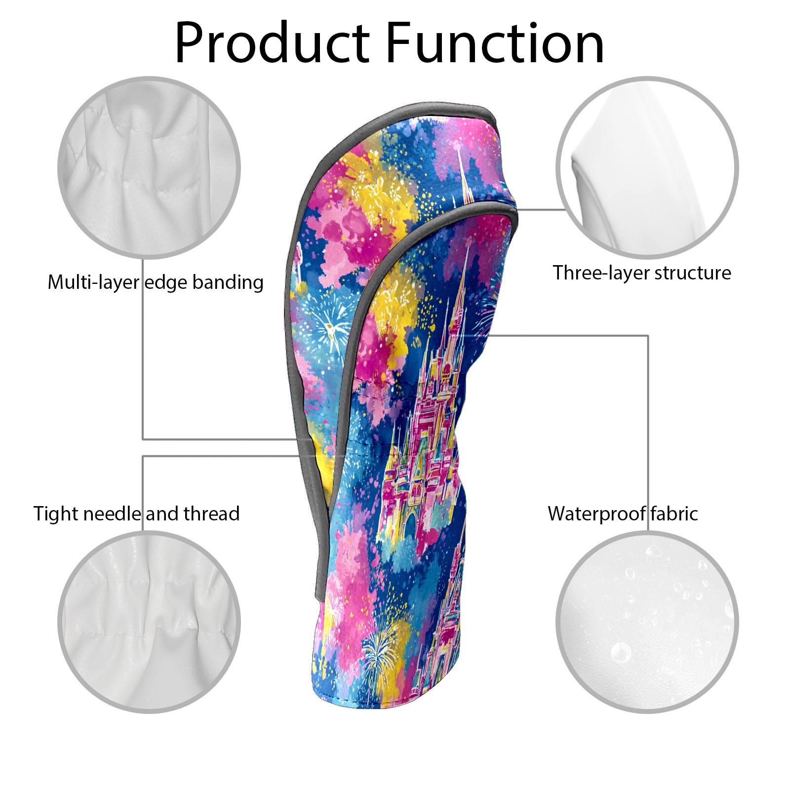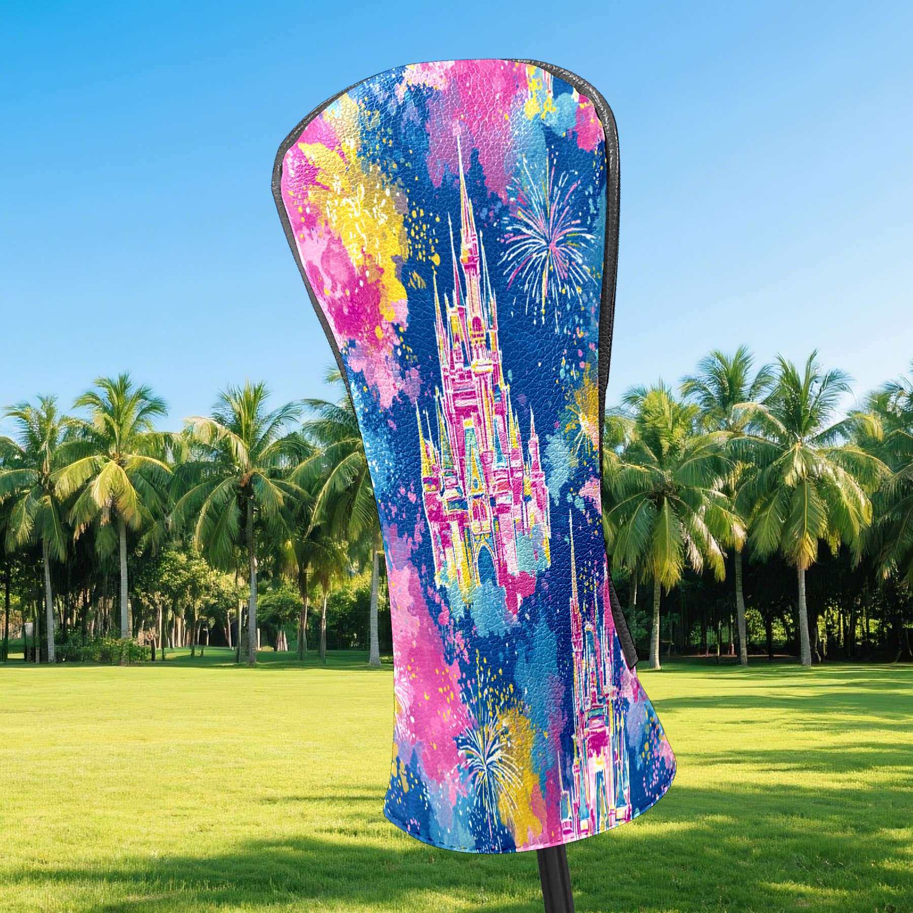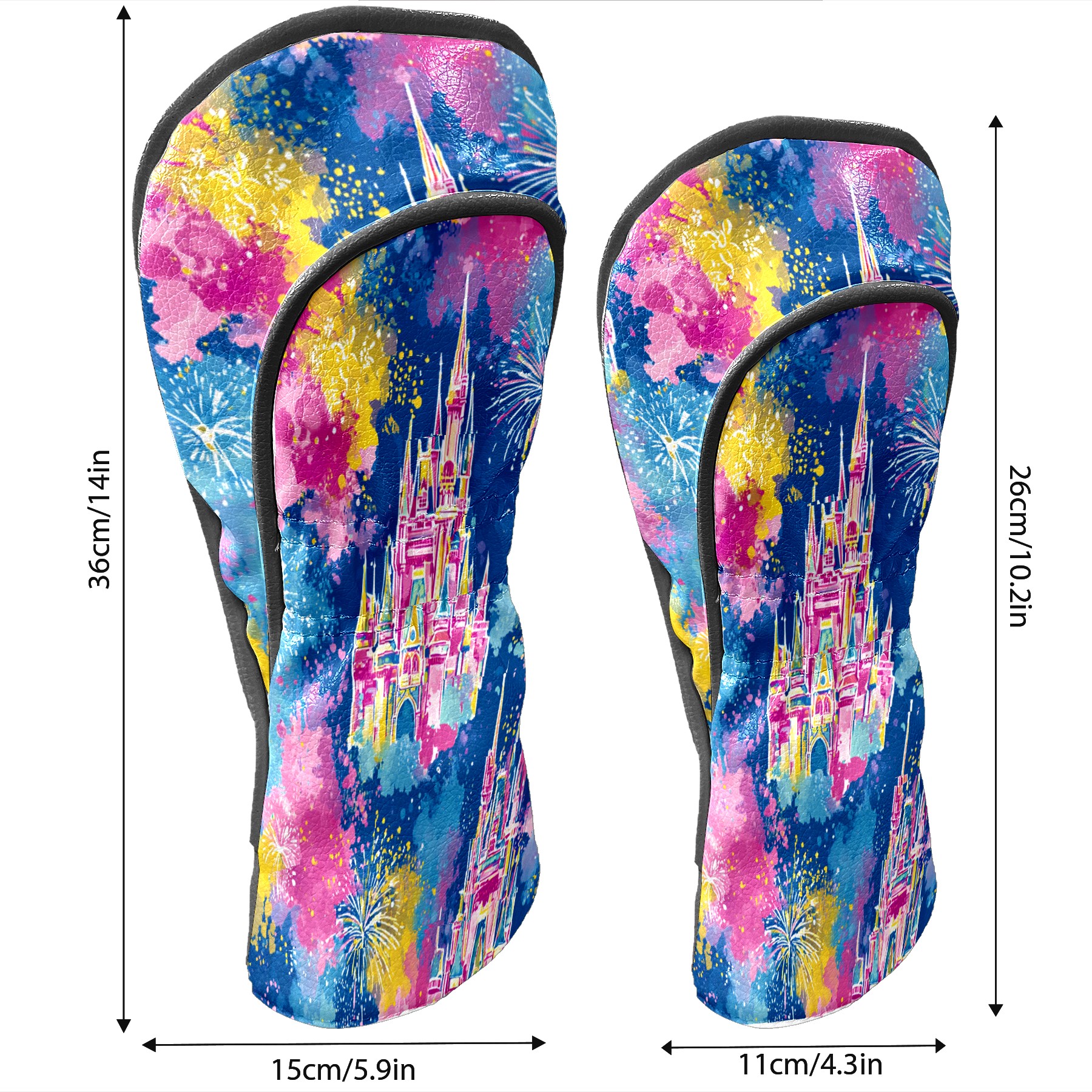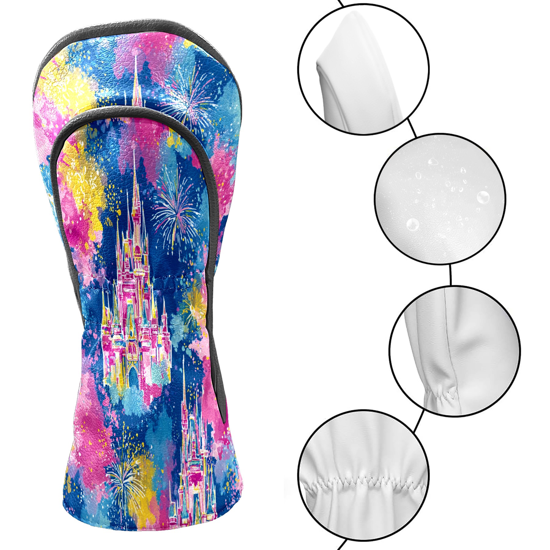 Golf Club Head Covers Colorful Castle Fireworks Design for Driver & Hybrid, Waterproof PU Leather with Plush Velvet Lining, Scratch Protection & Secure Fit, Ideal Golf Gift for Men Women