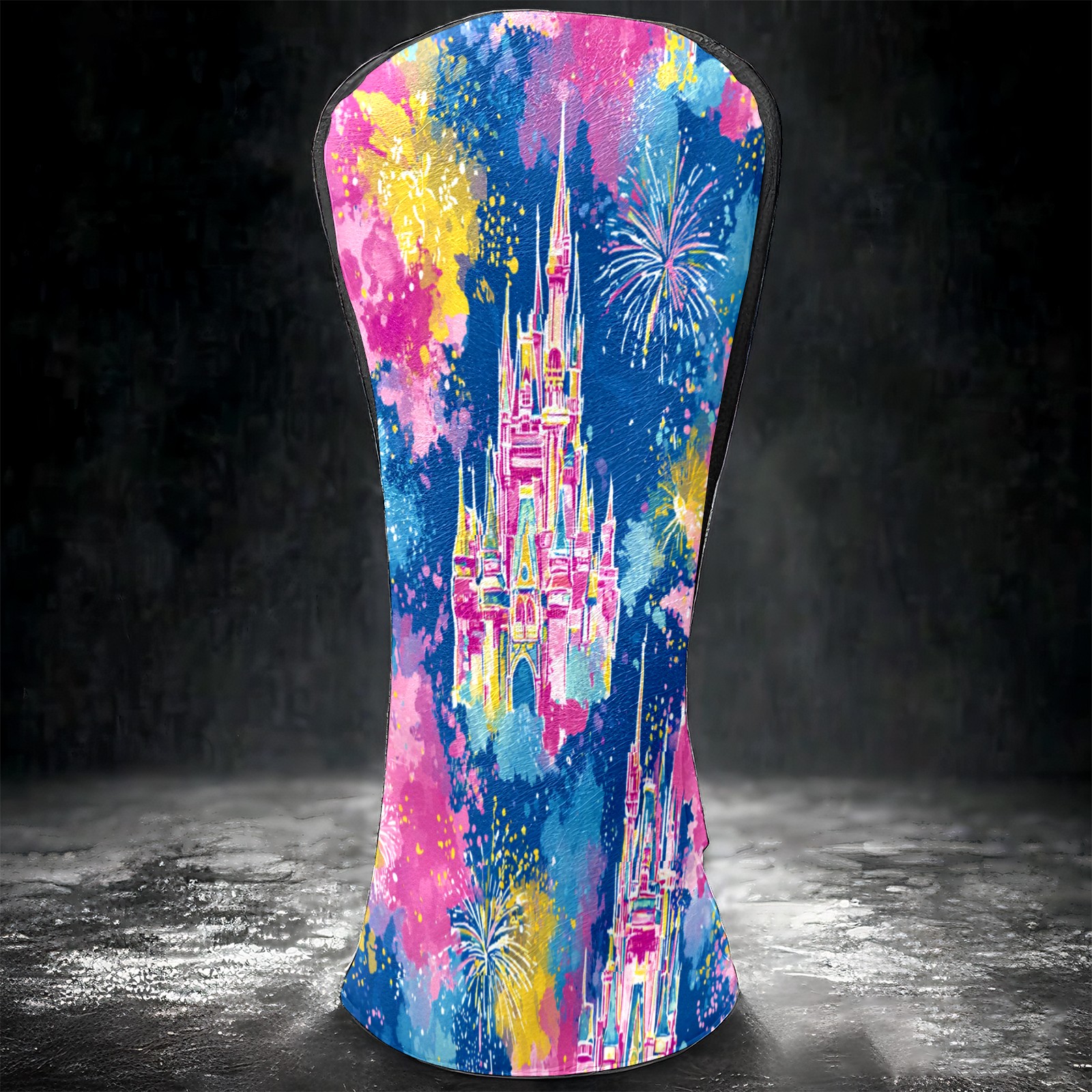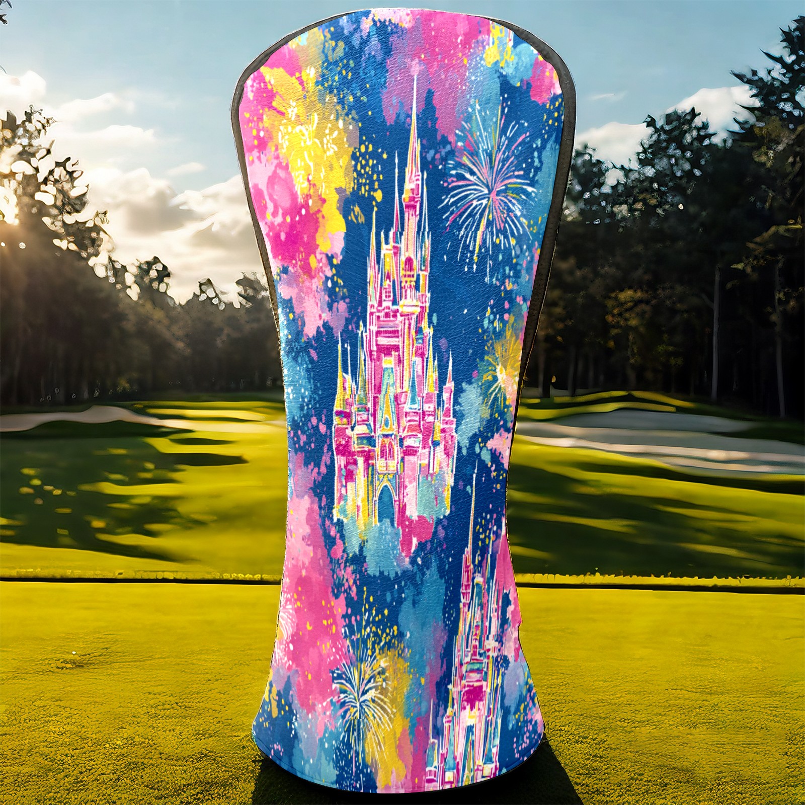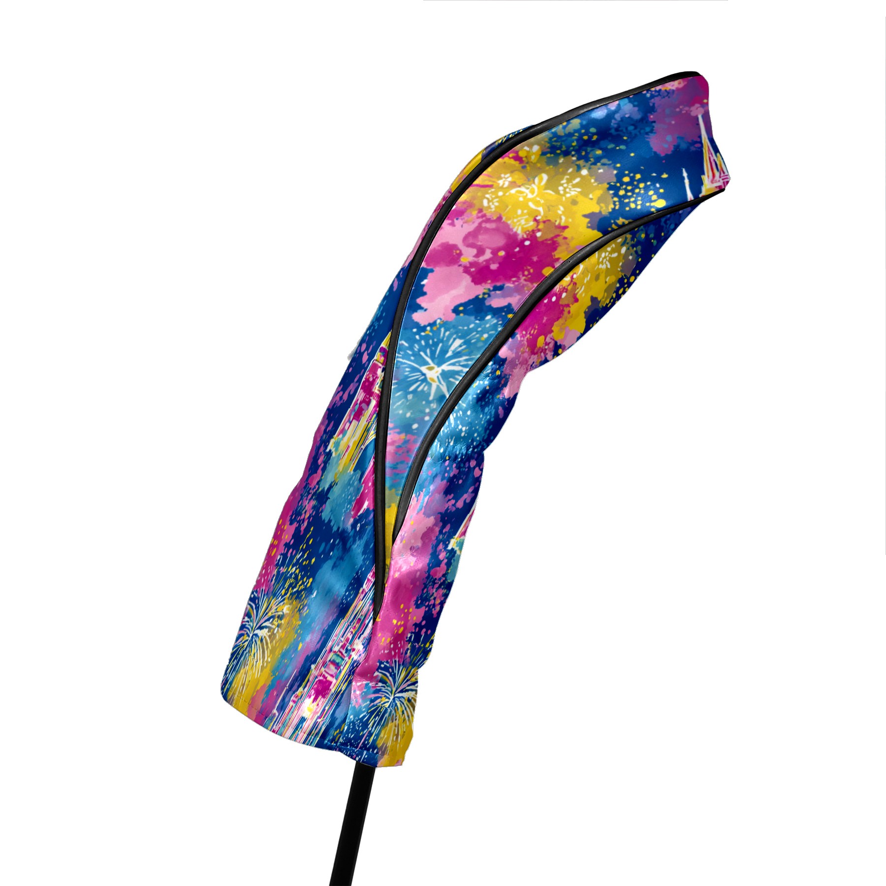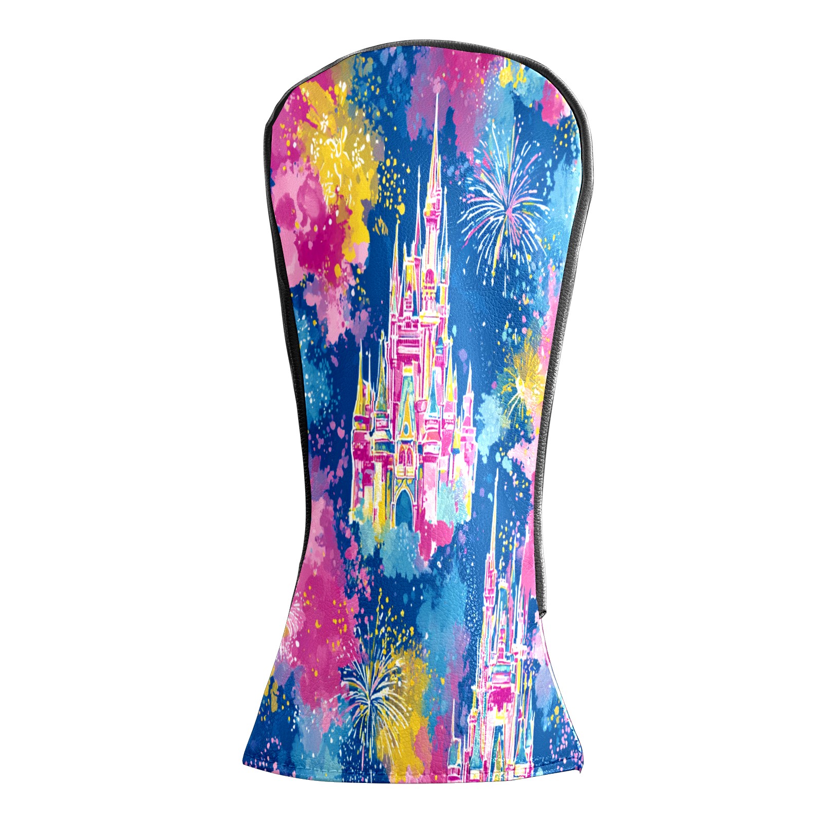 Golf Club Head Covers Colorful Castle Fireworks Design for Driver & Hybrid, Waterproof PU Leather with Plush Velvet Lining, Scratch Protection & Secure Fit, Ideal Golf Gift for Men Women