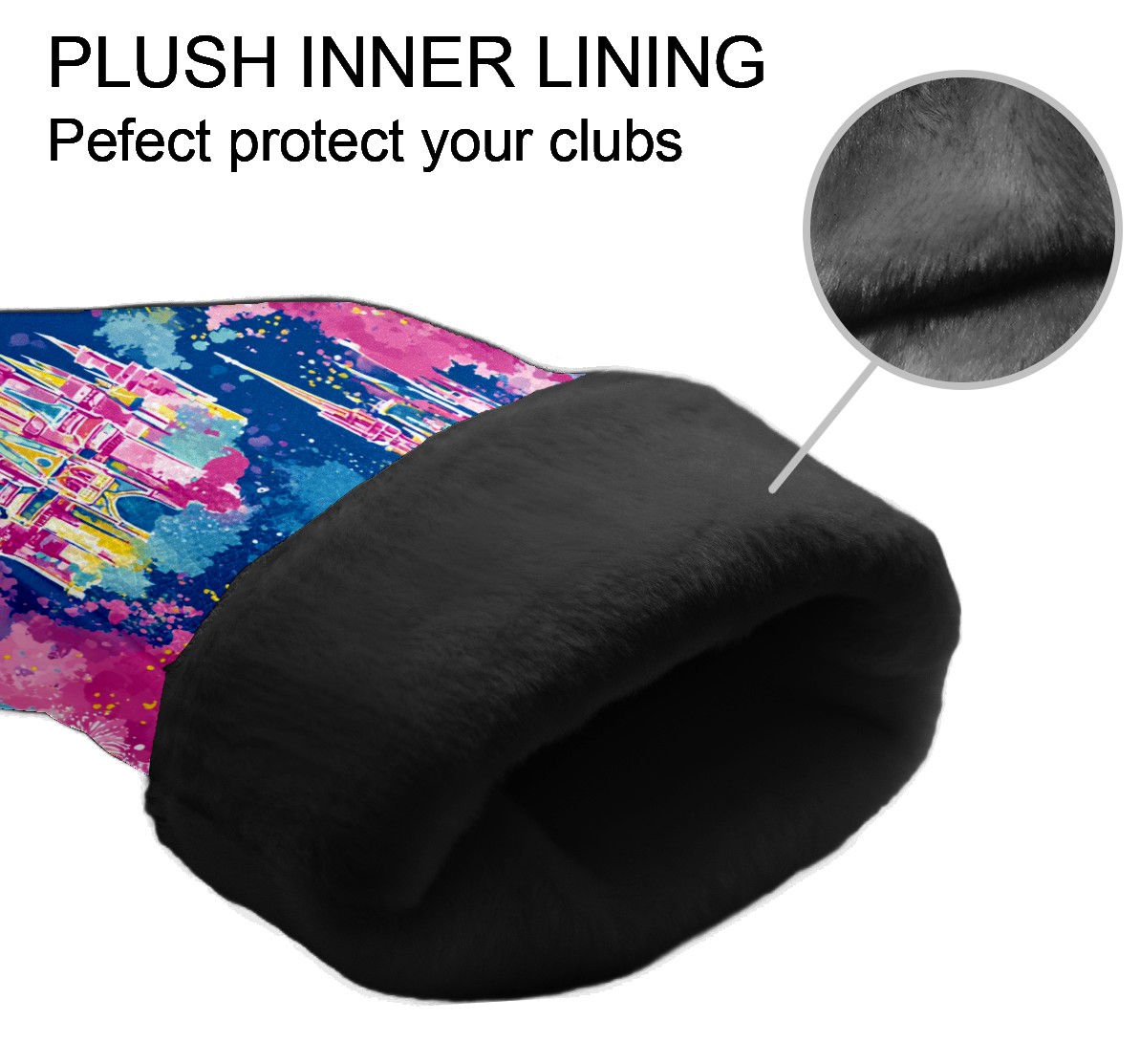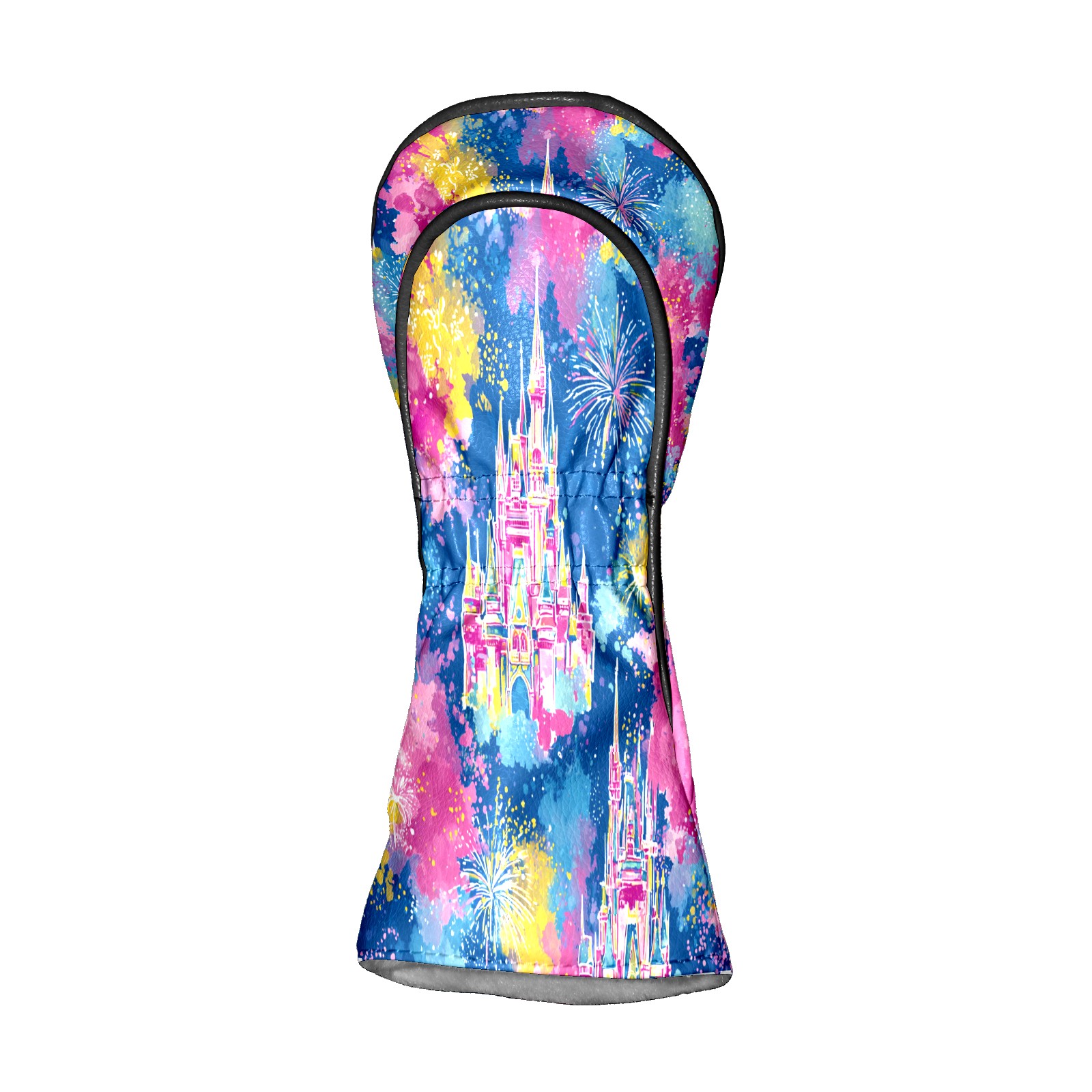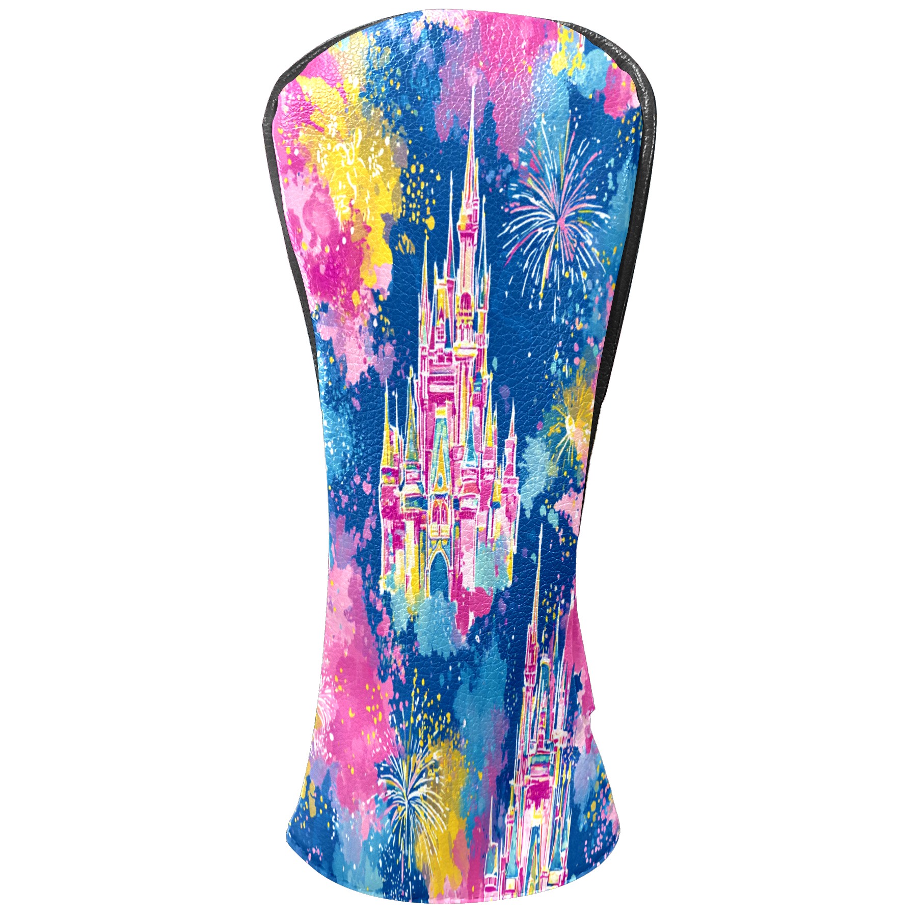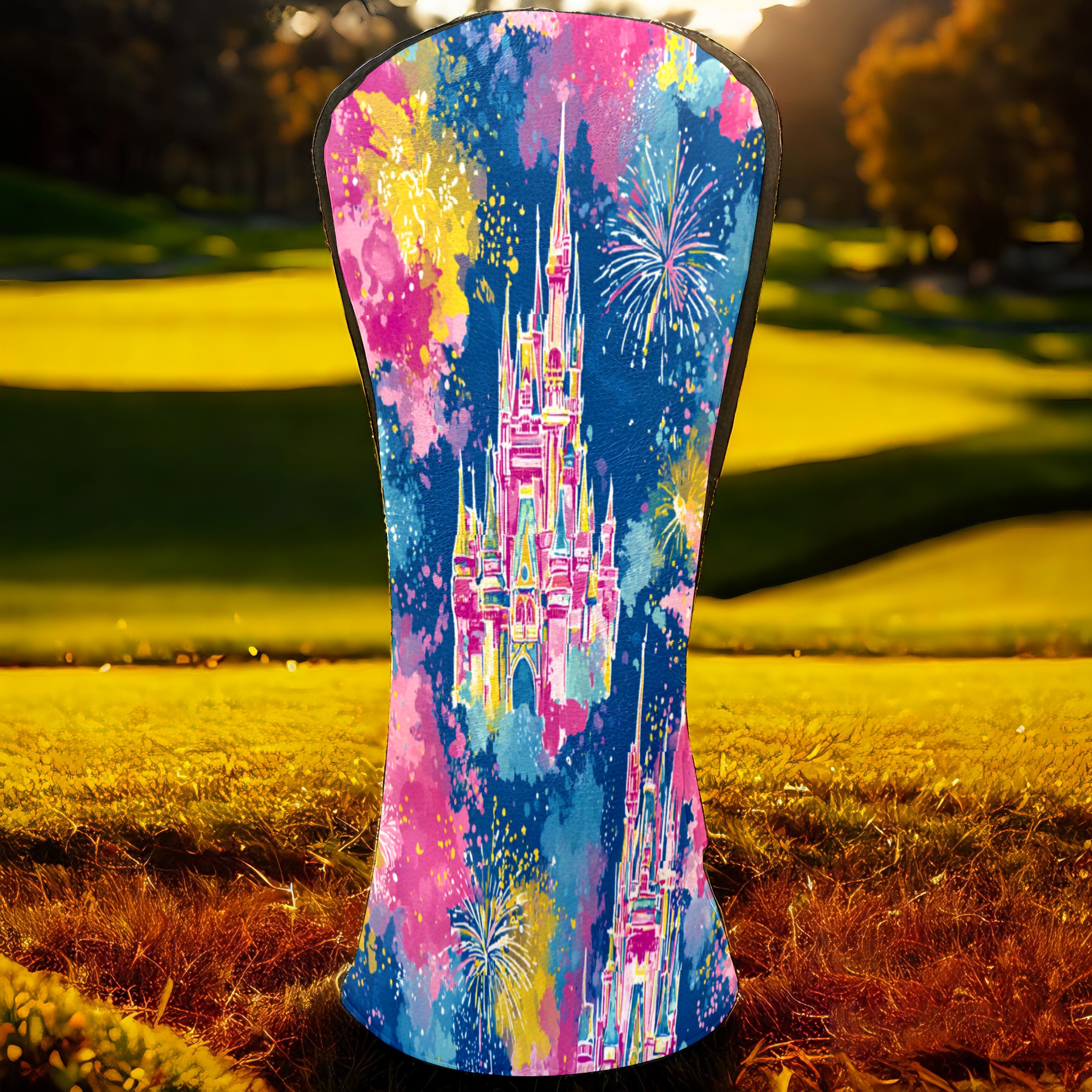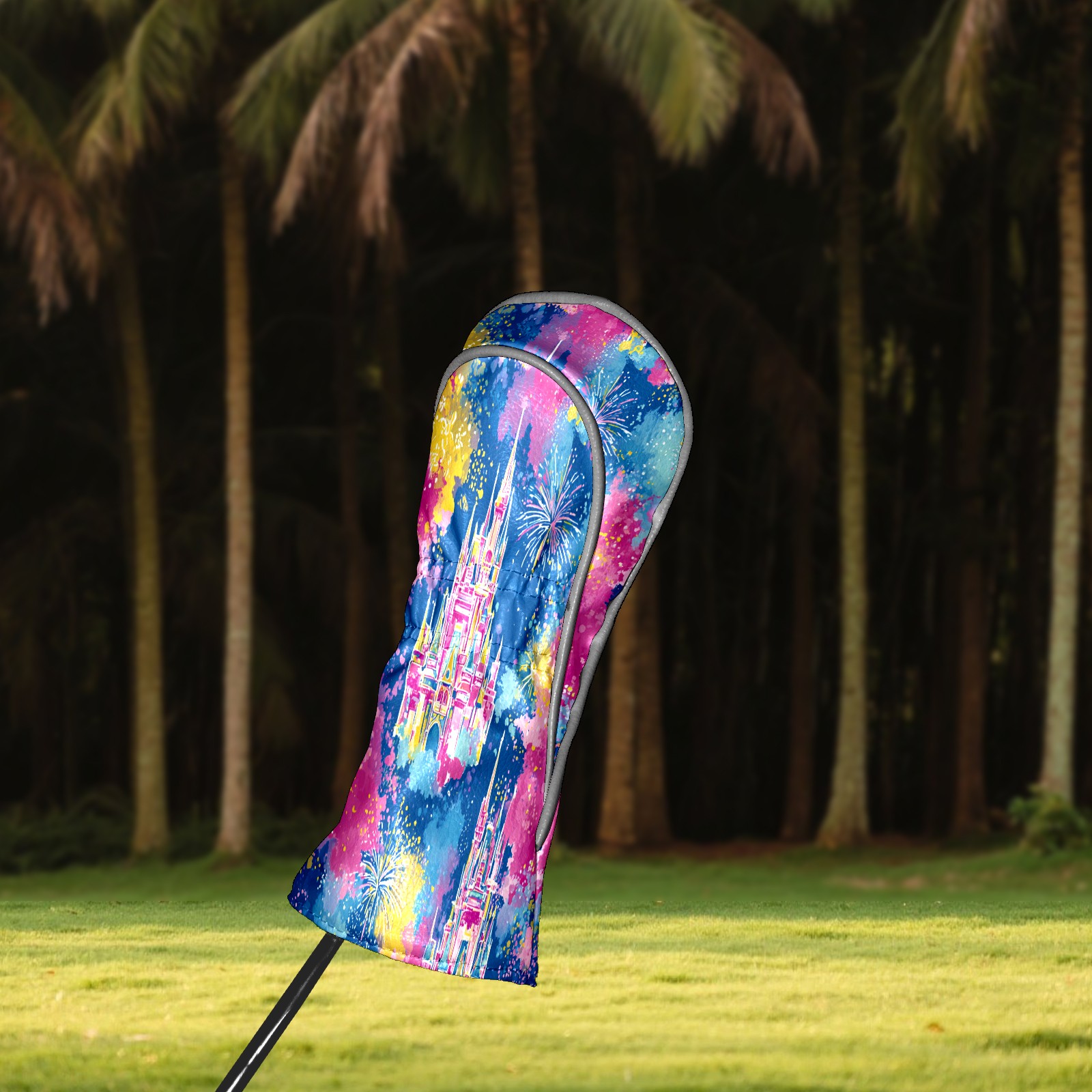 Golf Club Head Covers Colorful Castle Fireworks Design for Driver & Hybrid, Waterproof PU Leather with Plush Velvet Lining, Scratch Protection & Secure Fit, Ideal Golf Gift for Men Women