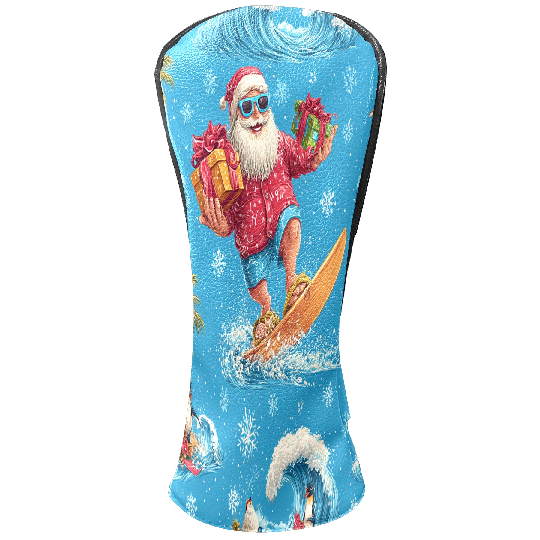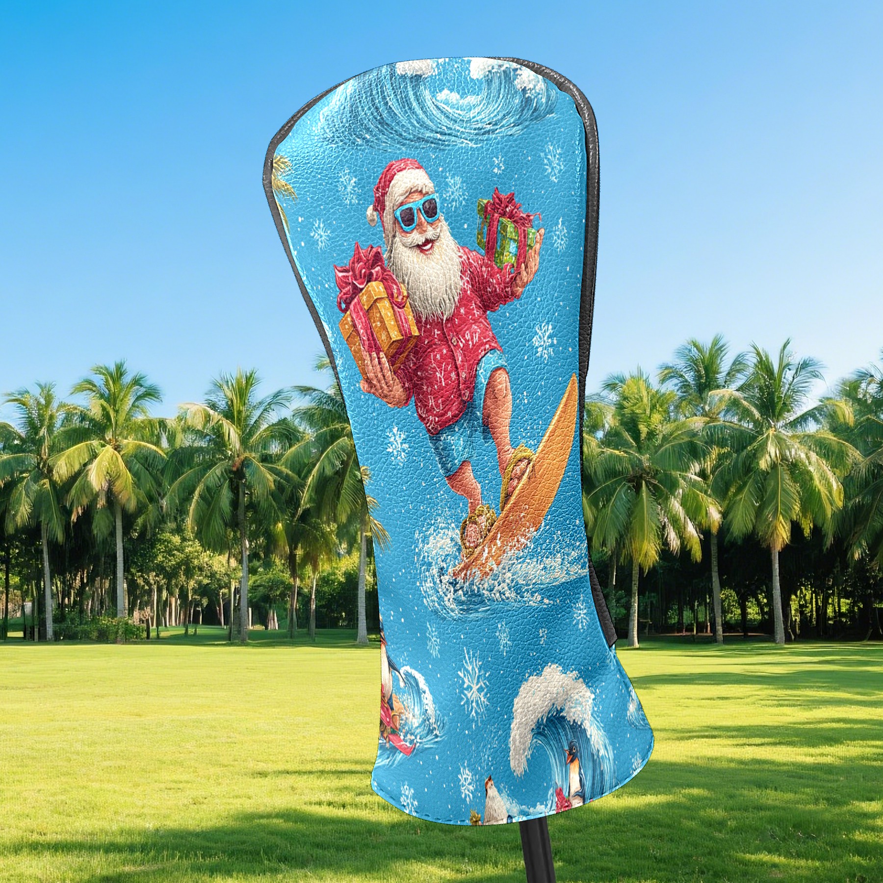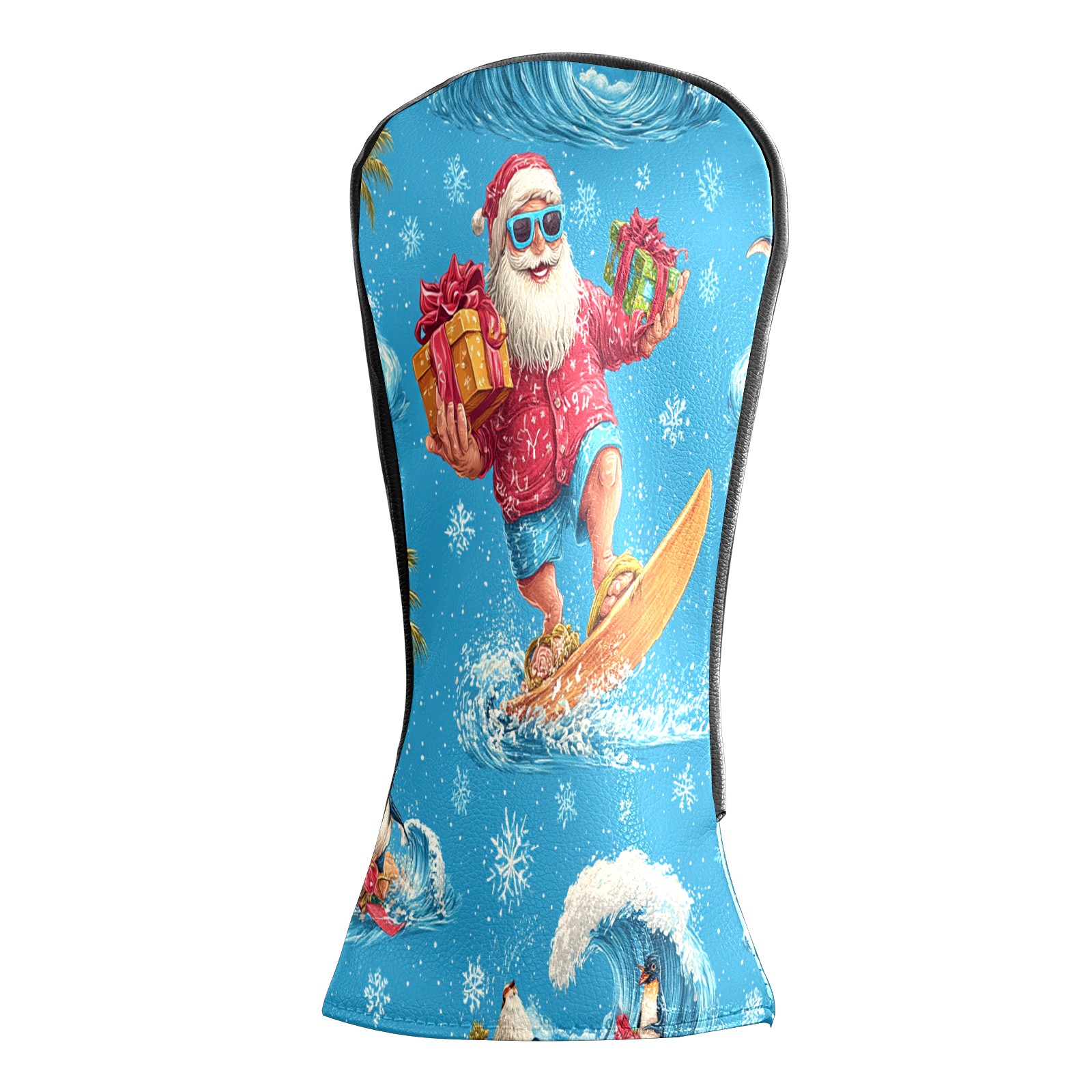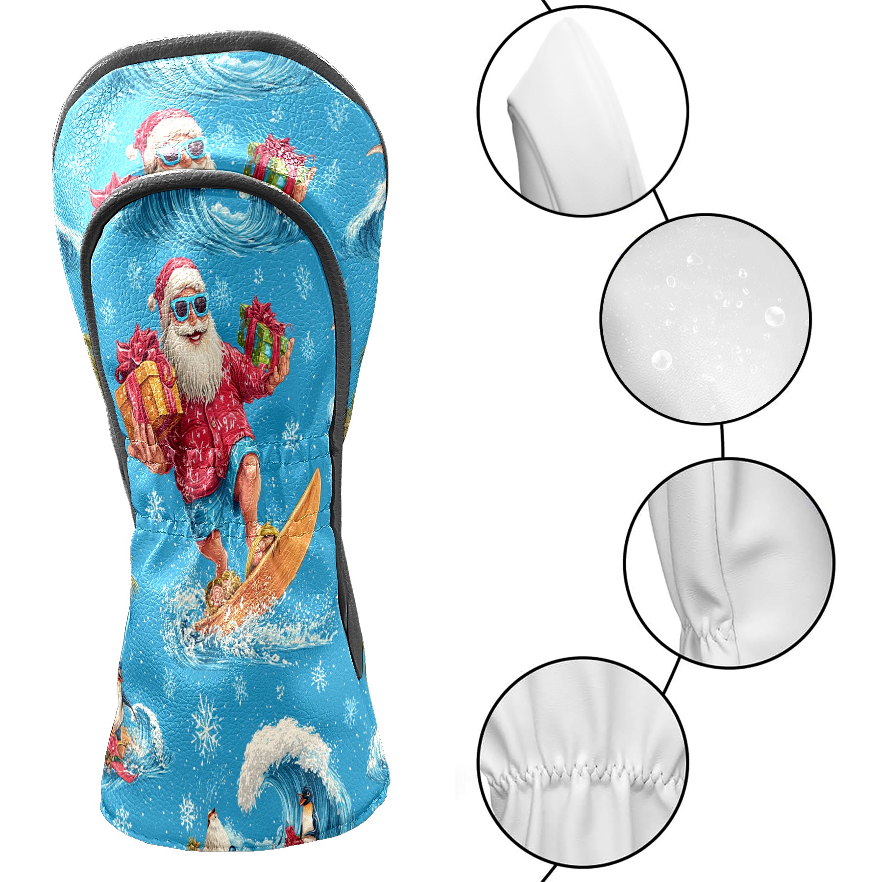 Golf Club Head Covers Santa Surfing Blue Ocean Background Design for Driver & Hybrid, Waterproof PU Leather with Plush Velvet Lining, Scratch Protection & Secure Fit, Ideal Golf Gift for Men Women