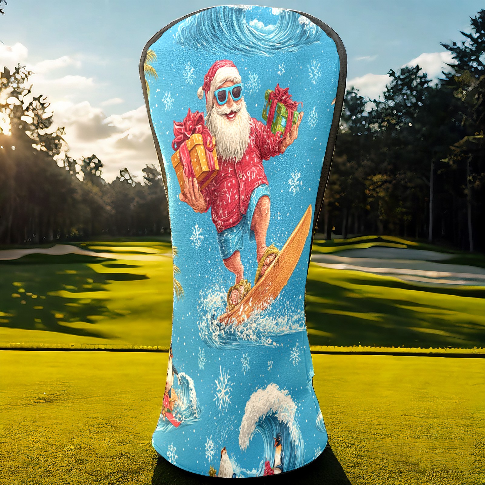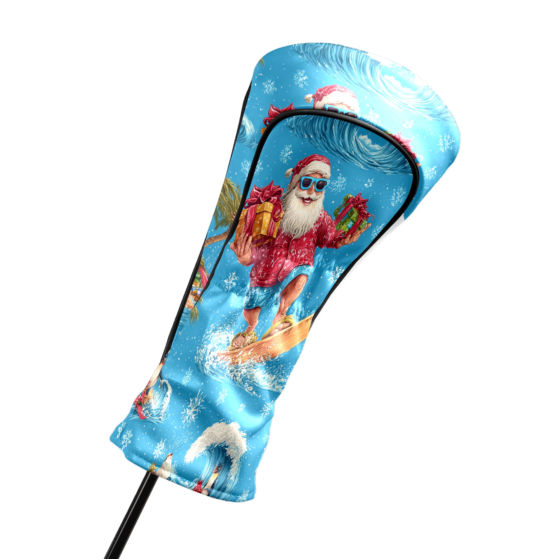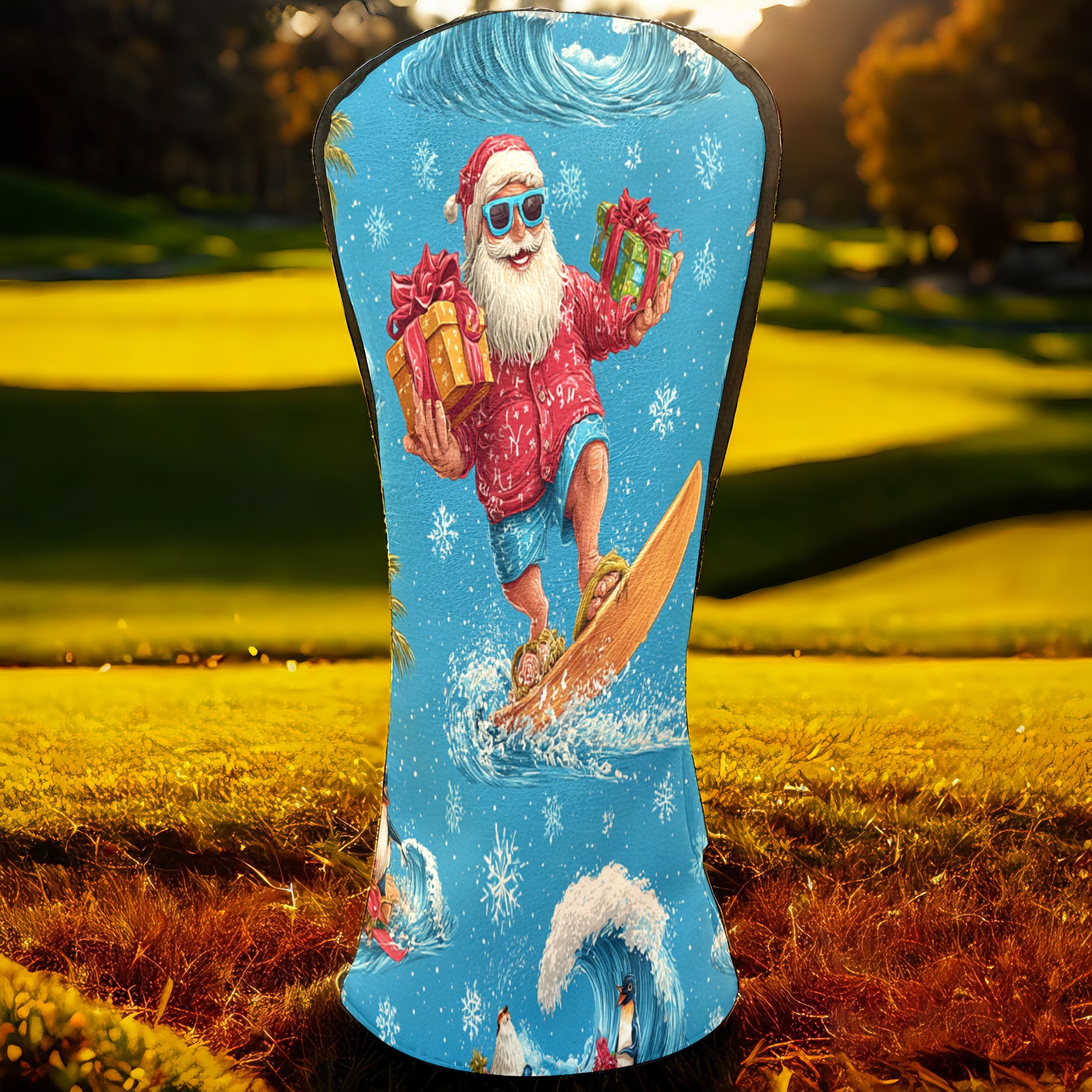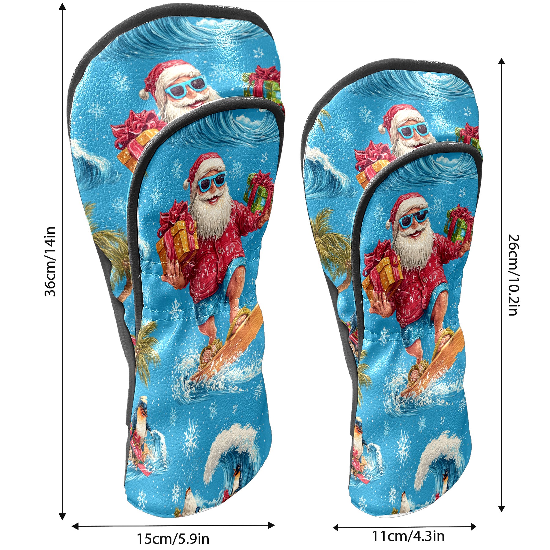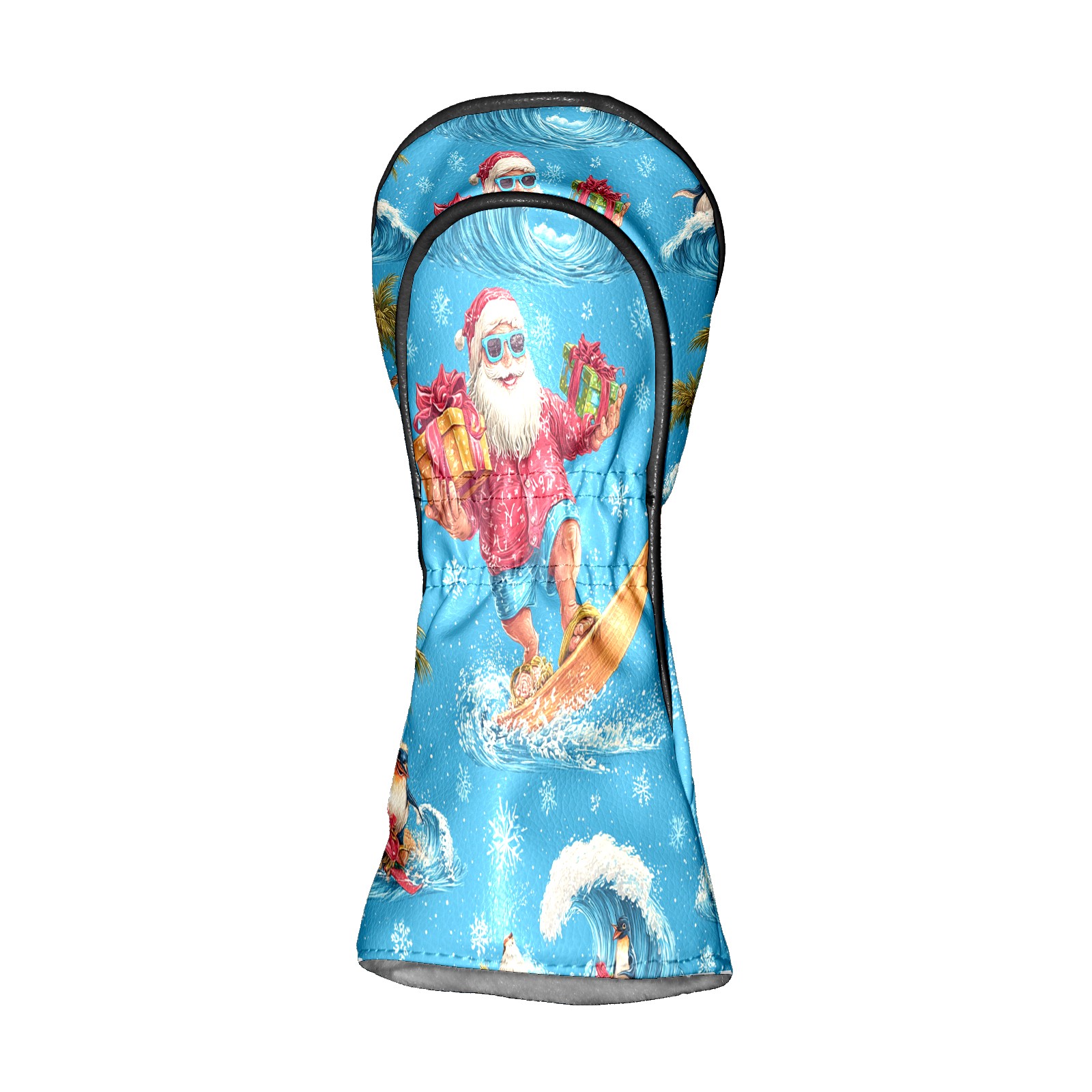 Golf Club Head Covers Santa Surfing Blue Ocean Background Design for Driver & Hybrid, Waterproof PU Leather with Plush Velvet Lining, Scratch Protection & Secure Fit, Ideal Golf Gift for Men Women