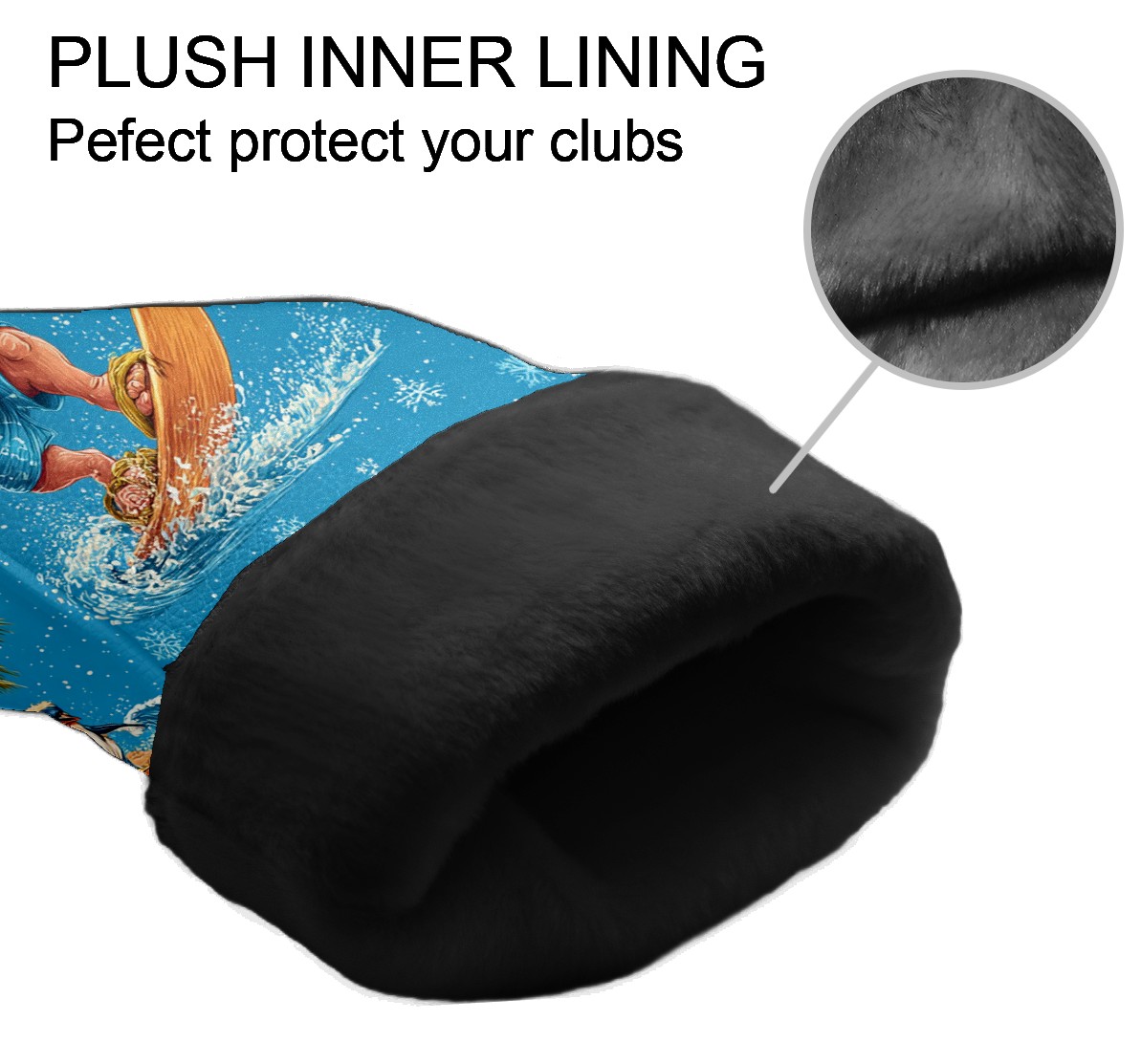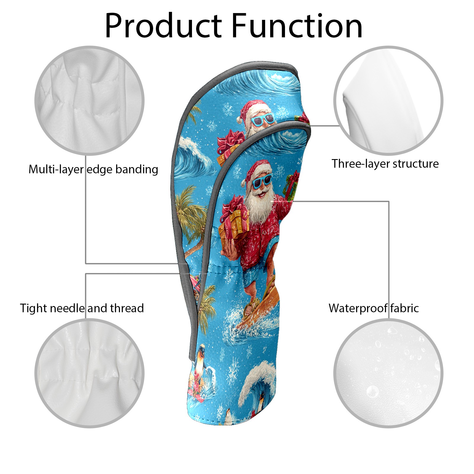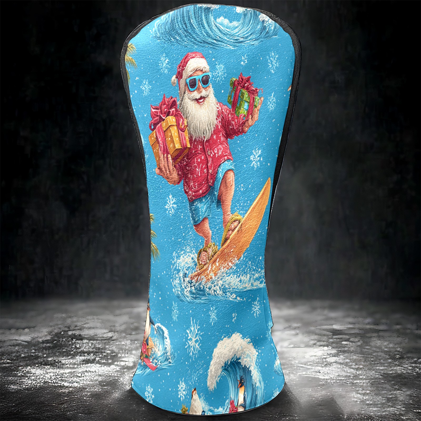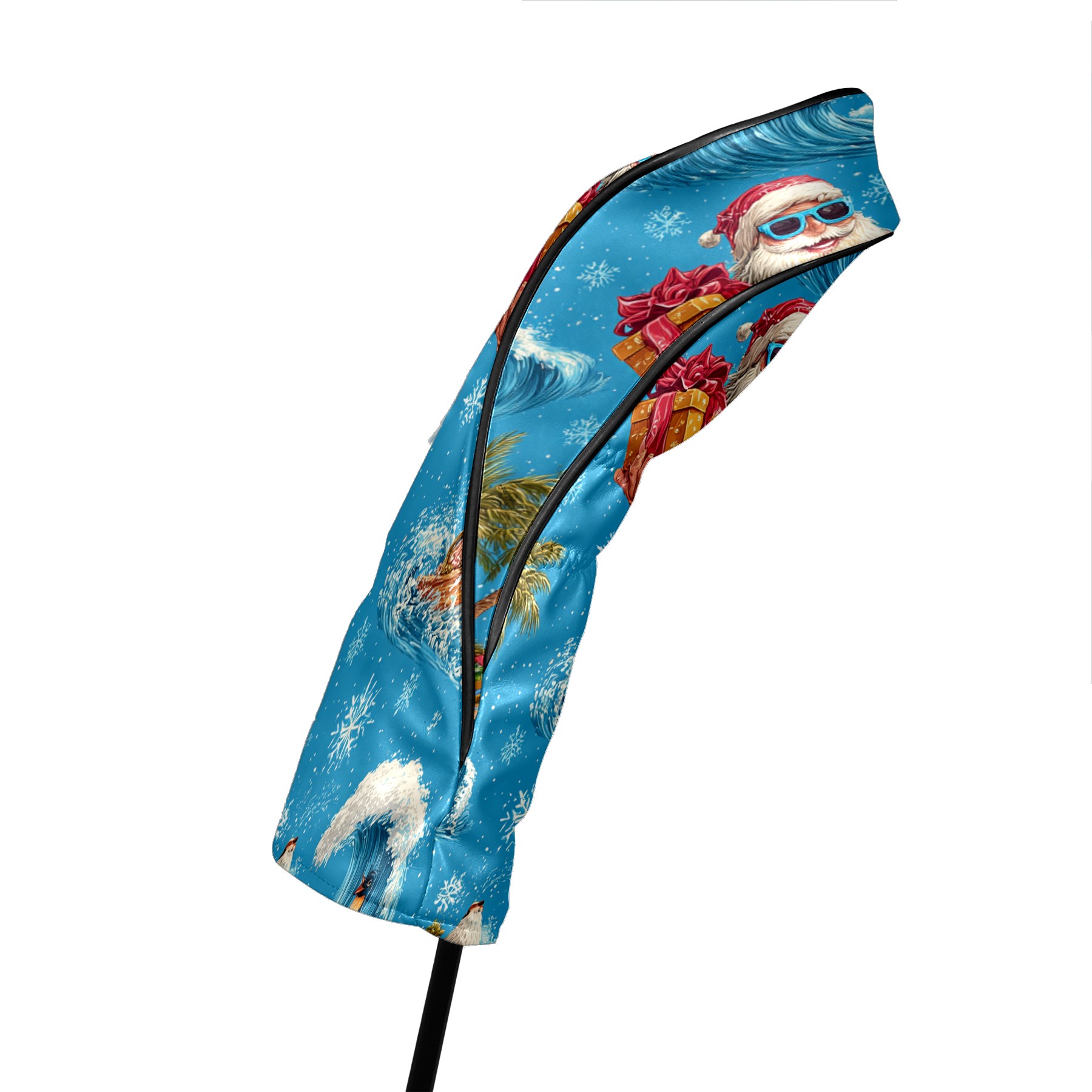 Golf Club Head Covers Santa Surfing Blue Ocean Background Design for Driver & Hybrid, Waterproof PU Leather with Plush Velvet Lining, Scratch Protection & Secure Fit, Ideal Golf Gift for Men Women