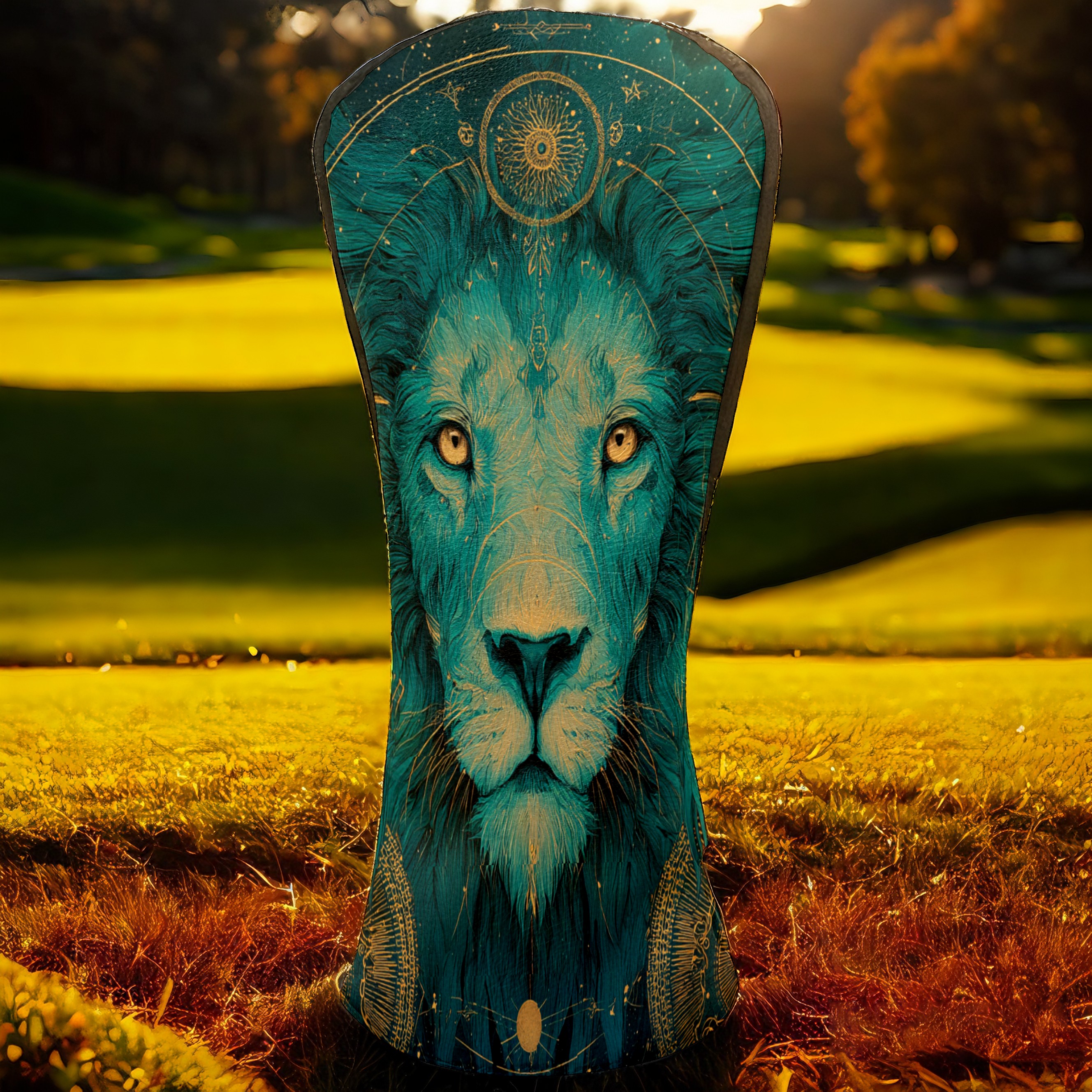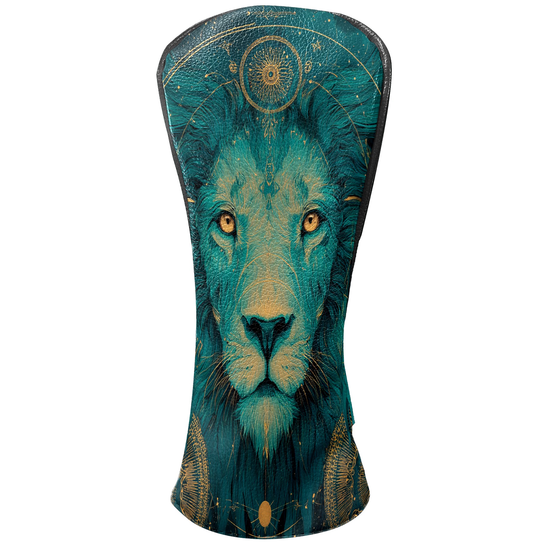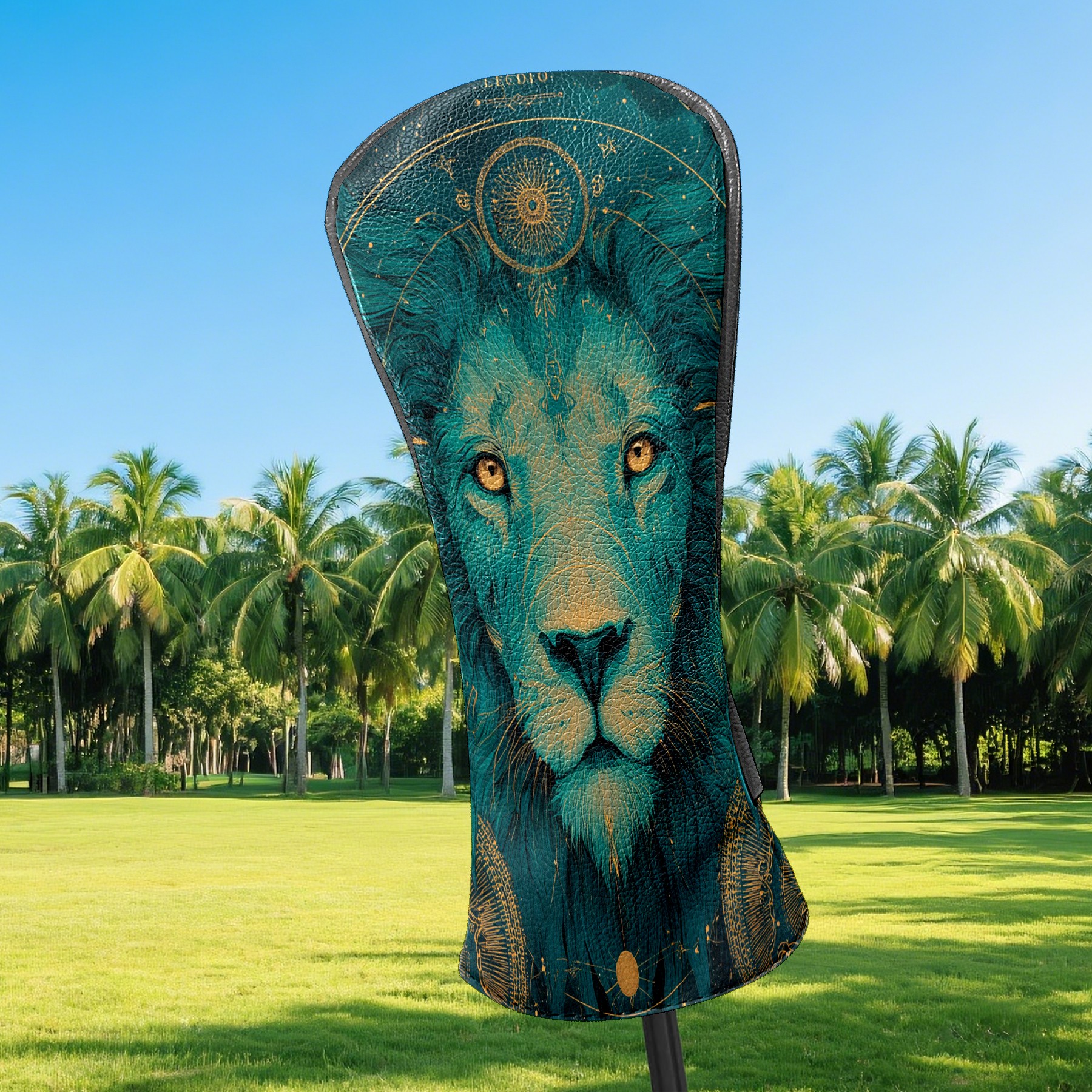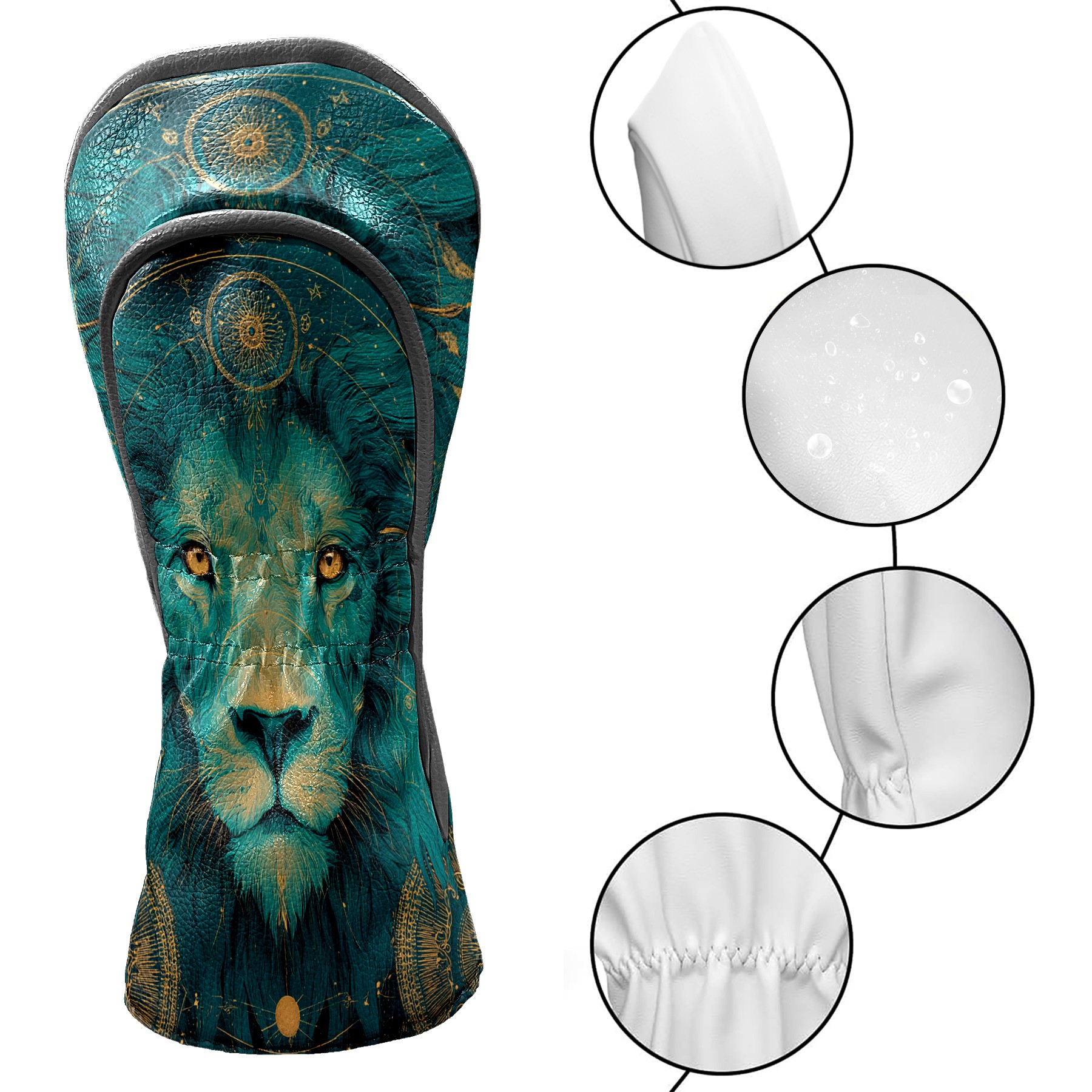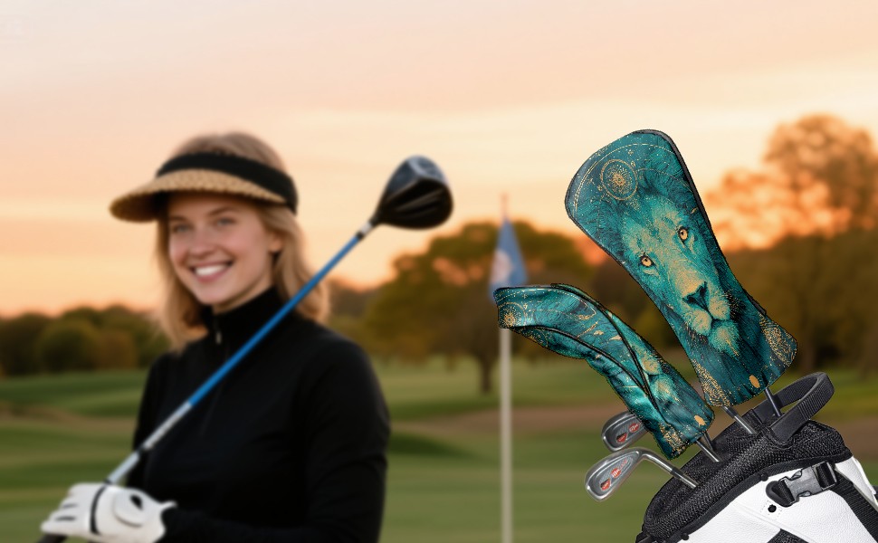 Golf Club Head Covers Teal Mystical Lion Portrait Design for Driver & Hybrid, Waterproof PU Leather with Plush Velvet Lining, Scratch Protection & Secure Fit, Ideal Golf Gift for Men Women