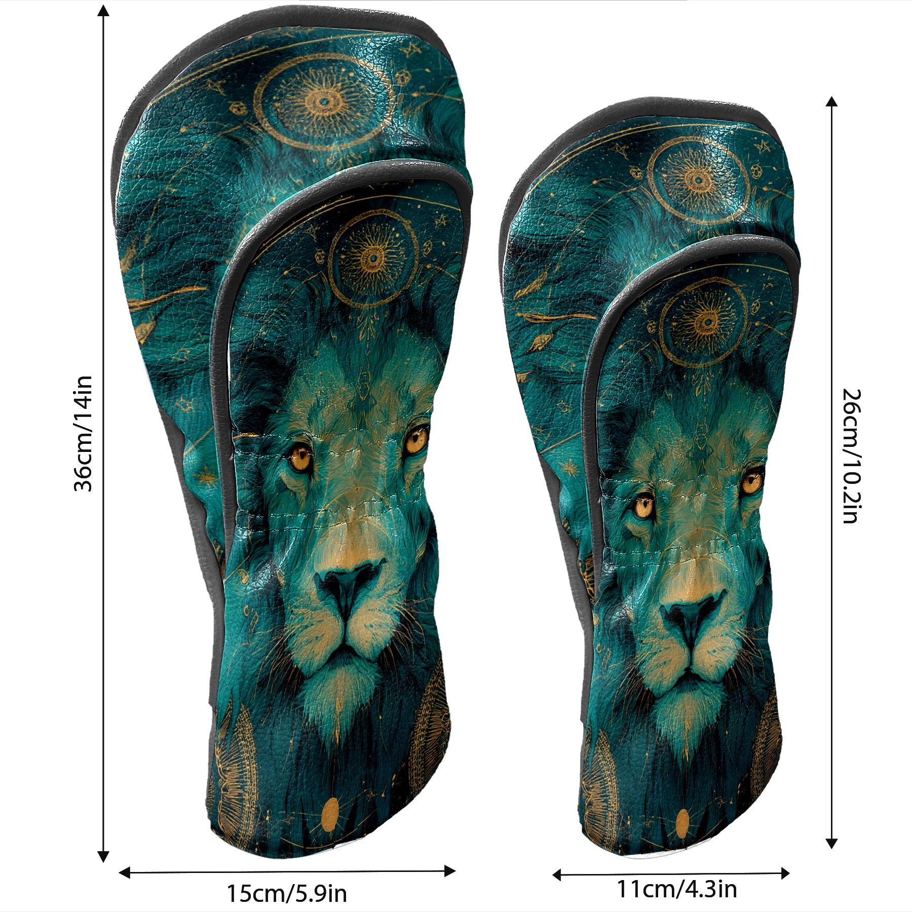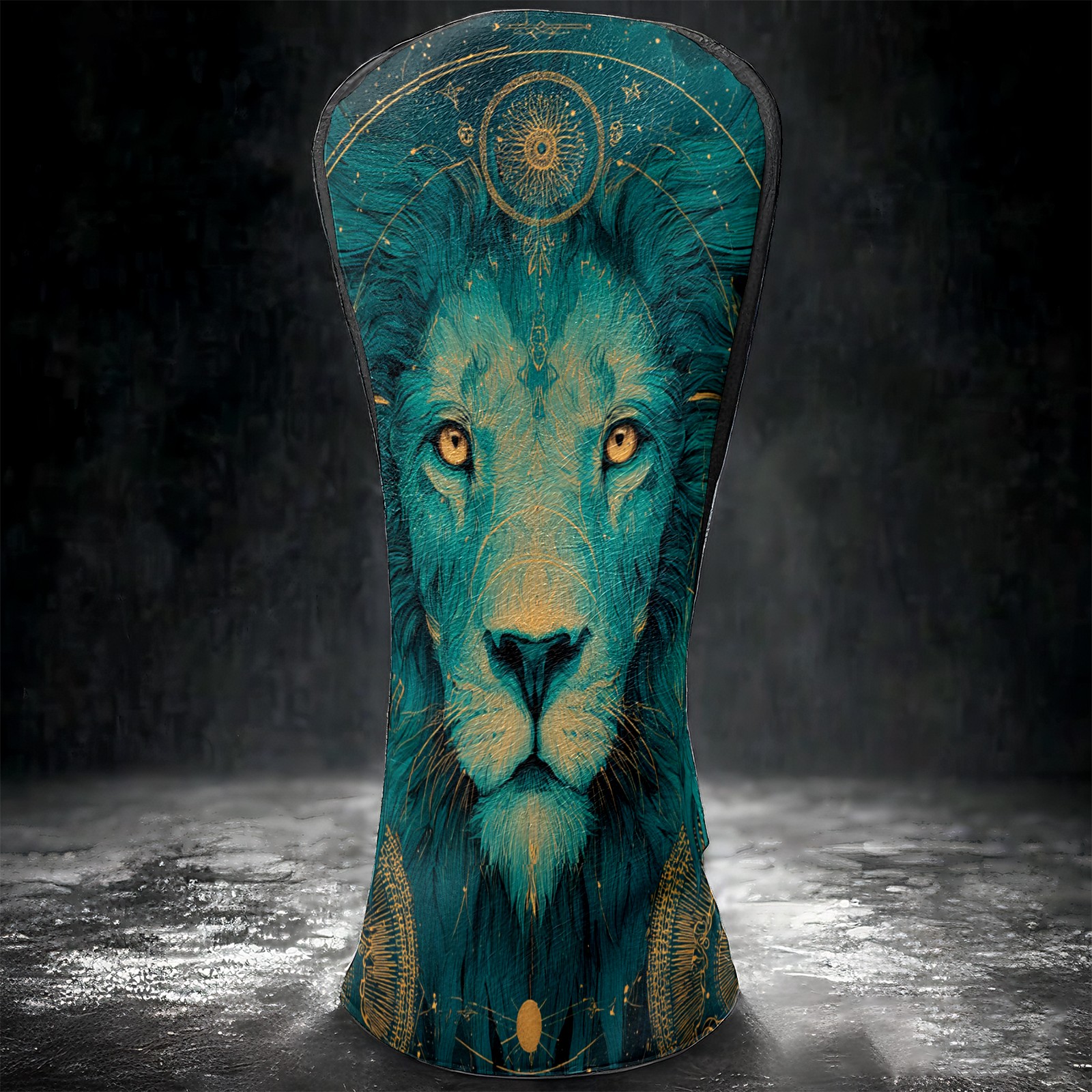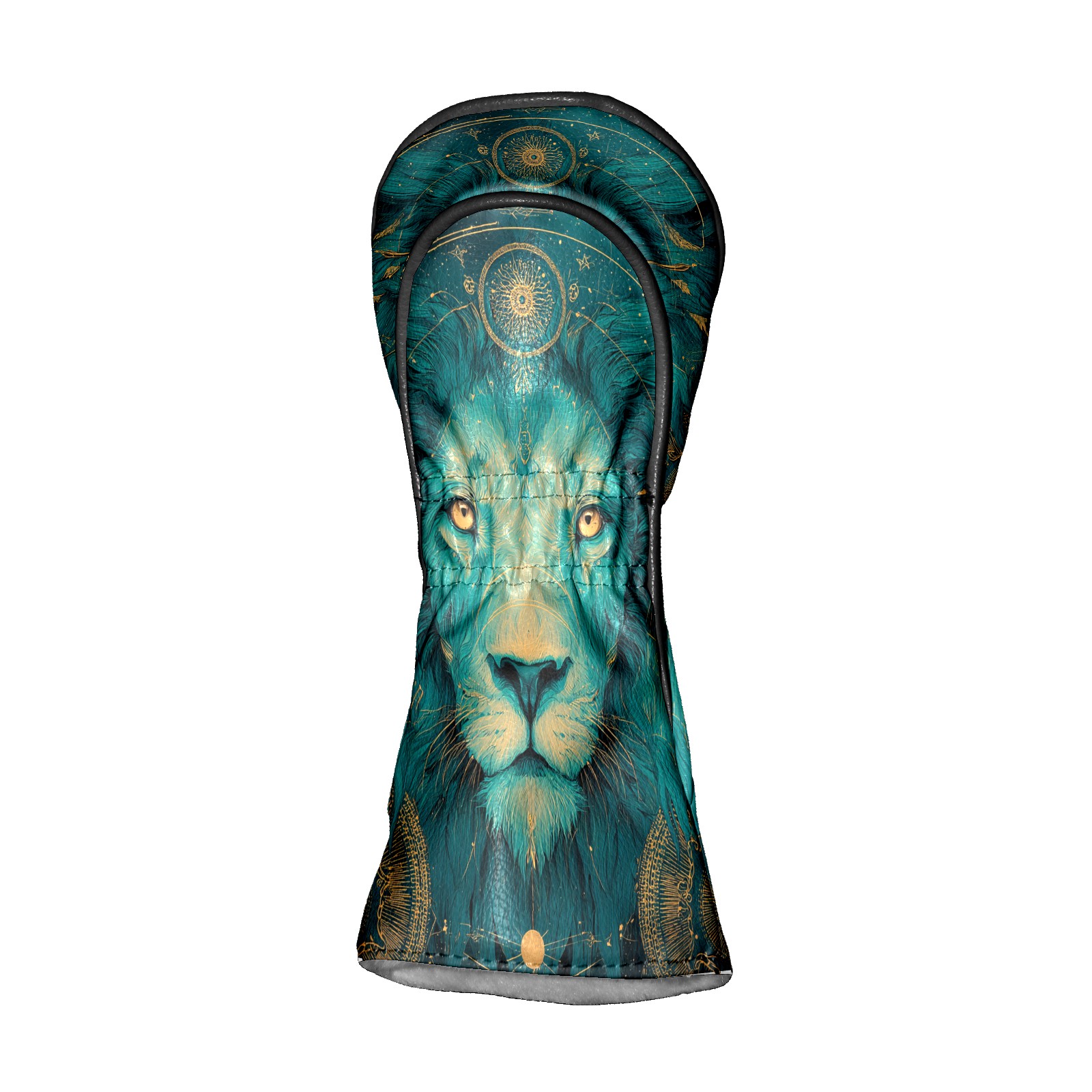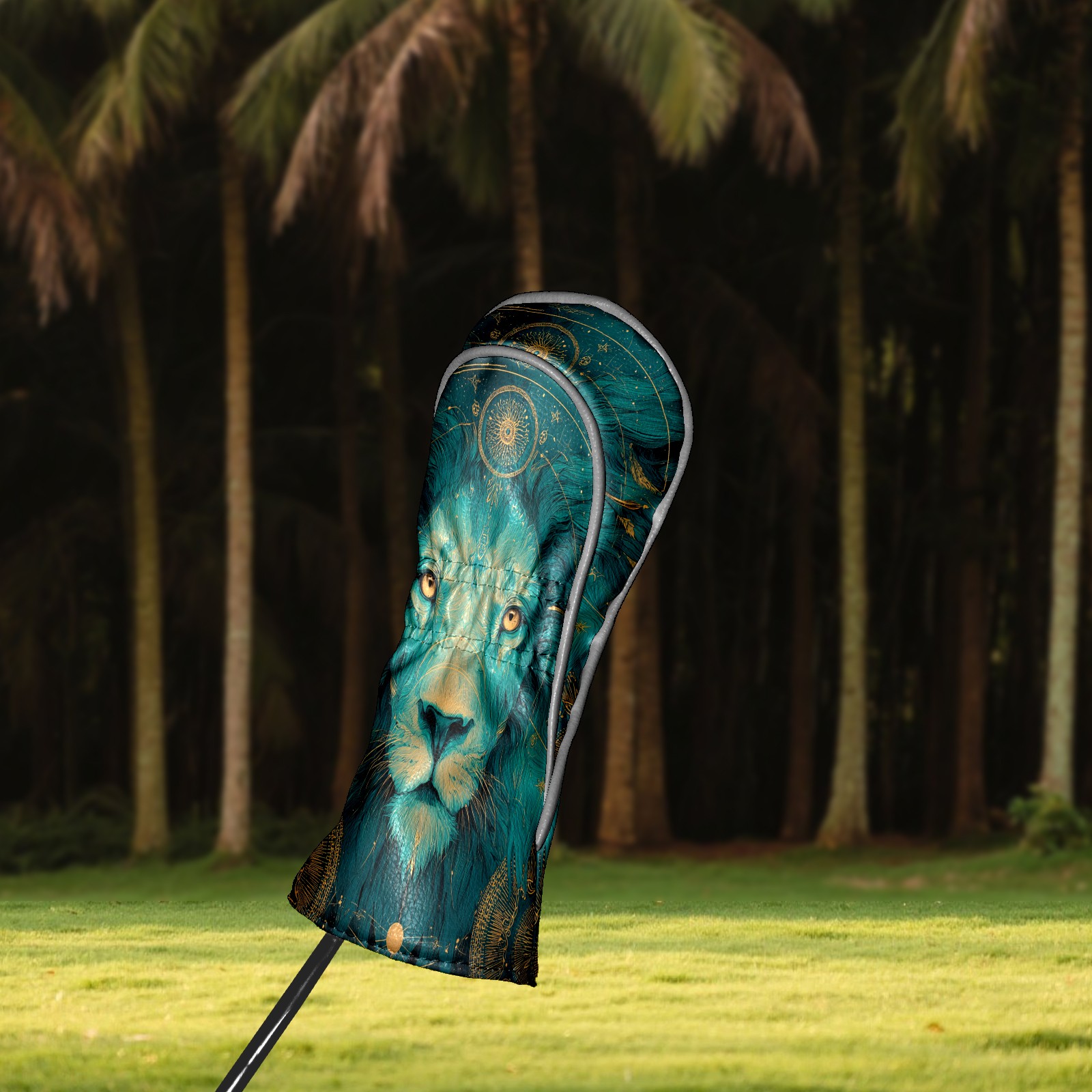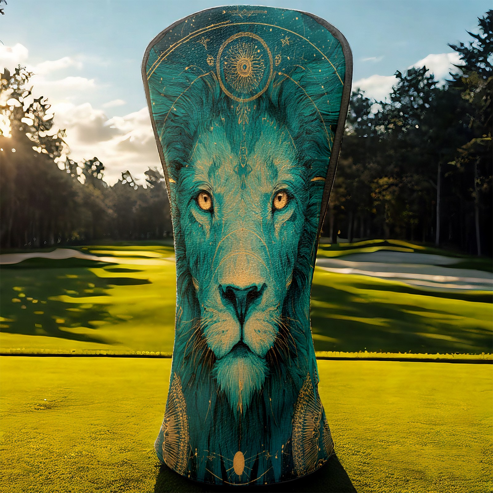 Golf Club Head Covers Teal Mystical Lion Portrait Design for Driver & Hybrid, Waterproof PU Leather with Plush Velvet Lining, Scratch Protection & Secure Fit, Ideal Golf Gift for Men Women
