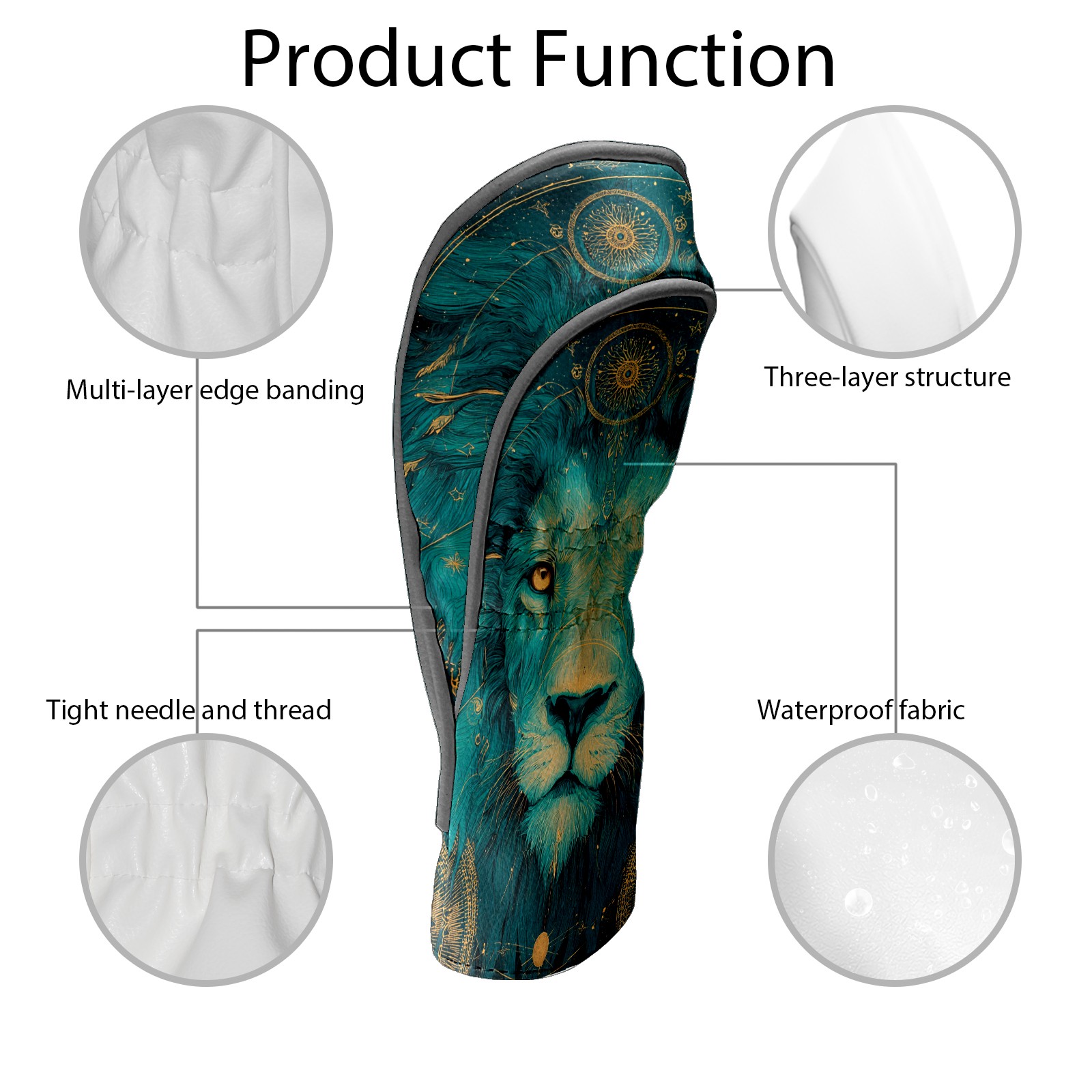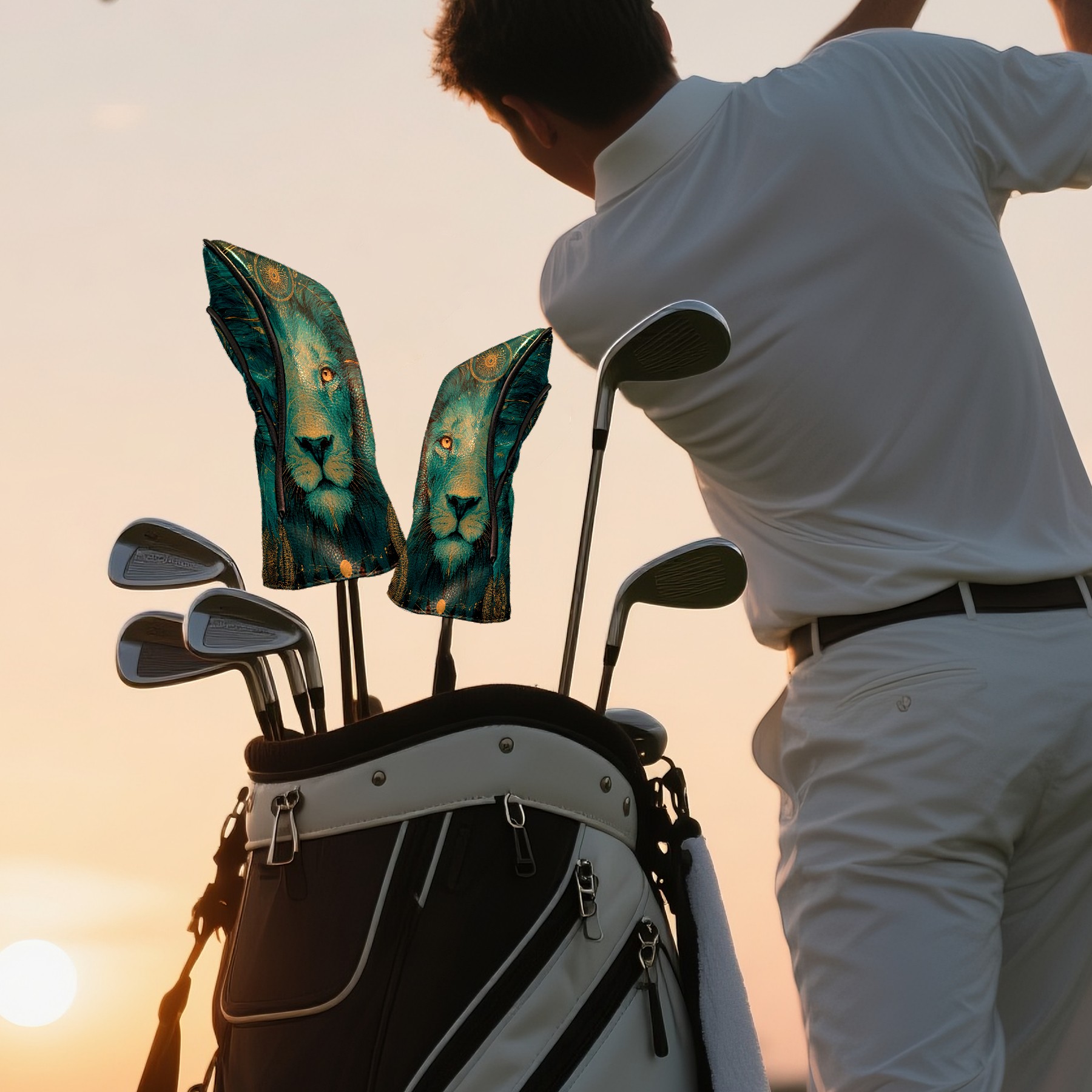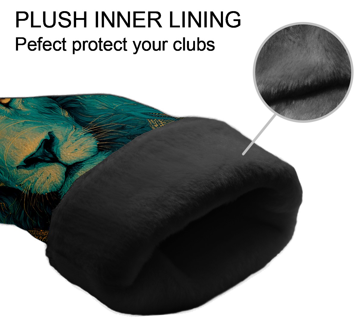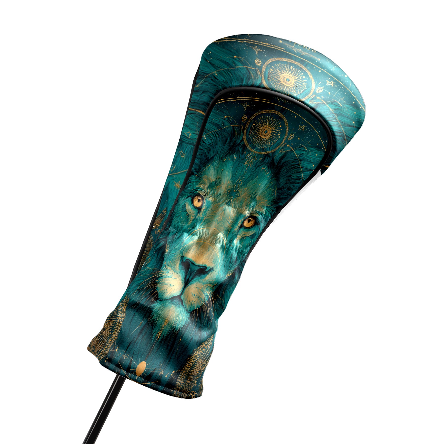 Golf Club Head Covers Teal Mystical Lion Portrait Design for Driver & Hybrid, Waterproof PU Leather with Plush Velvet Lining, Scratch Protection & Secure Fit, Ideal Golf Gift for Men Women