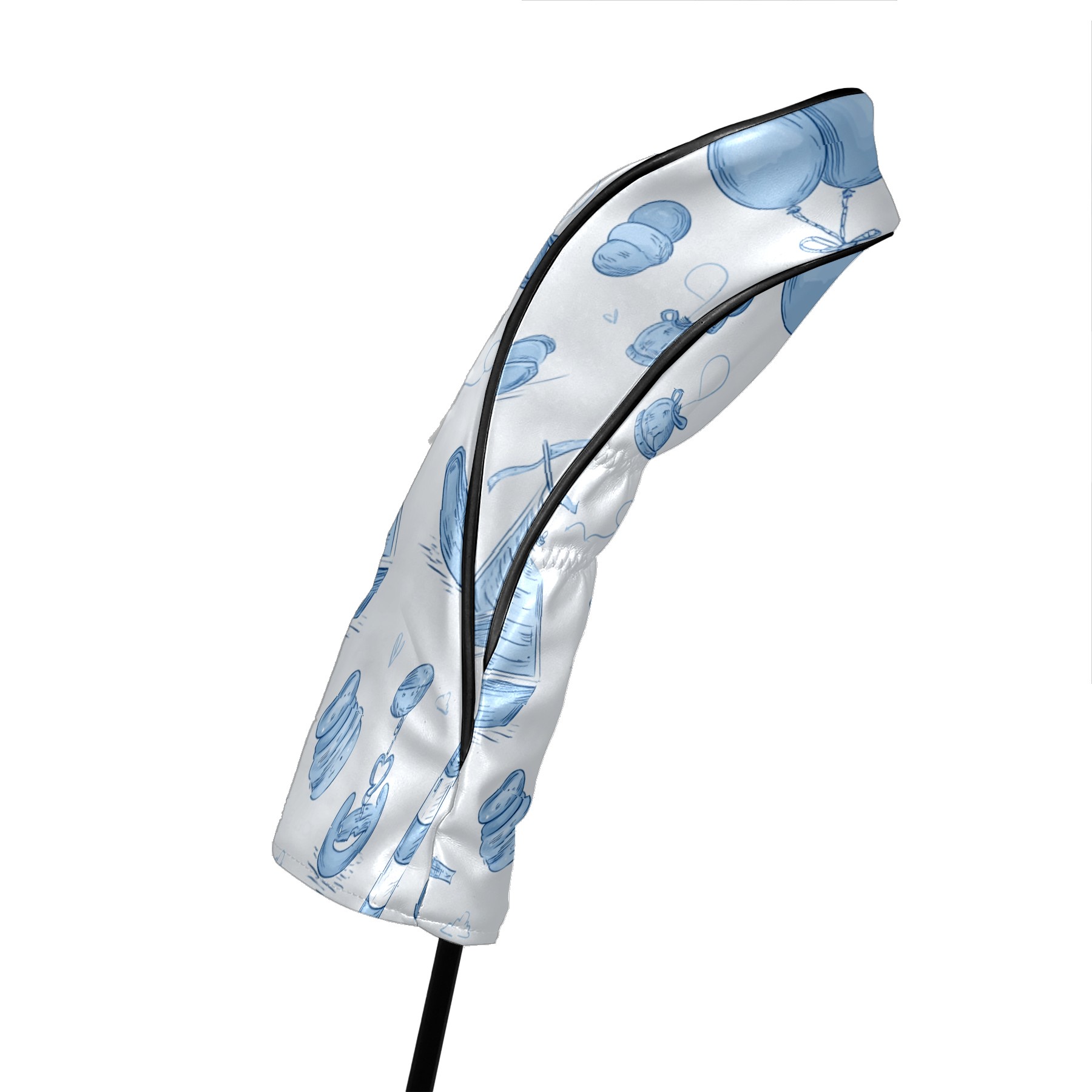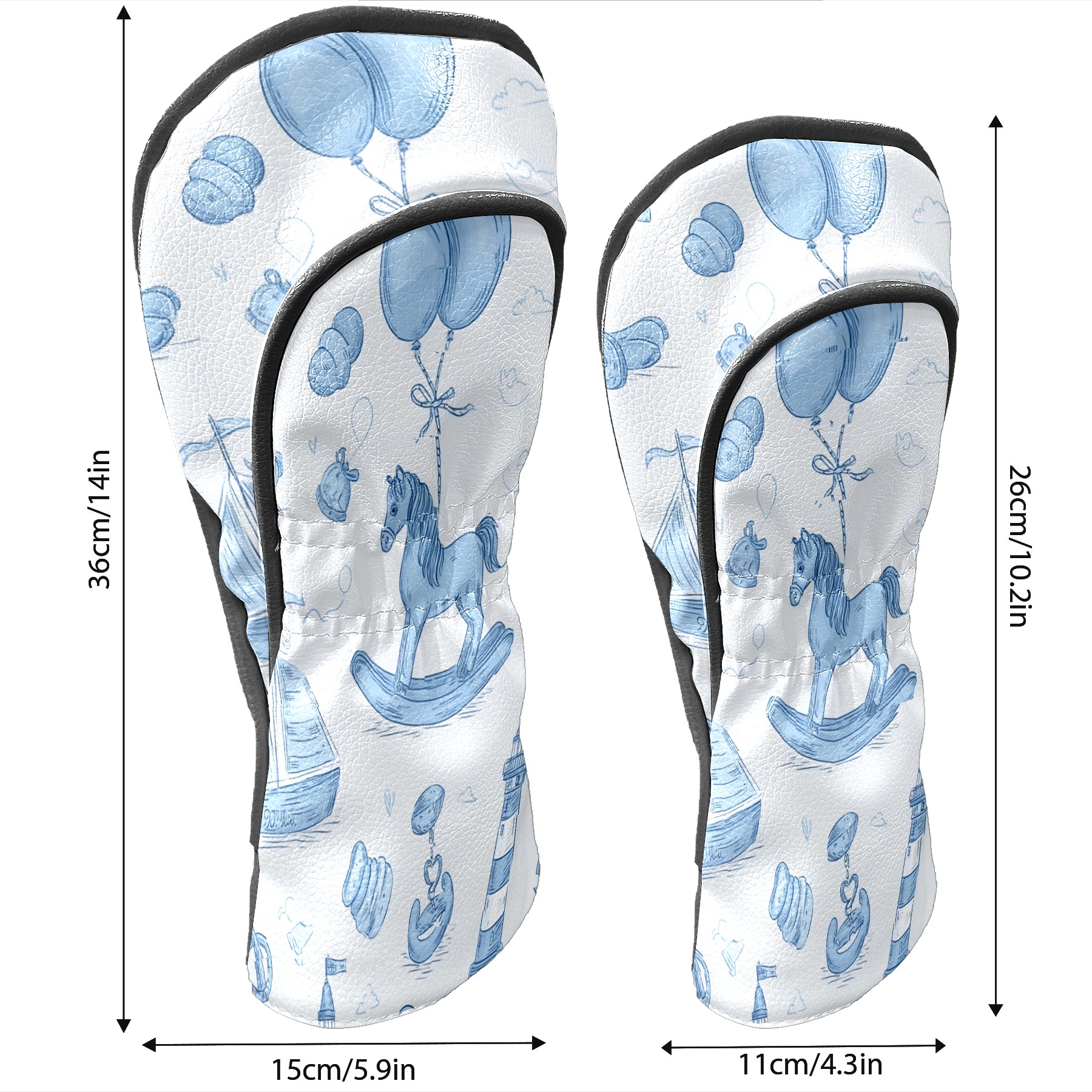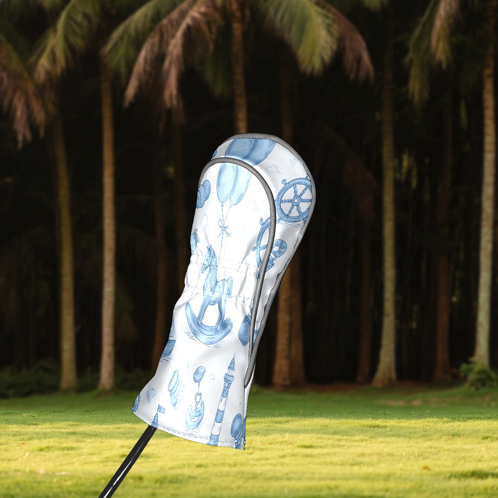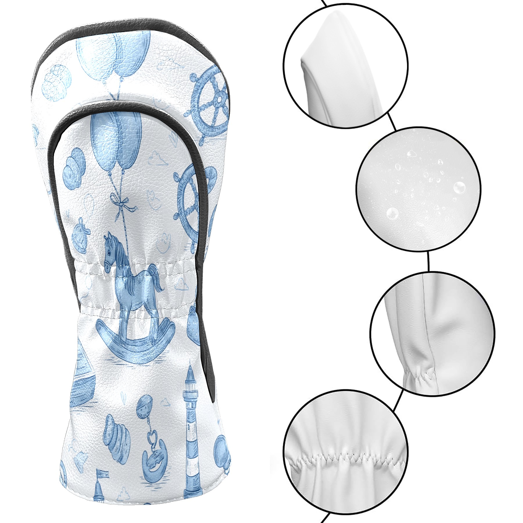 Golf Club Head Covers Light Blue Nautical Toys Design for Driver & Hybrid, Waterproof PU Leather with Plush Velvet Lining, Scratch Protection & Secure Fit, Ideal Golf Gift for Men Women