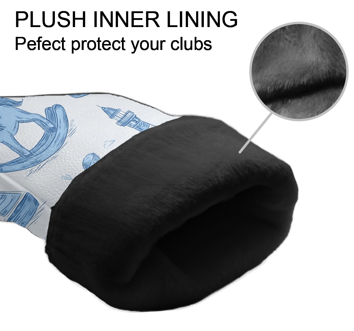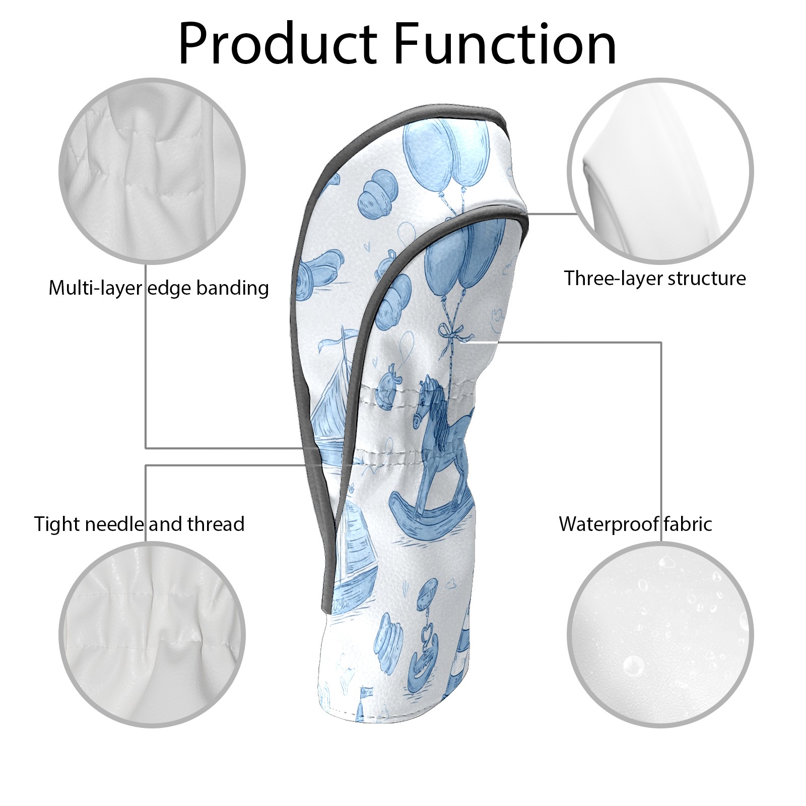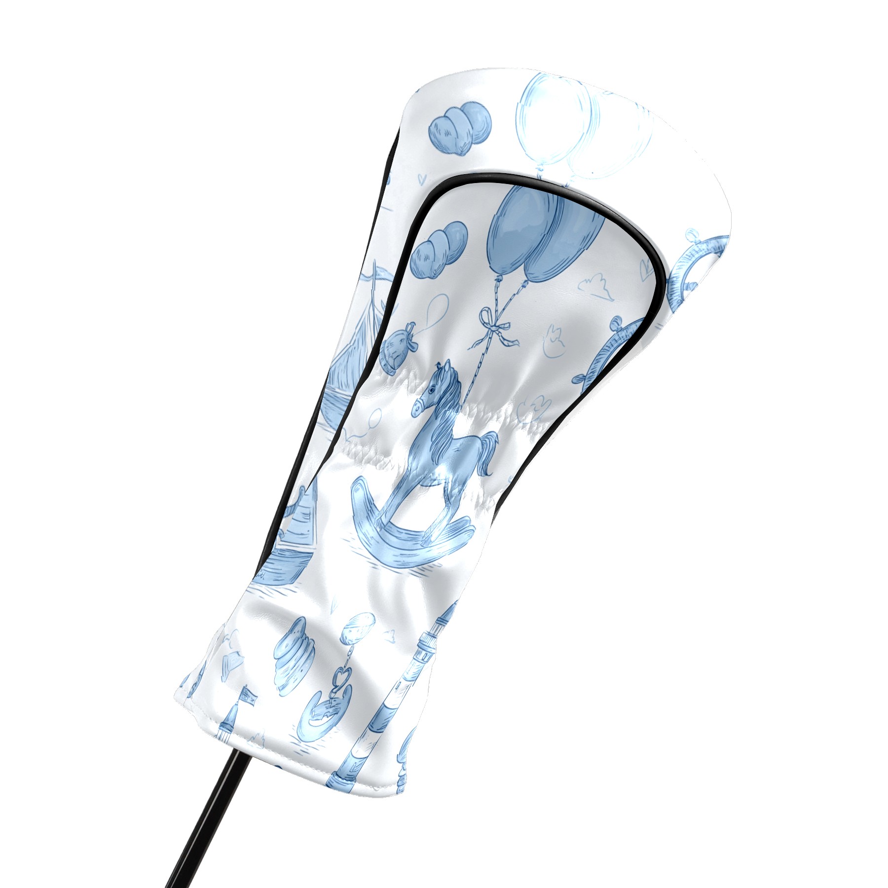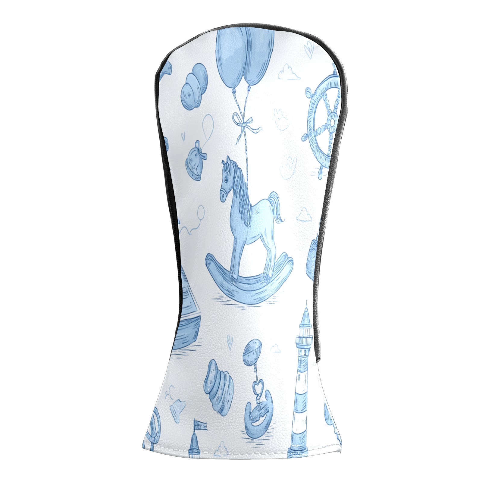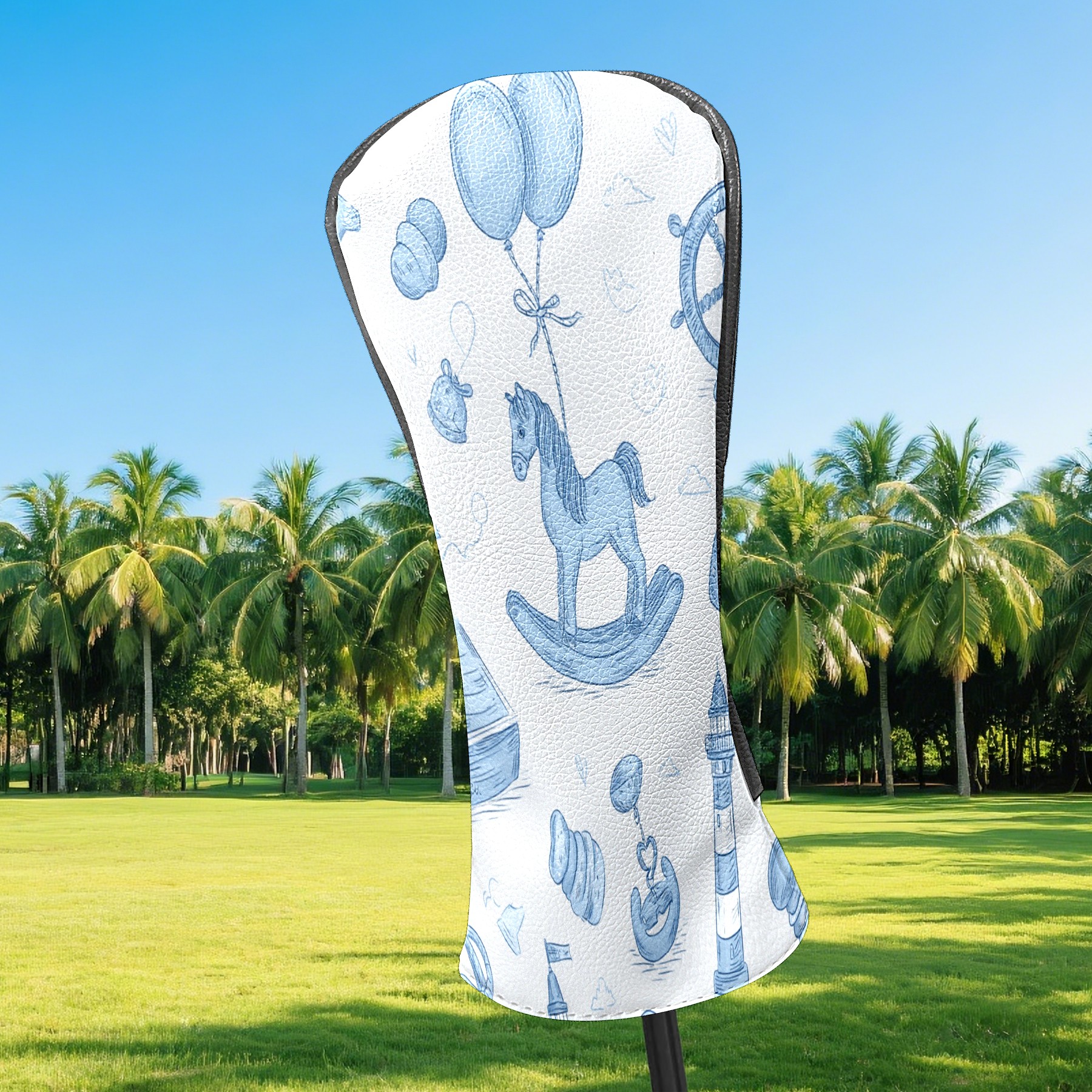 Golf Club Head Covers Light Blue Nautical Toys Design for Driver & Hybrid, Waterproof PU Leather with Plush Velvet Lining, Scratch Protection & Secure Fit, Ideal Golf Gift for Men Women