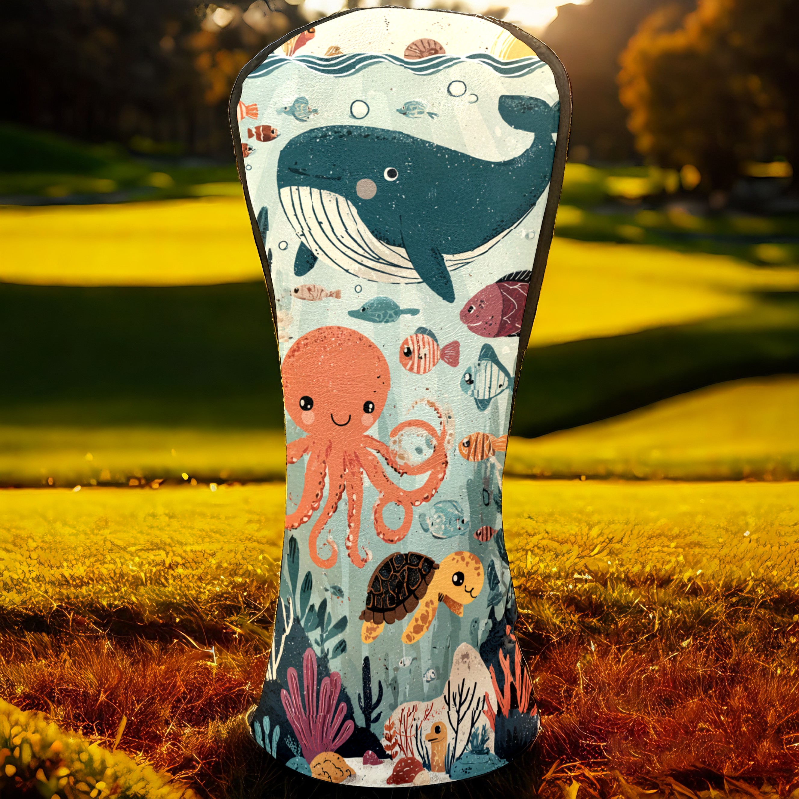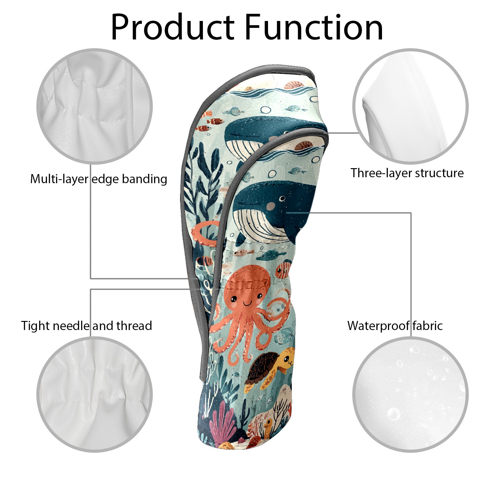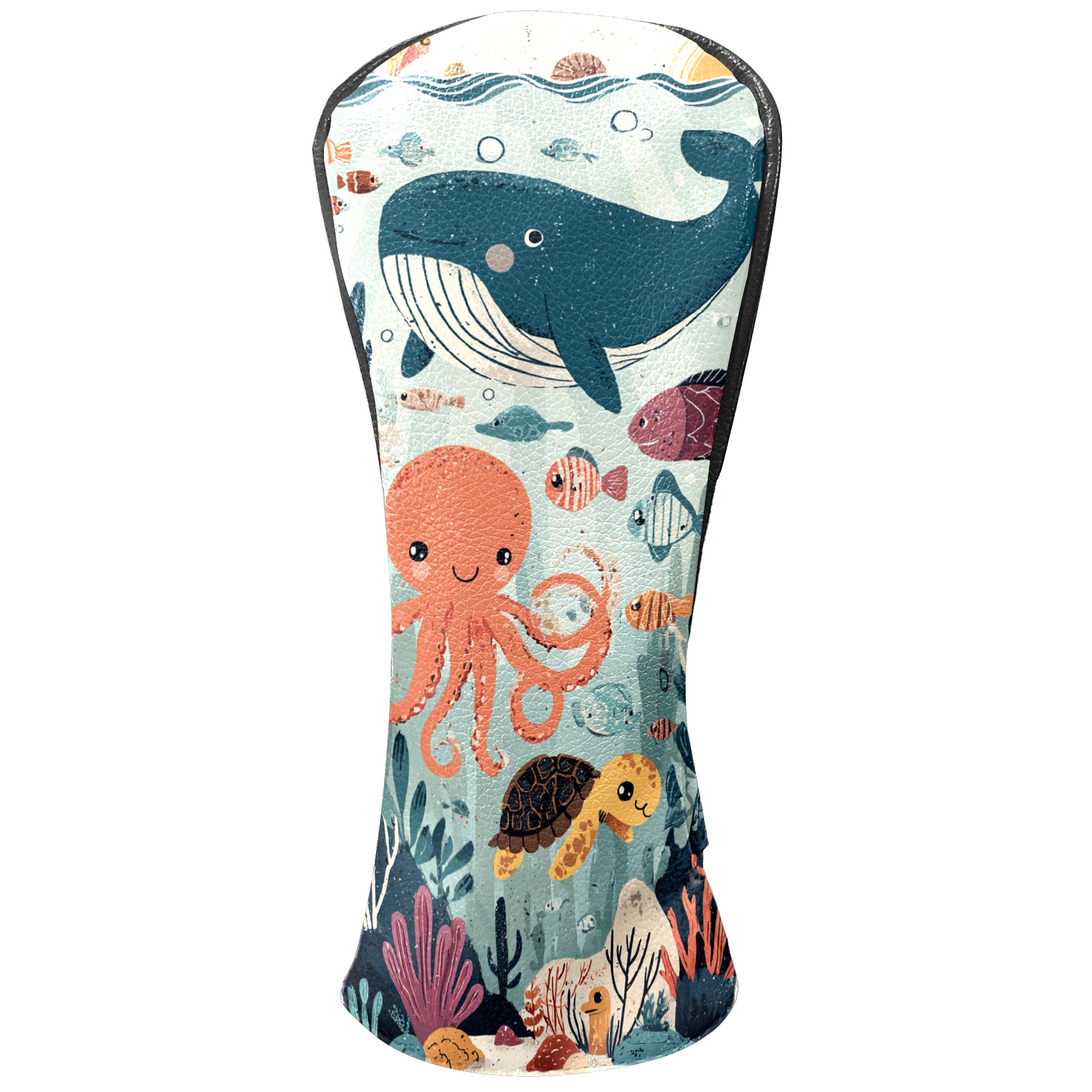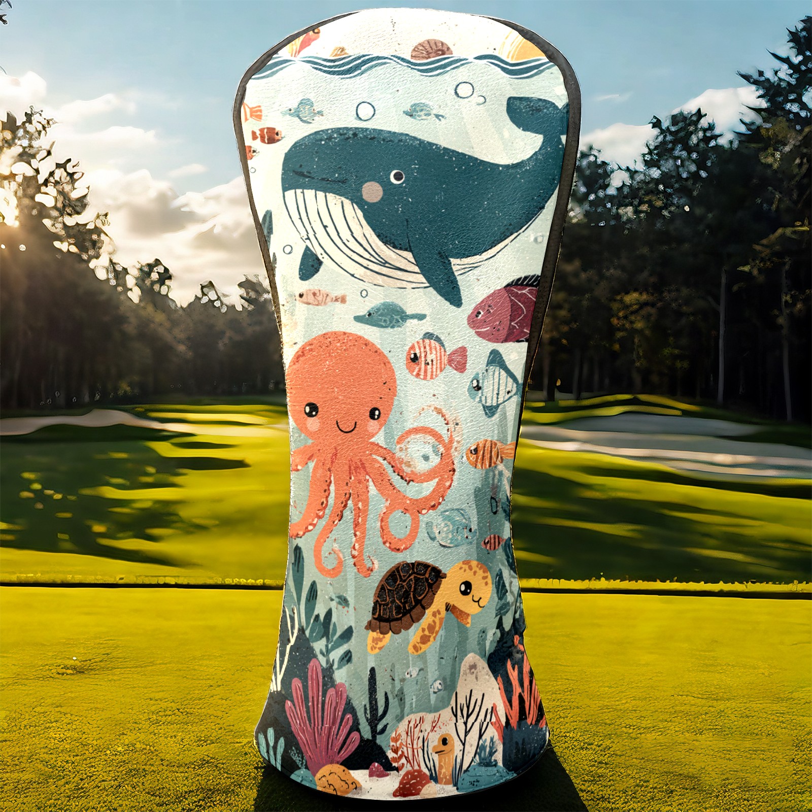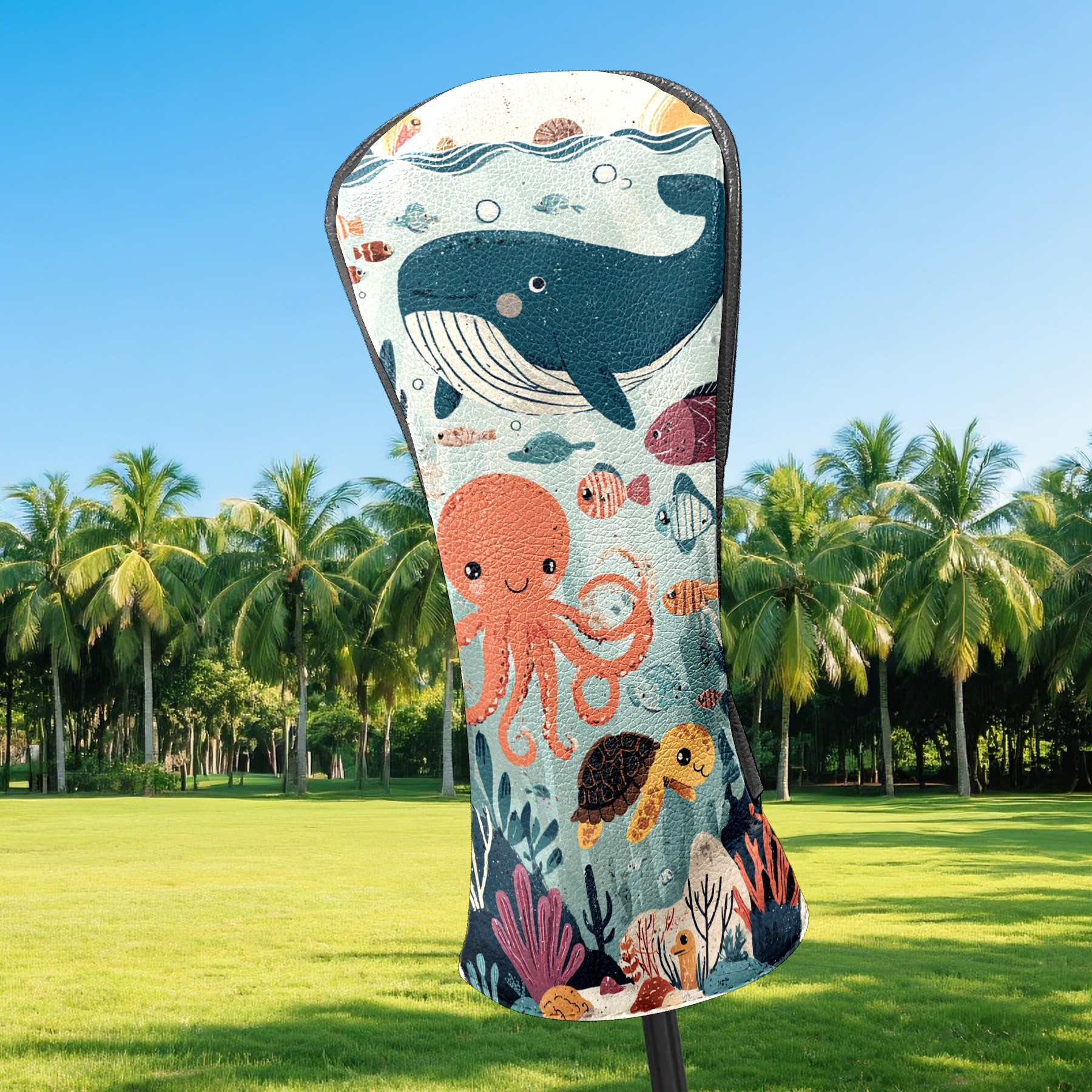 Golf Club Head Covers Blue Ocean Whale Octopus Design for Driver & Hybrid, Waterproof PU Leather with Plush Velvet Lining, Scratch Protection & Secure Fit, Ideal Golf Gift for Men Women