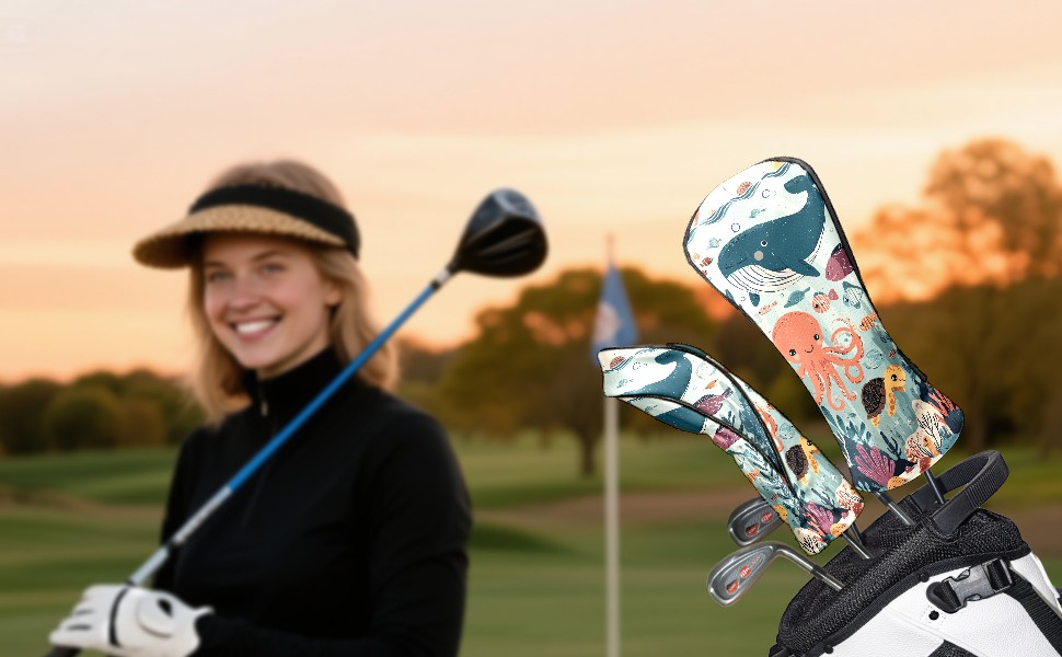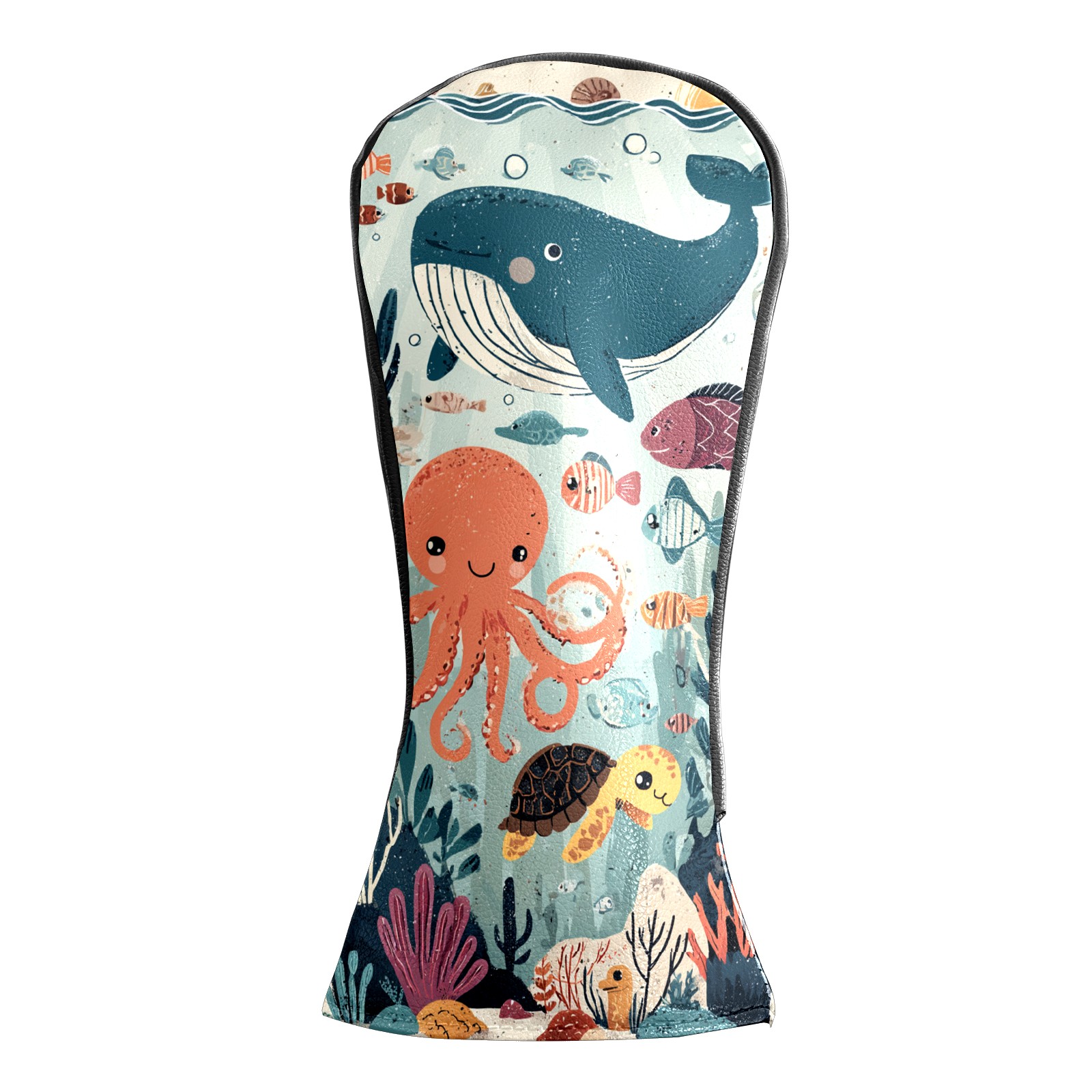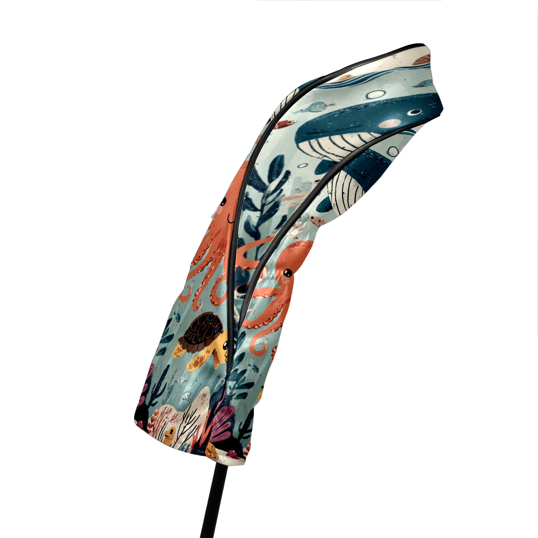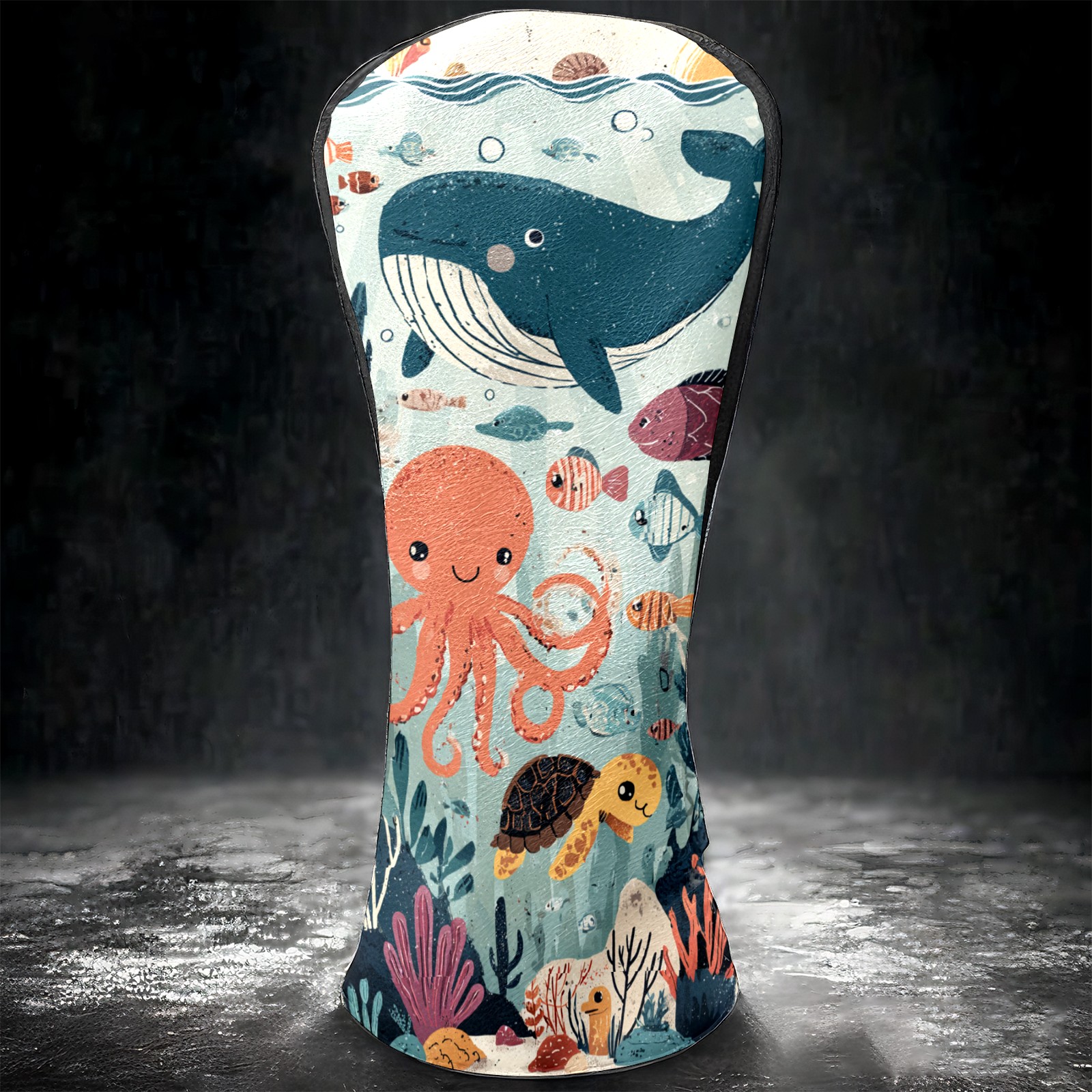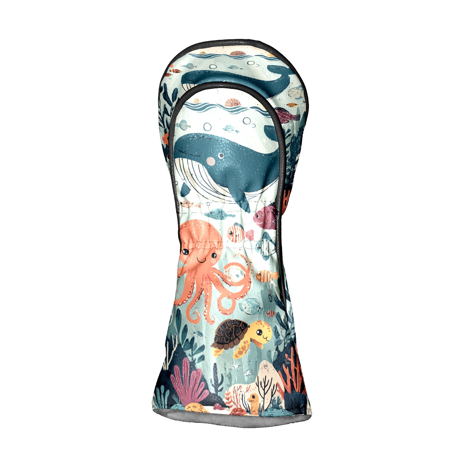 Golf Club Head Covers Blue Ocean Whale Octopus Design for Driver & Hybrid, Waterproof PU Leather with Plush Velvet Lining, Scratch Protection & Secure Fit, Ideal Golf Gift for Men Women