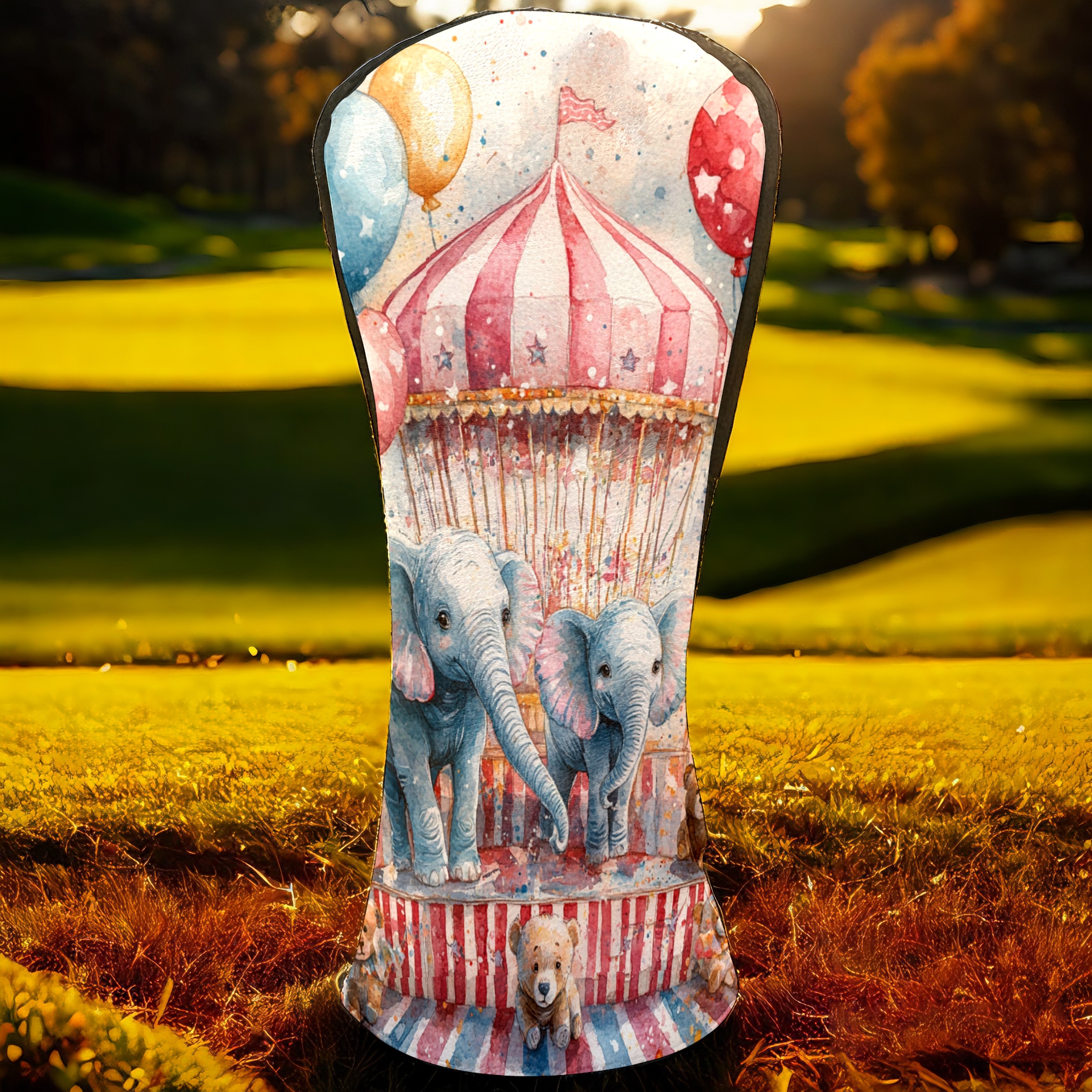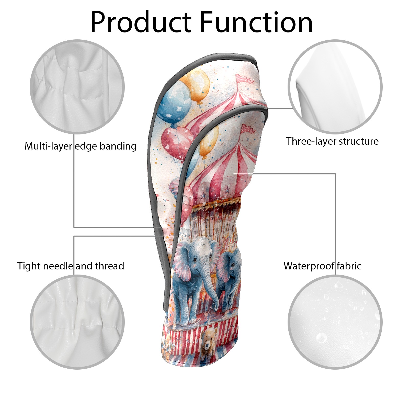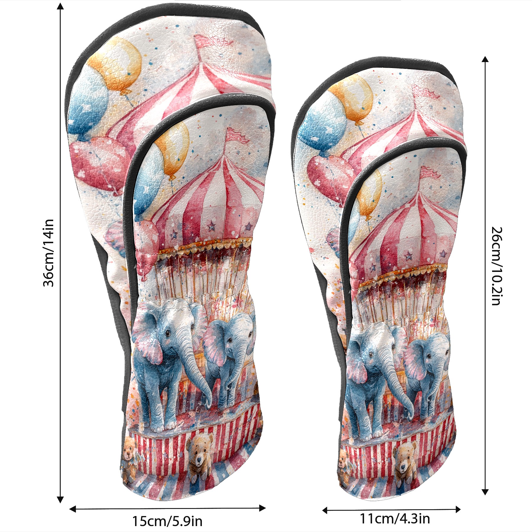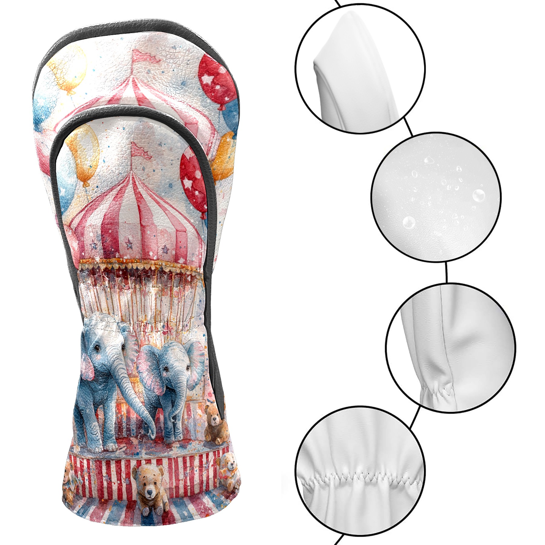 Golf Club Head Covers Circus Elephant Balloons Design for Driver & Hybrid, Waterproof PU Leather with Plush Velvet Lining, Scratch Protection & Secure Fit, Ideal Golf Gift for Men Women
