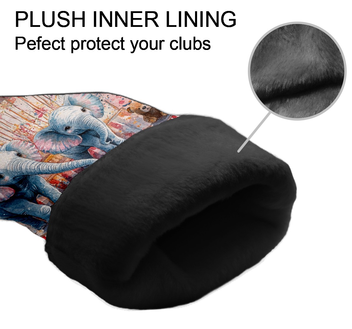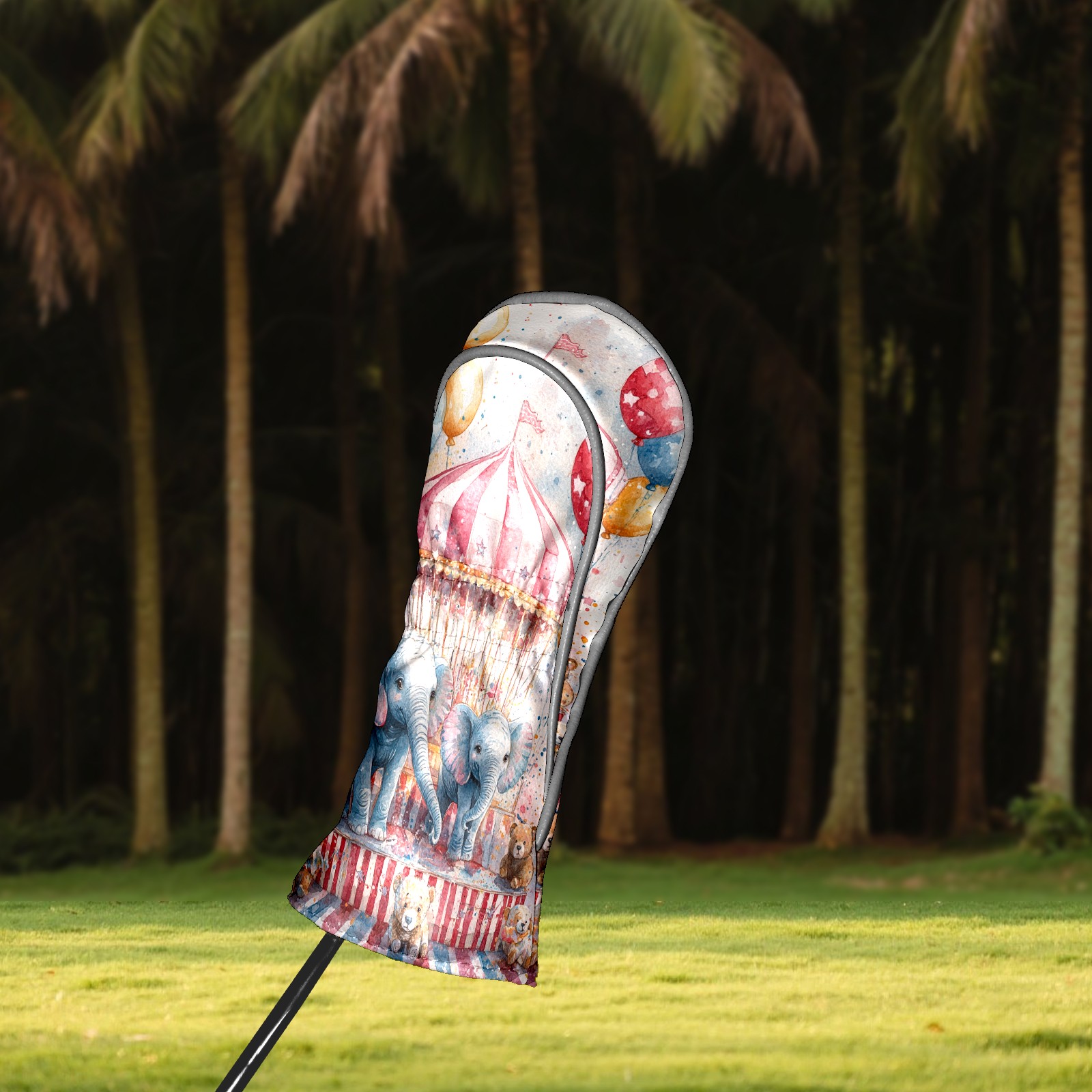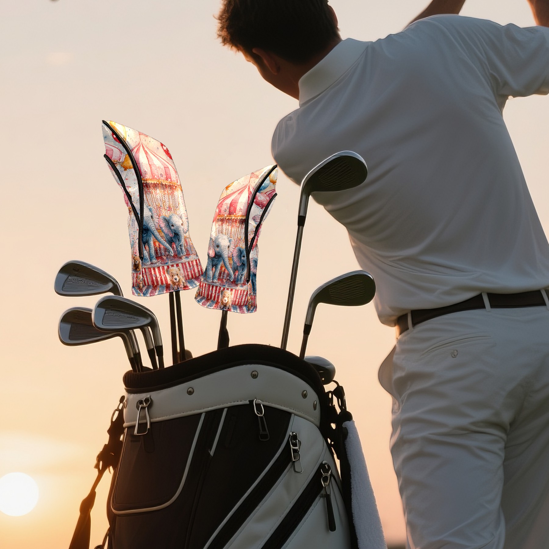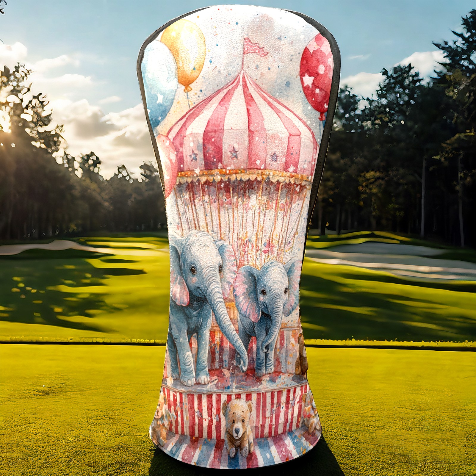 Golf Club Head Covers Circus Elephant Balloons Design for Driver & Hybrid, Waterproof PU Leather with Plush Velvet Lining, Scratch Protection & Secure Fit, Ideal Golf Gift for Men Women