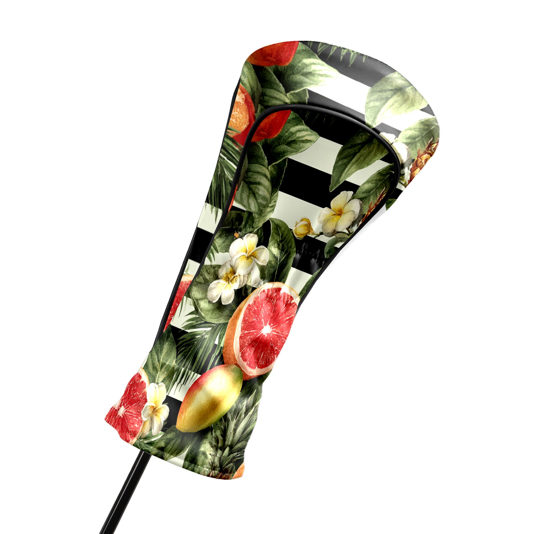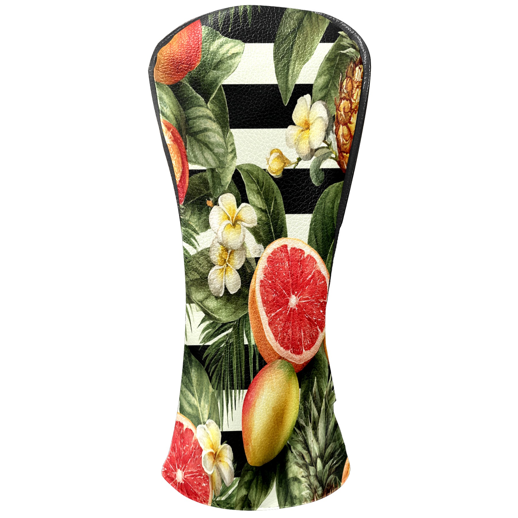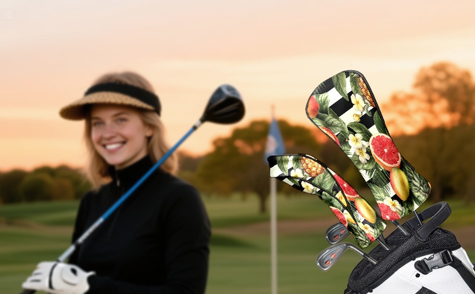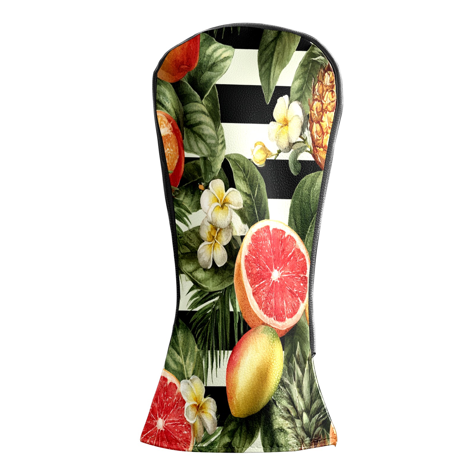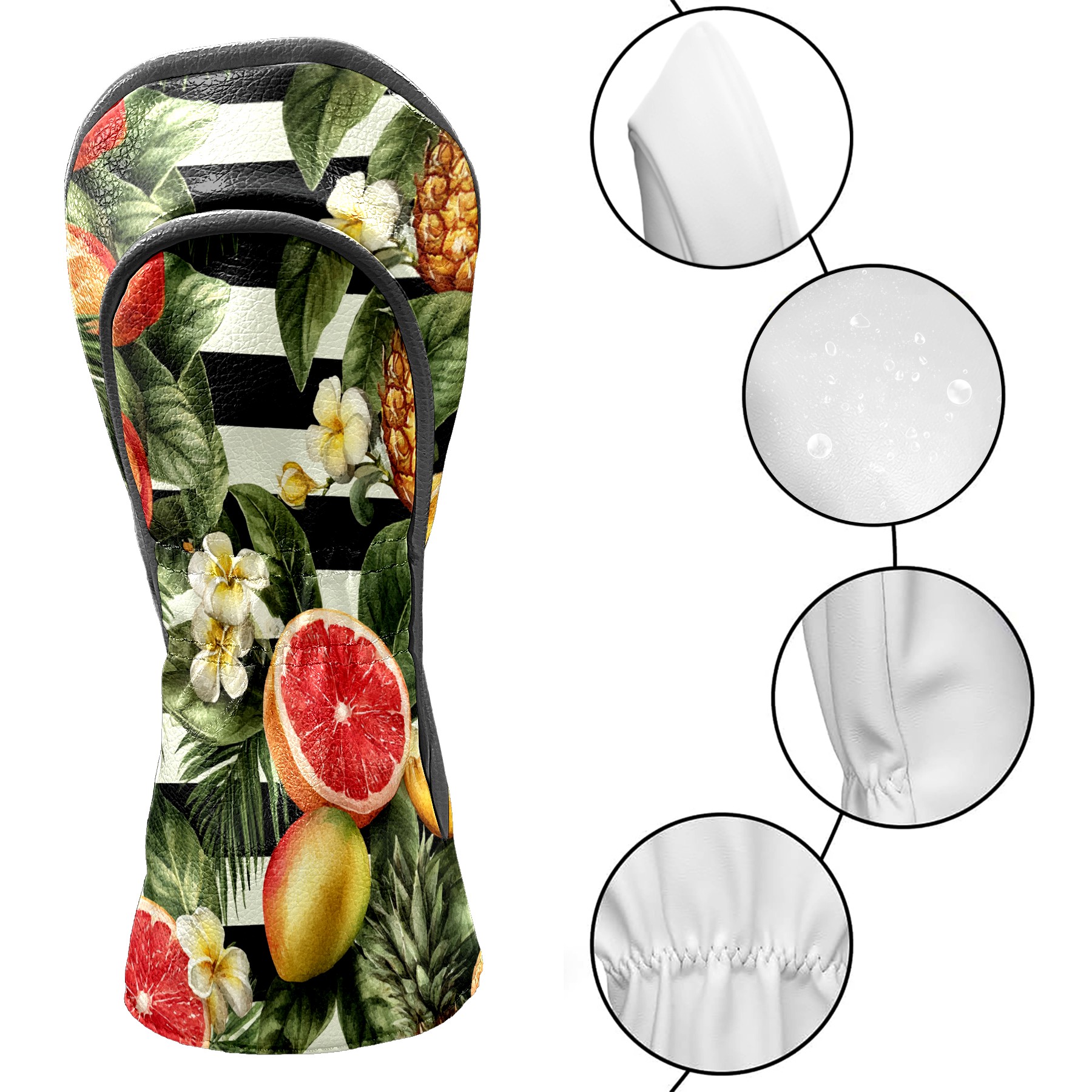 Golf Club Head Covers Tropical Fruits Striped Background Design for Driver & Hybrid, Waterproof PU Leather with Plush Velvet Lining, Scratch Protection & Secure Fit, Ideal Golf Gift for Men Women