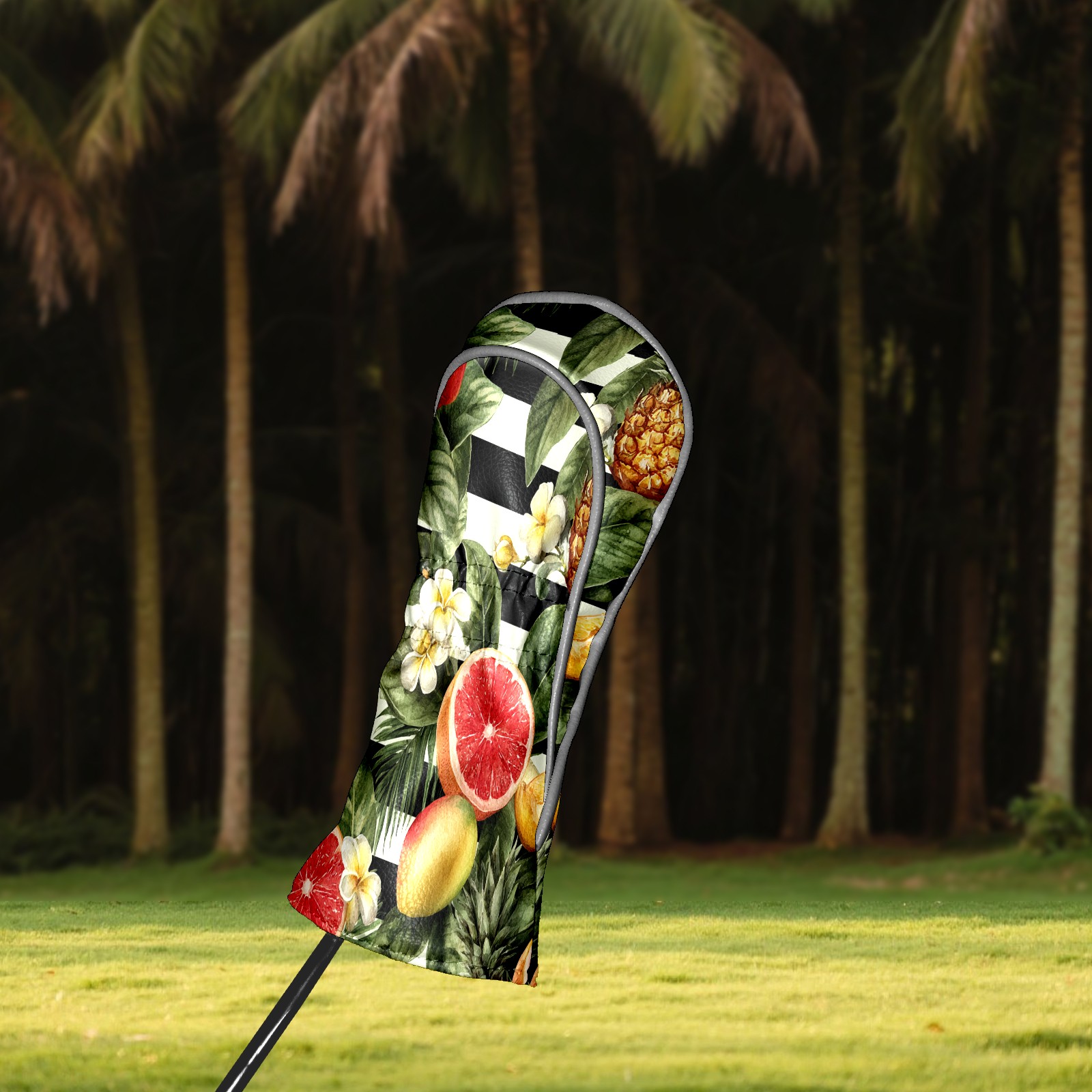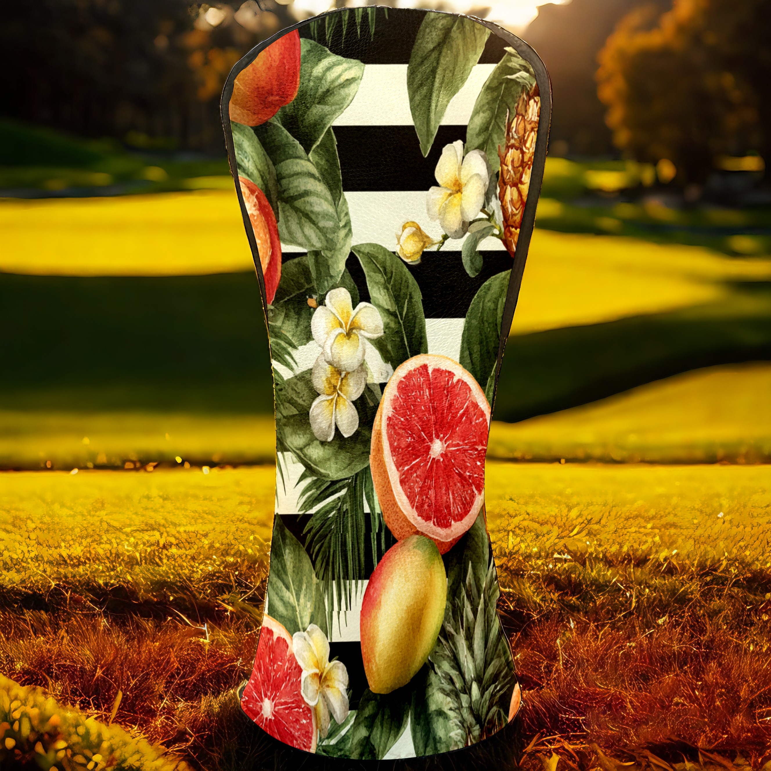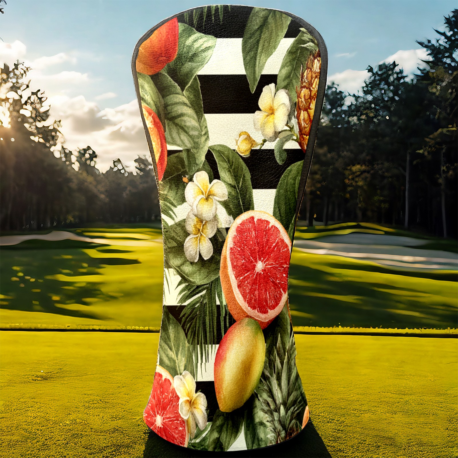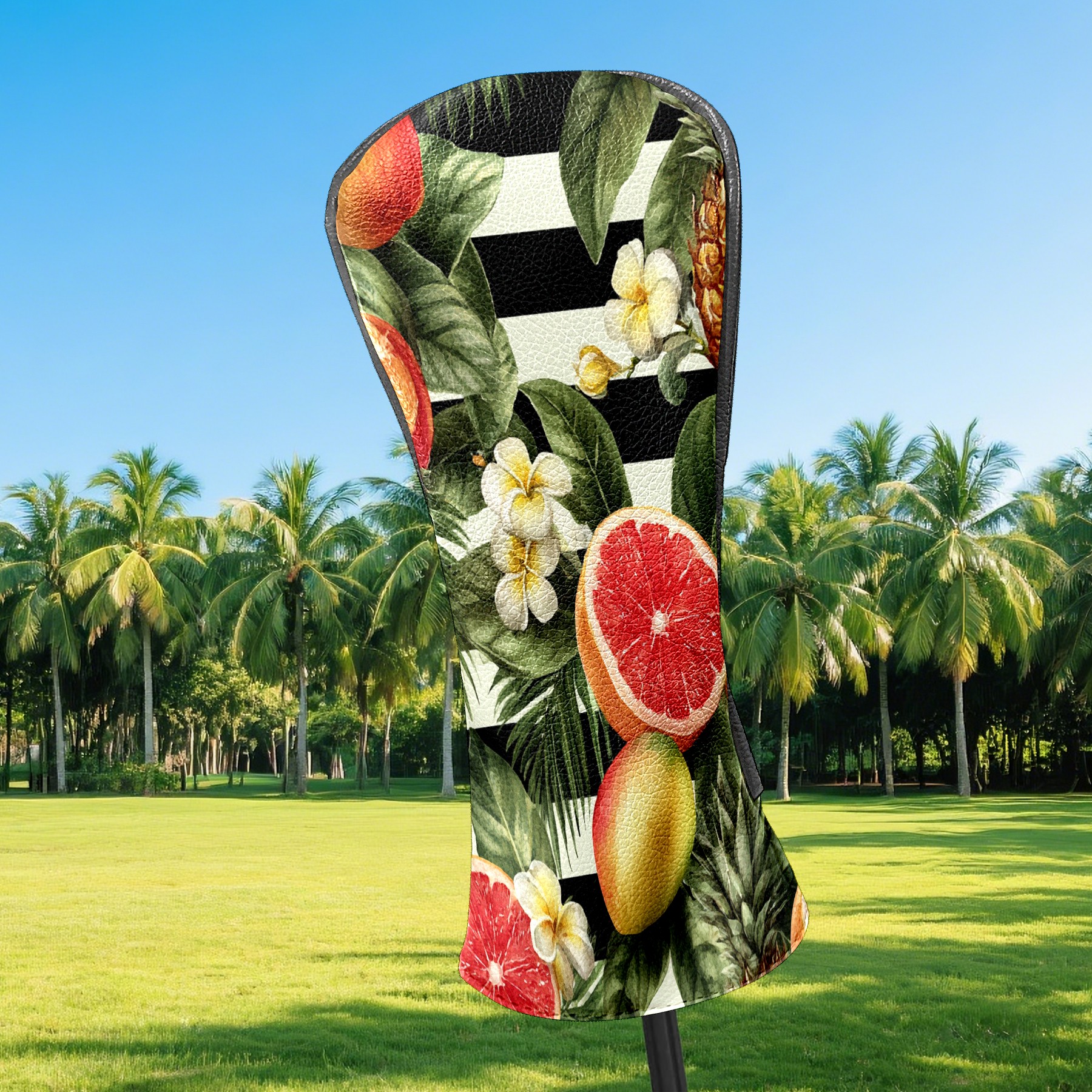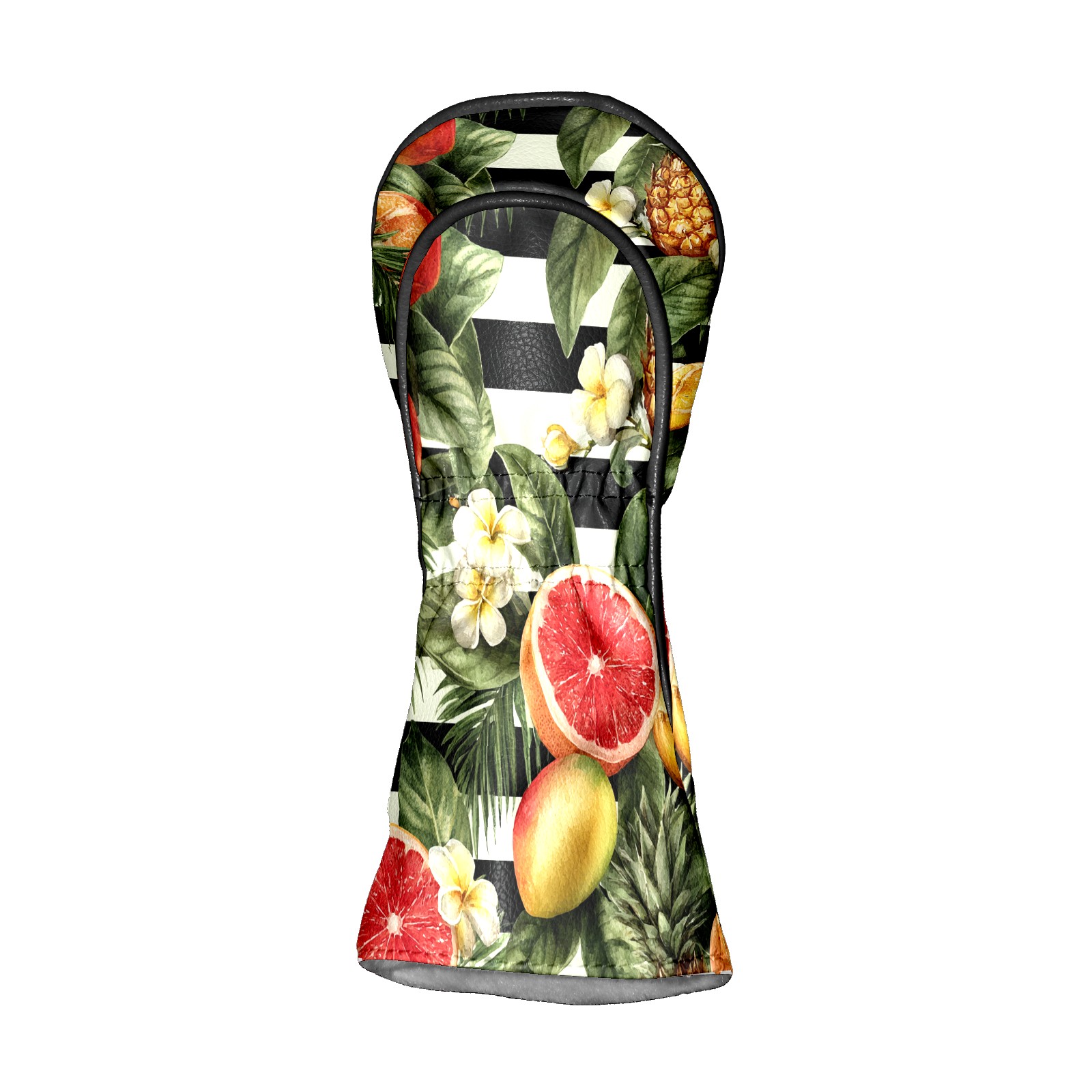 Golf Club Head Covers Tropical Fruits Striped Background Design for Driver & Hybrid, Waterproof PU Leather with Plush Velvet Lining, Scratch Protection & Secure Fit, Ideal Golf Gift for Men Women