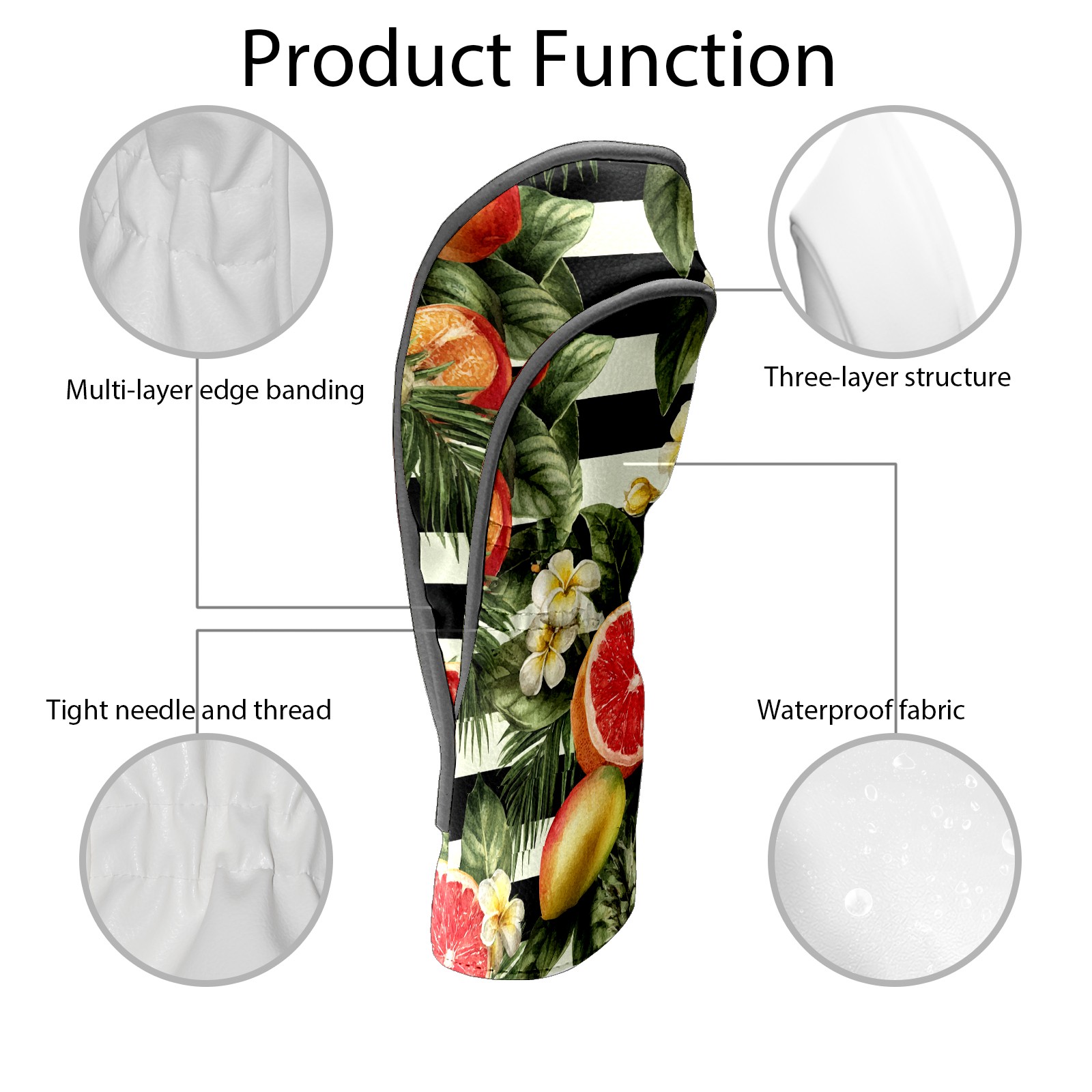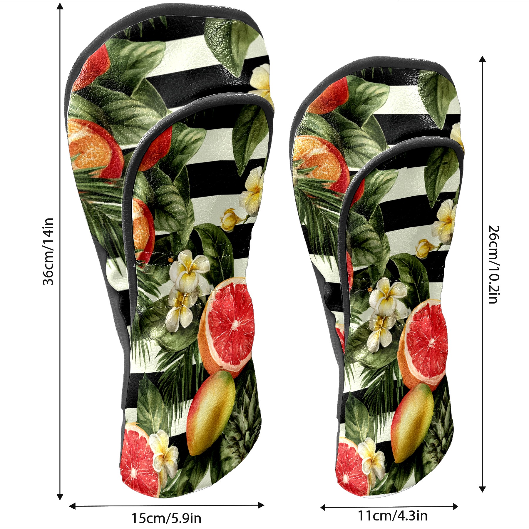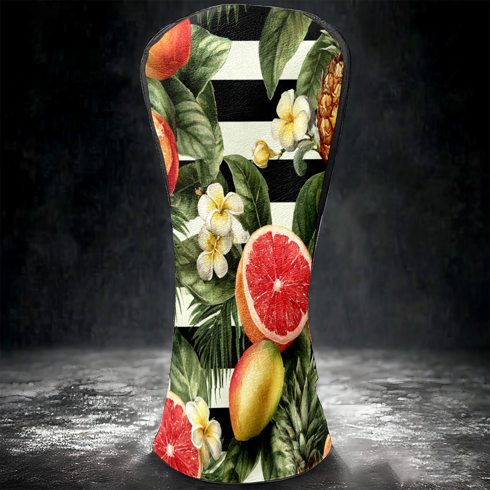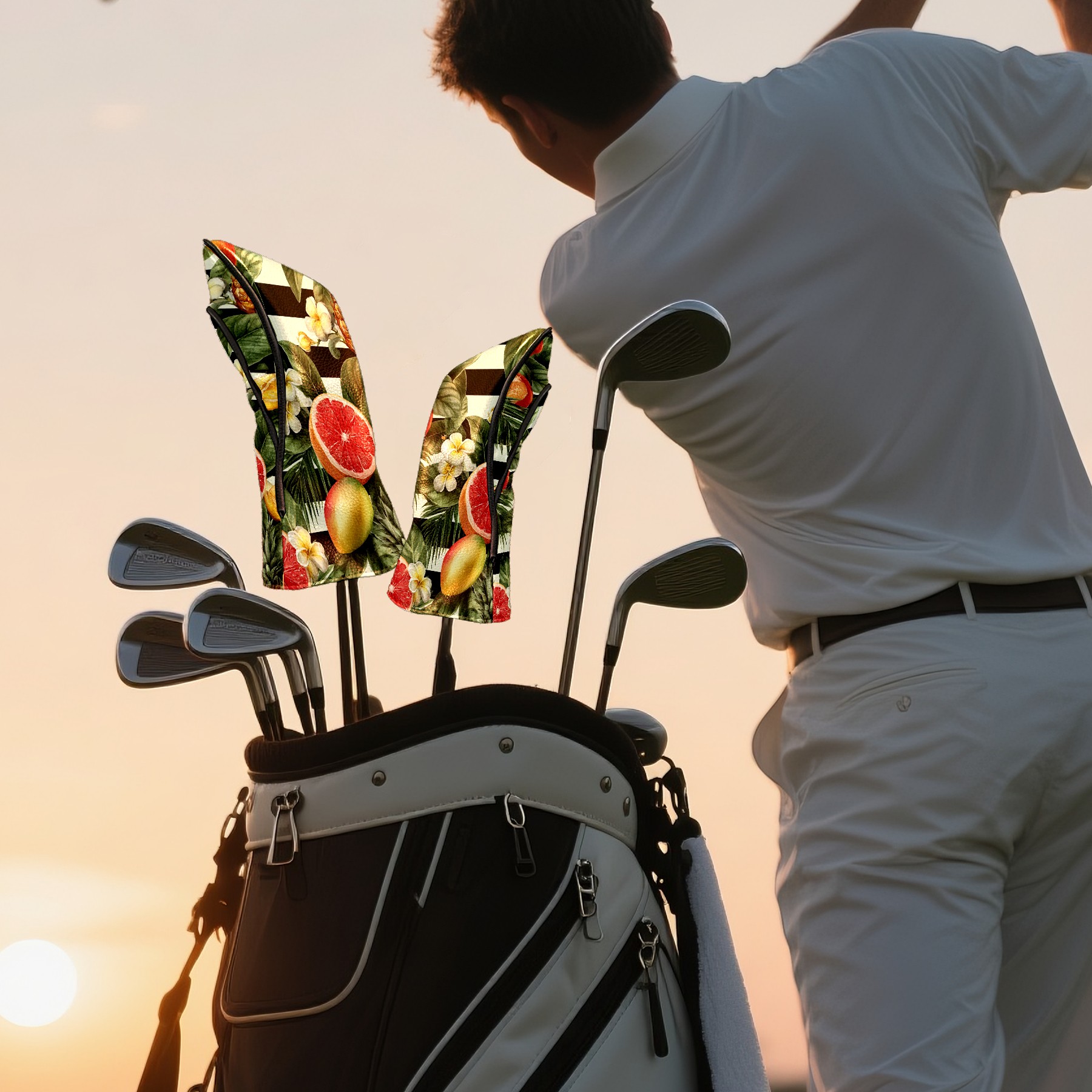 Golf Club Head Covers Tropical Fruits Striped Background Design for Driver & Hybrid, Waterproof PU Leather with Plush Velvet Lining, Scratch Protection & Secure Fit, Ideal Golf Gift for Men Women