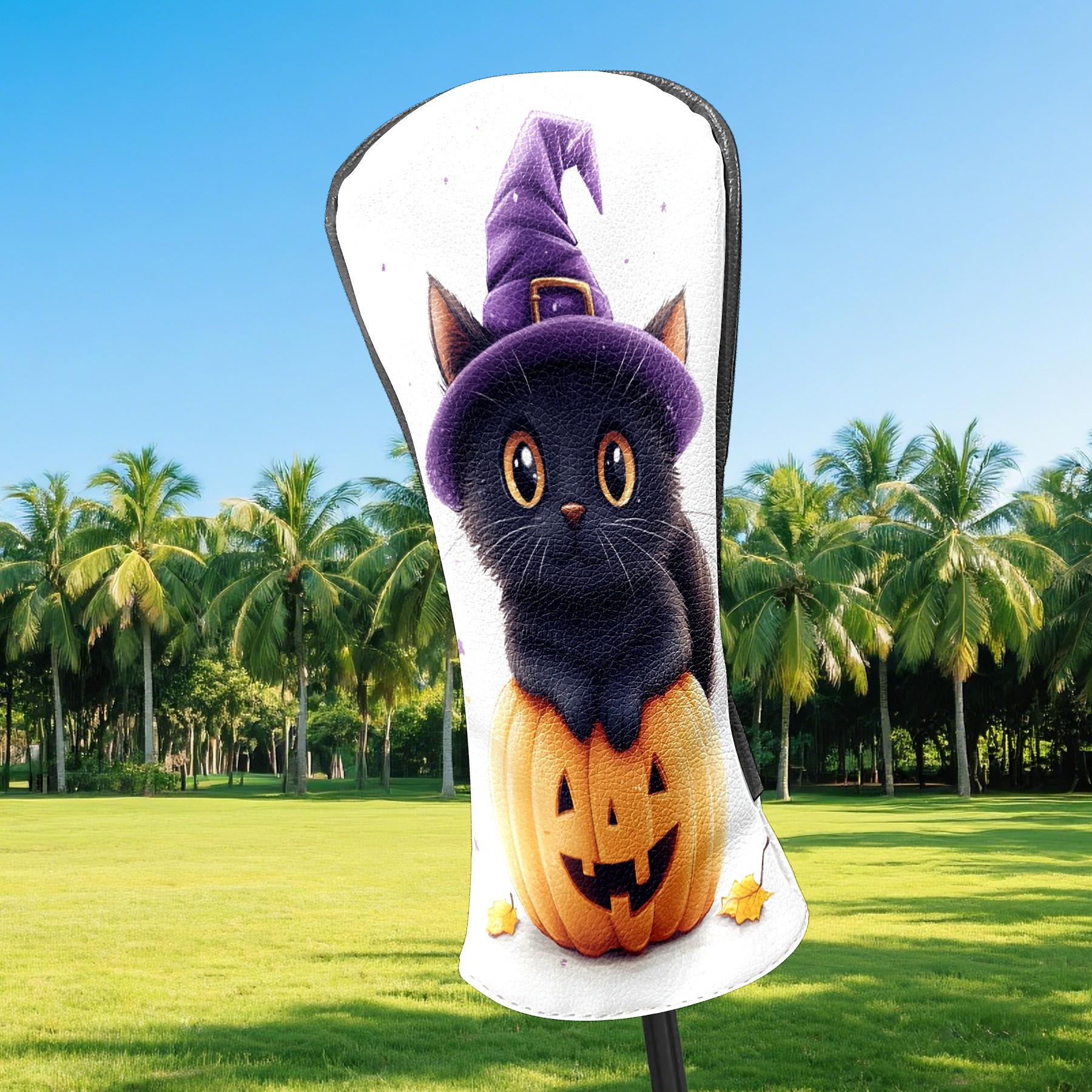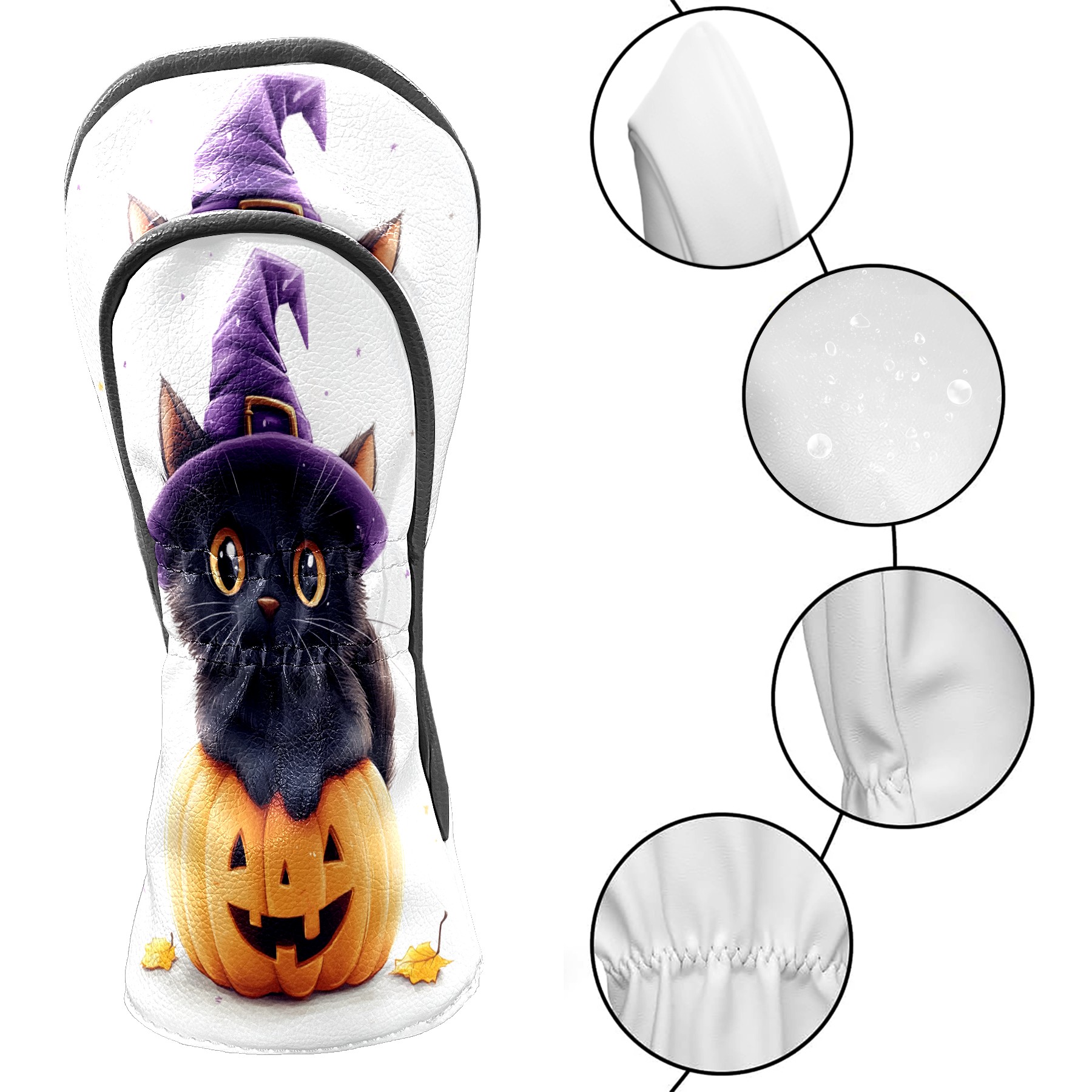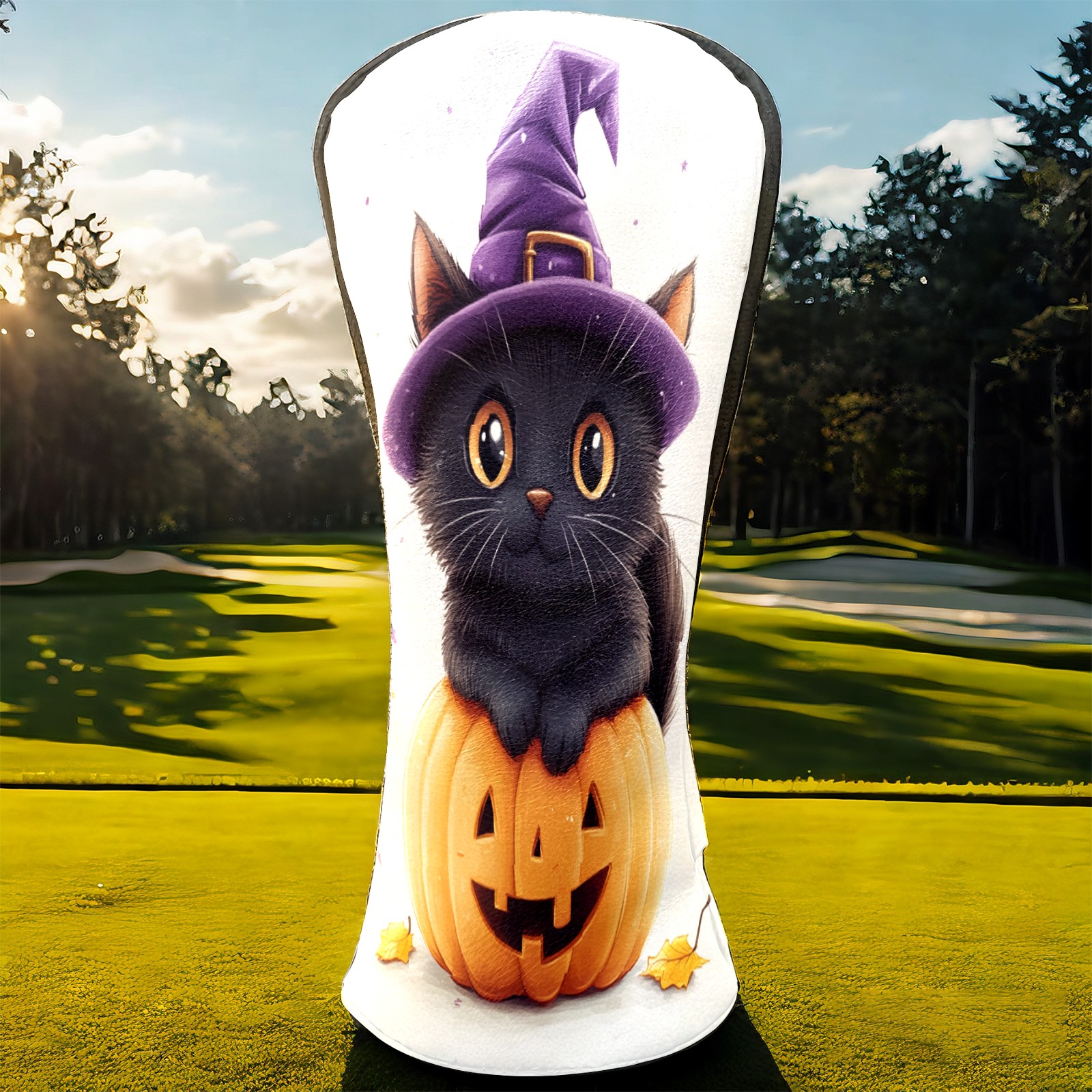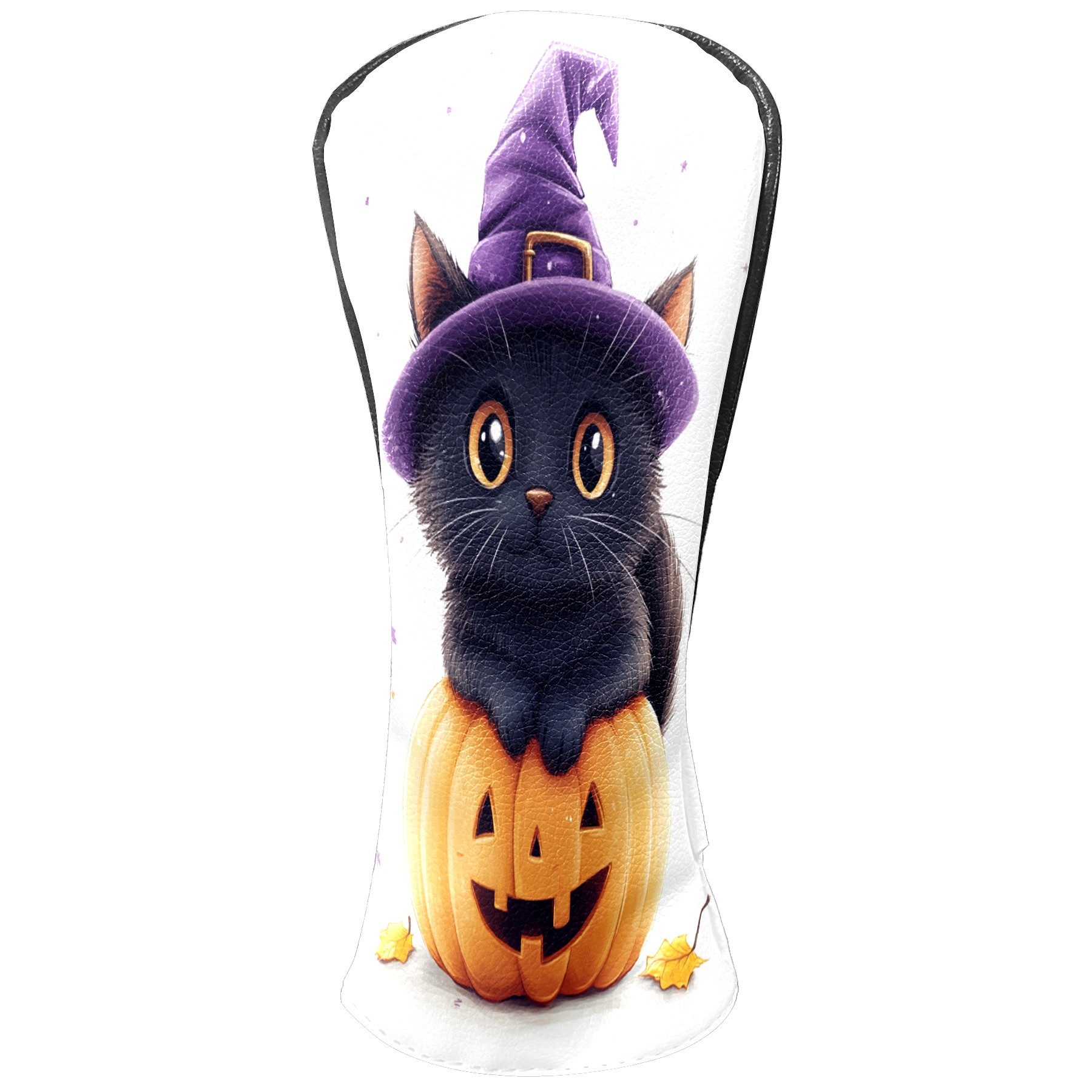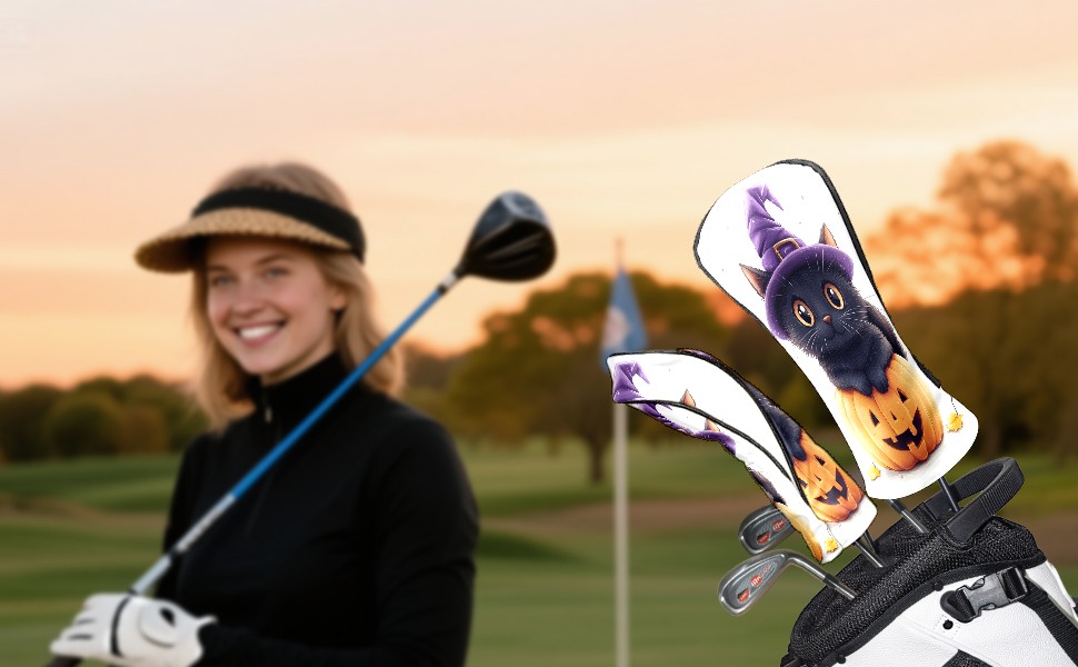 Golf Club Head Covers Halloween Black Cat Pumpkin Witch Hat Design for Driver & Hybrid, Waterproof PU Leather with Plush Velvet Lining, Scratch Protection & Secure Fit, Ideal Golf Gift for Men Women