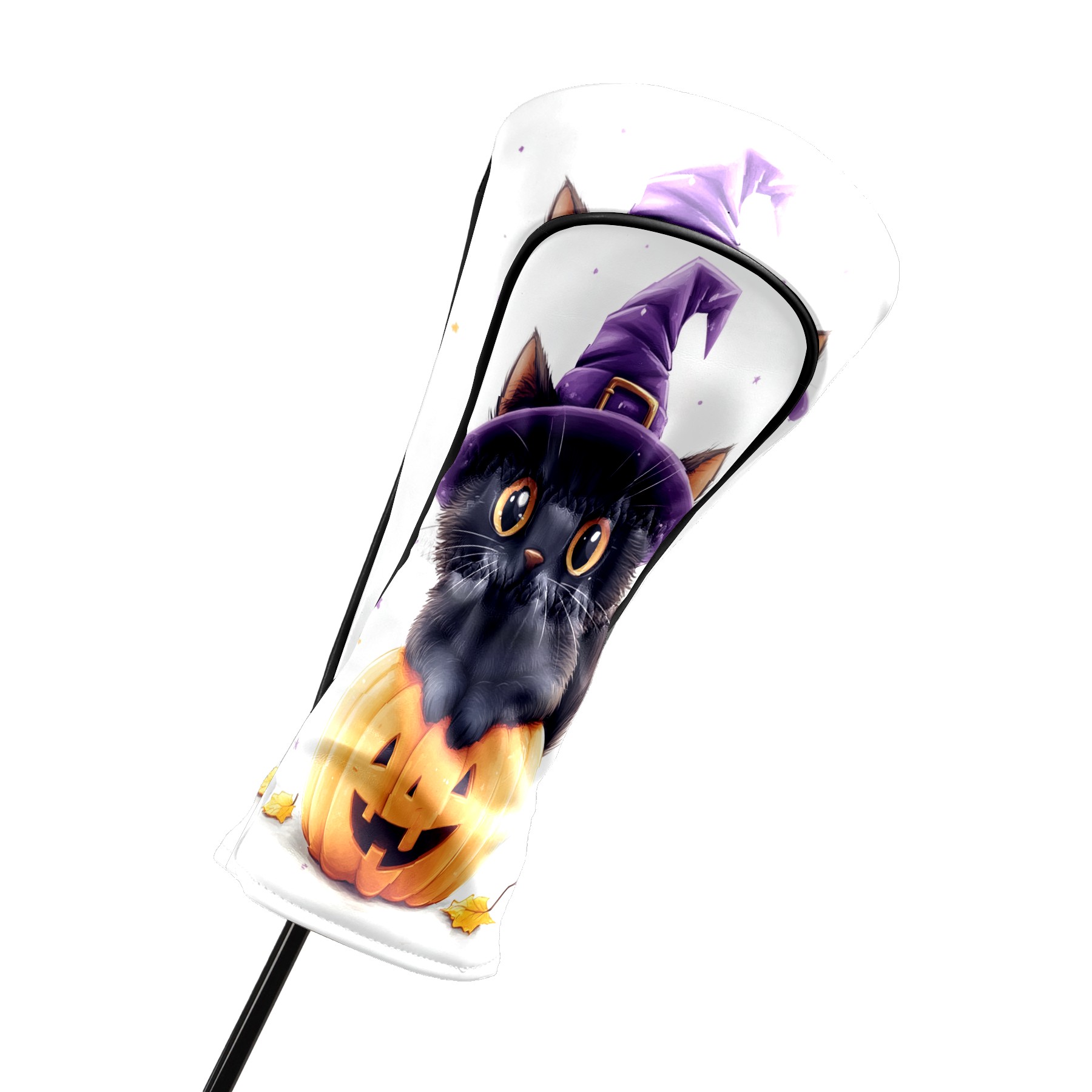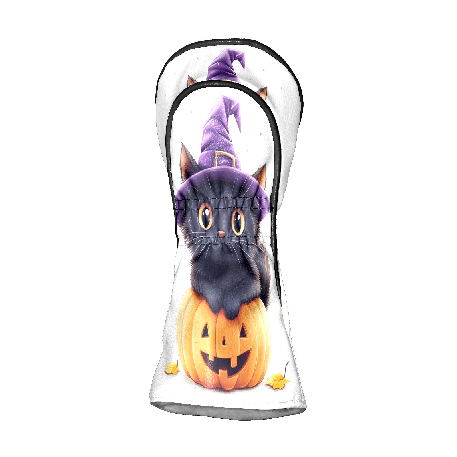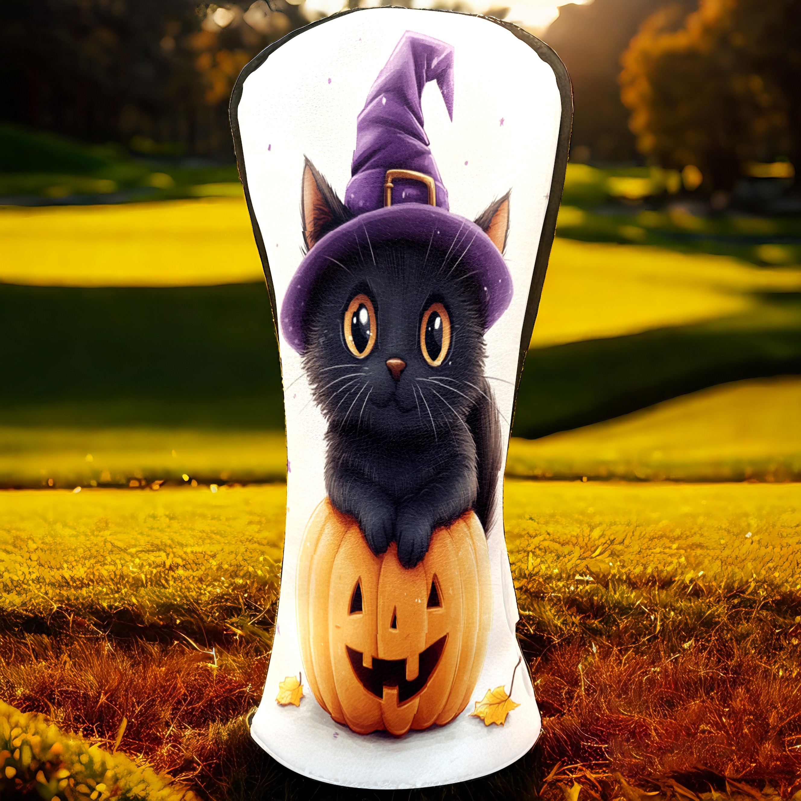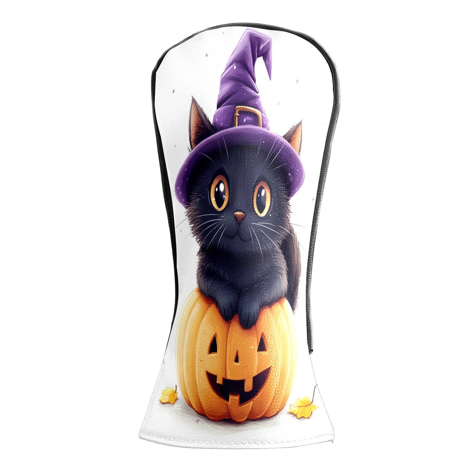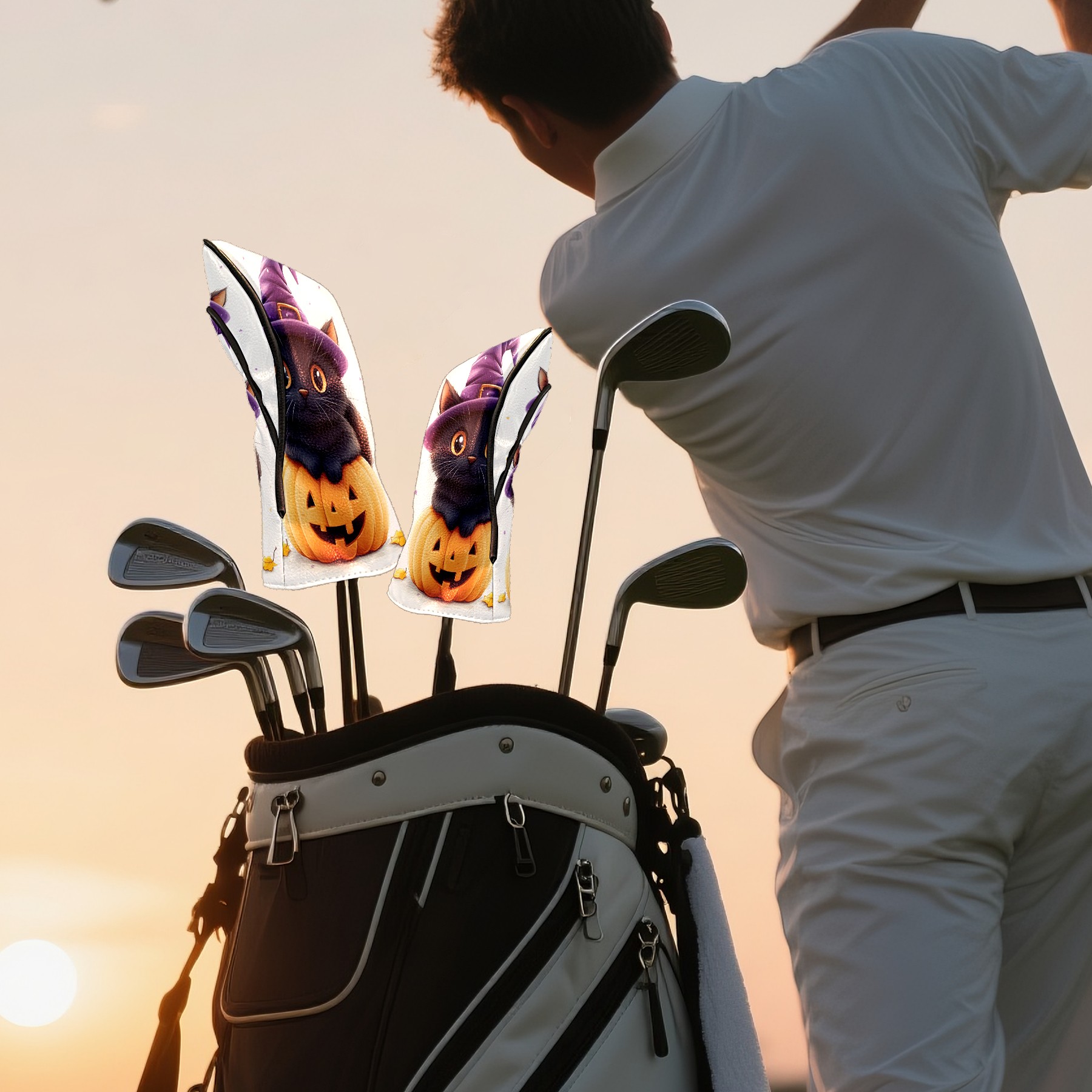 Golf Club Head Covers Halloween Black Cat Pumpkin Witch Hat Design for Driver & Hybrid, Waterproof PU Leather with Plush Velvet Lining, Scratch Protection & Secure Fit, Ideal Golf Gift for Men Women