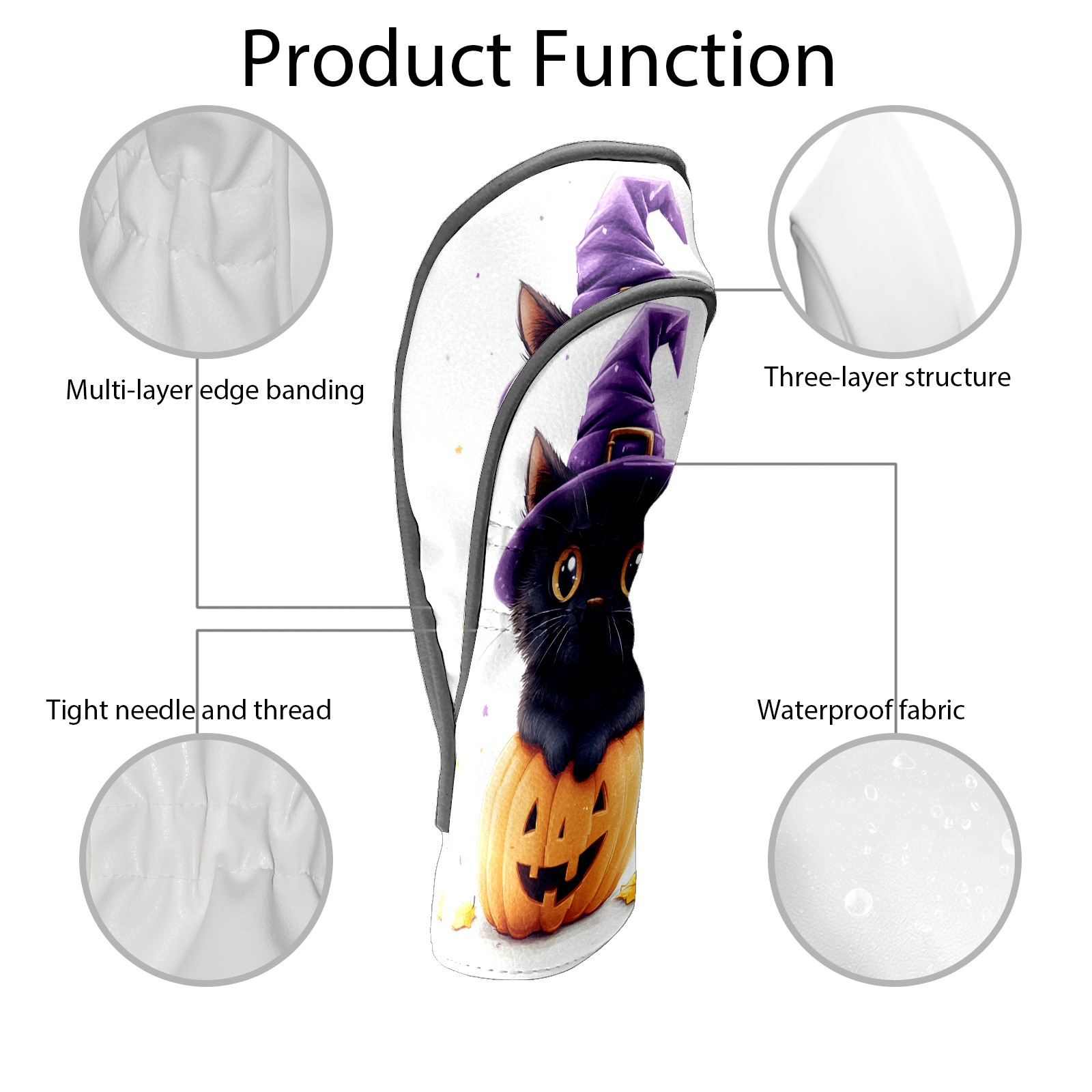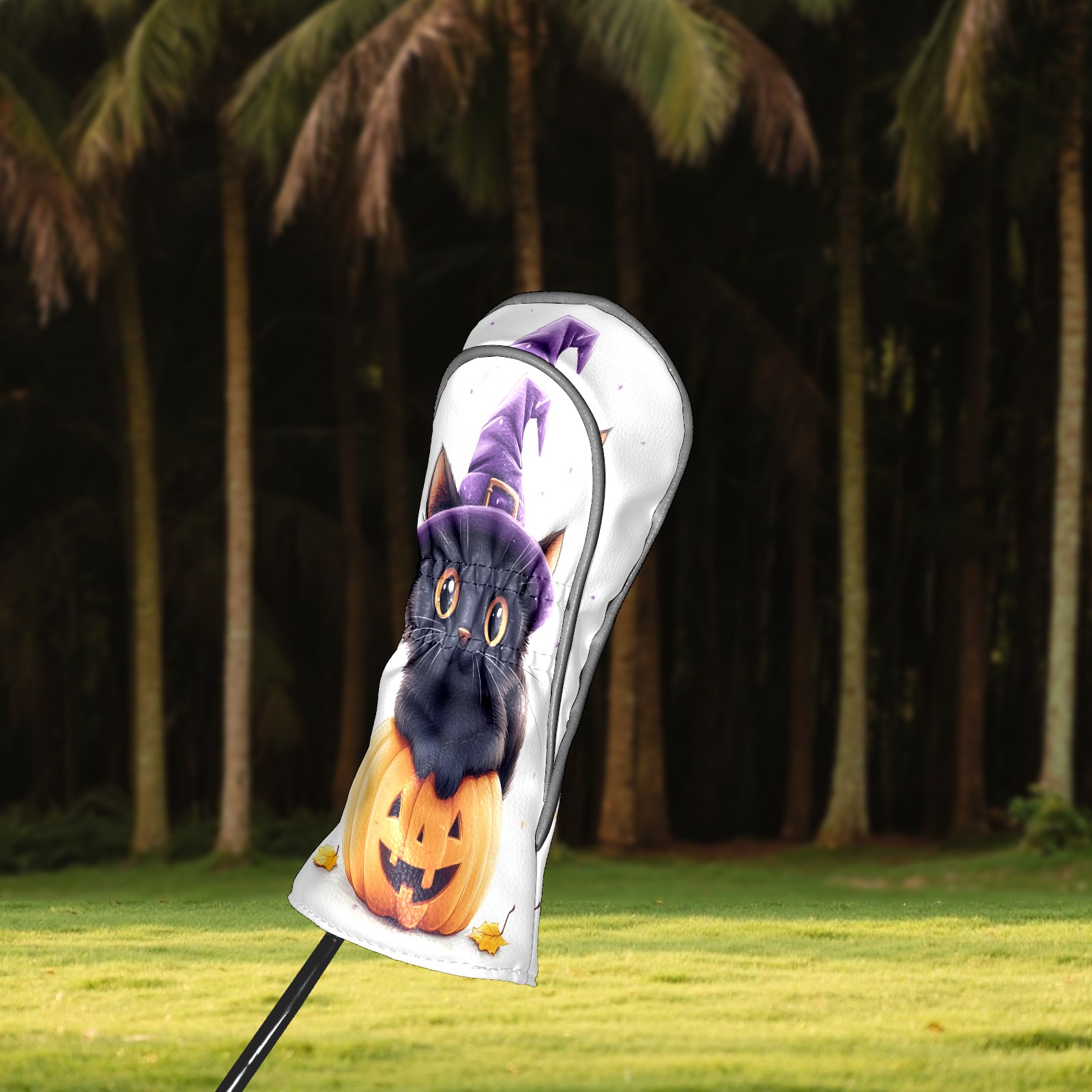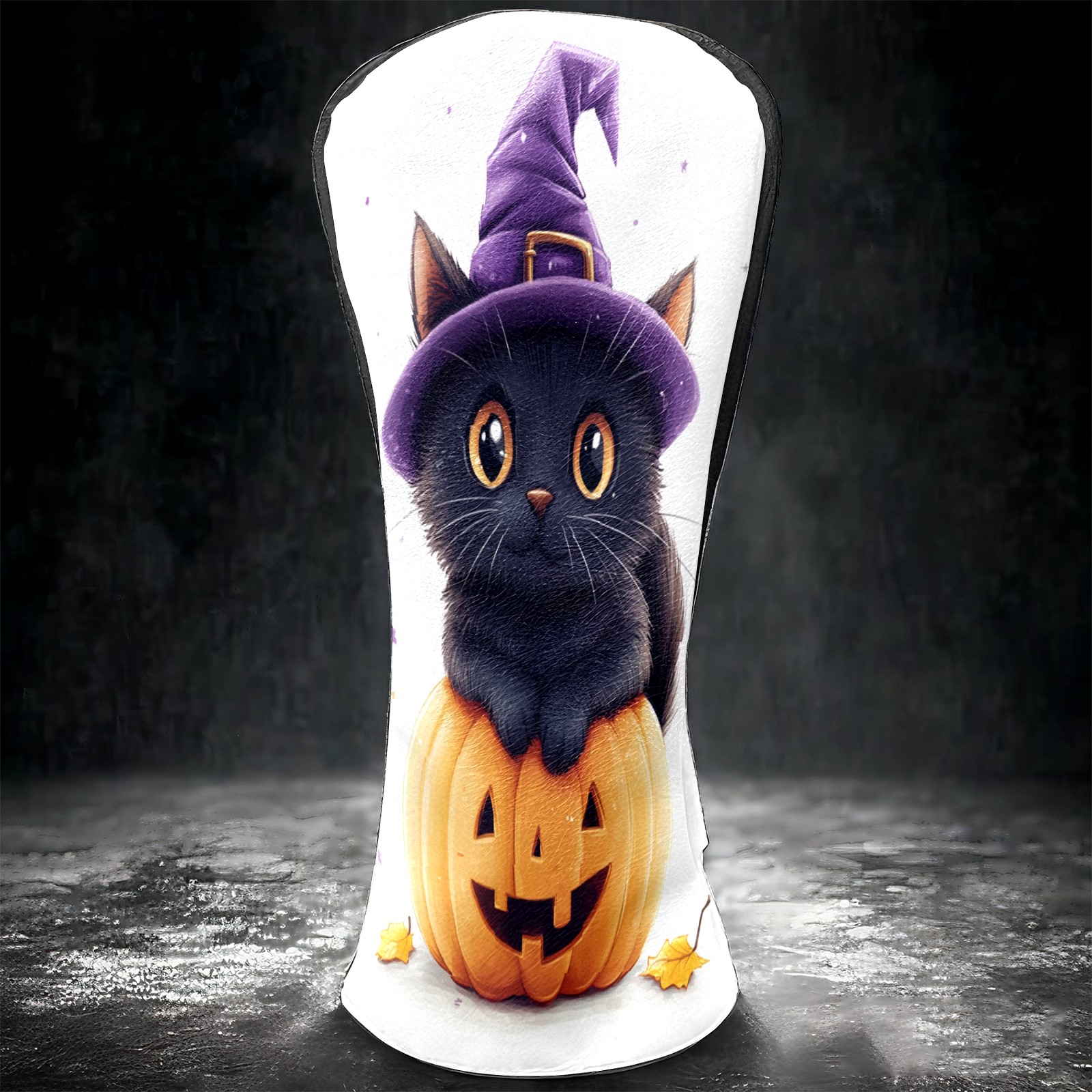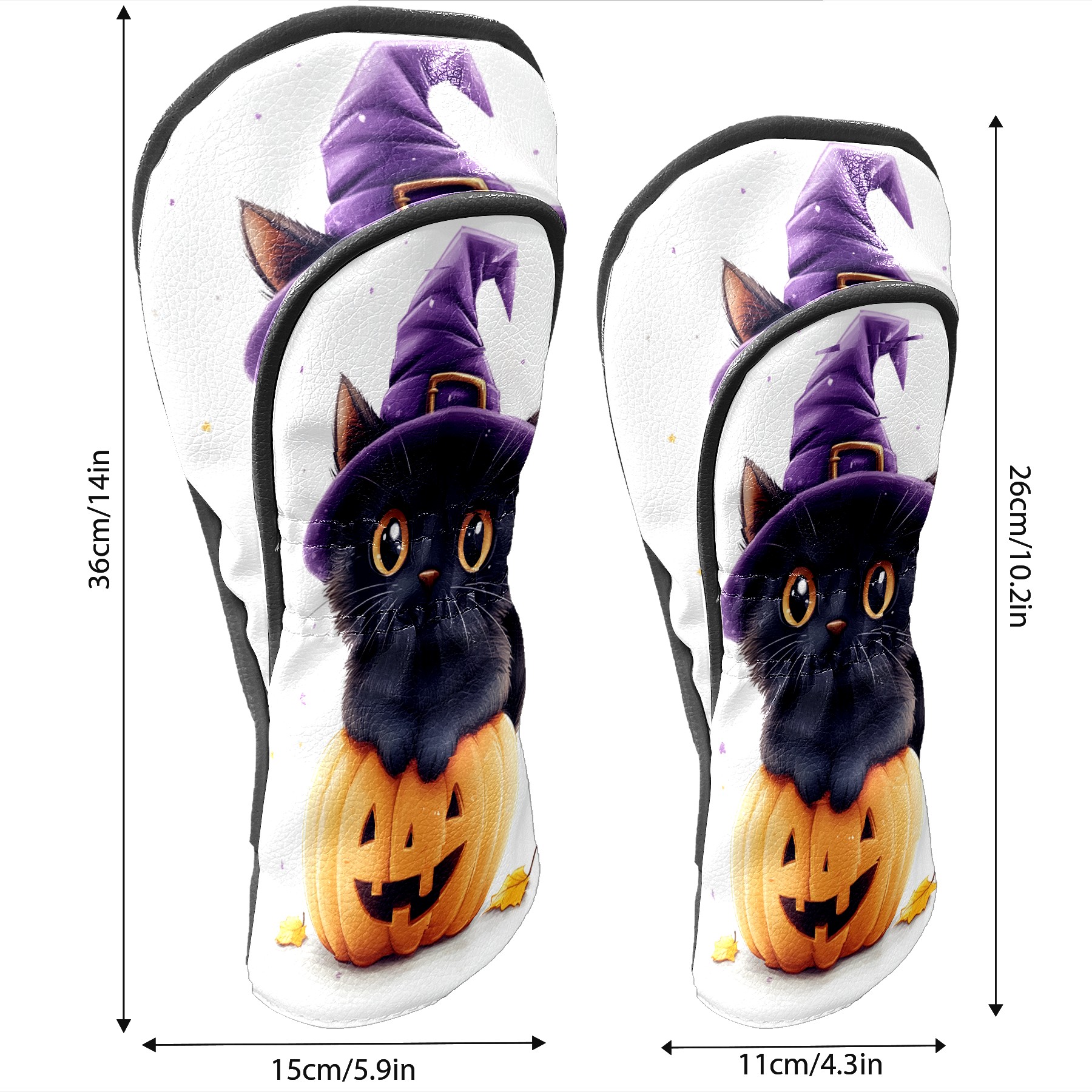 Golf Club Head Covers Halloween Black Cat Pumpkin Witch Hat Design for Driver & Hybrid, Waterproof PU Leather with Plush Velvet Lining, Scratch Protection & Secure Fit, Ideal Golf Gift for Men Women