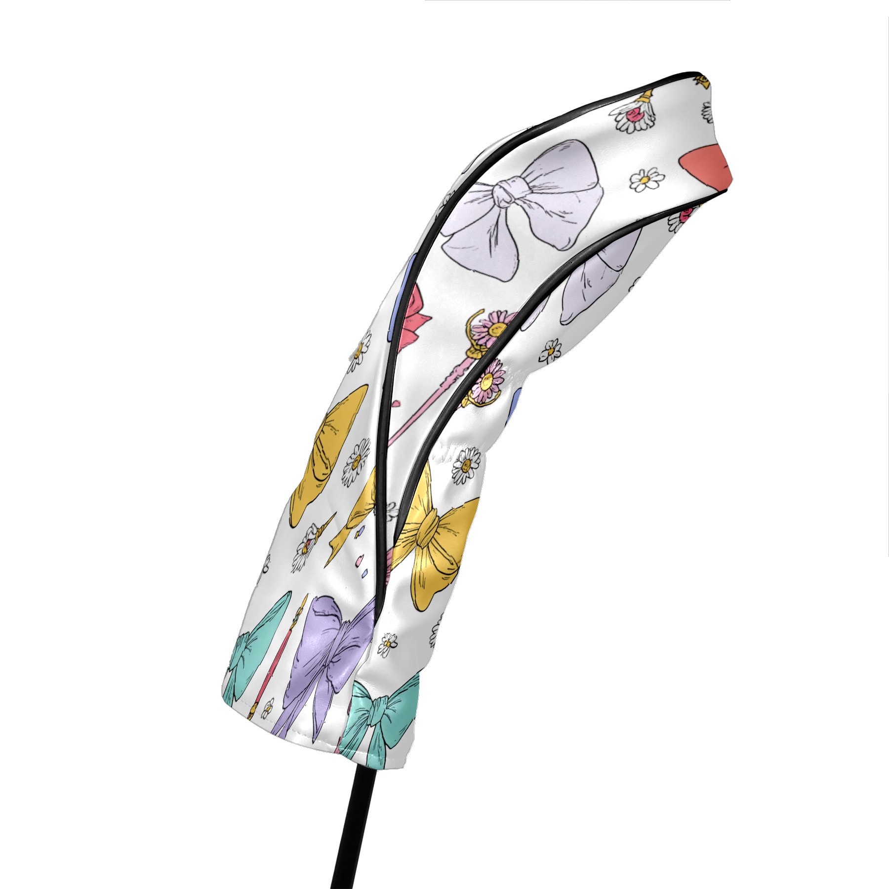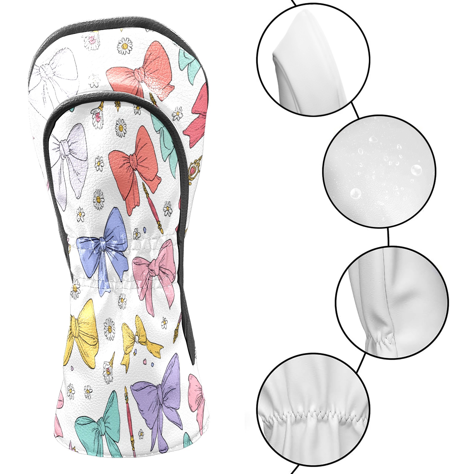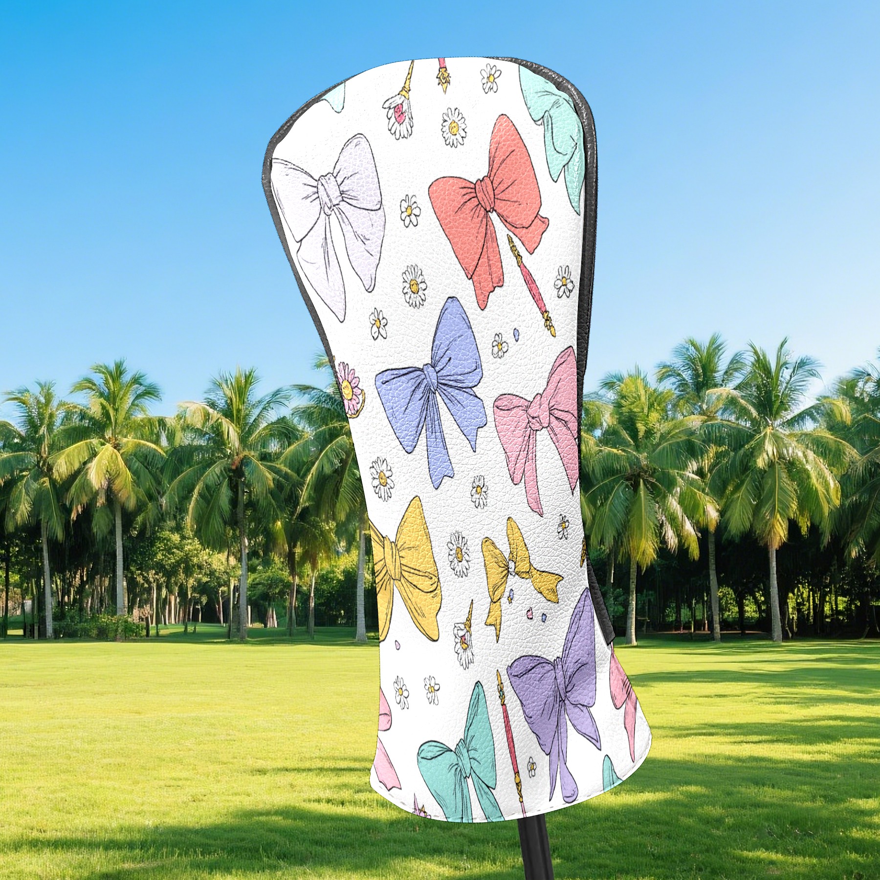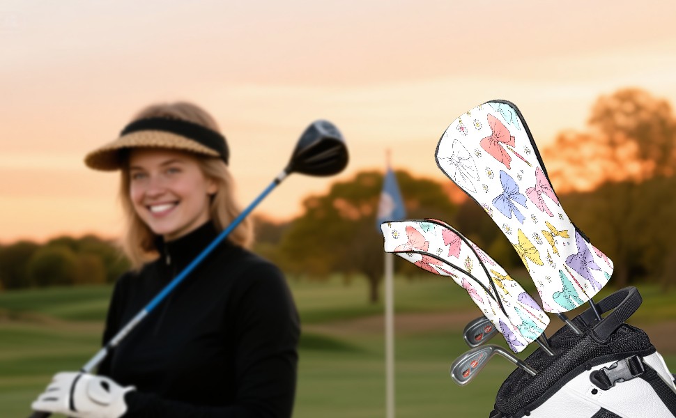 Golf Club Head Covers Pastel Bows Magic Wands Design for Driver & Hybrid, Waterproof PU Leather with Plush Velvet Lining, Scratch Protection & Secure Fit, Ideal Golf Gift for Men Women
