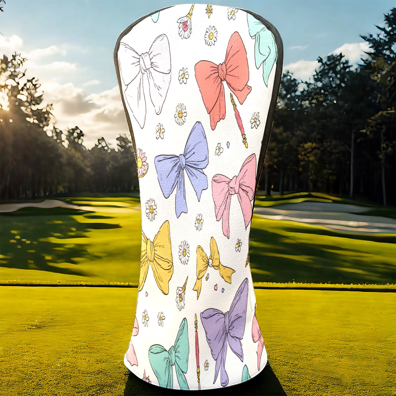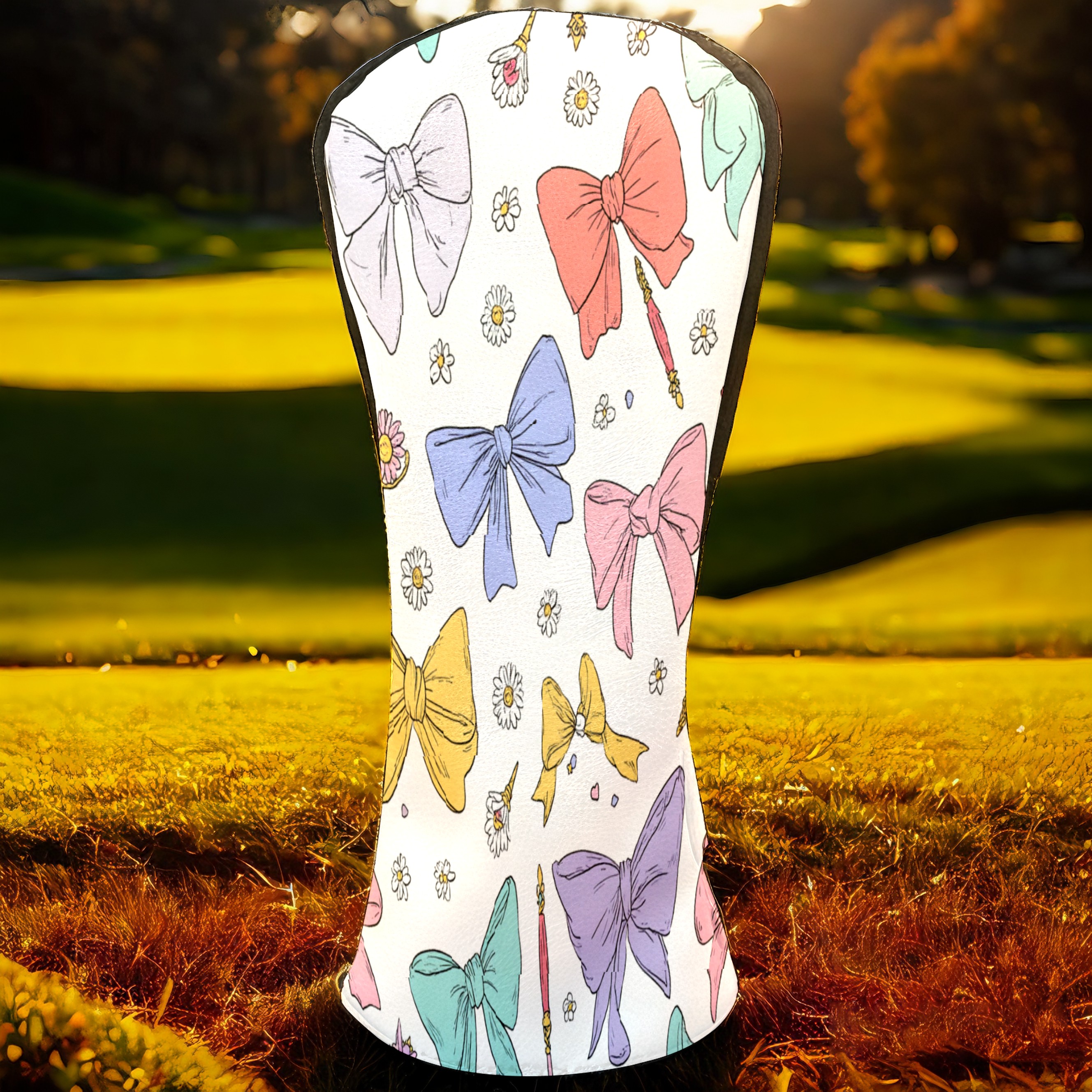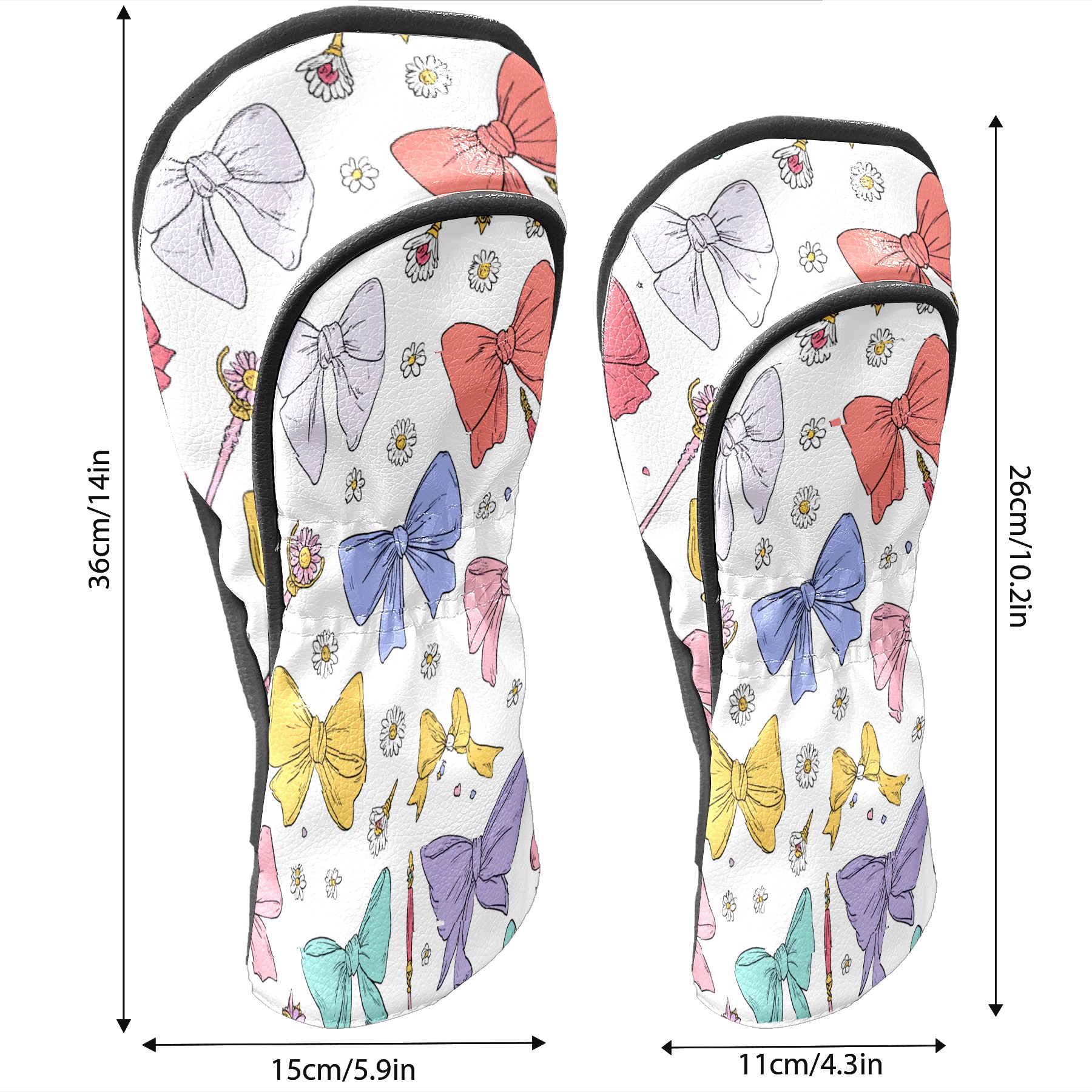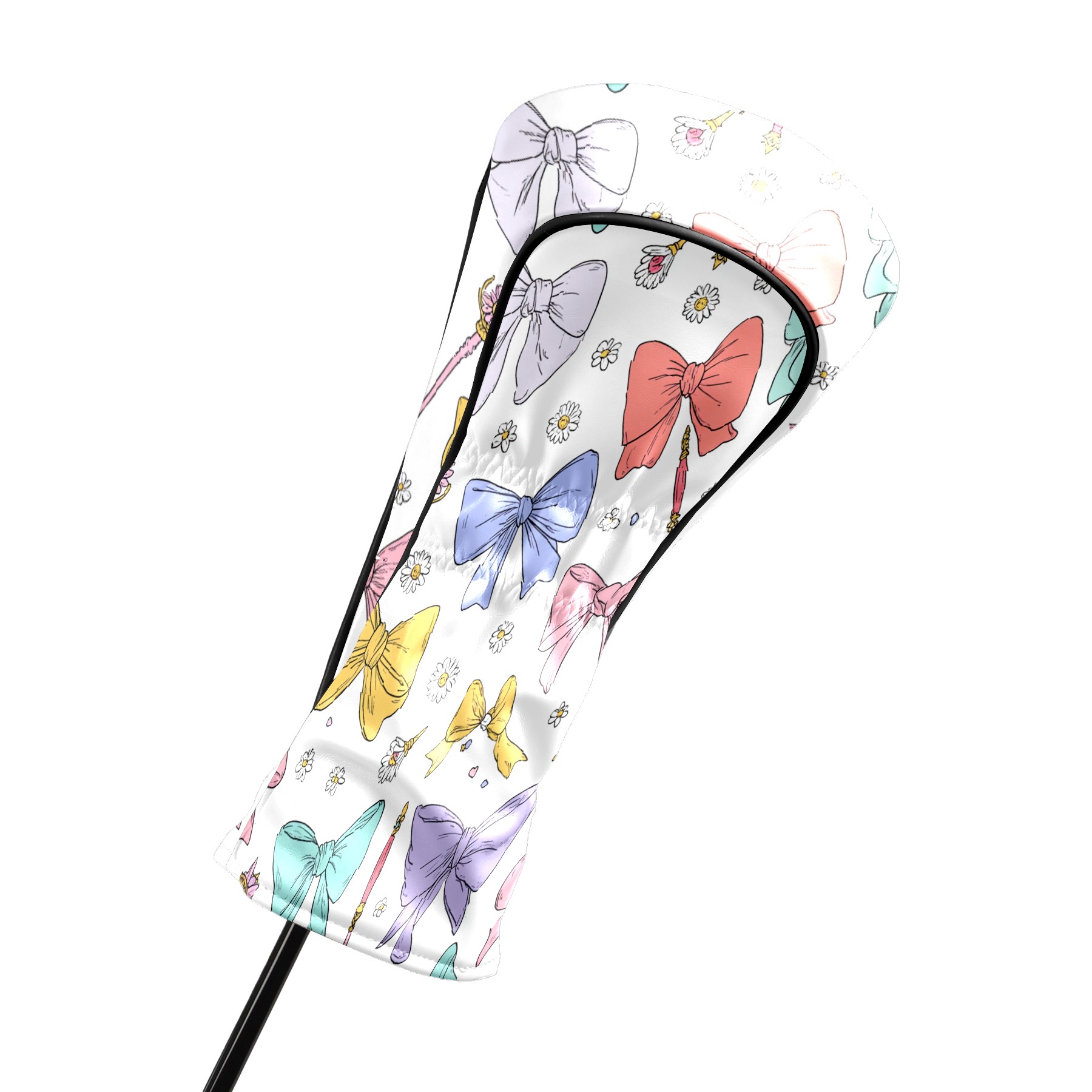 Golf Club Head Covers Pastel Bows Magic Wands Design for Driver & Hybrid, Waterproof PU Leather with Plush Velvet Lining, Scratch Protection & Secure Fit, Ideal Golf Gift for Men Women