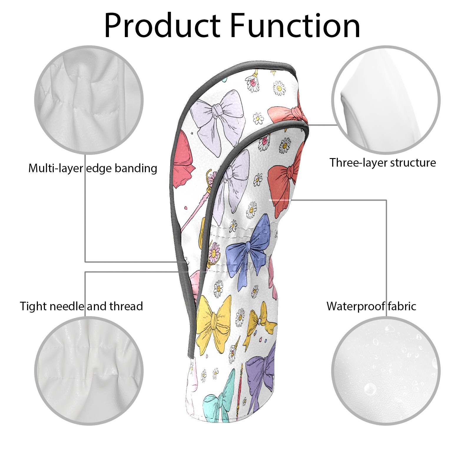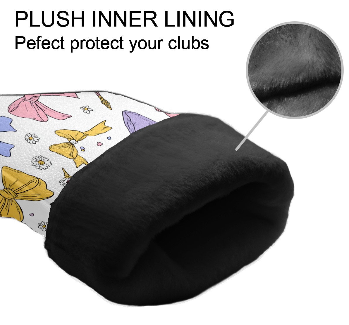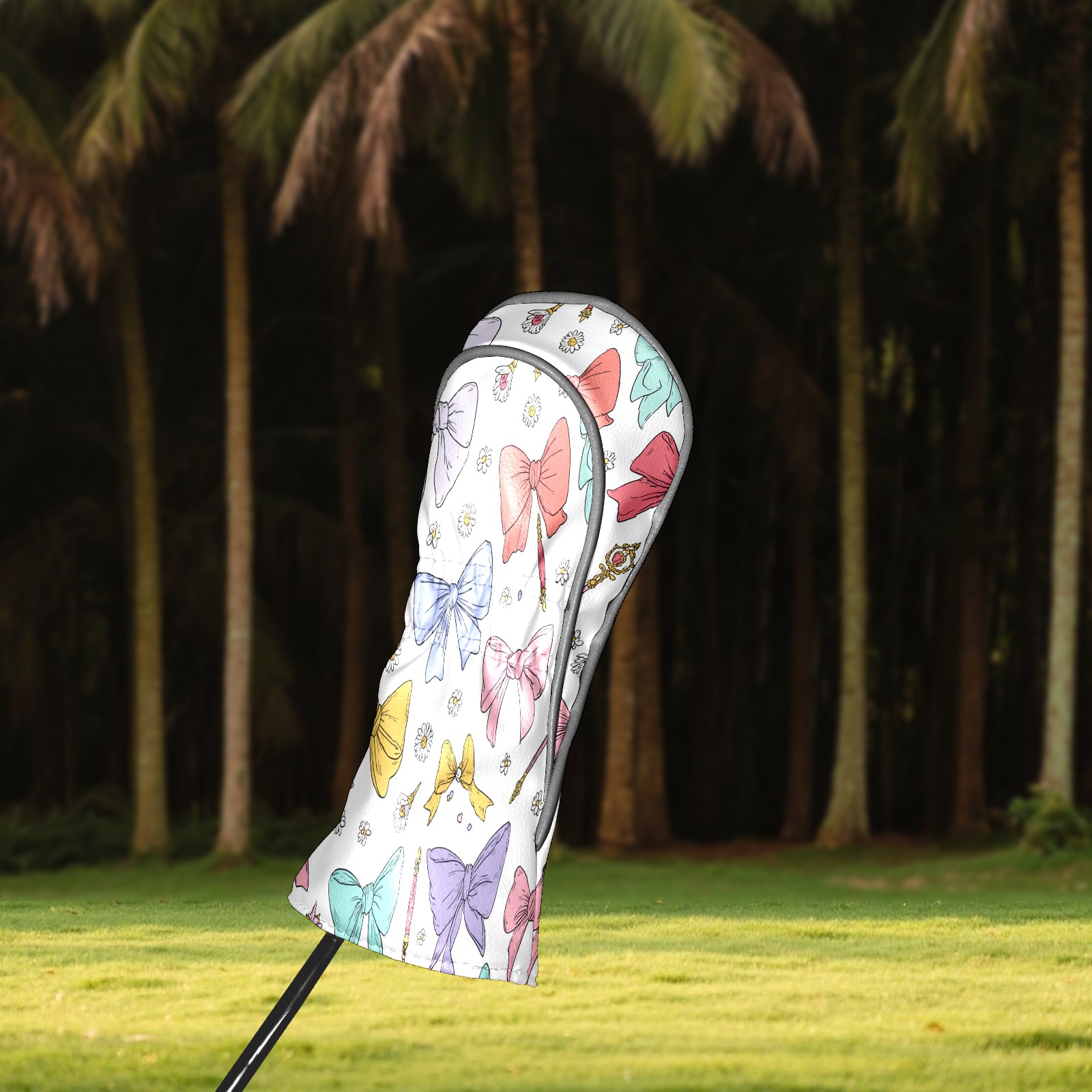 Golf Club Head Covers Pastel Bows Magic Wands Design for Driver & Hybrid, Waterproof PU Leather with Plush Velvet Lining, Scratch Protection & Secure Fit, Ideal Golf Gift for Men Women