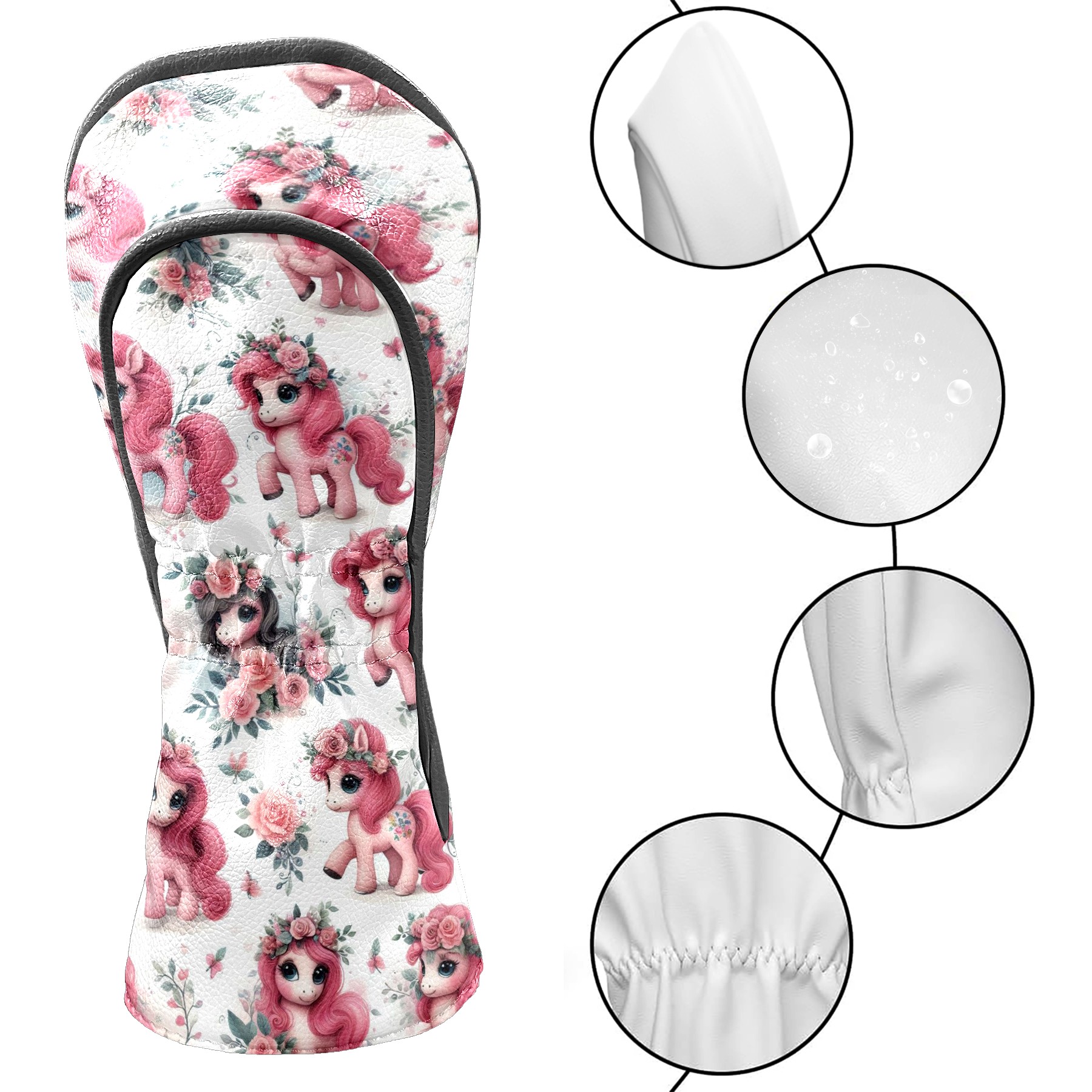 Golf Club Head Covers Pink Piglets Pattern Design for Driver & Hybrid, Waterproof PU Leather with Plush Velvet Lining, Scratch Protection & Secure Fit, Ideal Golf Gift for Men Women