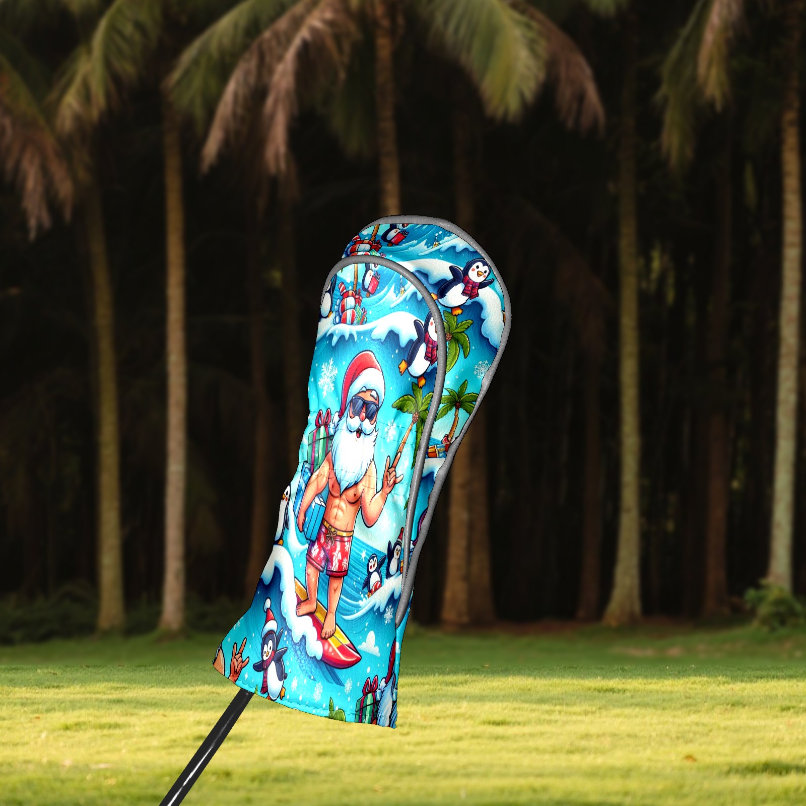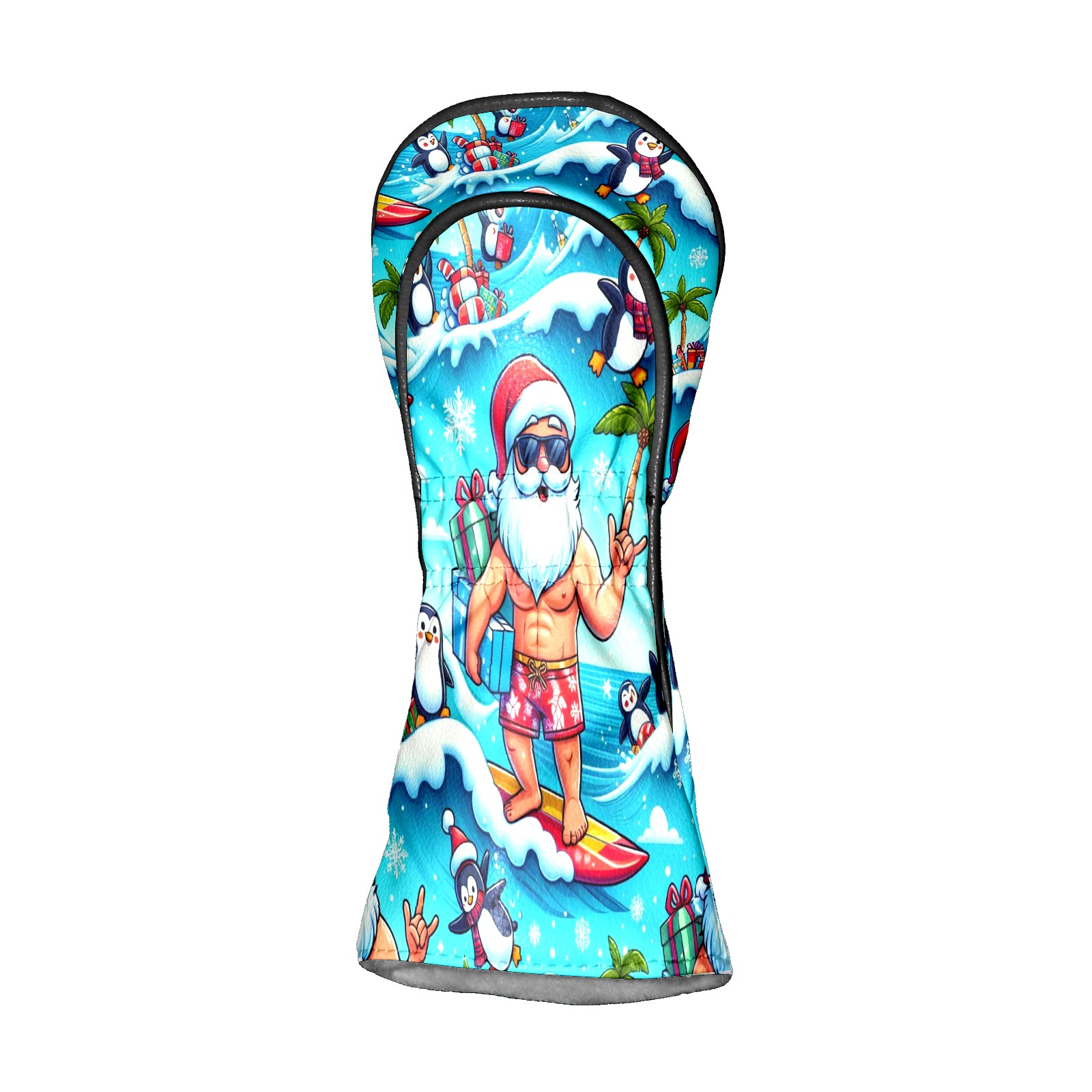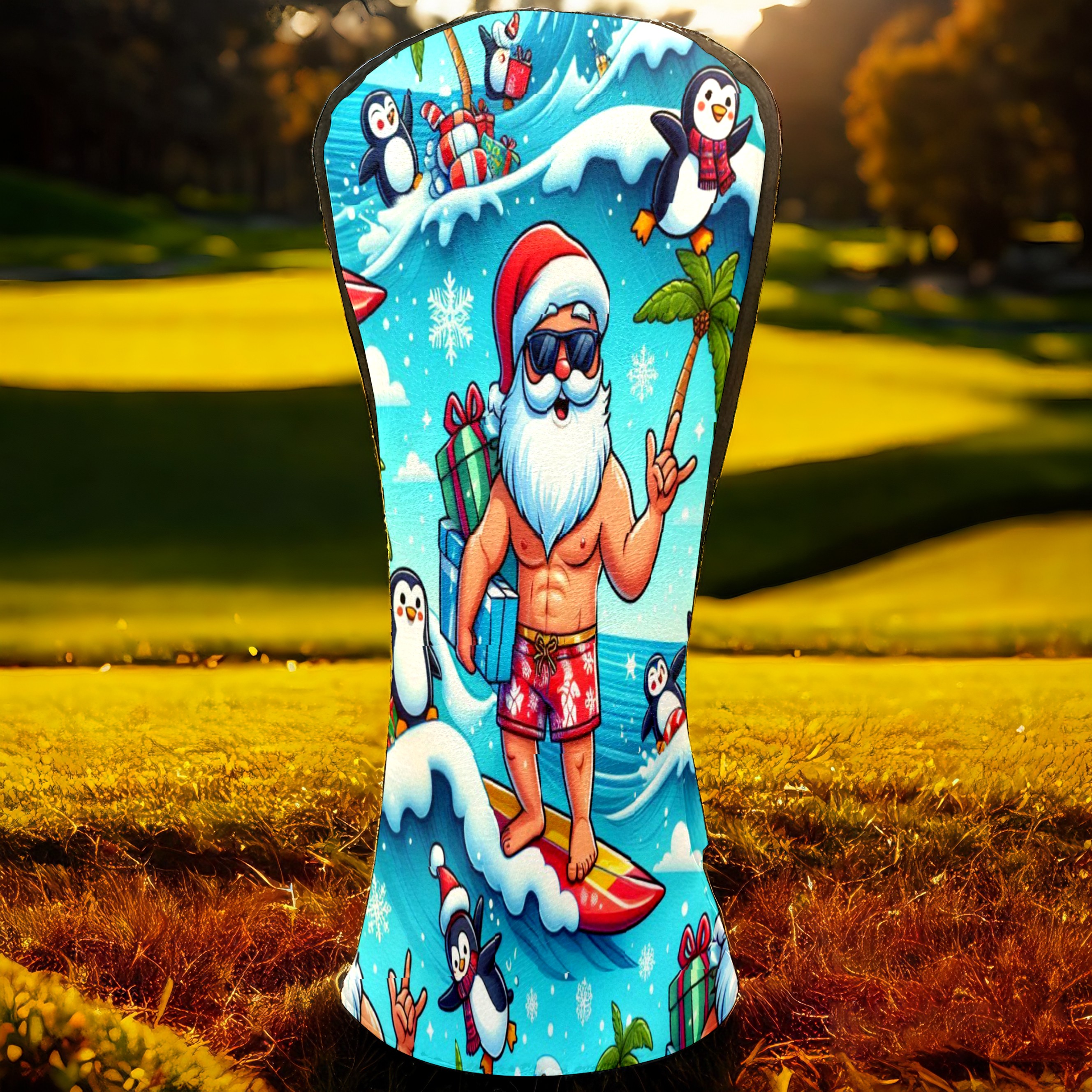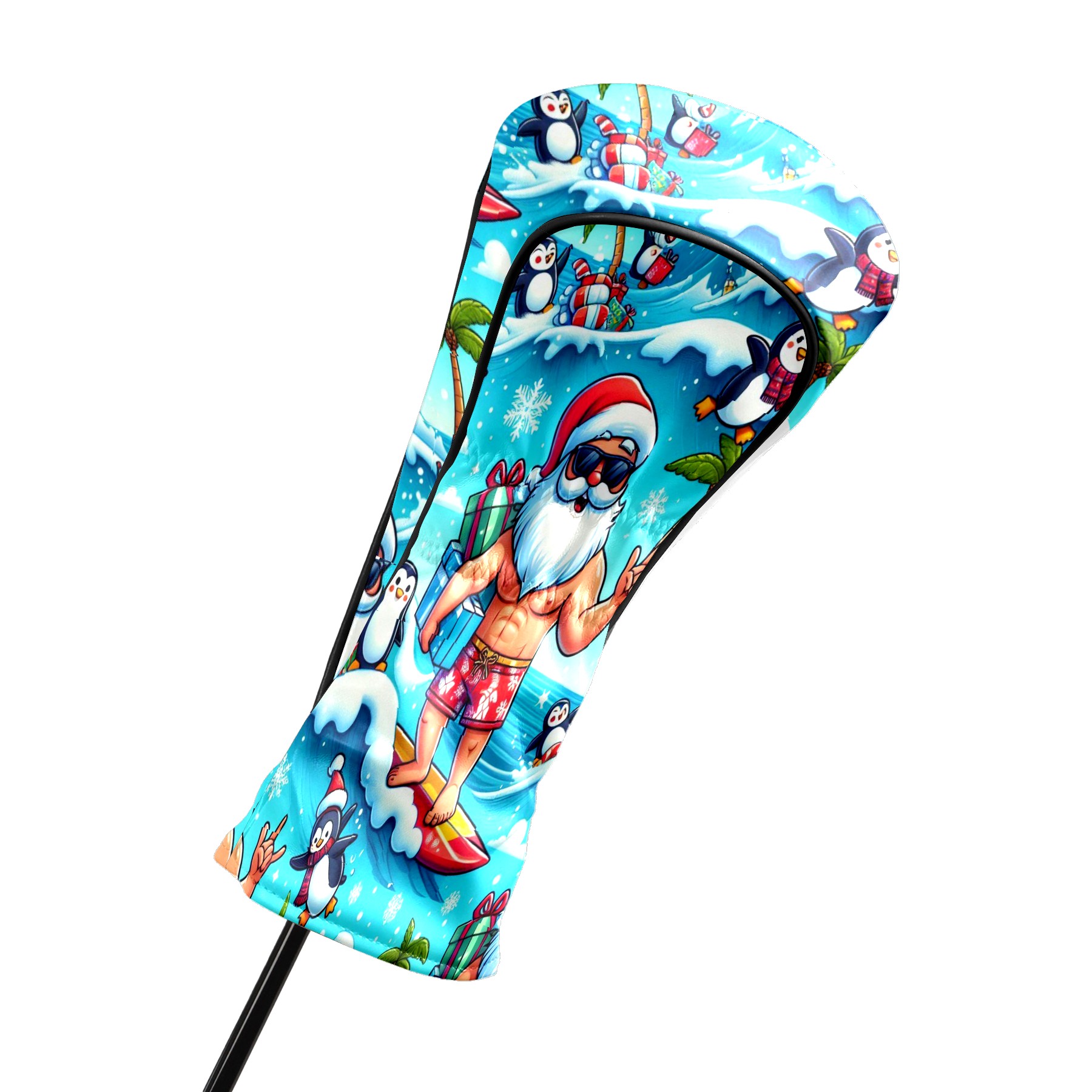Golf Club Head Covers Santa & Penguins Surfing Ocean Design for Driver & Hybrid, Waterproof PU Leather with Plush Velvet Lining, Scratch Protection & Secure Fit, Ideal Golf Gift for Men Women