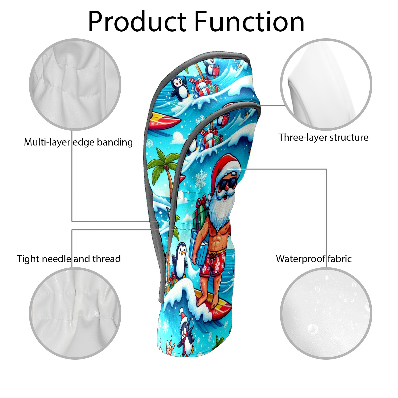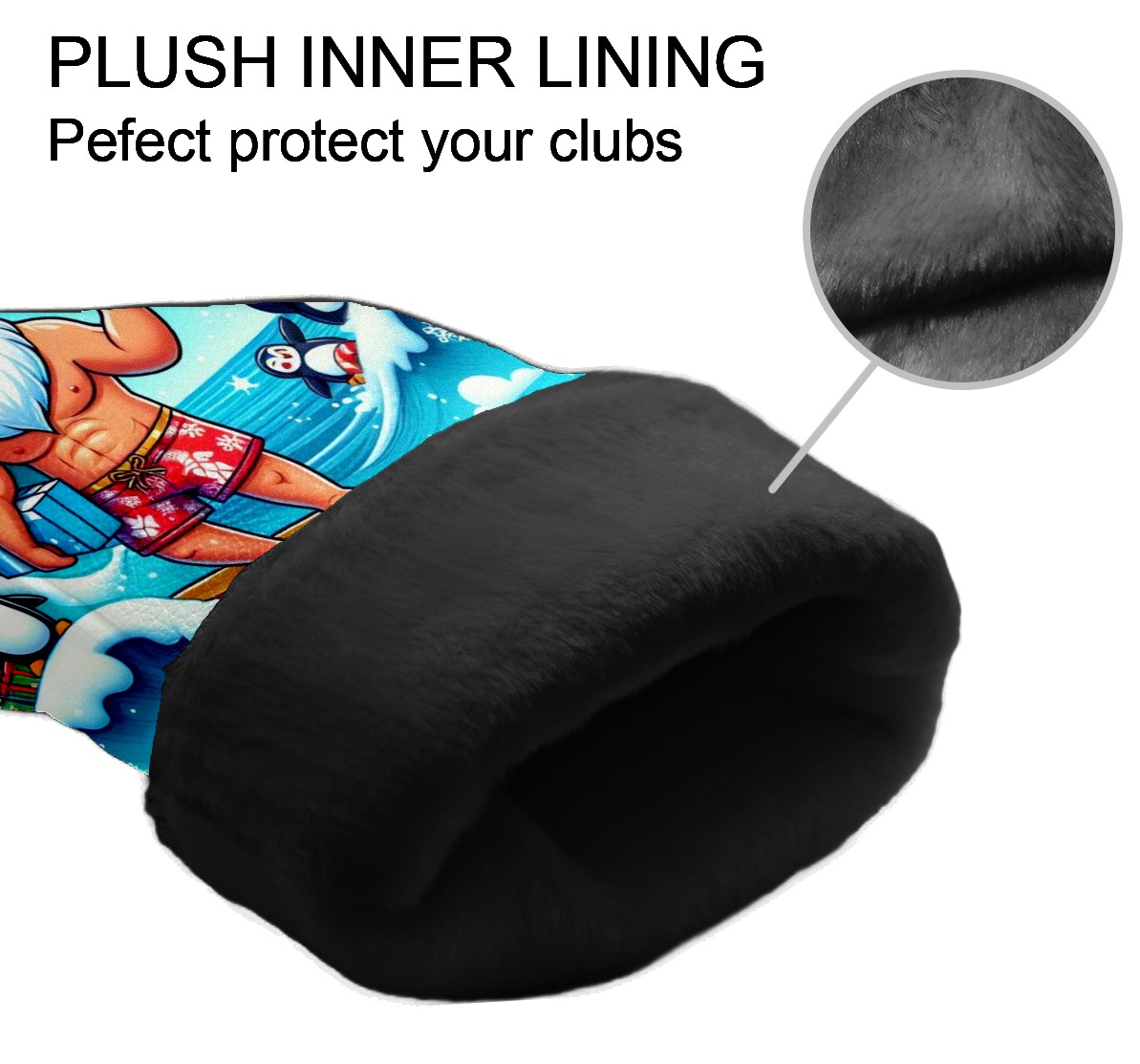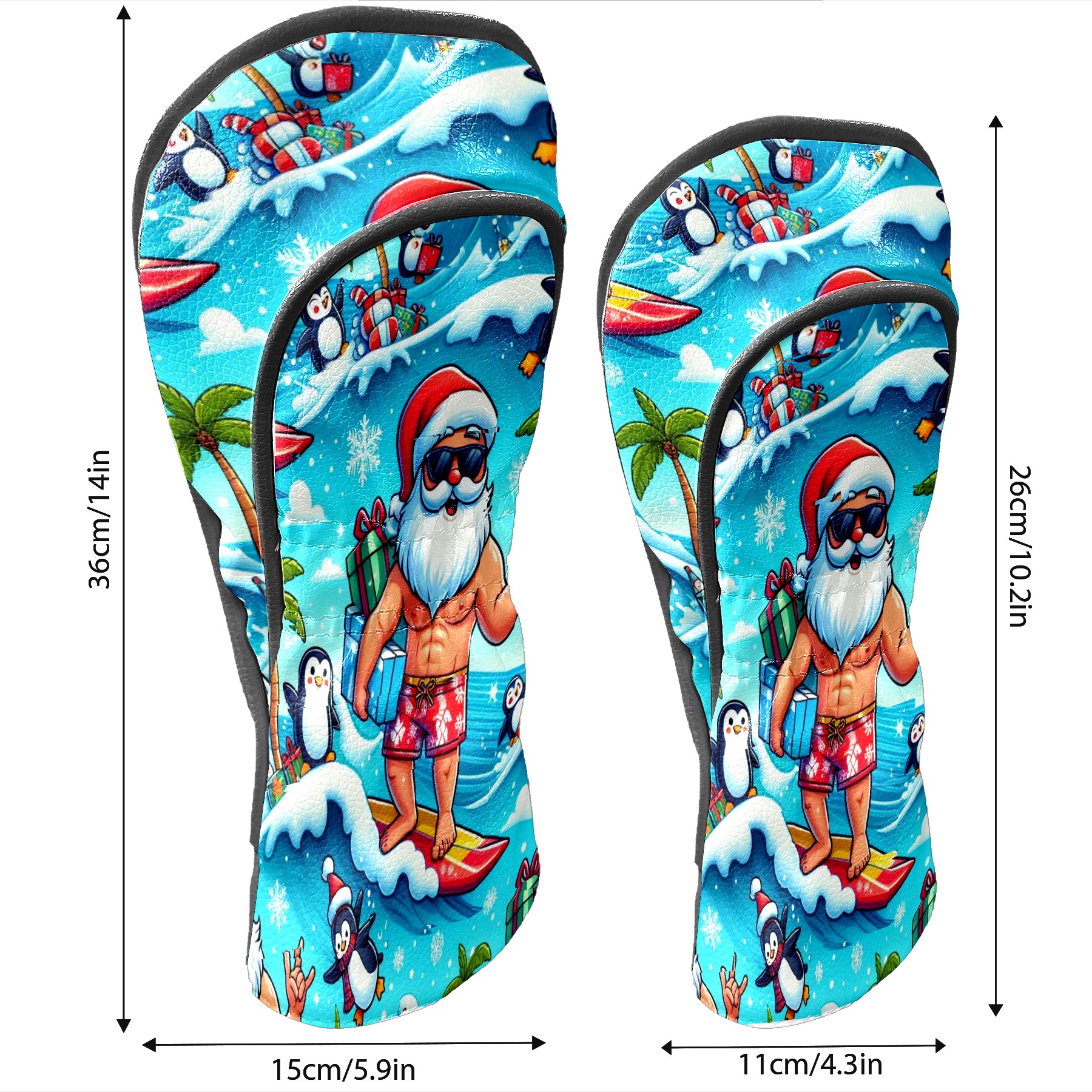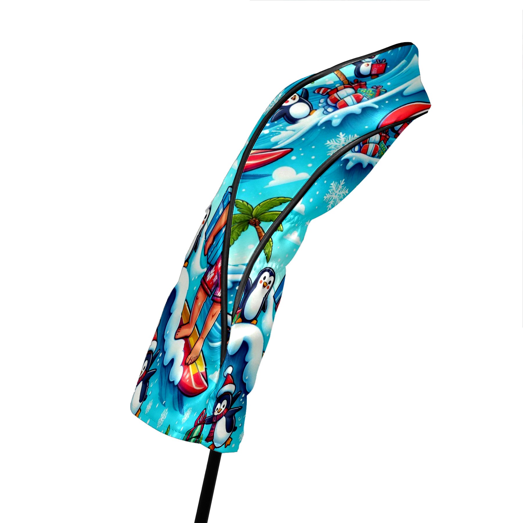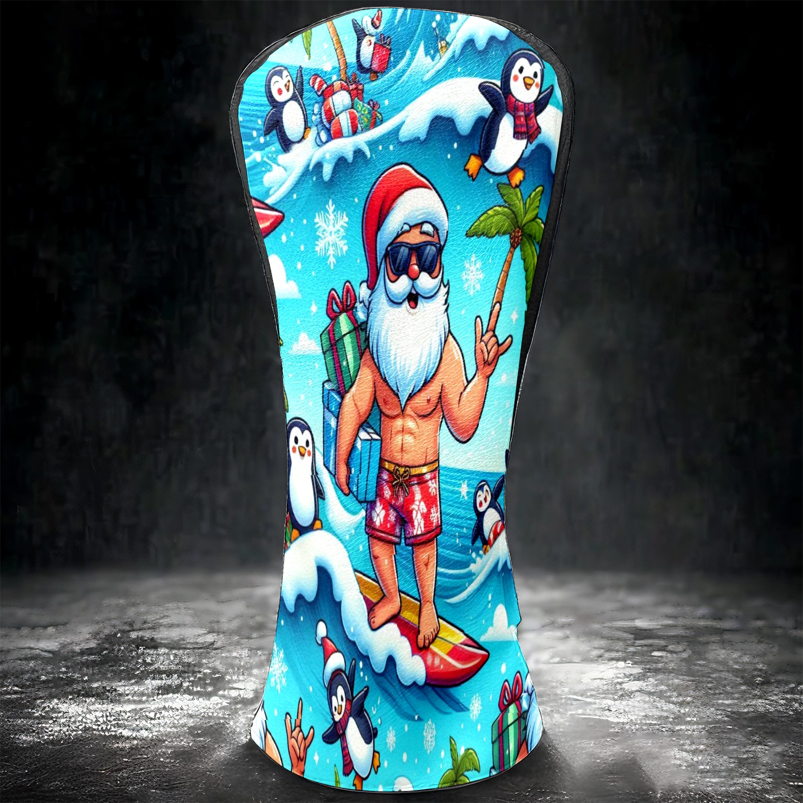 Golf Club Head Covers Santa & Penguins Surfing Ocean Design for Driver & Hybrid, Waterproof PU Leather with Plush Velvet Lining, Scratch Protection & Secure Fit, Ideal Golf Gift for Men Women