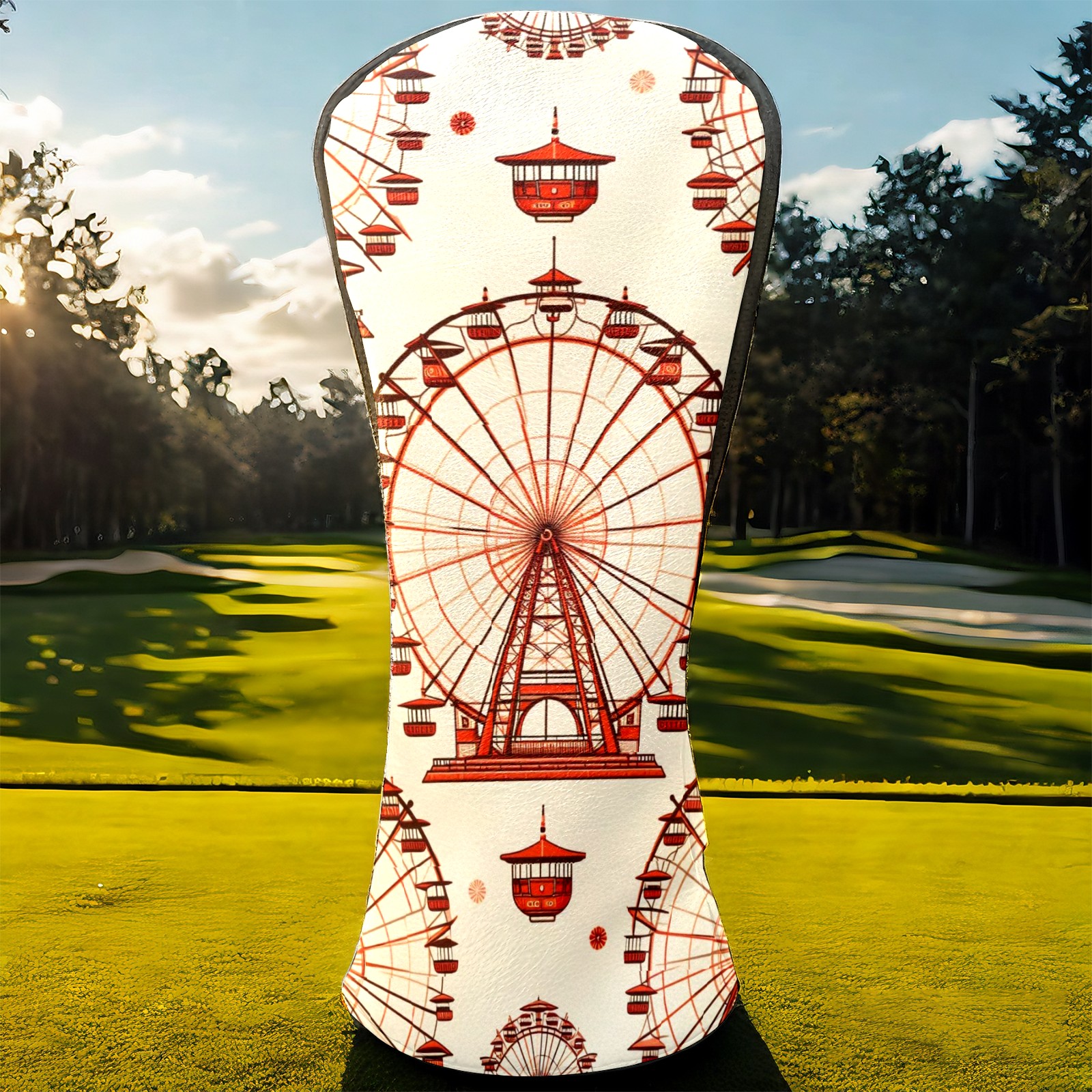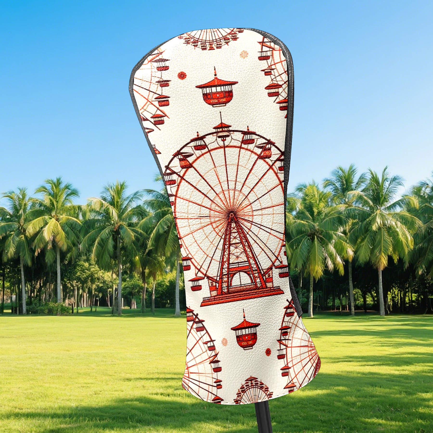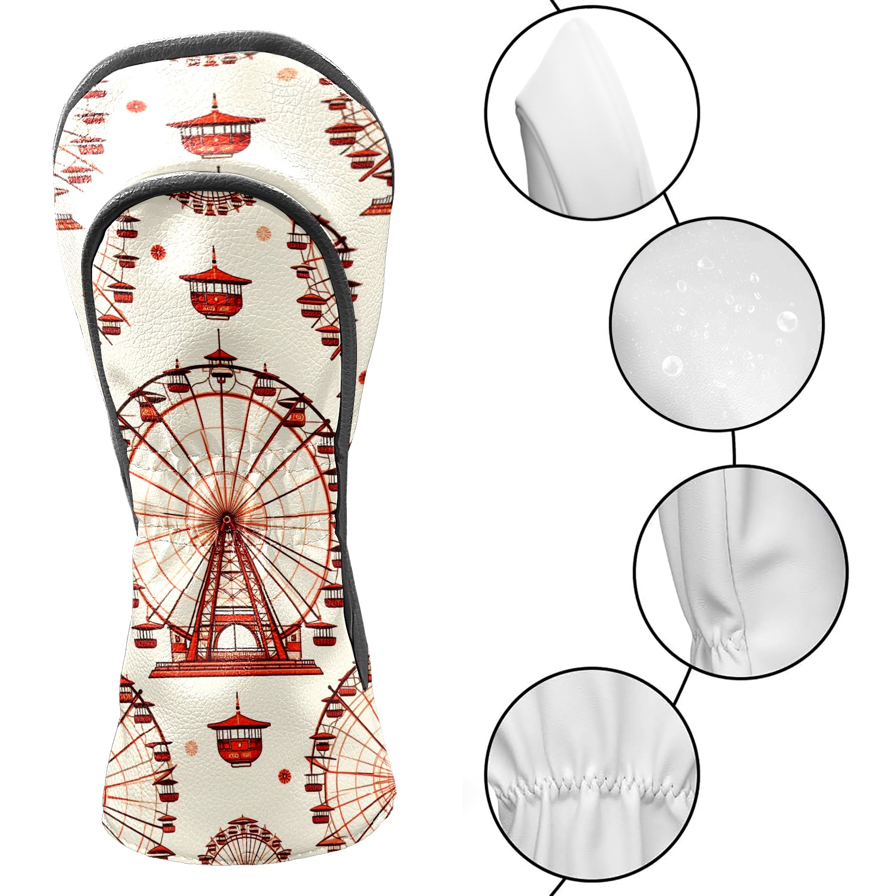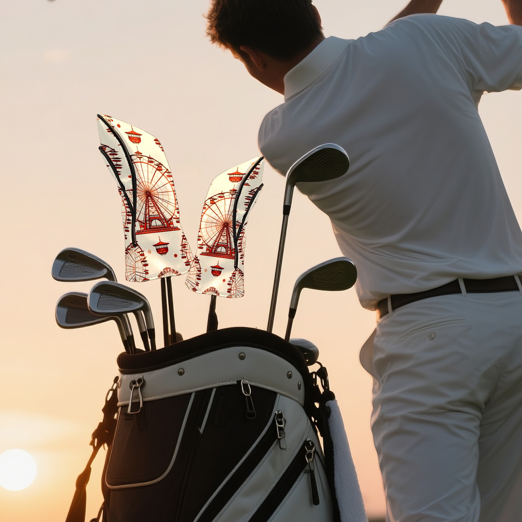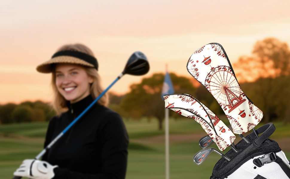 Golf Club Head Covers Ferris Wheel Beige Design for Driver & Hybrid, Waterproof PU Leather with Plush Velvet Lining, Scratch Protection & Secure Fit, Ideal Golf Gift for Men Women
