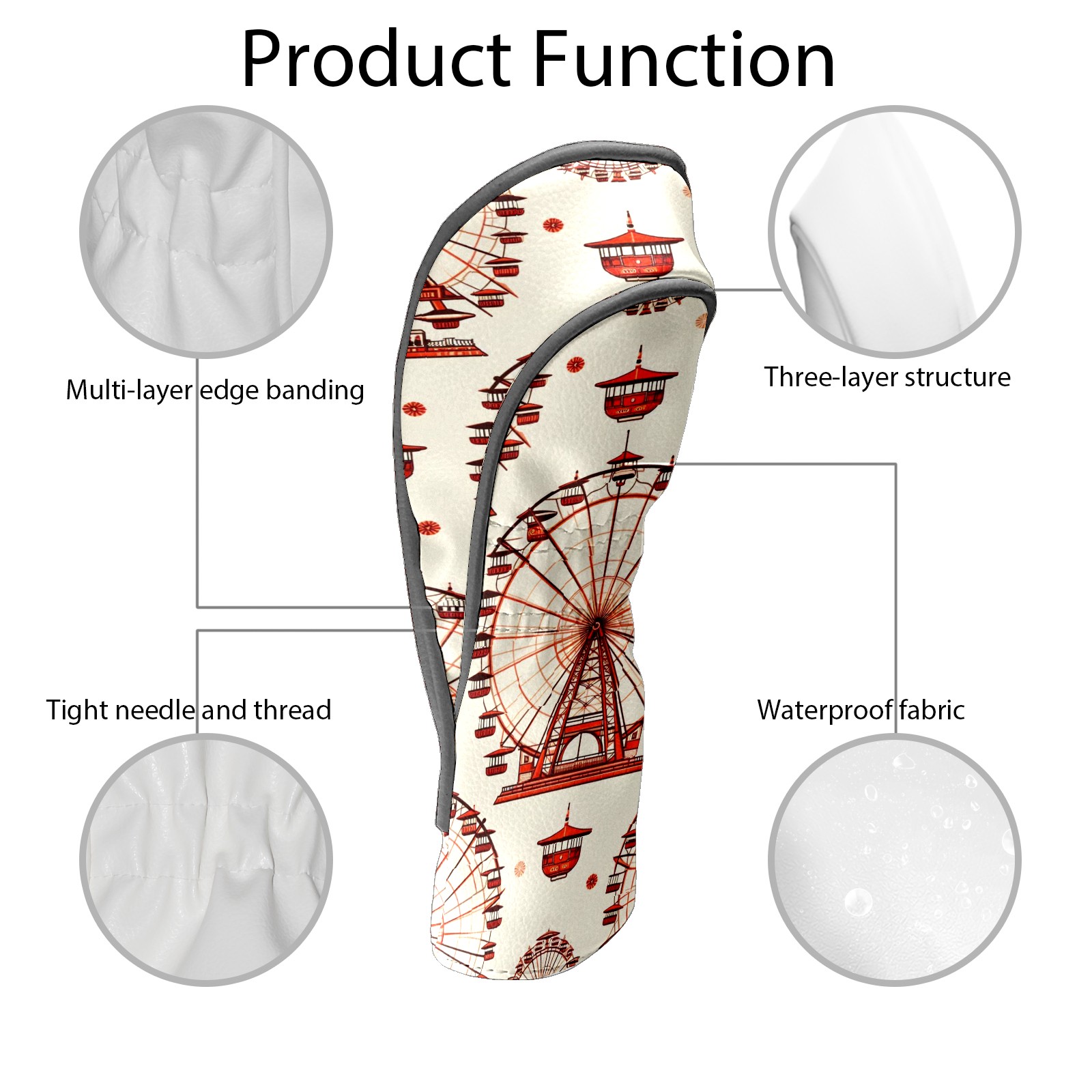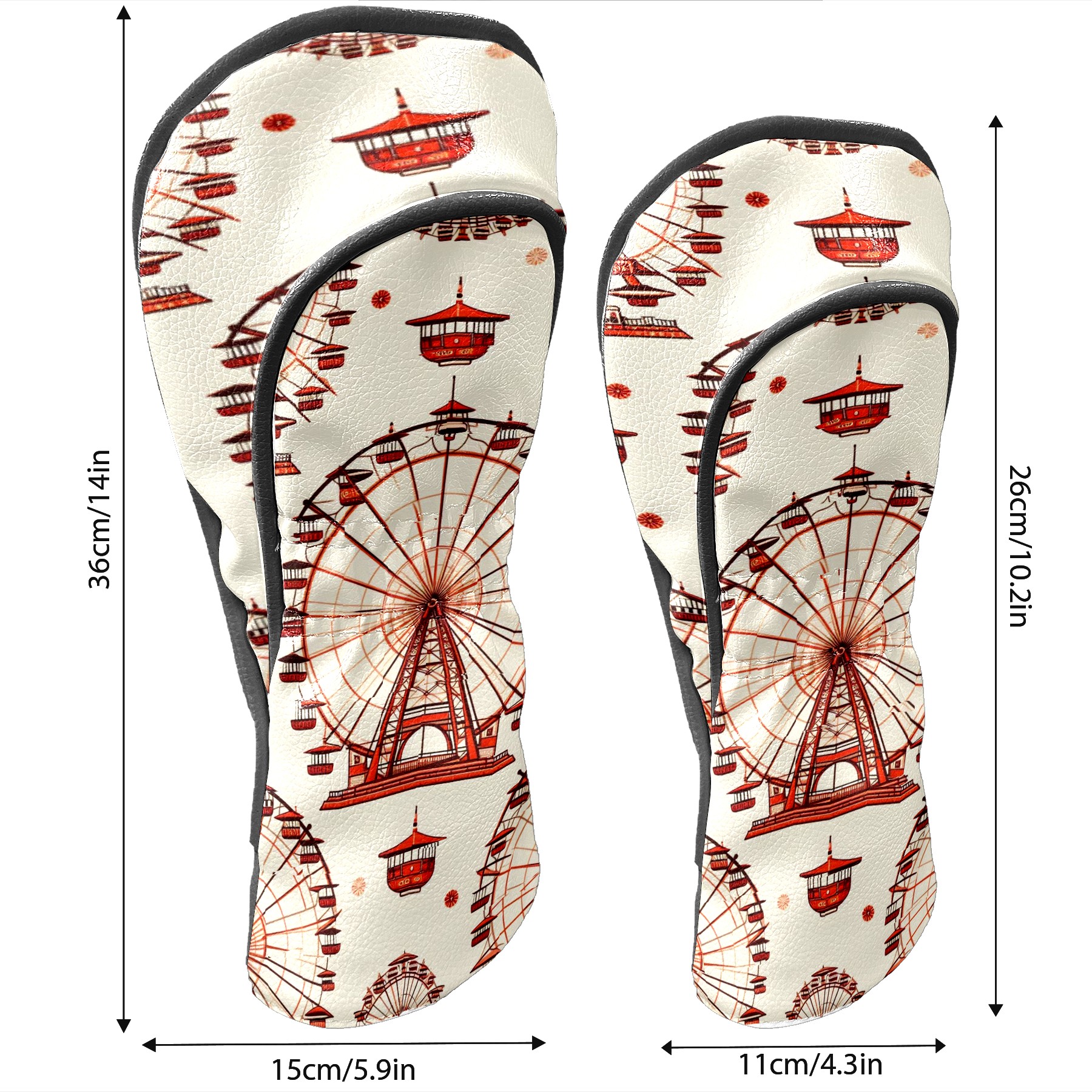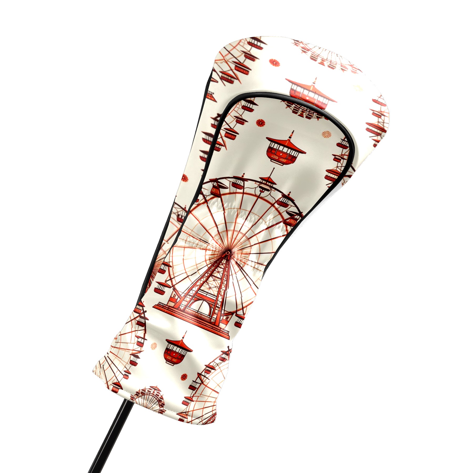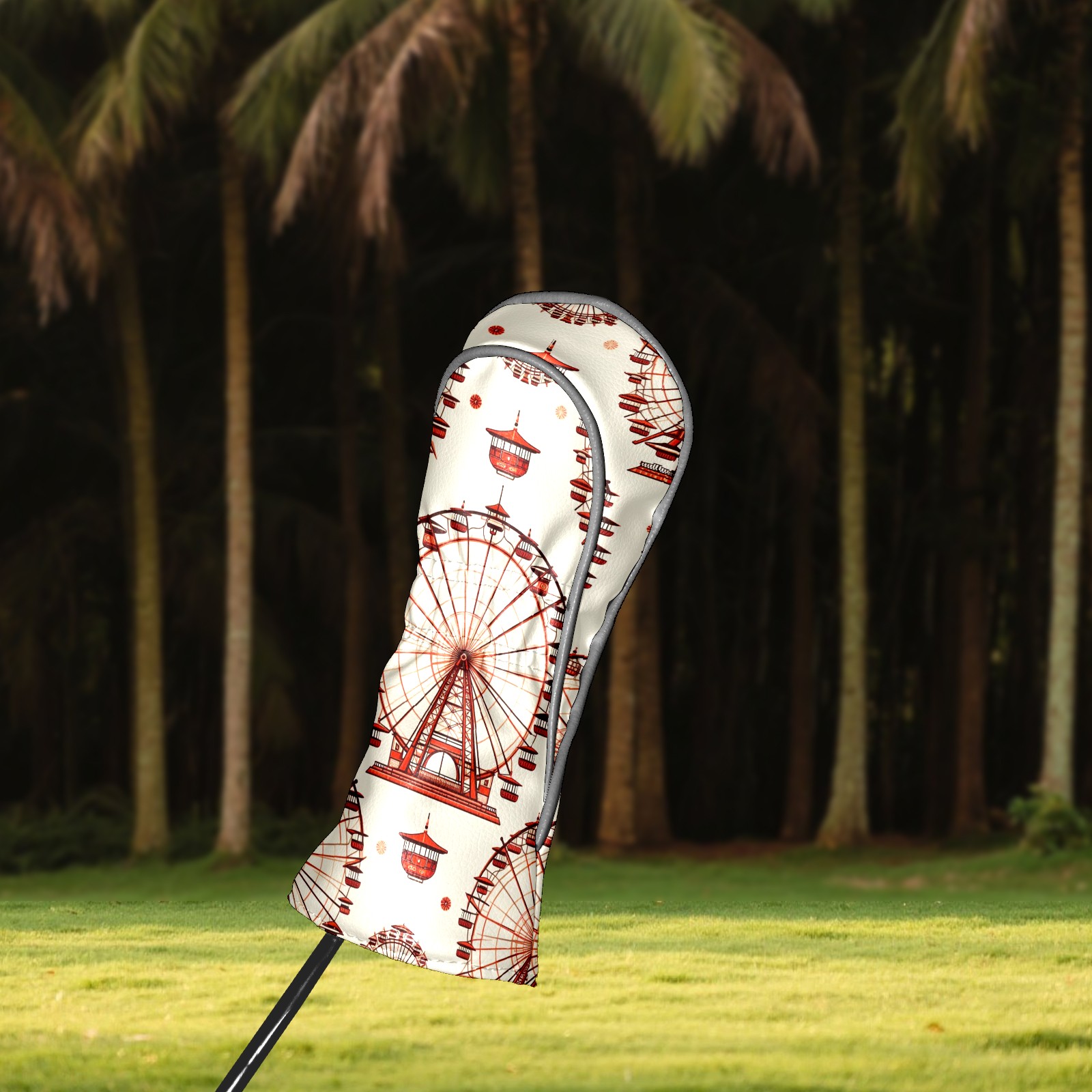 Golf Club Head Covers Ferris Wheel Beige Design for Driver & Hybrid, Waterproof PU Leather with Plush Velvet Lining, Scratch Protection & Secure Fit, Ideal Golf Gift for Men Women