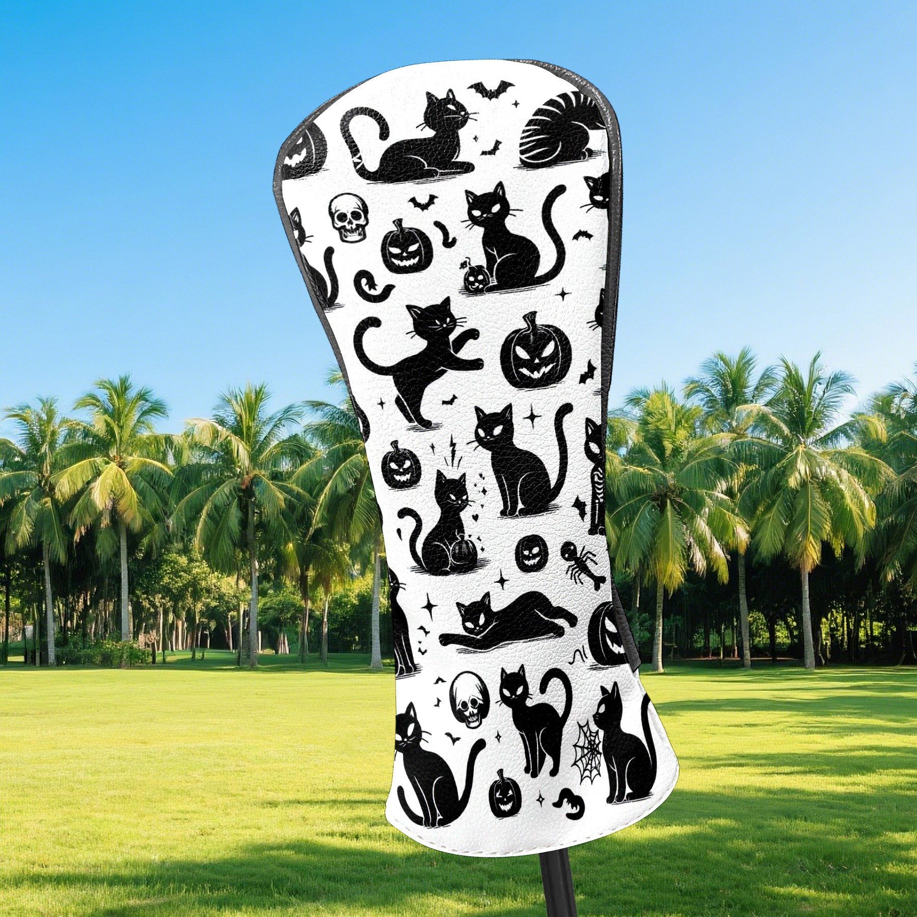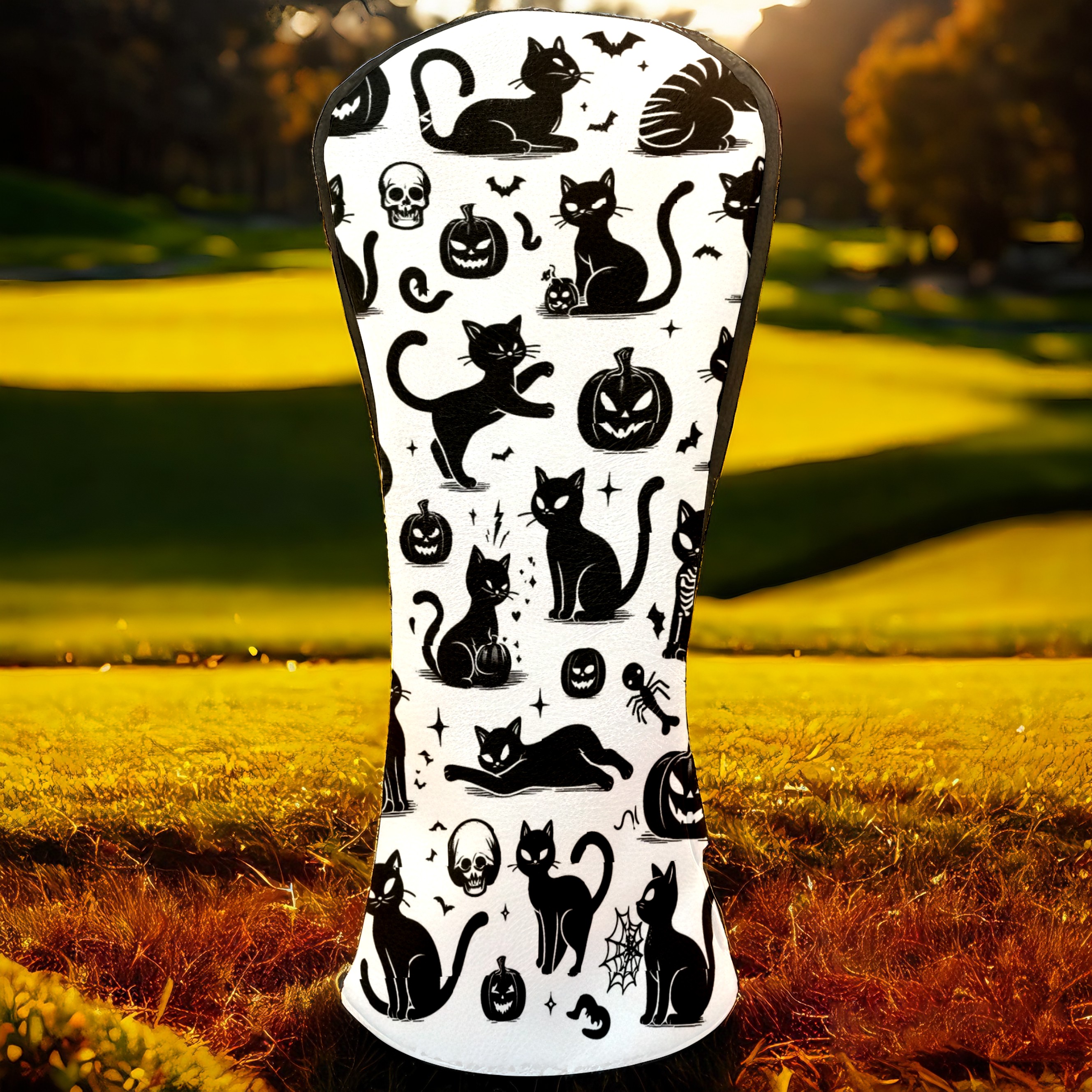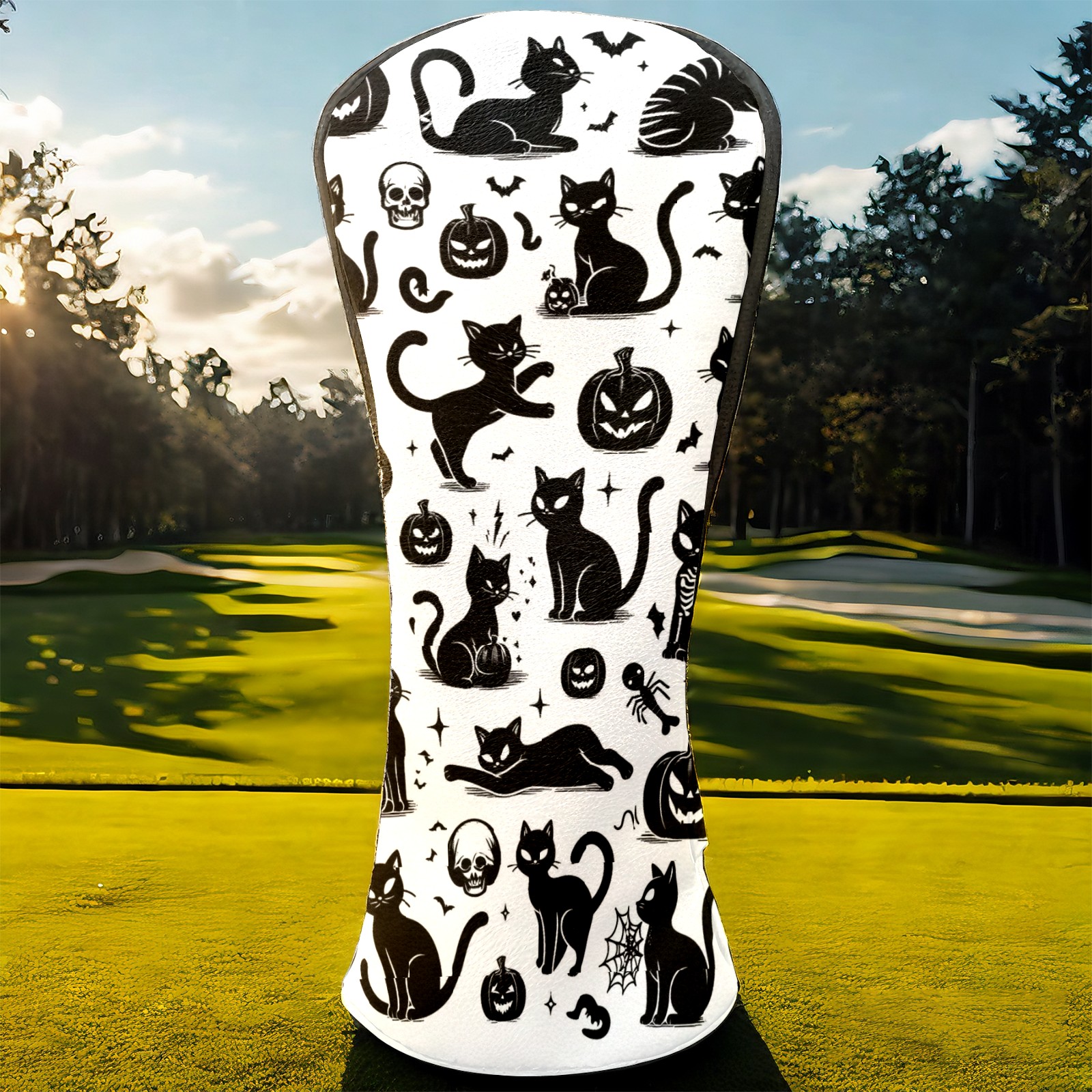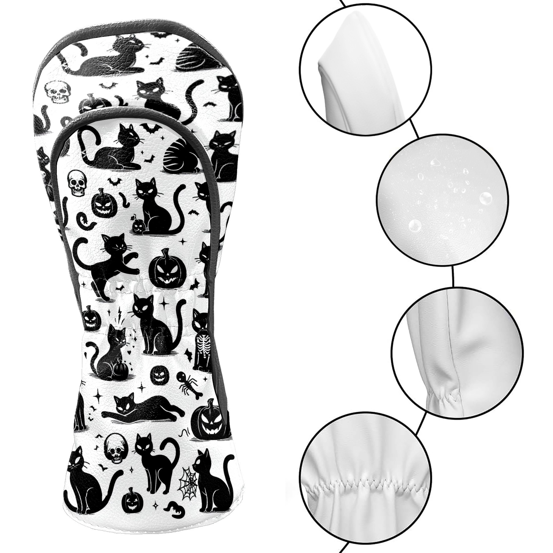 Golf Club Head Covers Halloween Black Cats Elements Design for Driver & Hybrid, Waterproof PU Leather with Plush Velvet Lining, Scratch Protection & Secure Fit, Ideal Golf Gift for Men Women