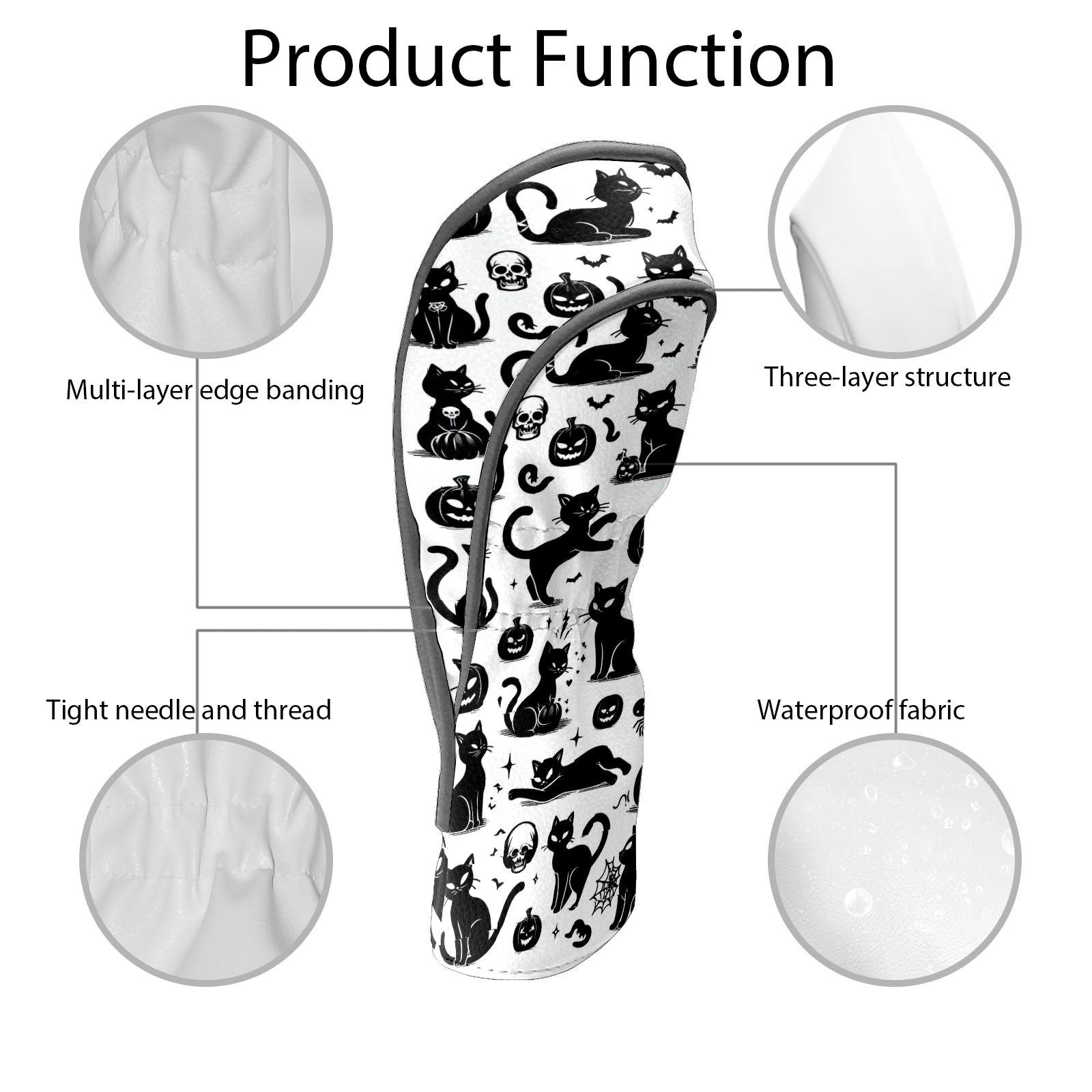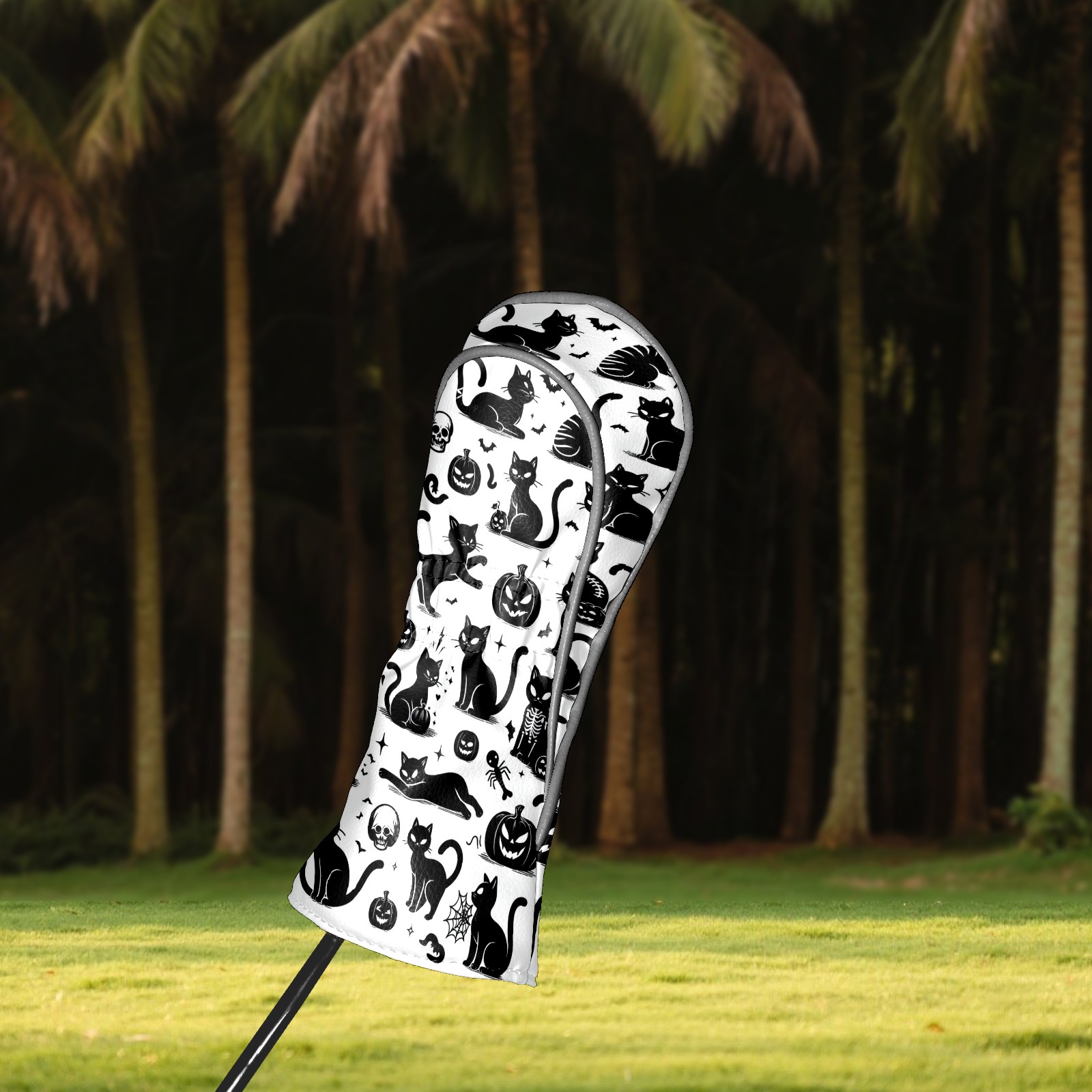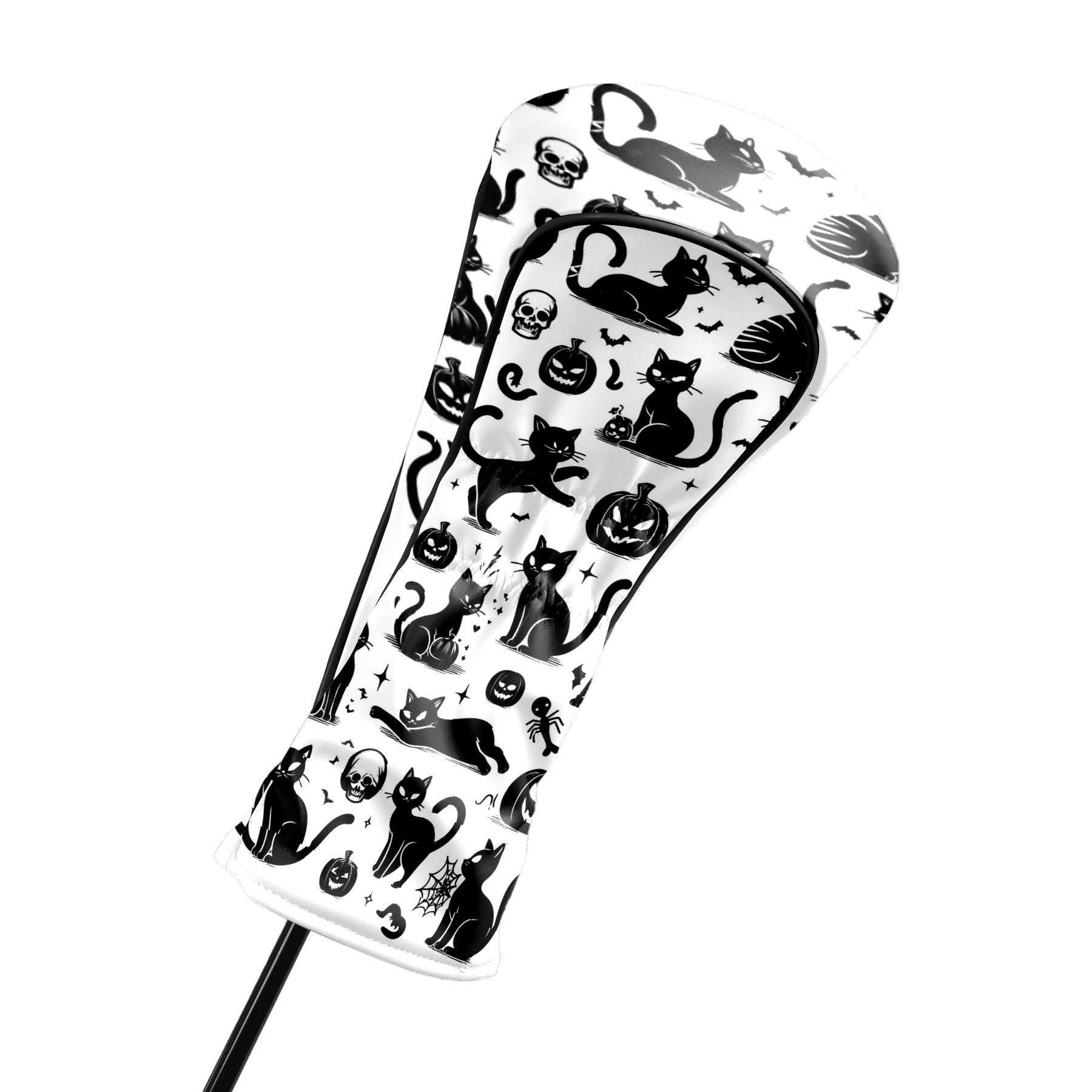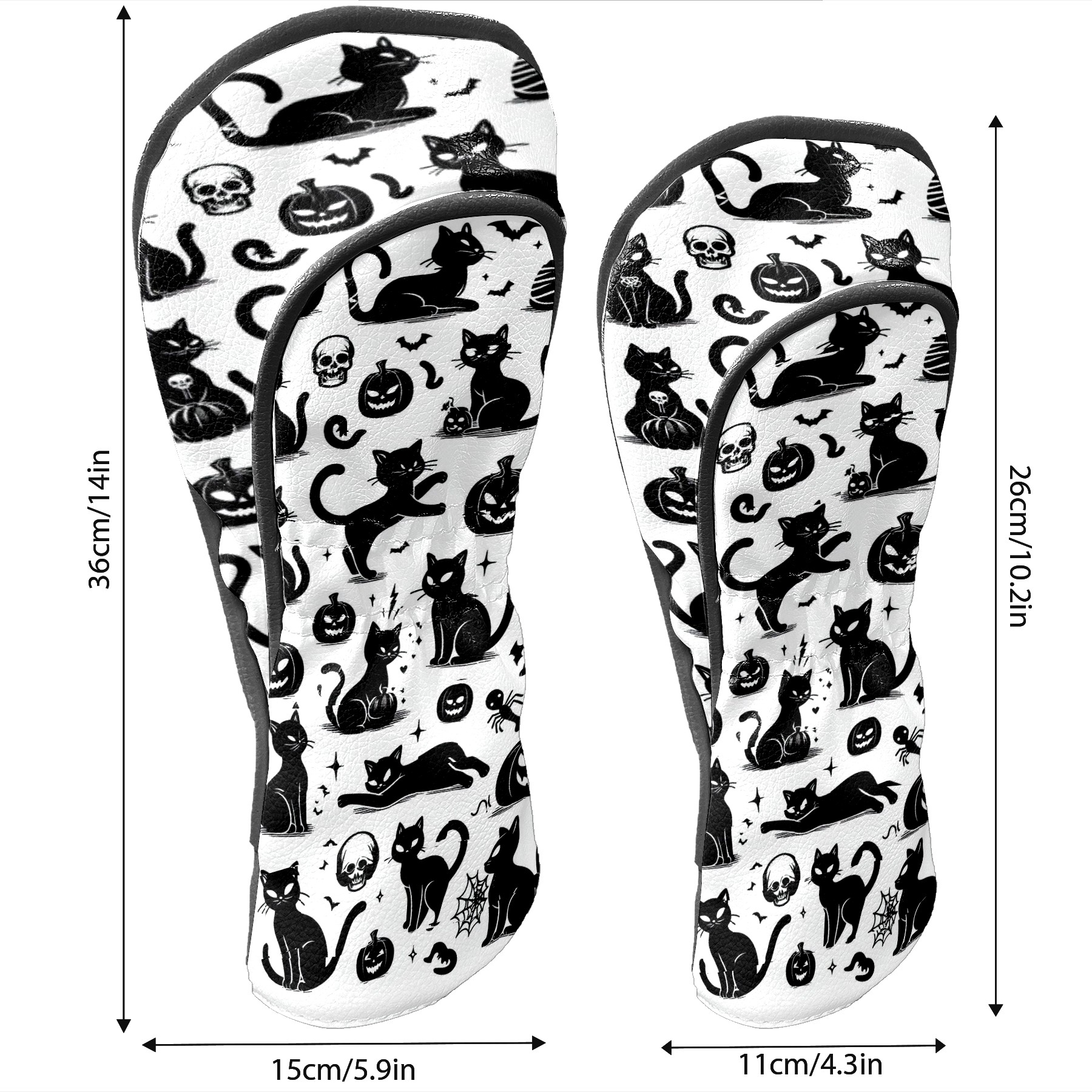 Golf Club Head Covers Halloween Black Cats Elements Design for Driver & Hybrid, Waterproof PU Leather with Plush Velvet Lining, Scratch Protection & Secure Fit, Ideal Golf Gift for Men Women