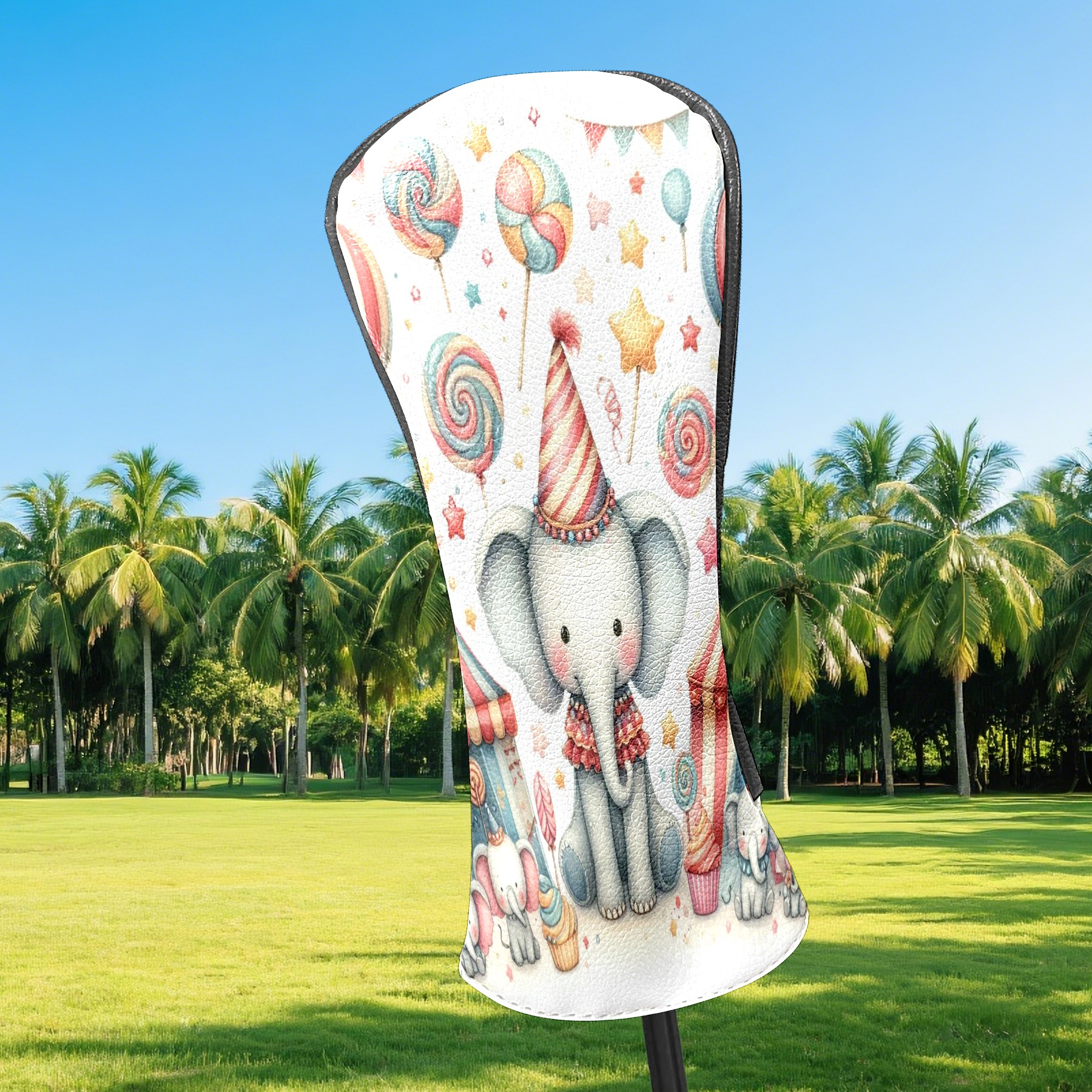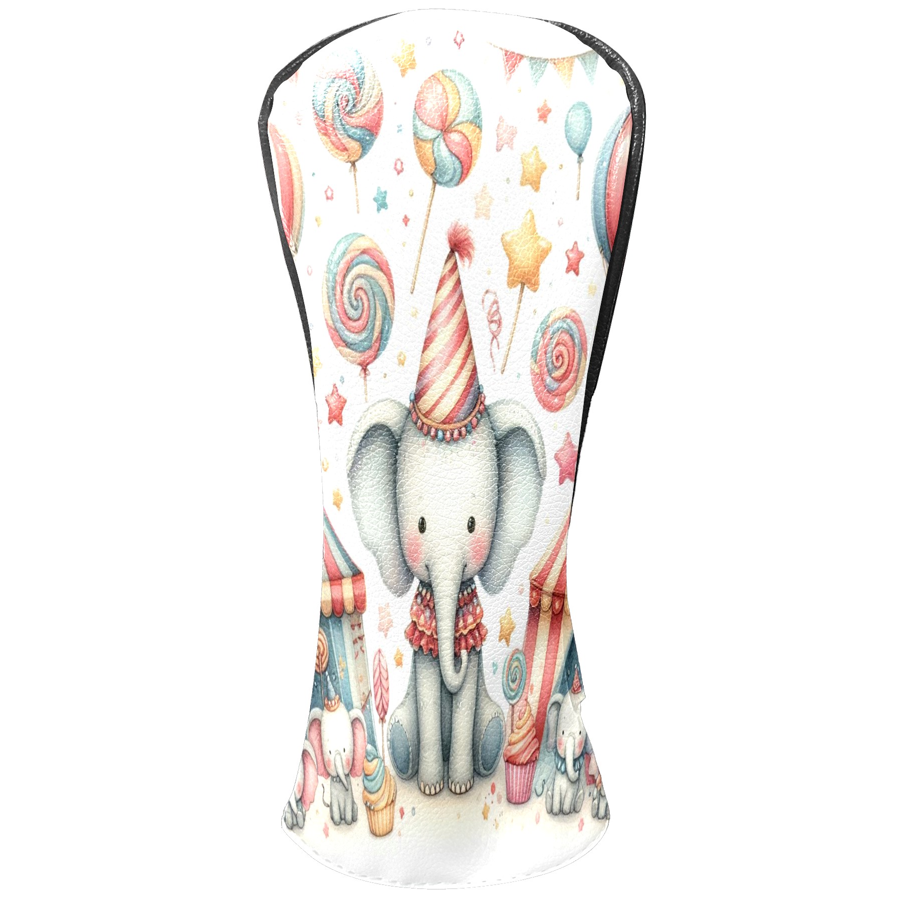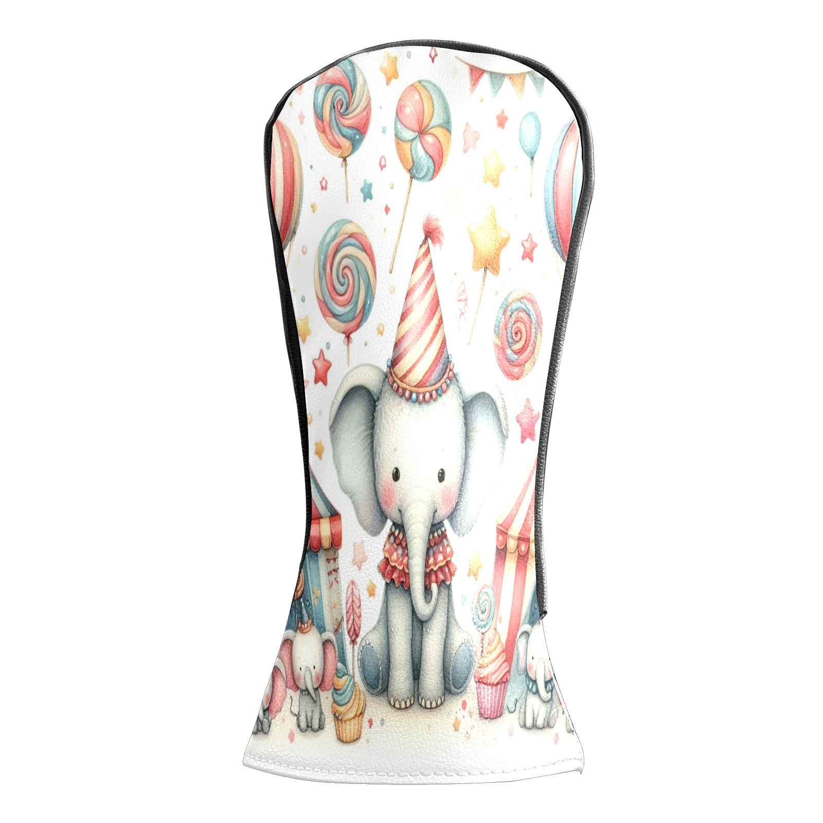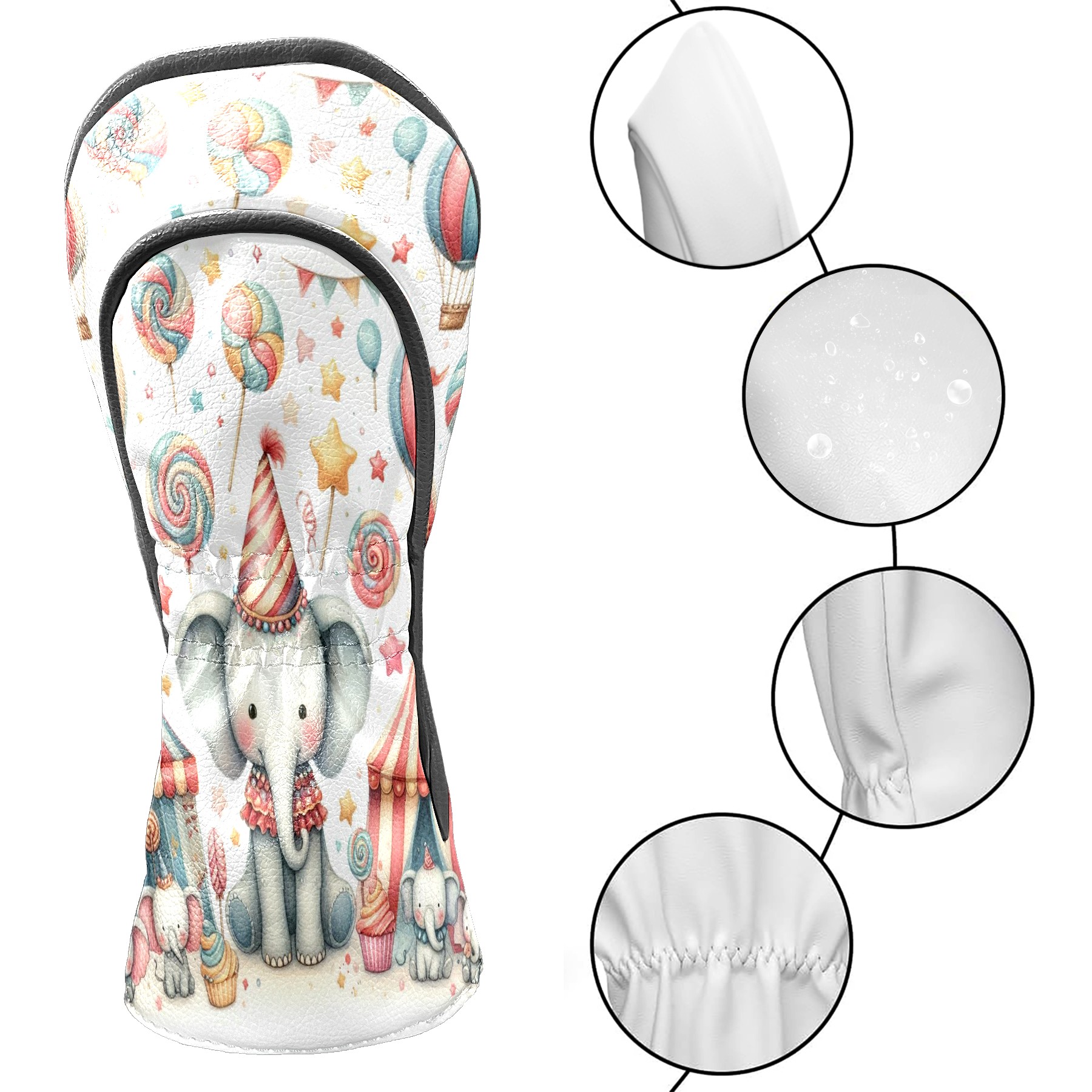 Golf Club Head Covers Circus Elephant & Balloons Design for Driver & Hybrid, Waterproof PU Leather with Plush Velvet Lining, Scratch Protection & Secure Fit, Ideal Golf Gift for Men Women