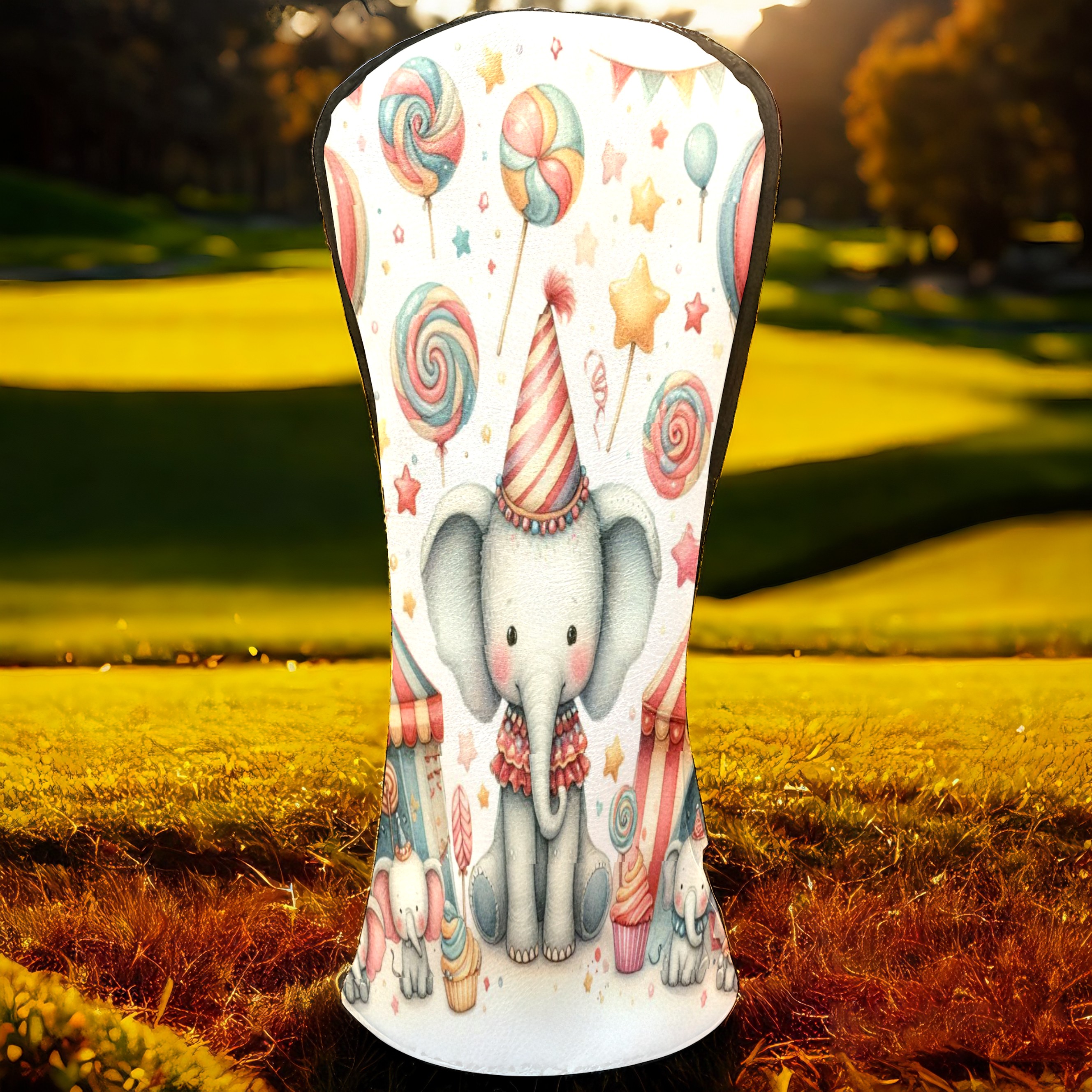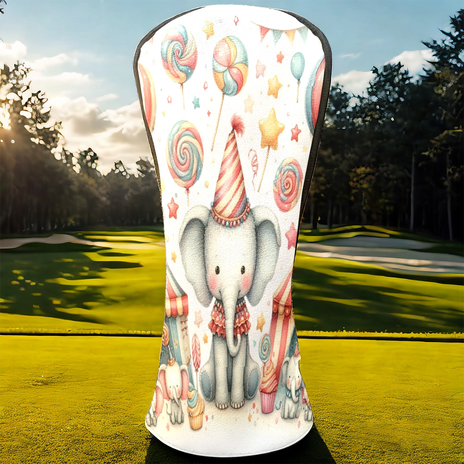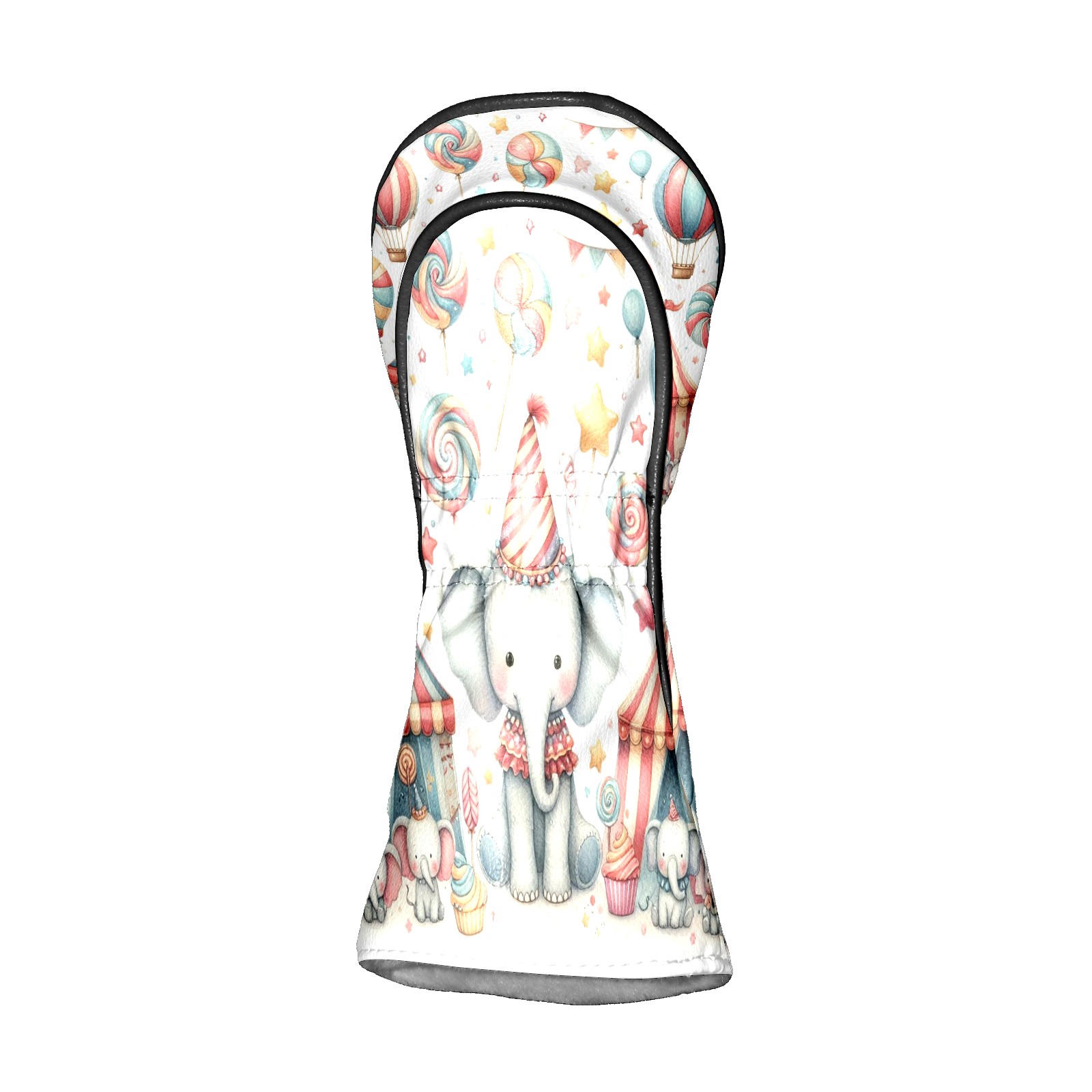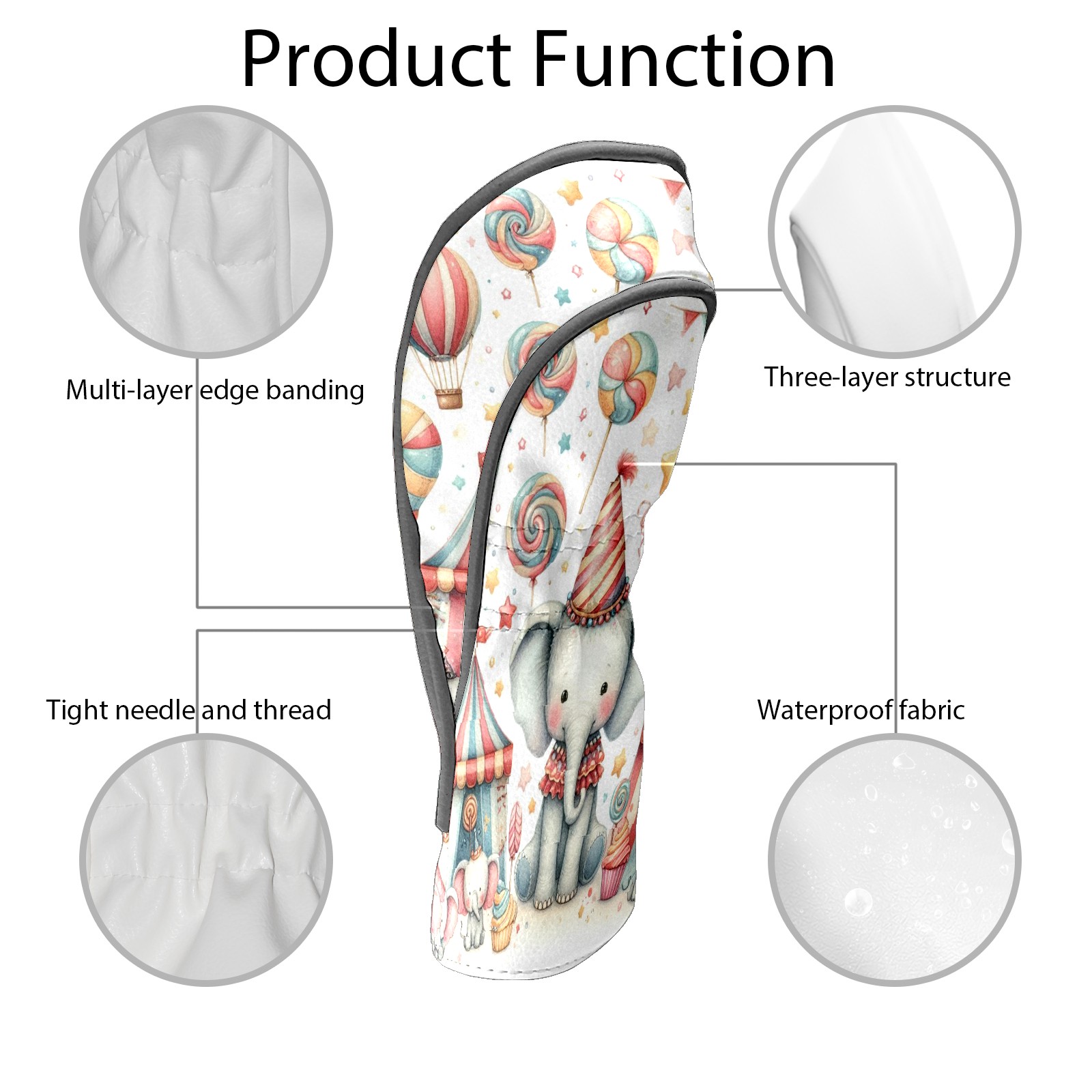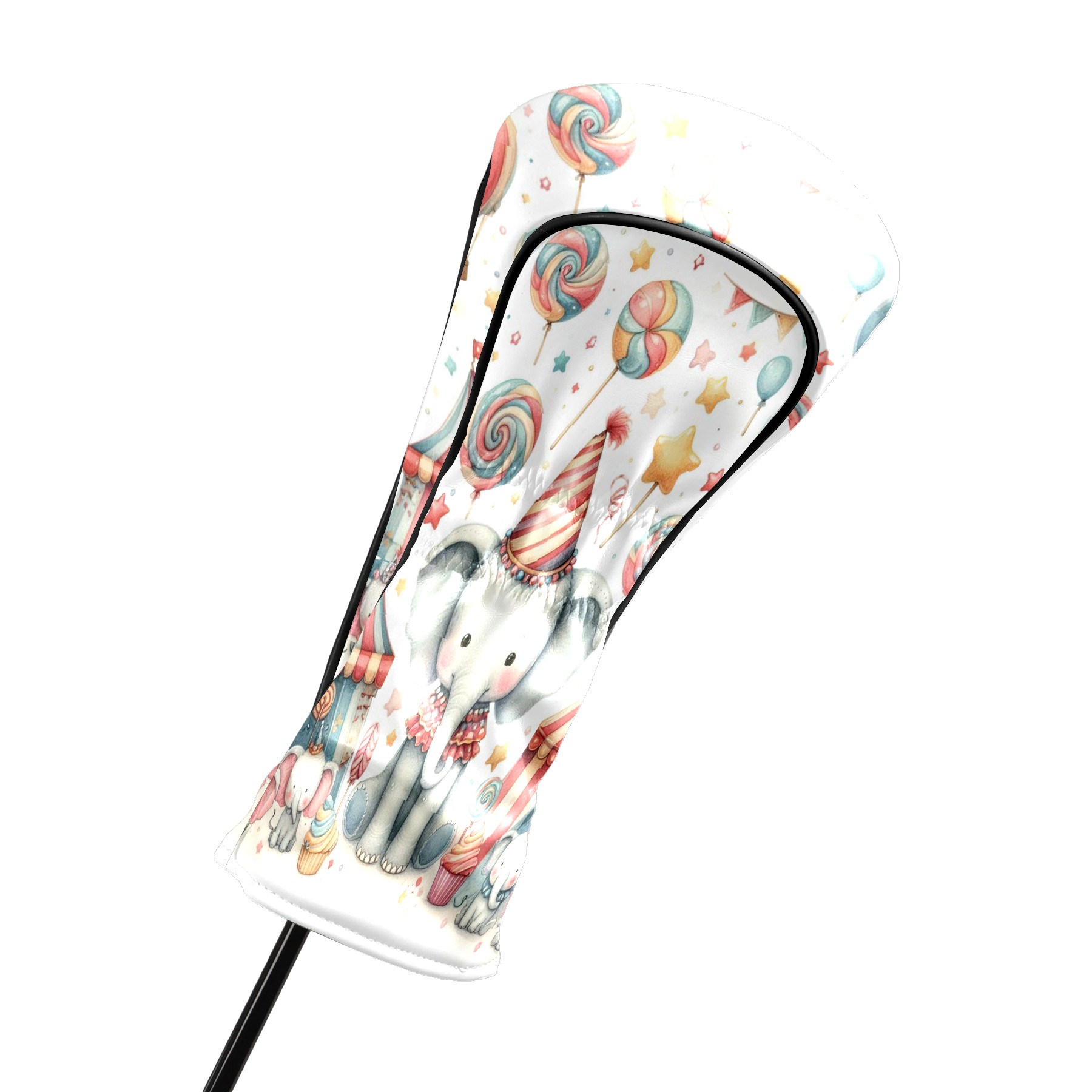 Golf Club Head Covers Circus Elephant & Balloons Design for Driver & Hybrid, Waterproof PU Leather with Plush Velvet Lining, Scratch Protection & Secure Fit, Ideal Golf Gift for Men Women