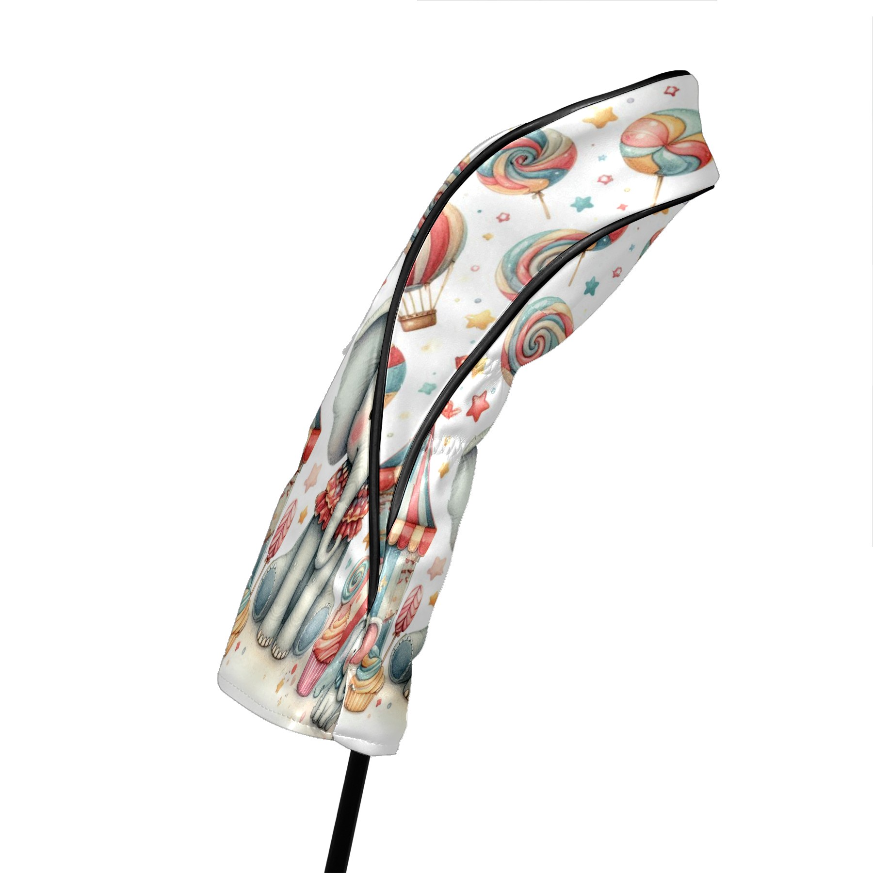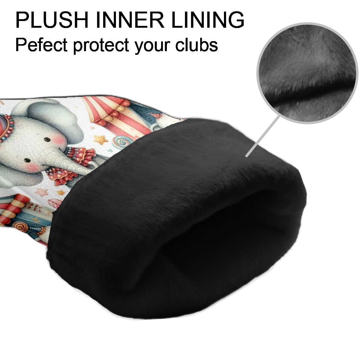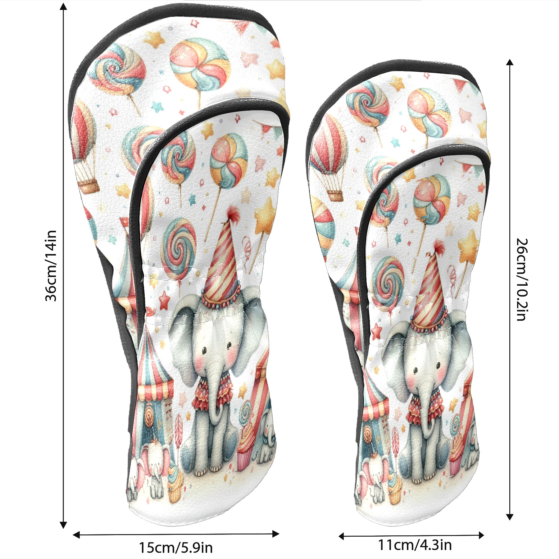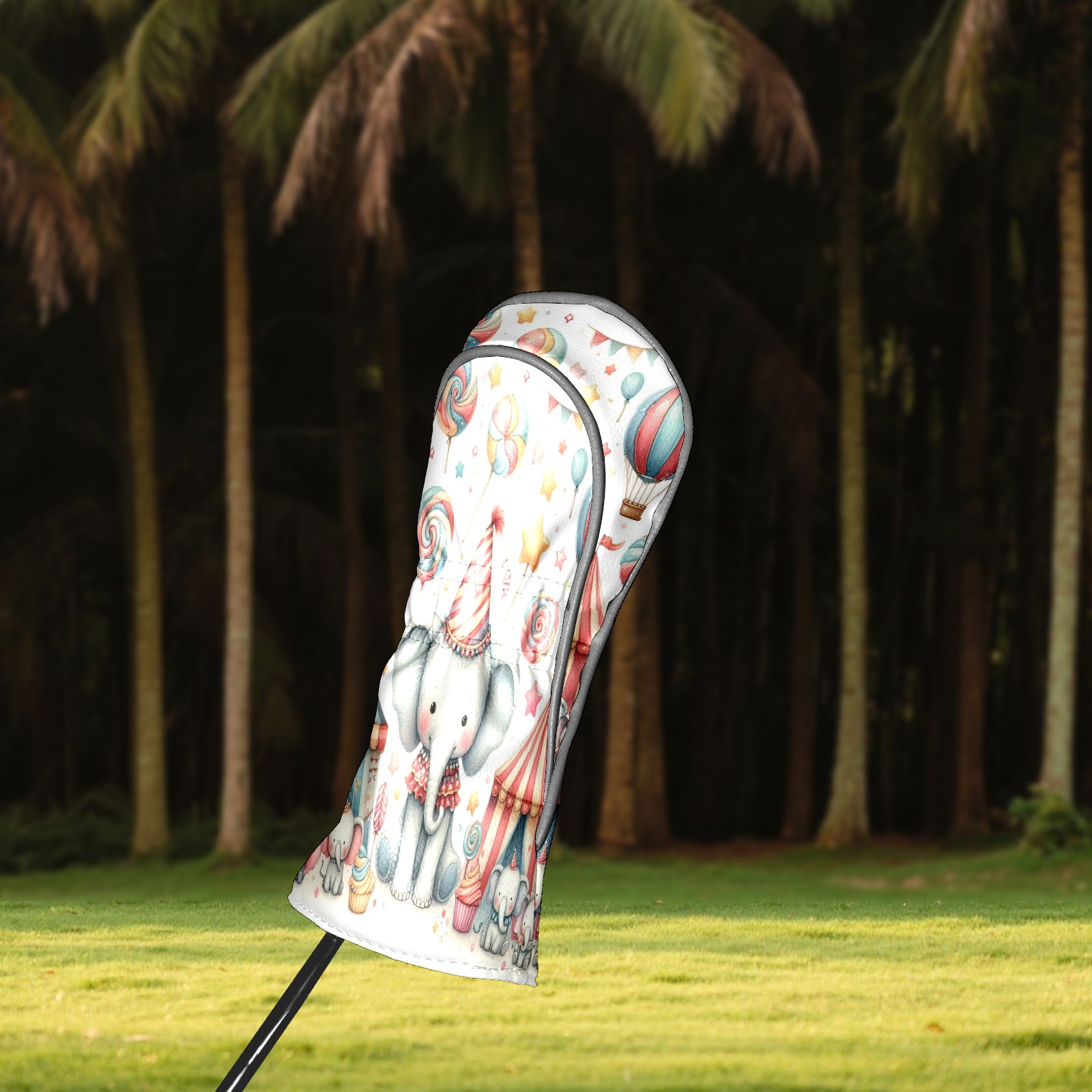 Golf Club Head Covers Circus Elephant & Balloons Design for Driver & Hybrid, Waterproof PU Leather with Plush Velvet Lining, Scratch Protection & Secure Fit, Ideal Golf Gift for Men Women