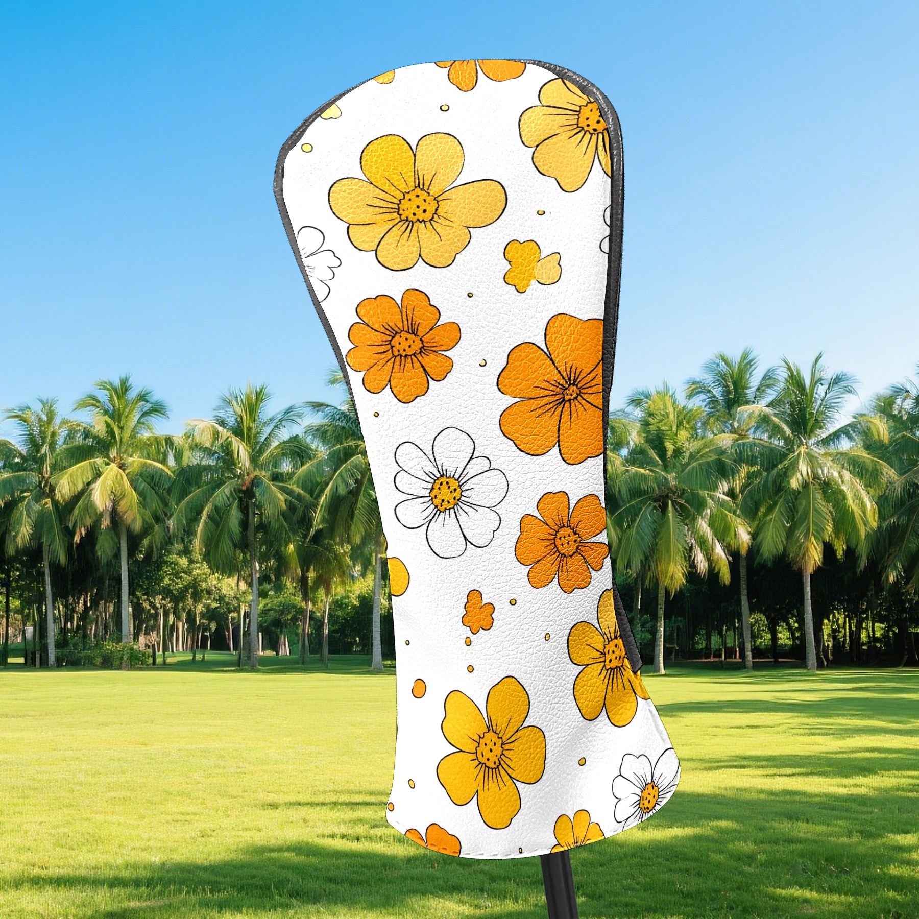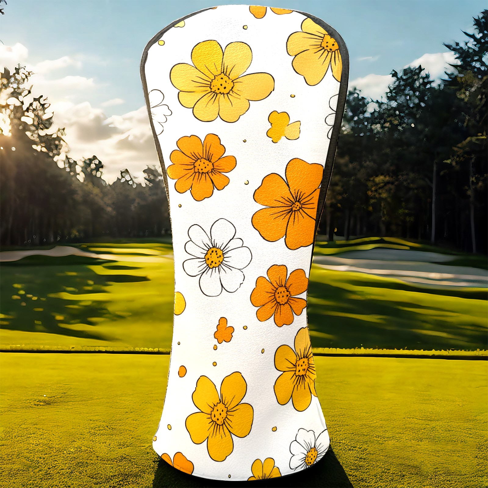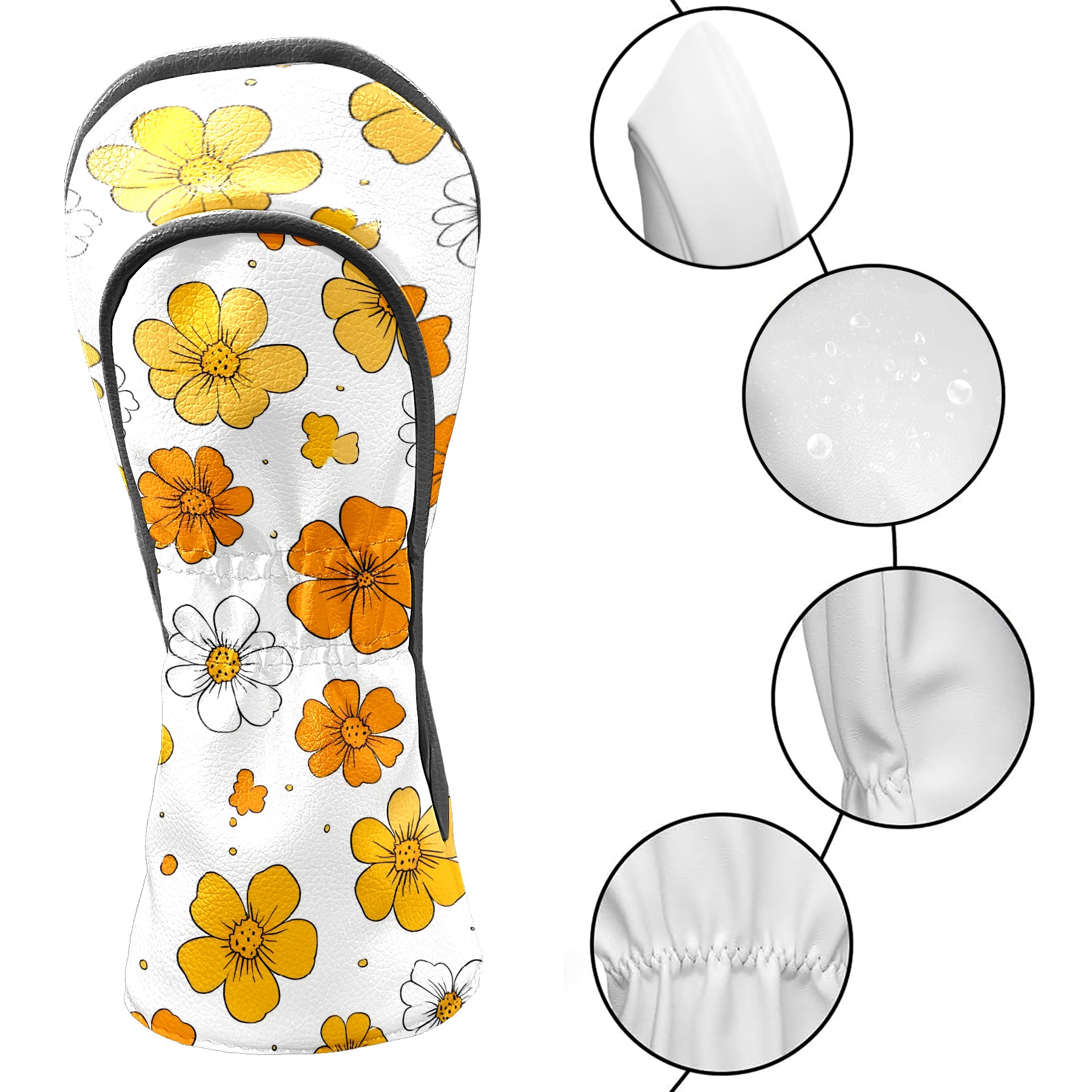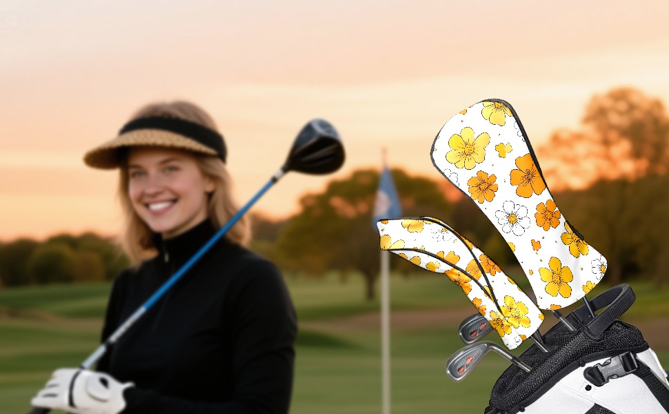 Golf Club Head Covers Yellow Flowers White Daisies Design for Driver & Hybrid, Waterproof PU Leather with Plush Velvet Lining, Scratch Protection & Secure Fit, Ideal Golf Gift for Men Women