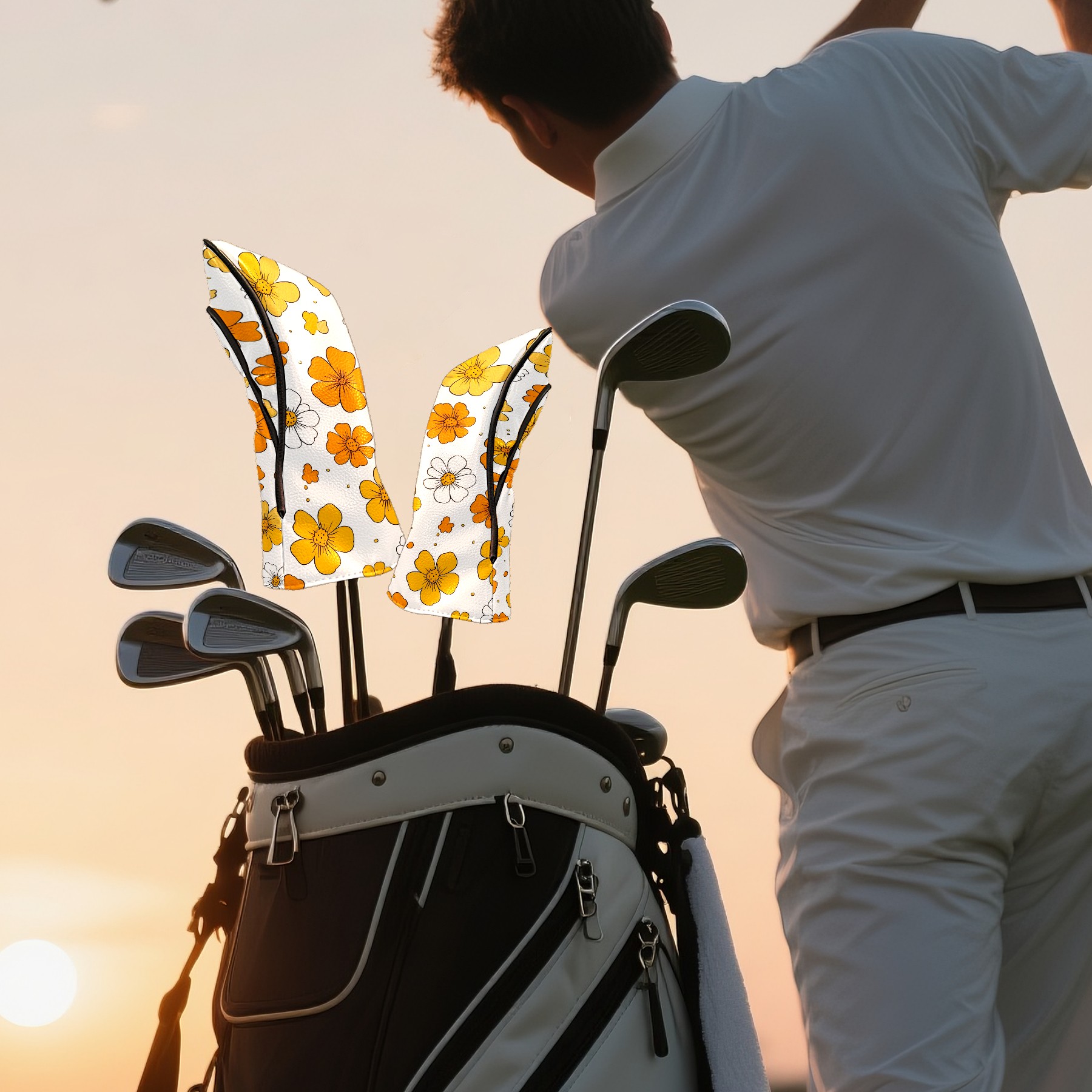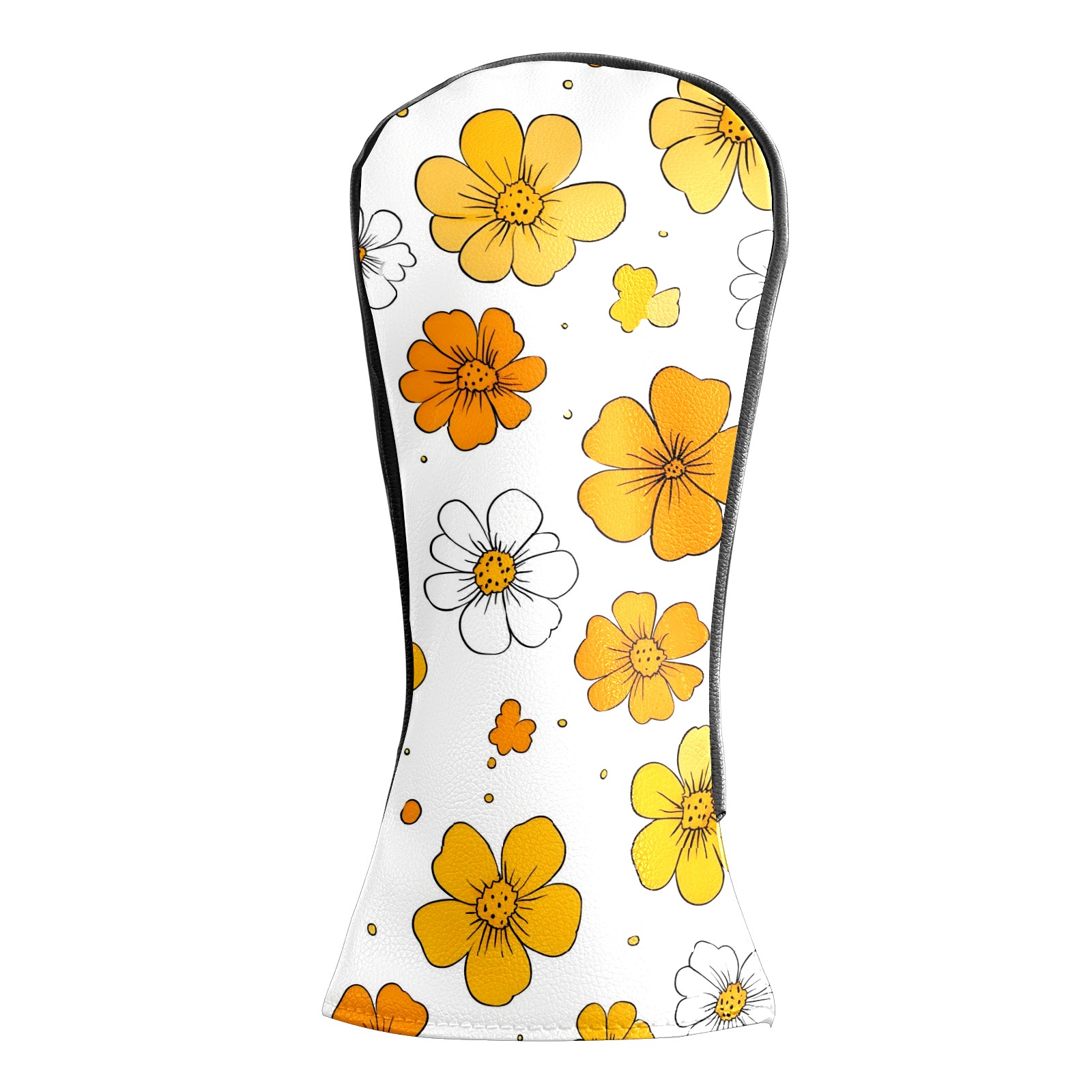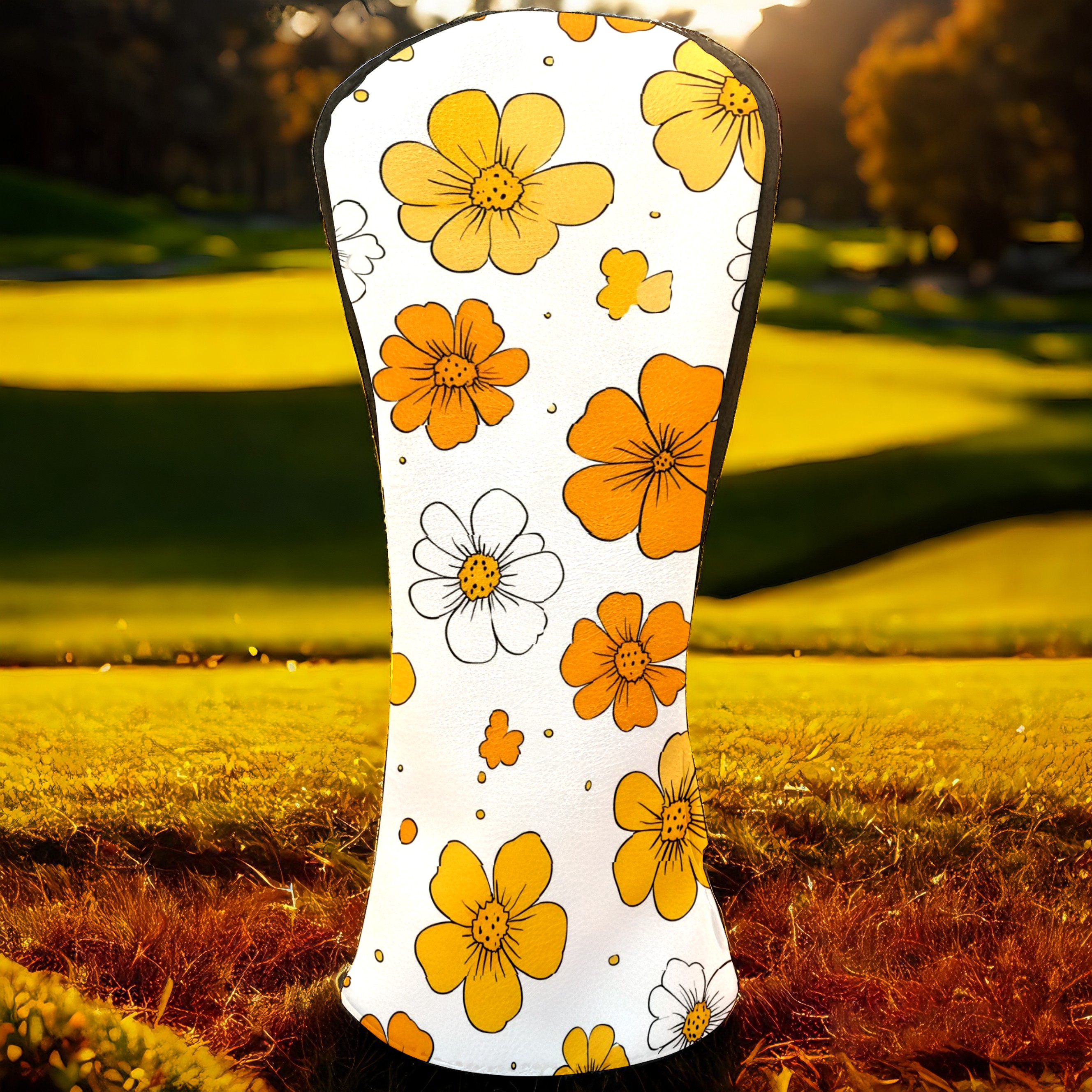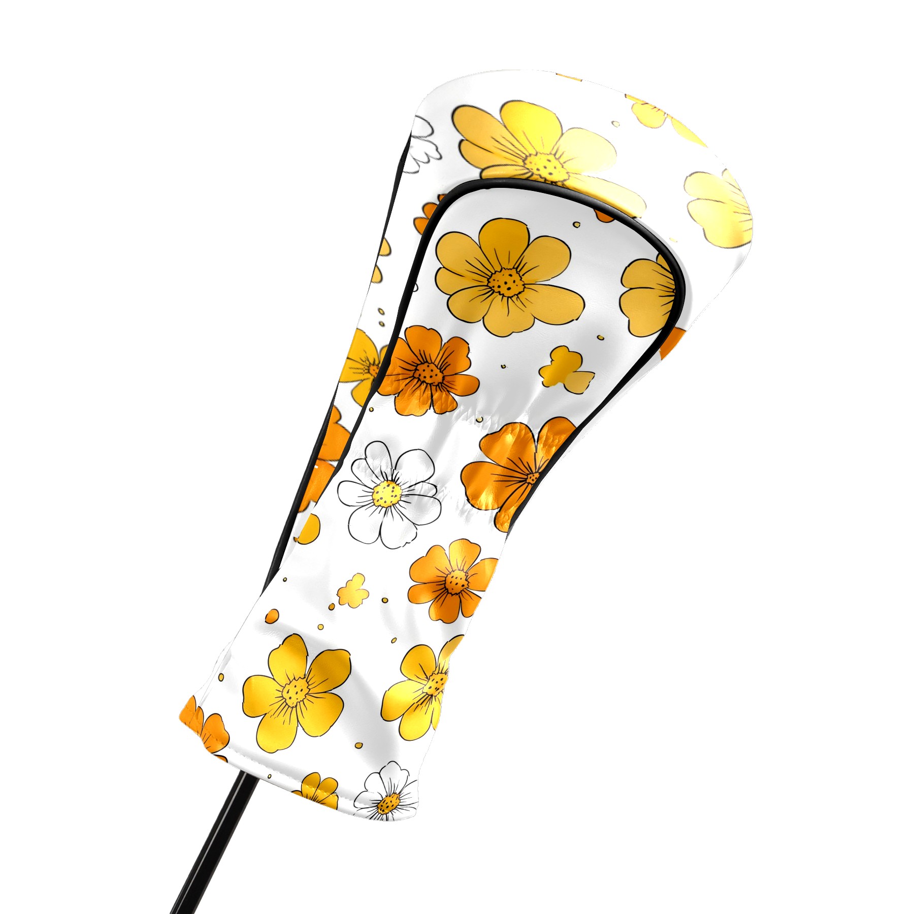 Golf Club Head Covers Yellow Flowers White Daisies Design for Driver & Hybrid, Waterproof PU Leather with Plush Velvet Lining, Scratch Protection & Secure Fit, Ideal Golf Gift for Men Women