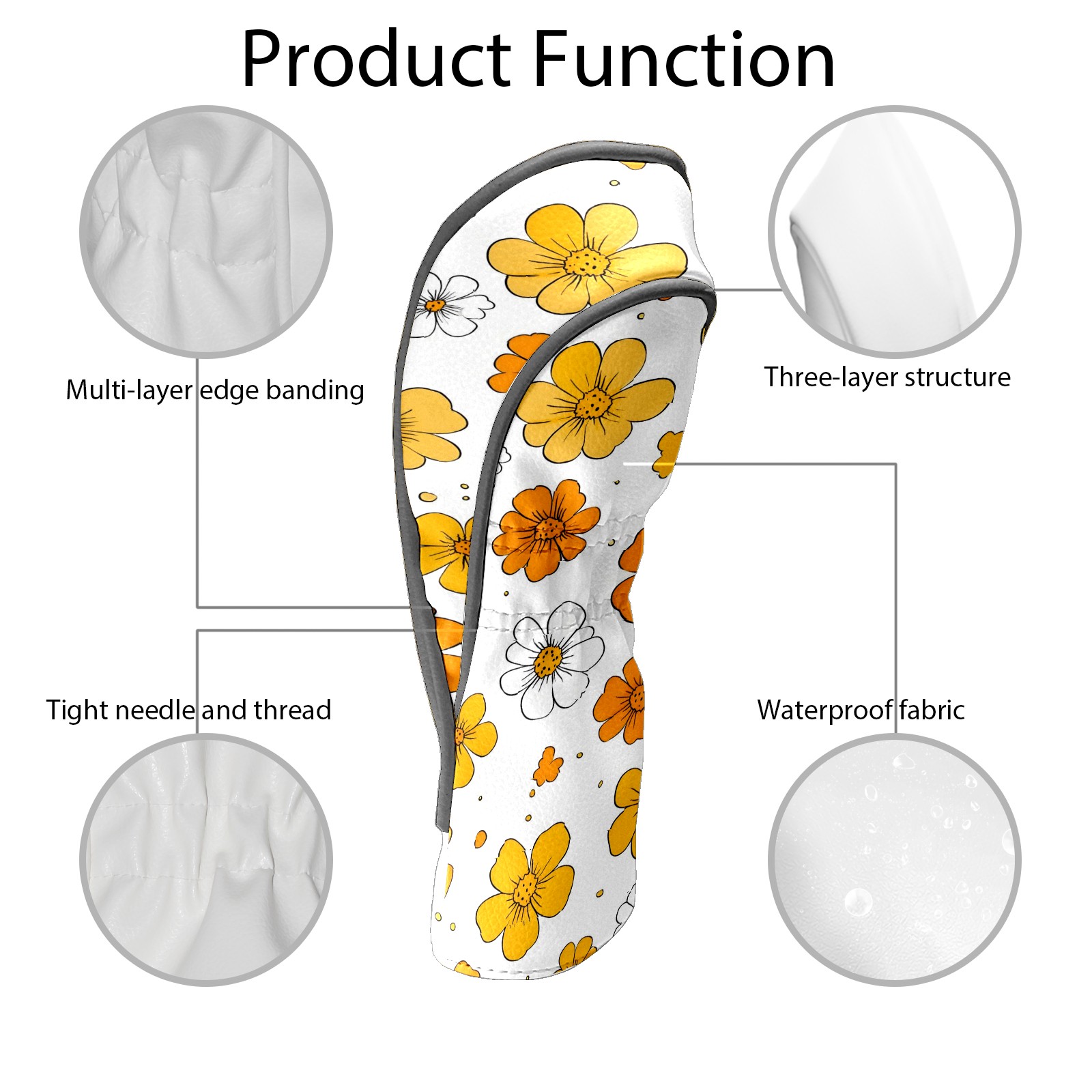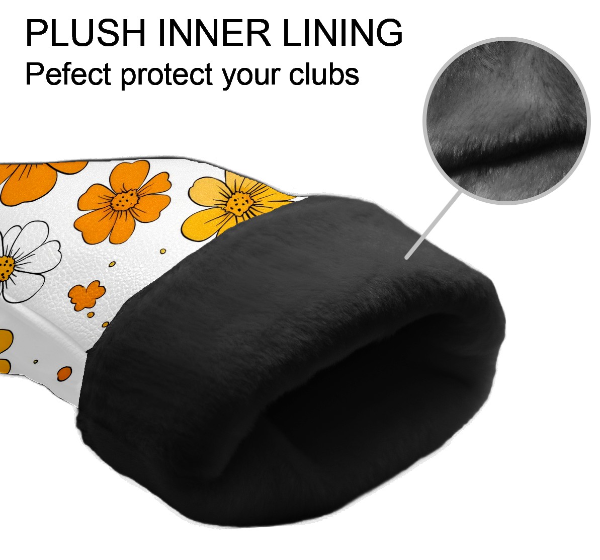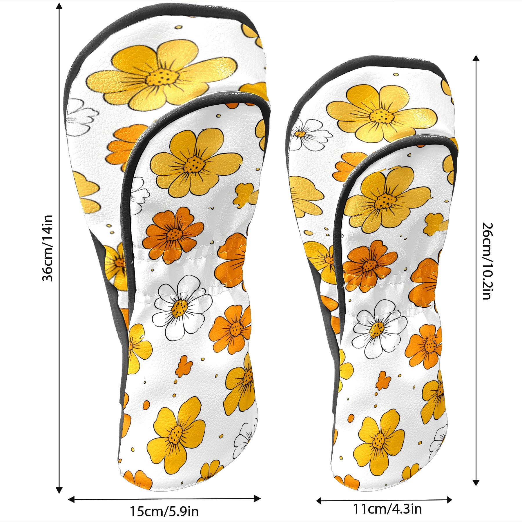 Golf Club Head Covers Yellow Flowers White Daisies Design for Driver & Hybrid, Waterproof PU Leather with Plush Velvet Lining, Scratch Protection & Secure Fit, Ideal Golf Gift for Men Women