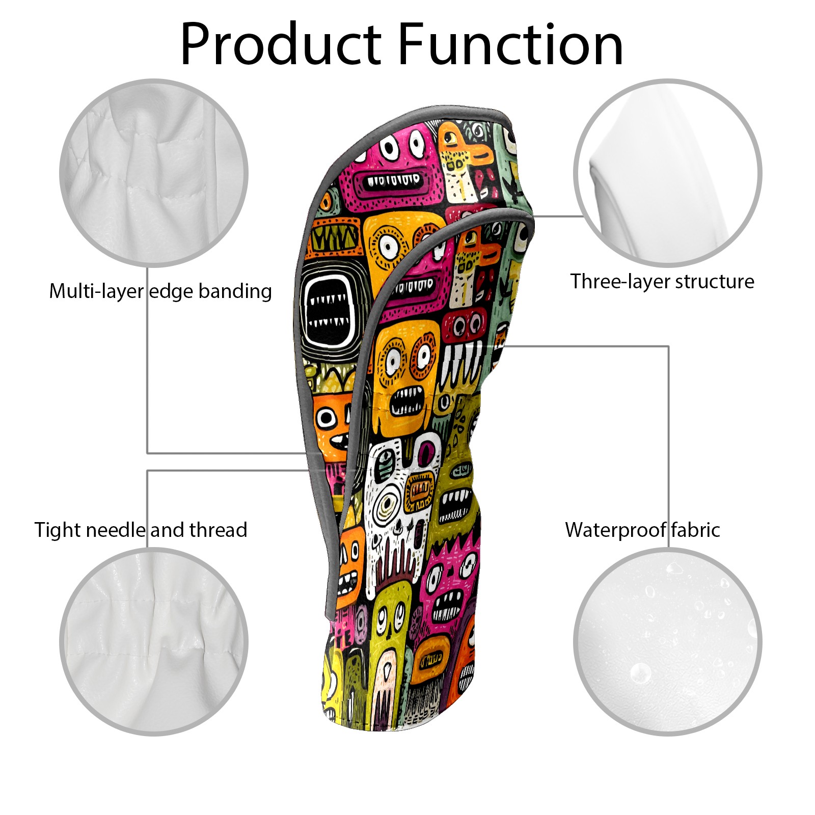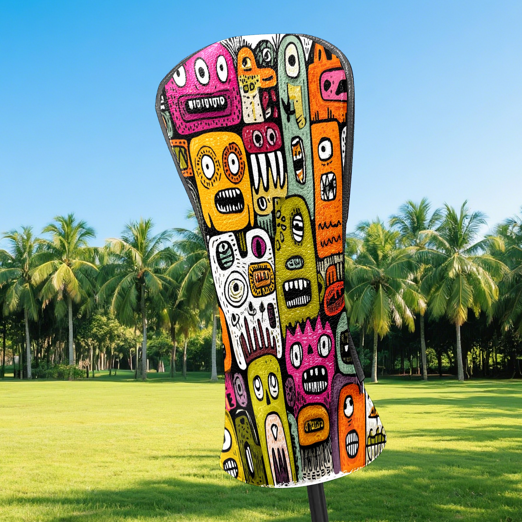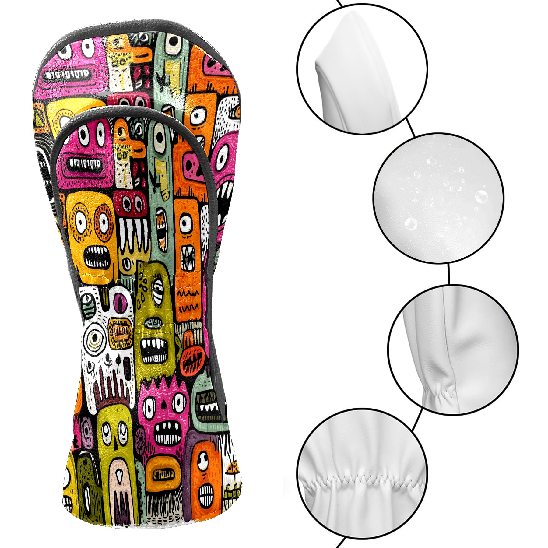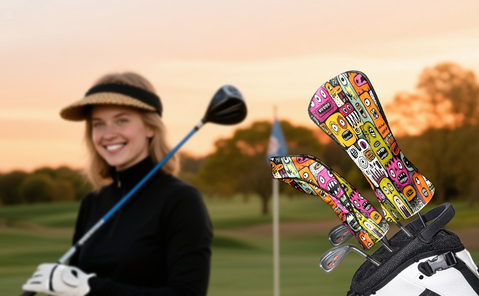 Golf Club Head Covers Colorful Whimsical Cartoon Characters Design for Driver & Hybrid, Waterproof PU Leather with Plush Velvet Lining, Scratch Protection & Secure Fit, Ideal Golf Gift for Men Women