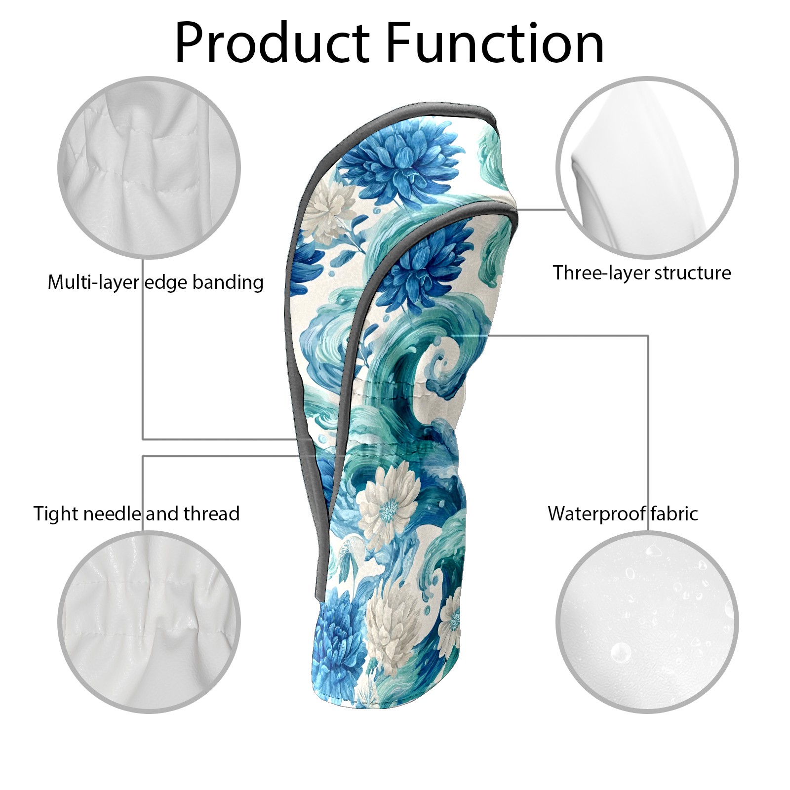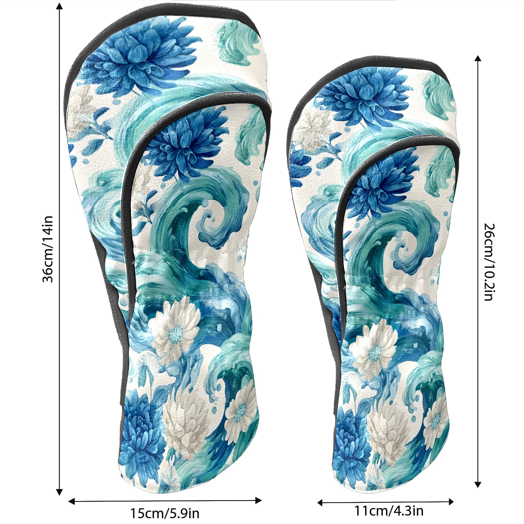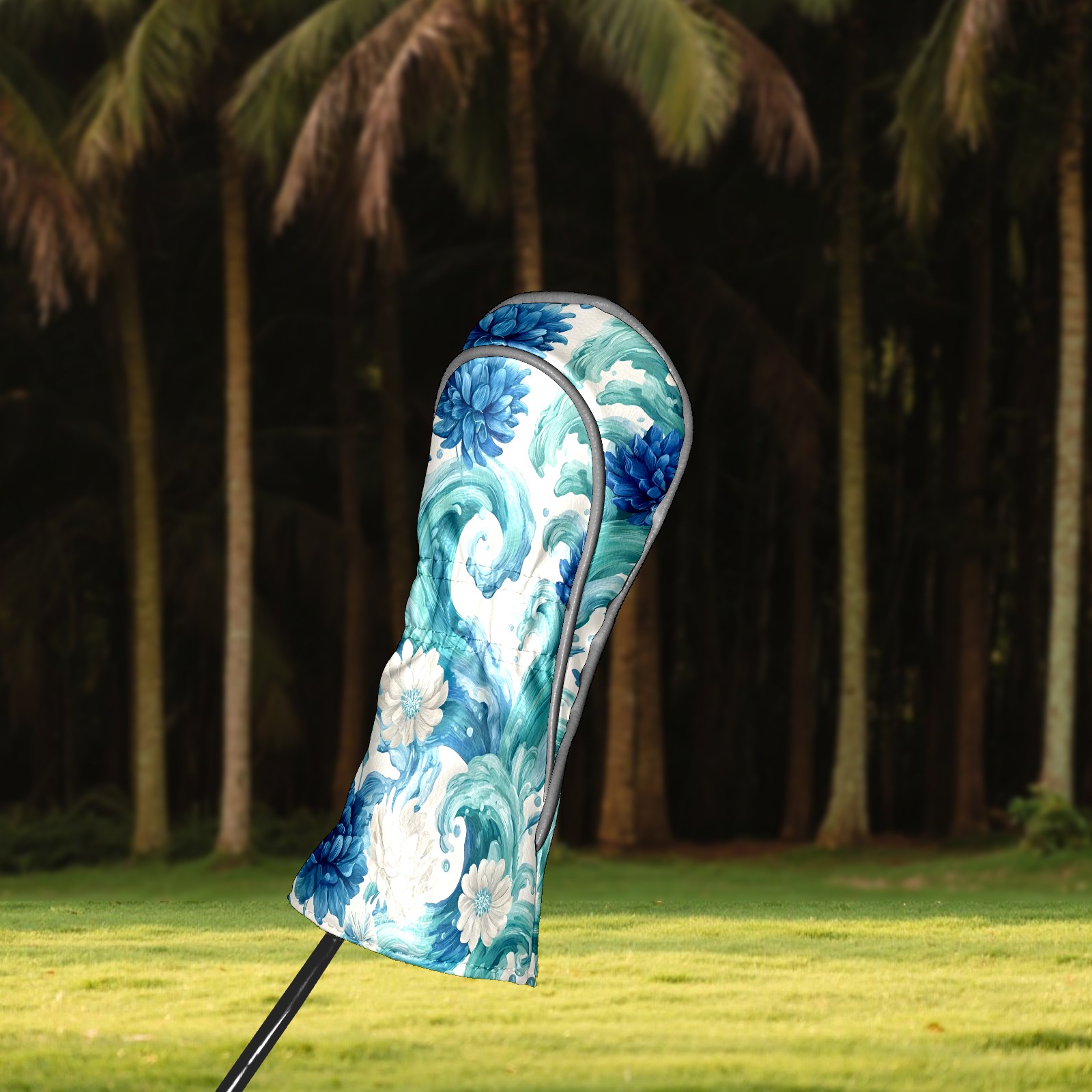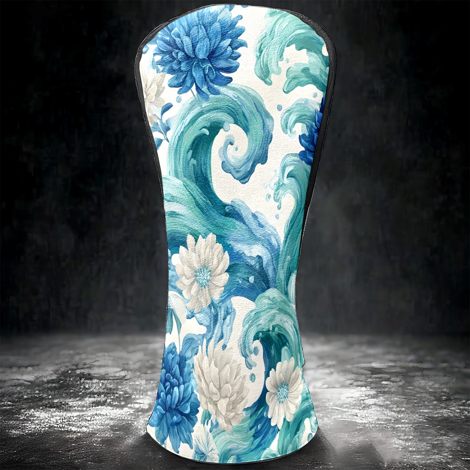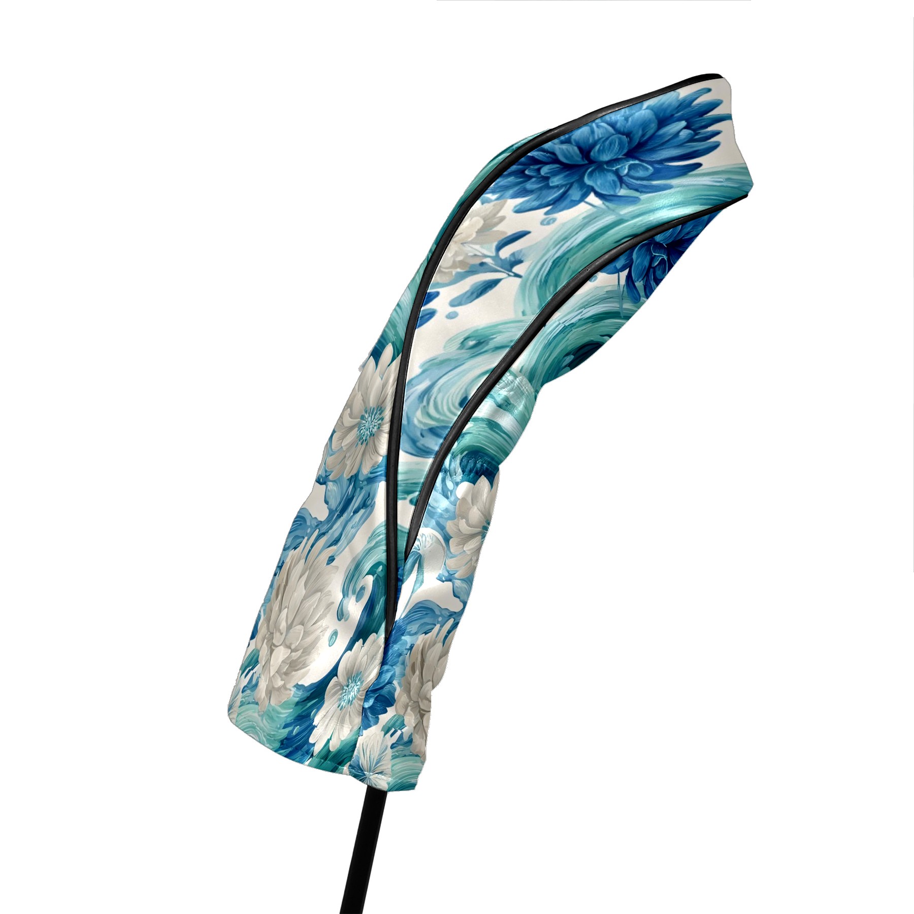 Golf Club Head Covers Blue White Waves & Flowers Design for Driver & Hybrid, Waterproof PU Leather with Plush Velvet Lining, Scratch Protection & Secure Fit, Ideal Golf Gift for Men Women