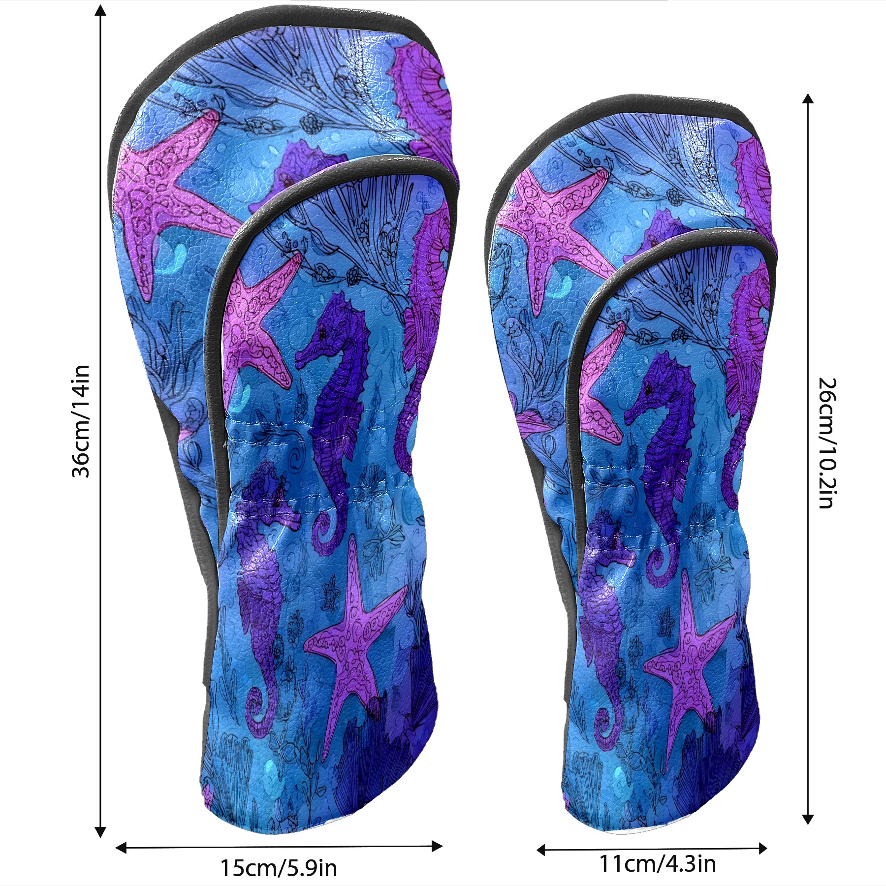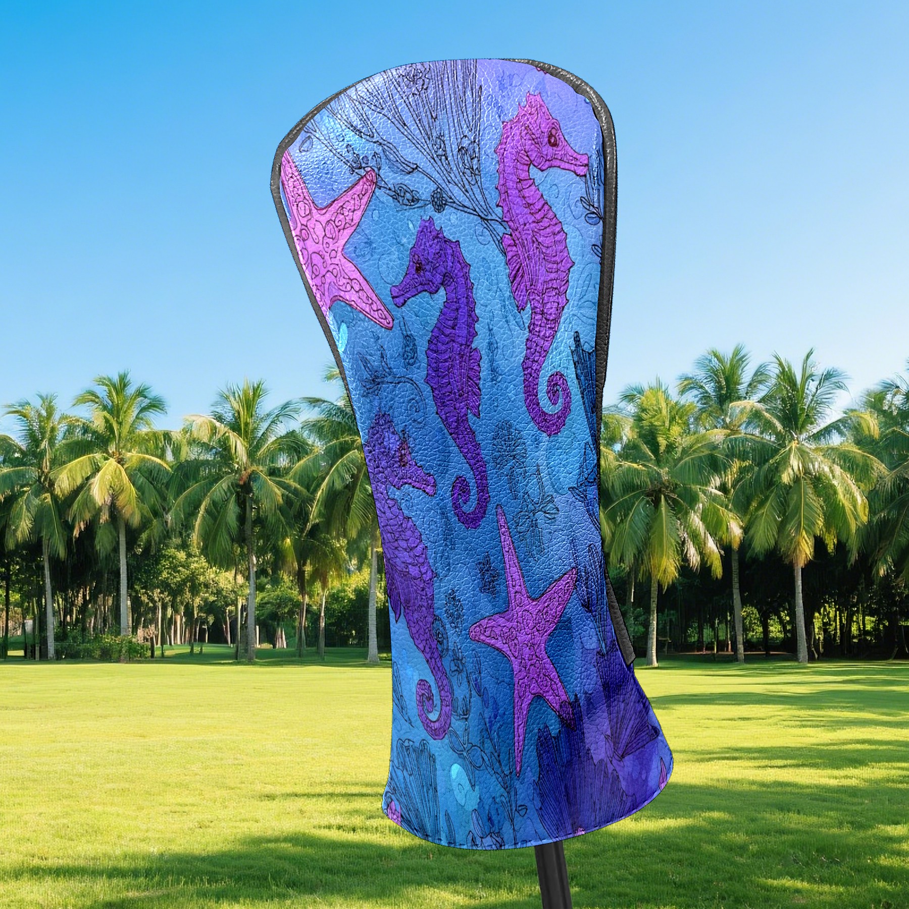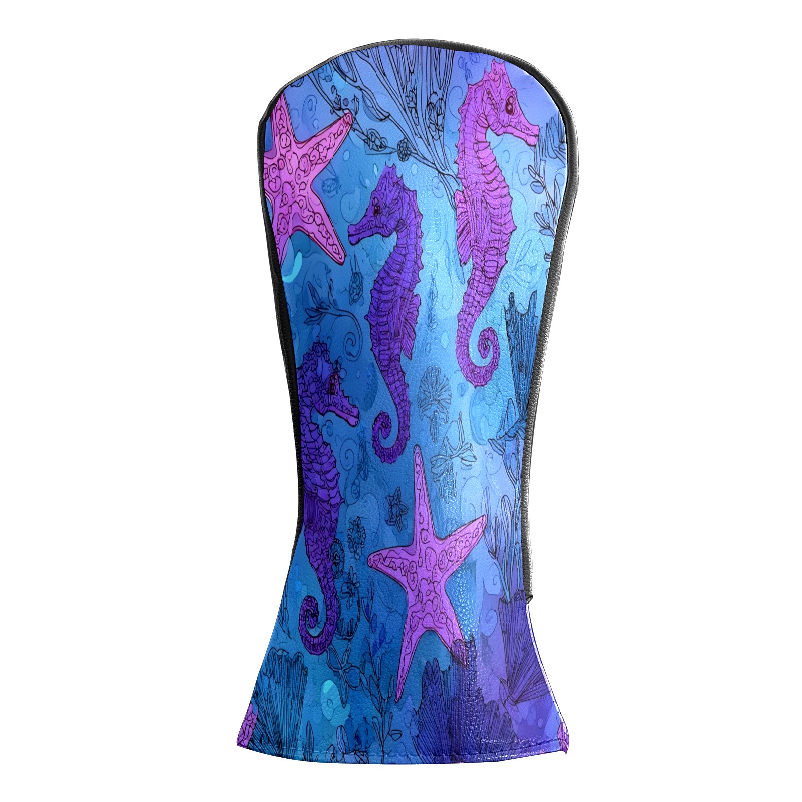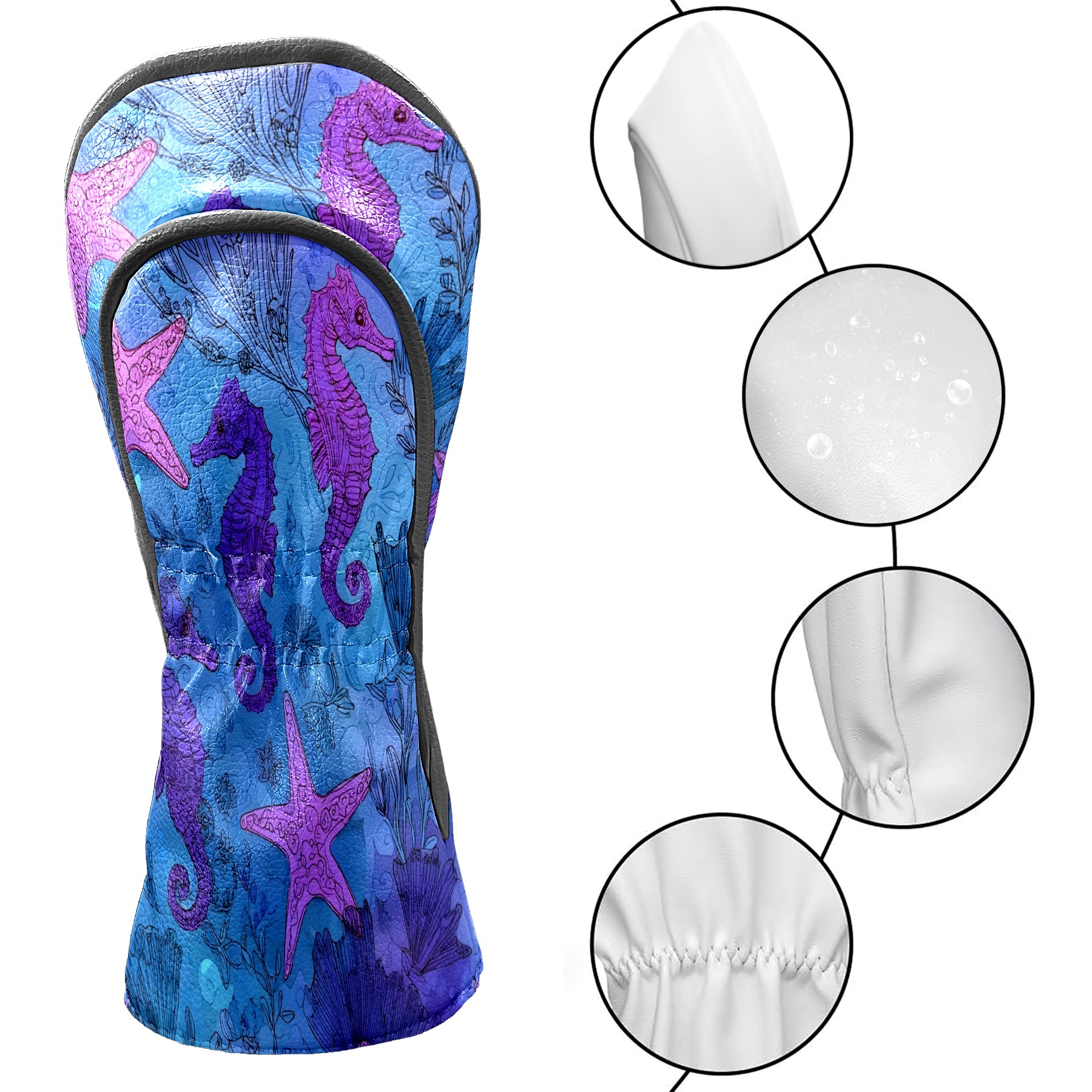 Golf Club Head Covers Blue Purple Starfish Seahorses Design for Driver & Hybrid, Waterproof PU Leather with Plush Velvet Lining, Scratch Protection & Secure Fit, Ideal Golf Gift for Men Women